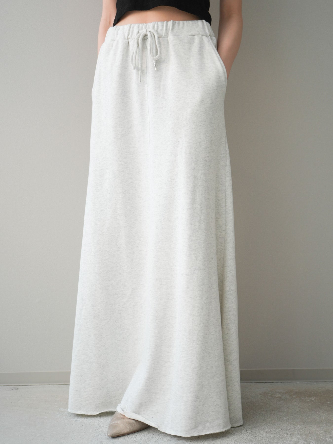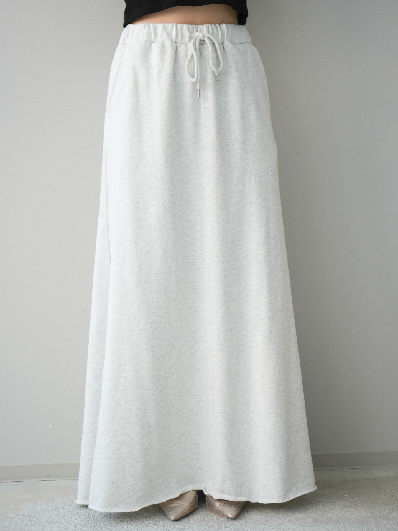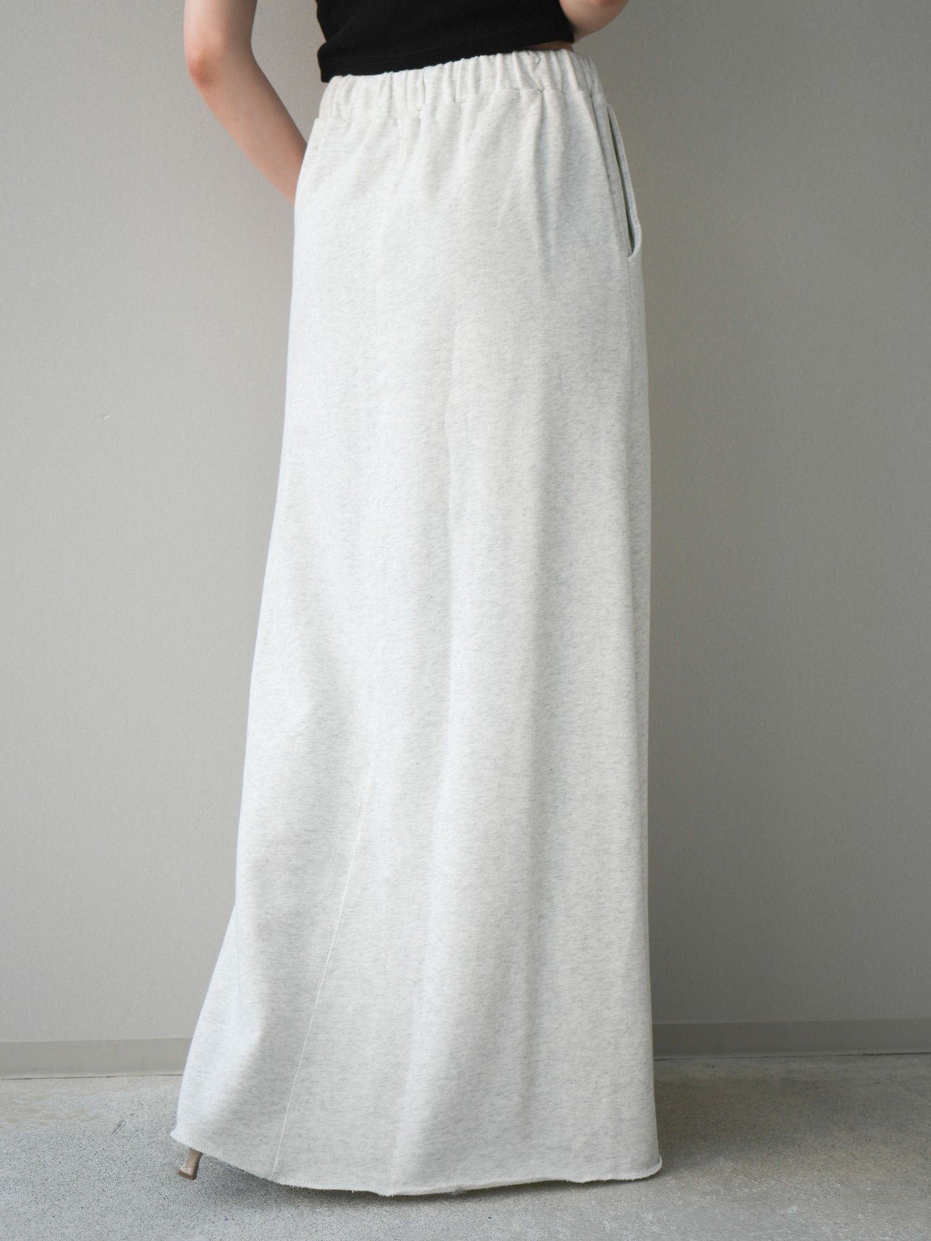 リラックス感と上品さを兼ね備えたスエット素材のロングスカート。落ち感のあるシルエットが縦のラインを美しく見せ、カジュアルながらもすっきりとした印象に仕上がります。ウエストはゴム仕様で穿き心地が良く、デイリー使いにも取り入れやすいデザイン。シンプルなトップスはもちろん、ニットやシャツとも相性が良く、合わせるアイテム次第で幅広いスタイリングが楽しめる一着です。