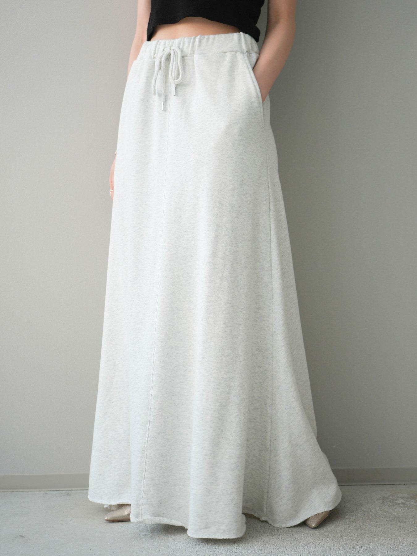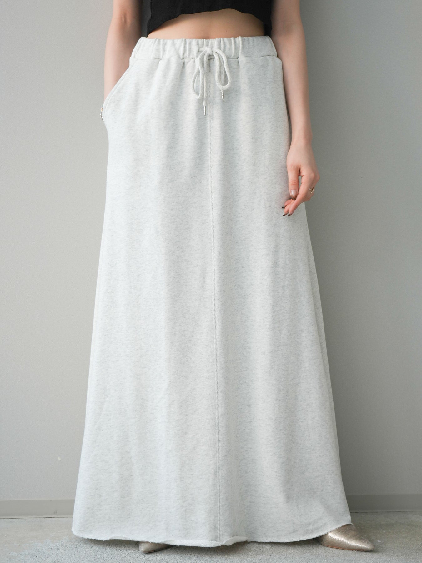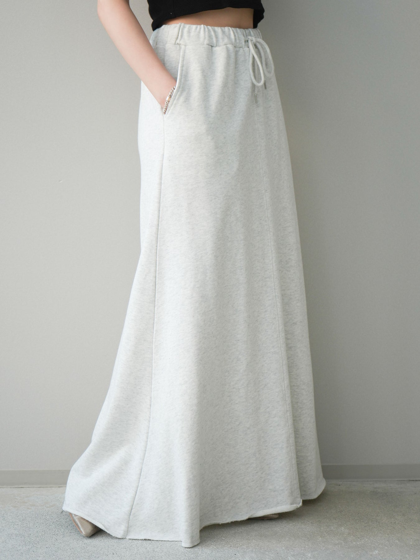 リラックス感と上品さを兼ね備えたスエット素材のロングスカート。落ち感のあるシルエットが縦のラインを美しく見せ、カジュアルながらもすっきりとした印象に仕上がります。ウエストはゴム仕様で穿き心地が良く、デイリー使いにも取り入れやすいデザイン。シンプルなトップスはもちろん、ニットやシャツとも相性が良く、合わせるアイテム次第で幅広いスタイリングが楽しめる一着です。
