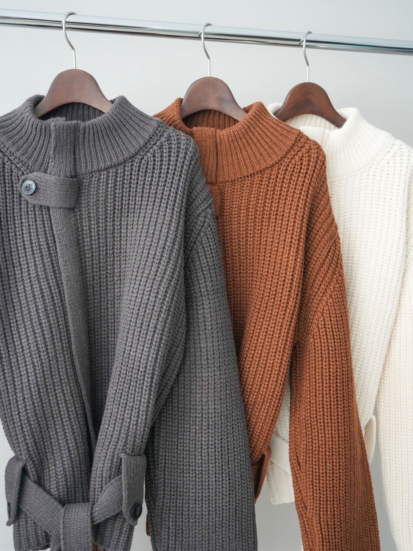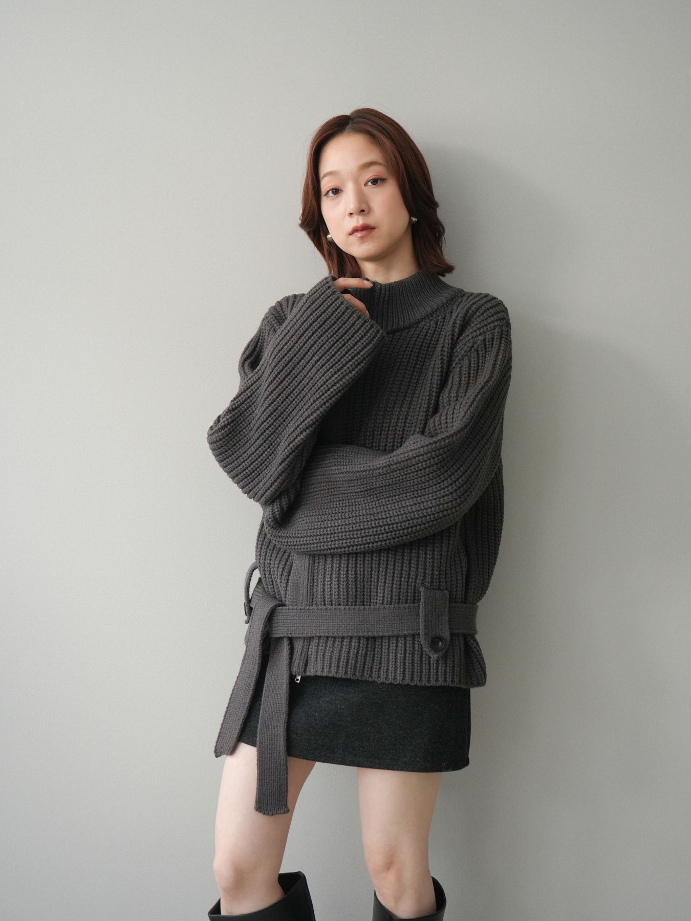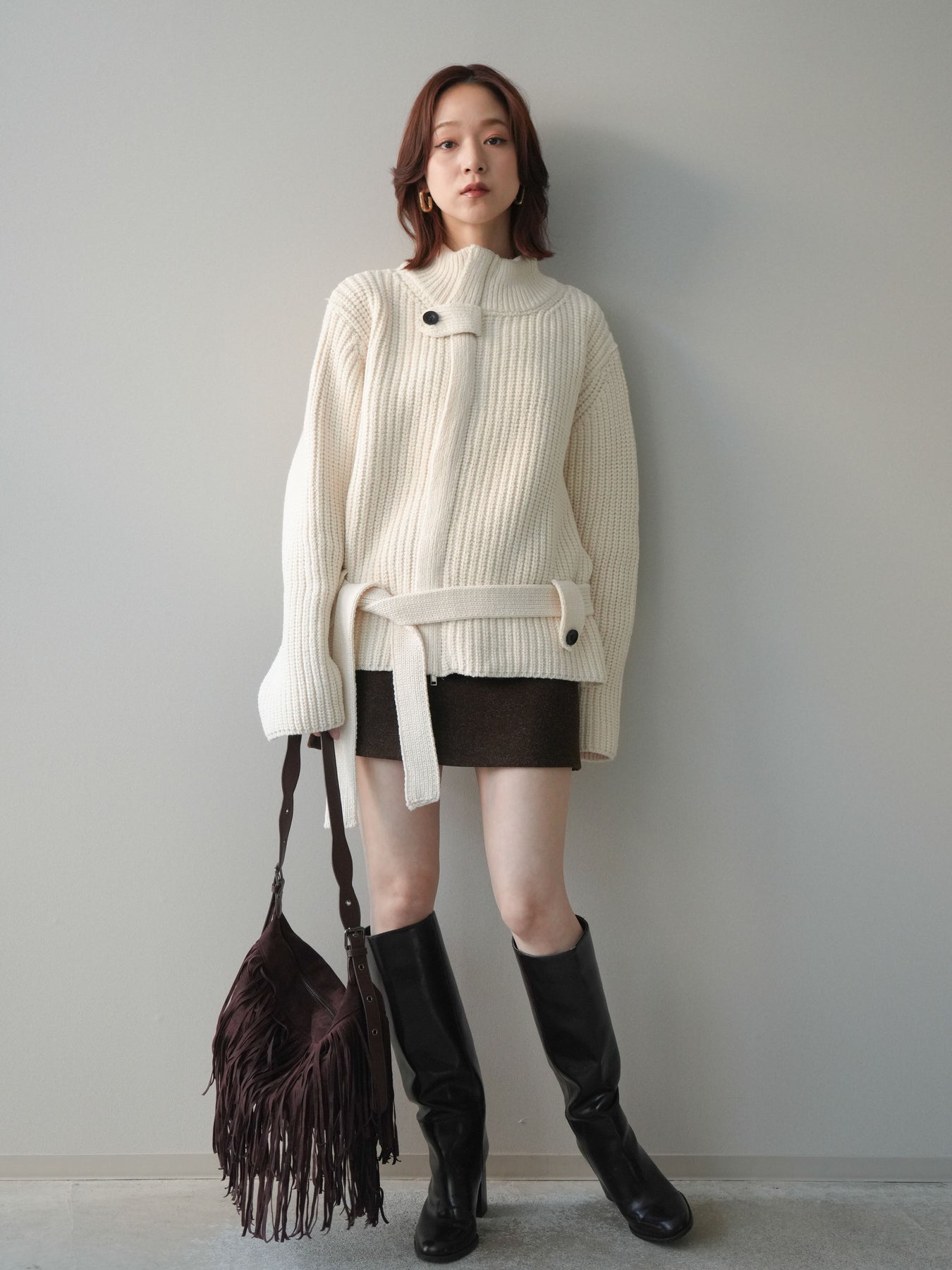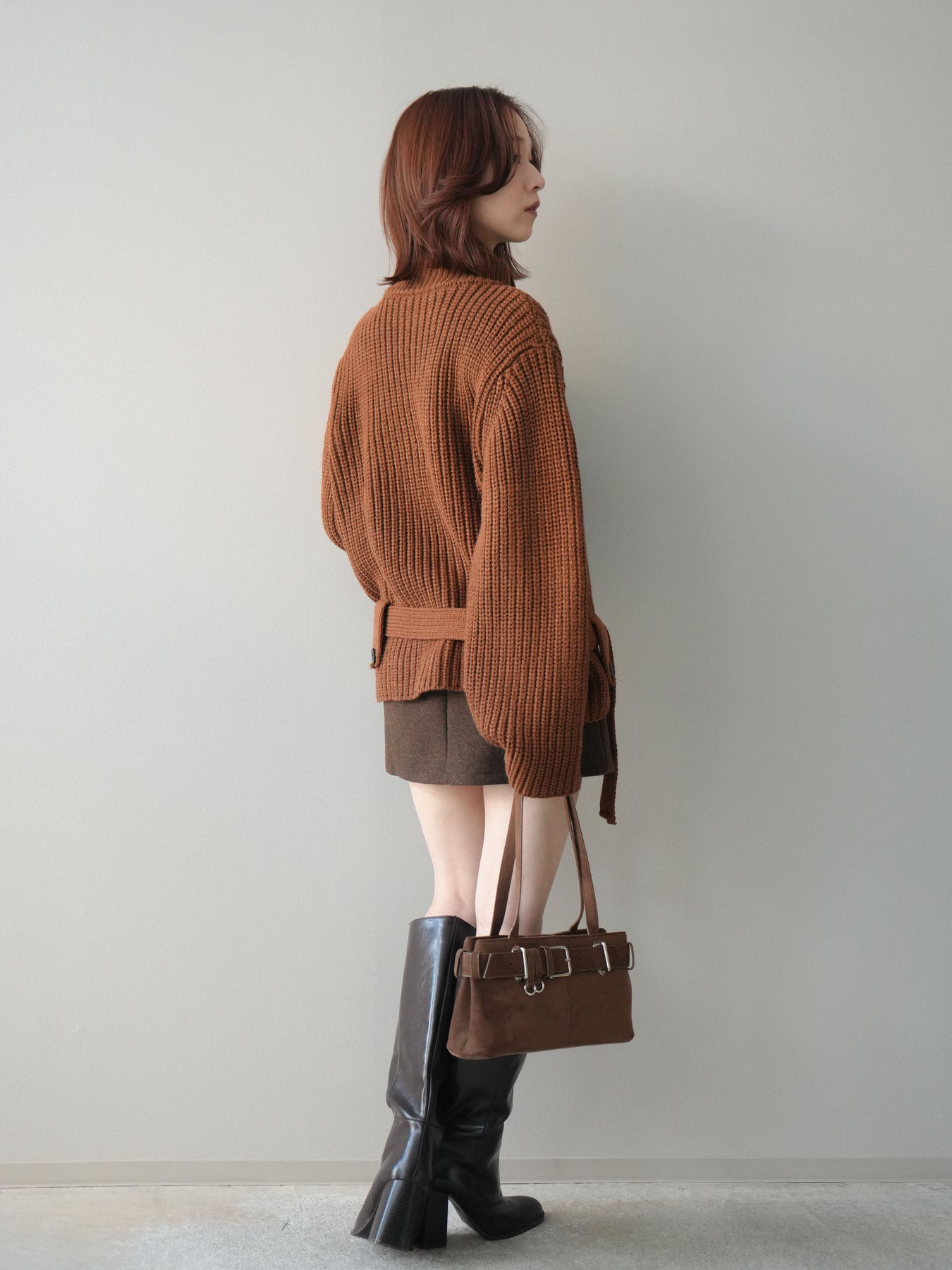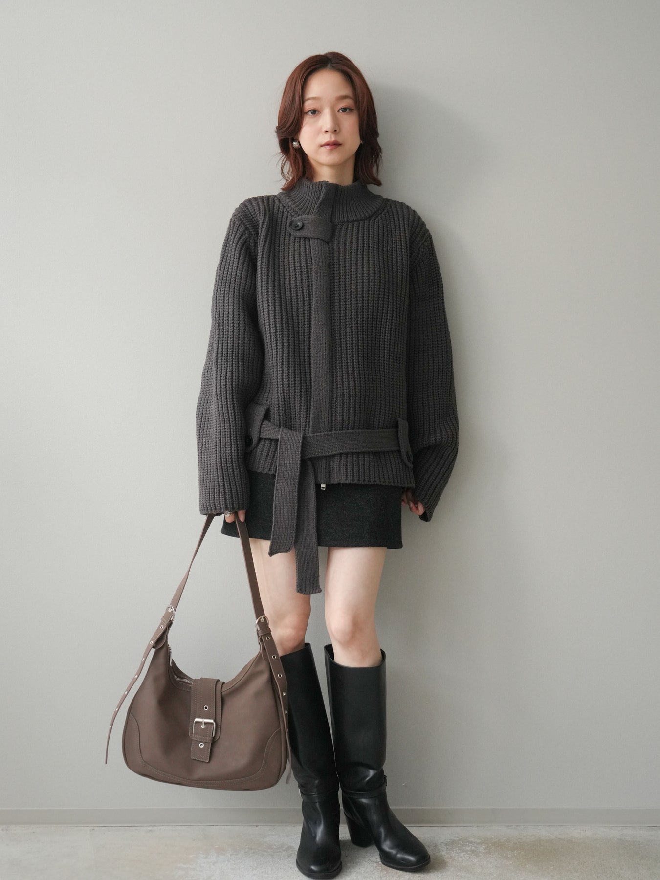 存在感のある畦編みデザインがシルエットを引き立てるボトルネックZIPニットカーディガン。程よく高さのあるネックとフロントのジップディテールが洗練された印象を与え、羽織りとしてもトップスとしても着回しやすい一枚です。立体感のある肉厚ニットながら重たさを感じにくいバランスで仕上げており、デイリーコーデに取り入れるだけでスタイルに奥行きをプラス。ウエストベルト付きでシルエット調整もでき、さまざまな着こなしを楽しめます。 ※ボトムス、キャミソール(インナー)以外の商品は一律でインナーは付属していません。