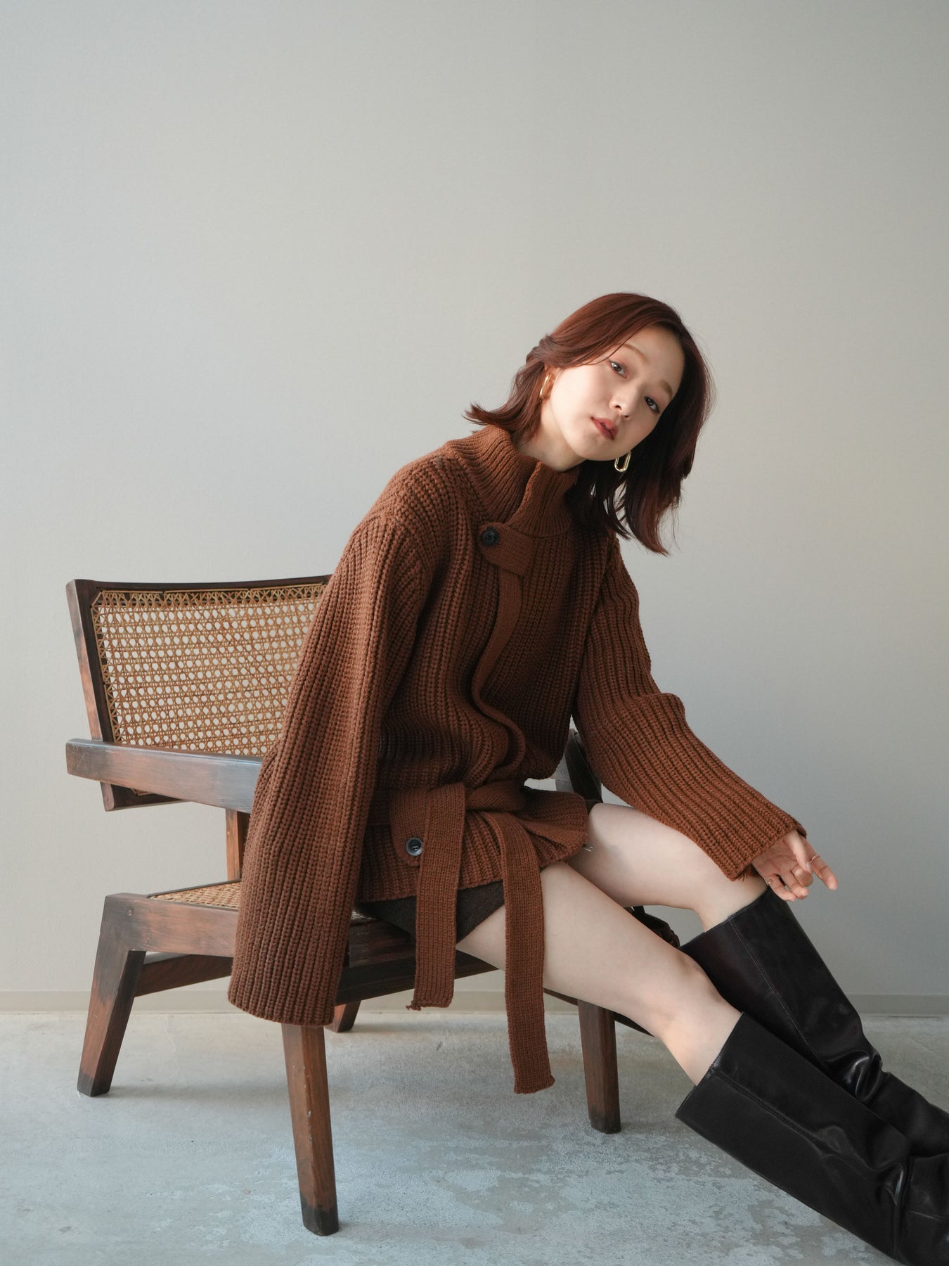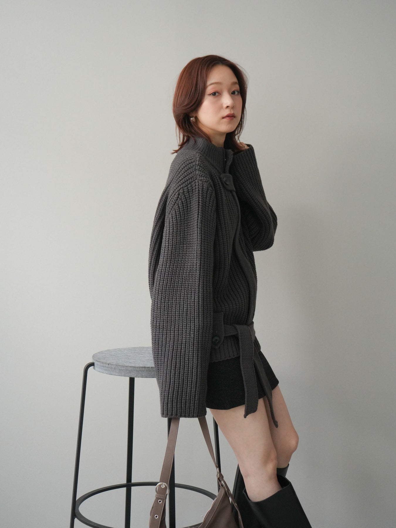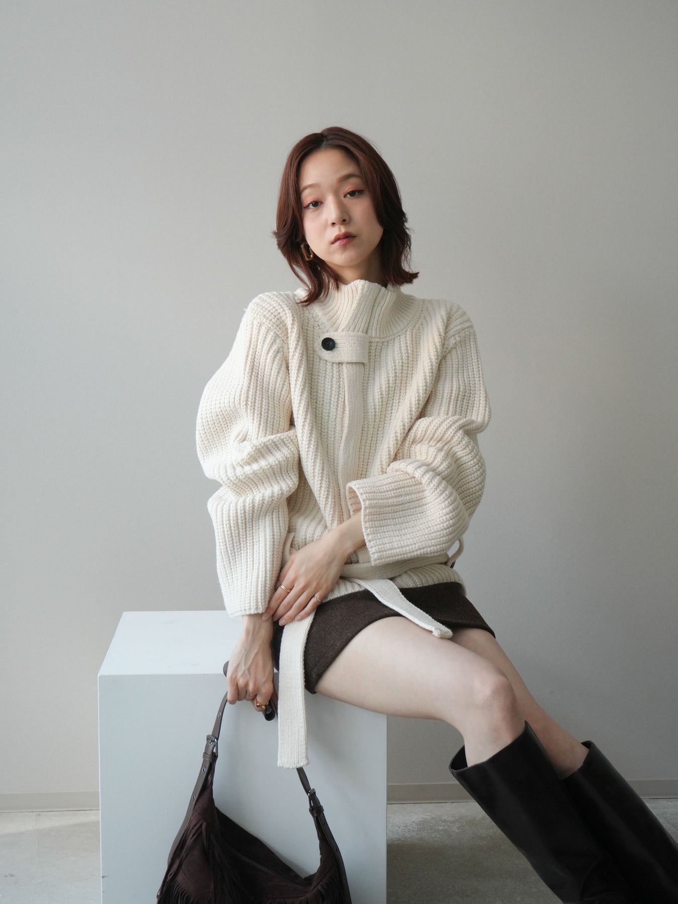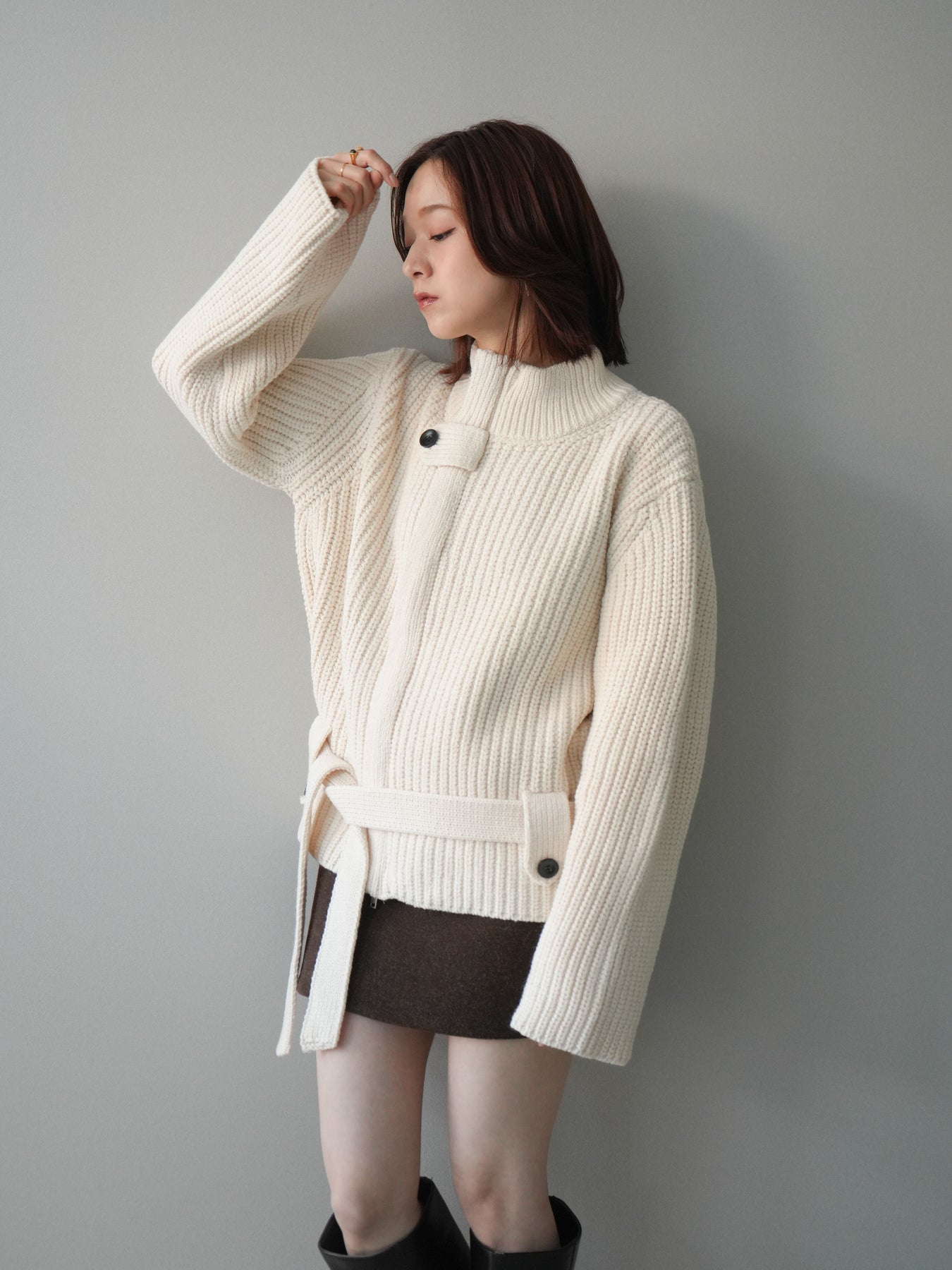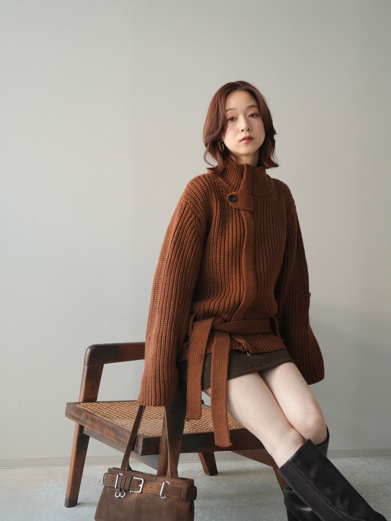 ◆ [予約]畦編みボトルネックZIPニットカーディガン