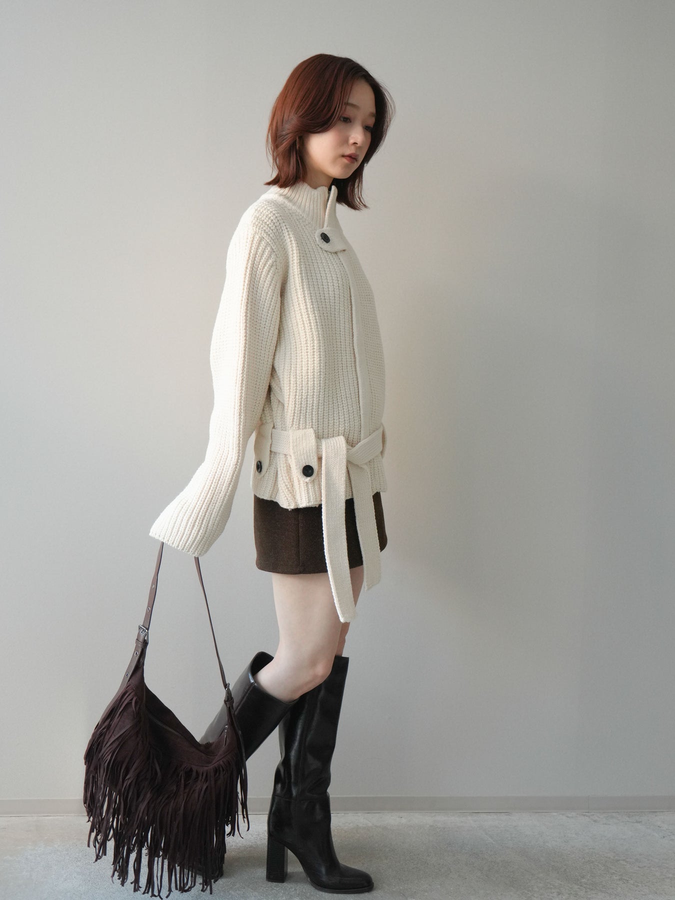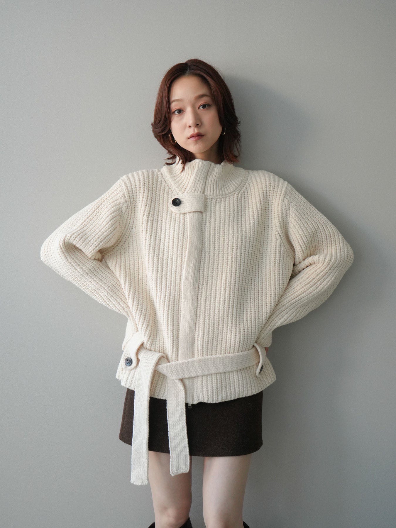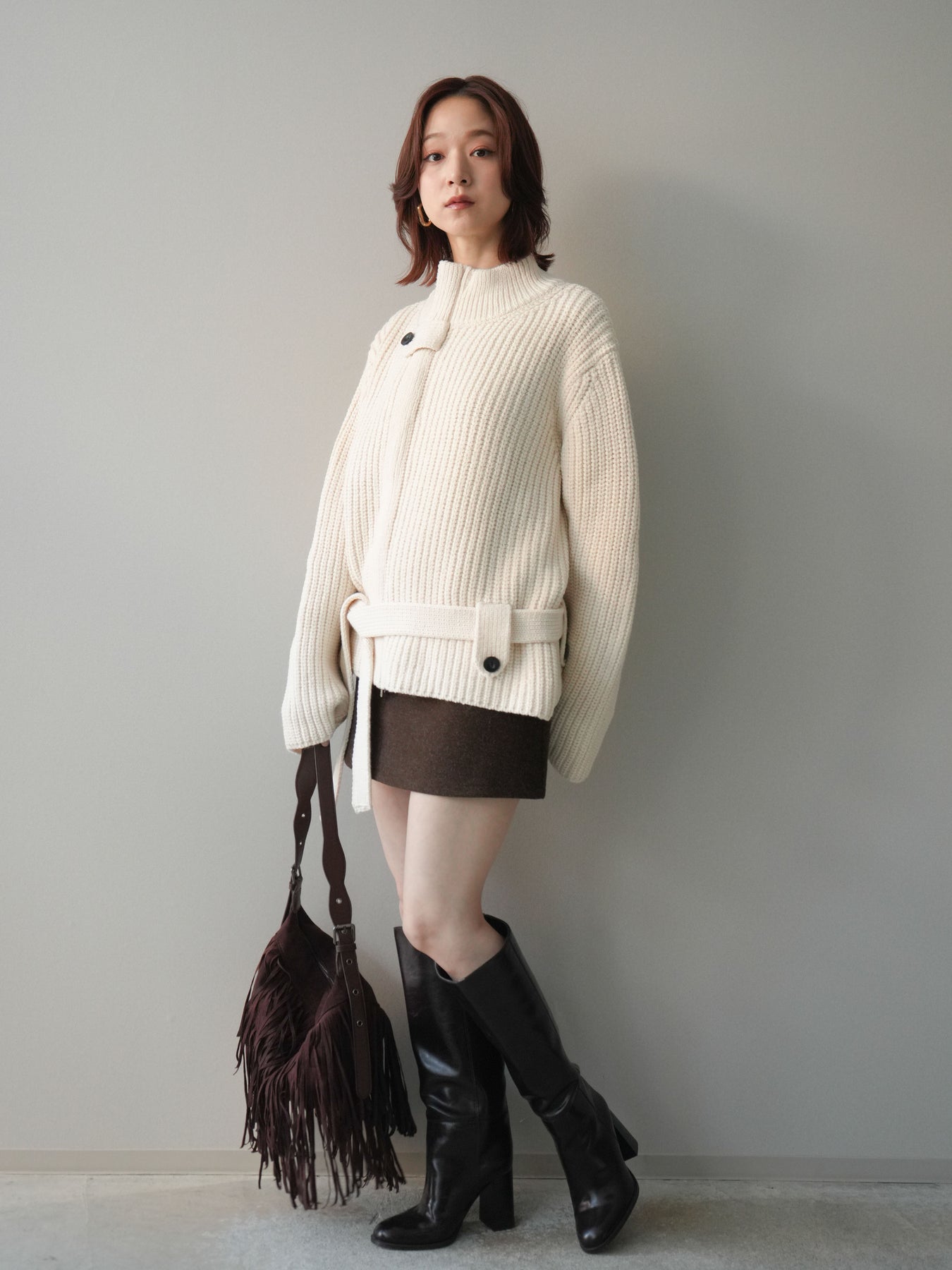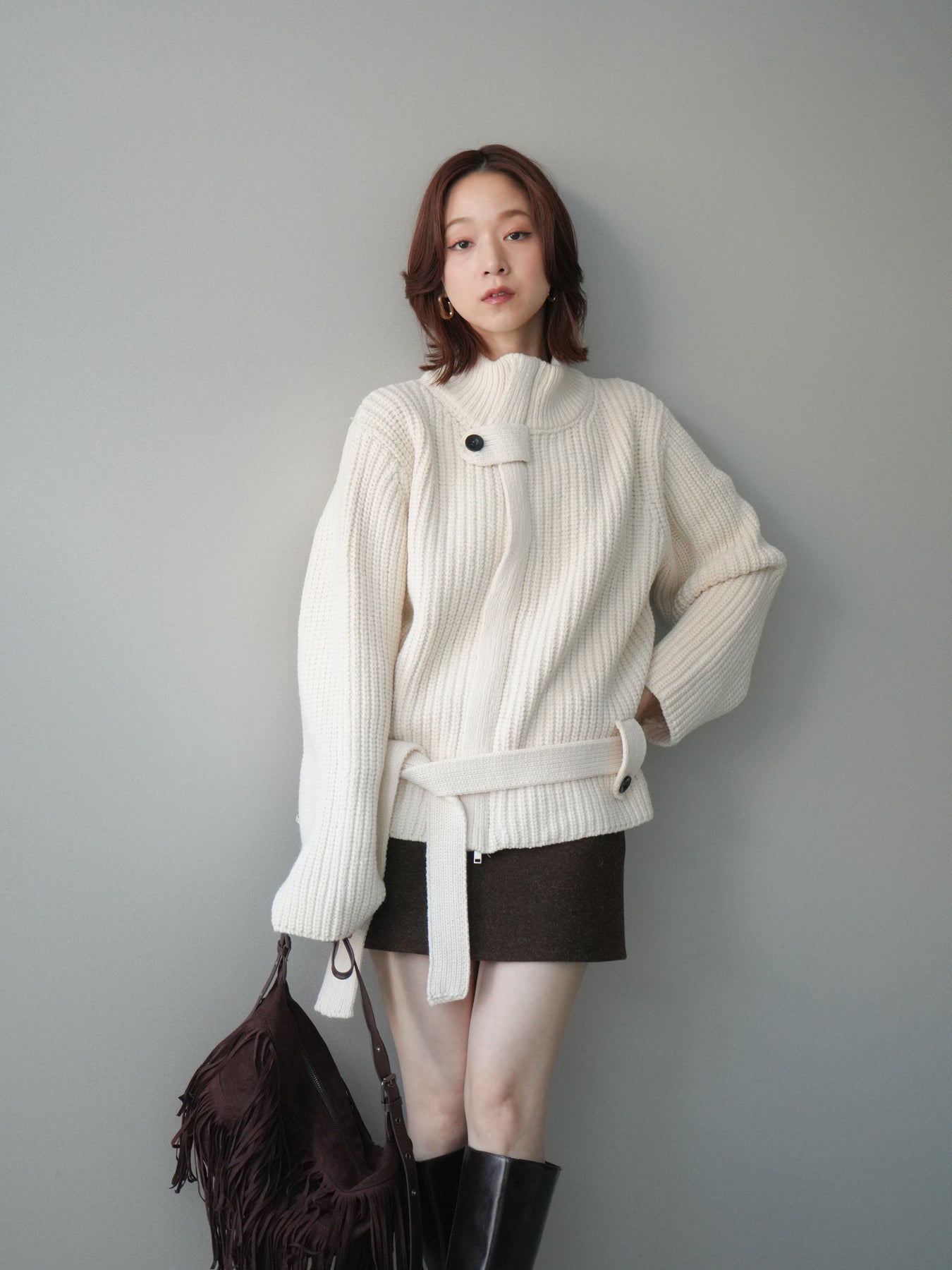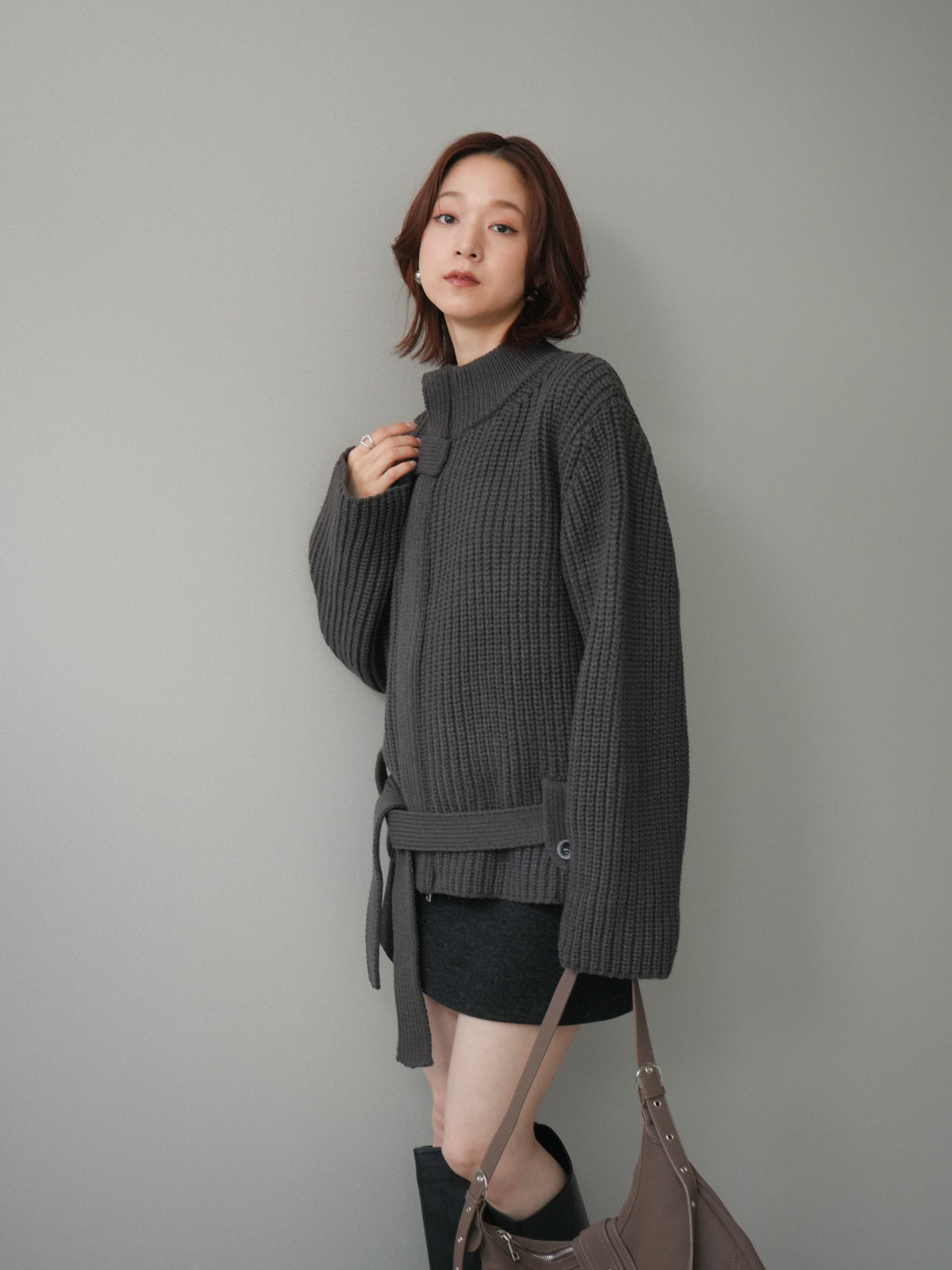 ◆ [予約]畦編みボトルネックZIPニットカーディガン