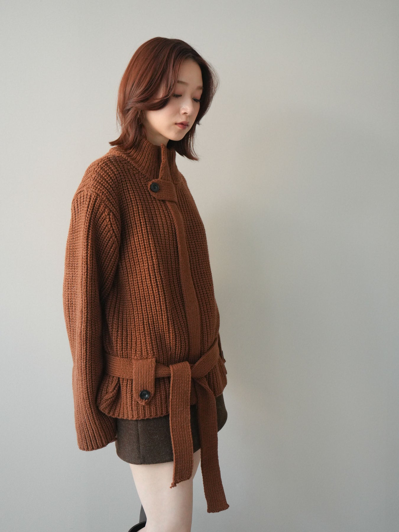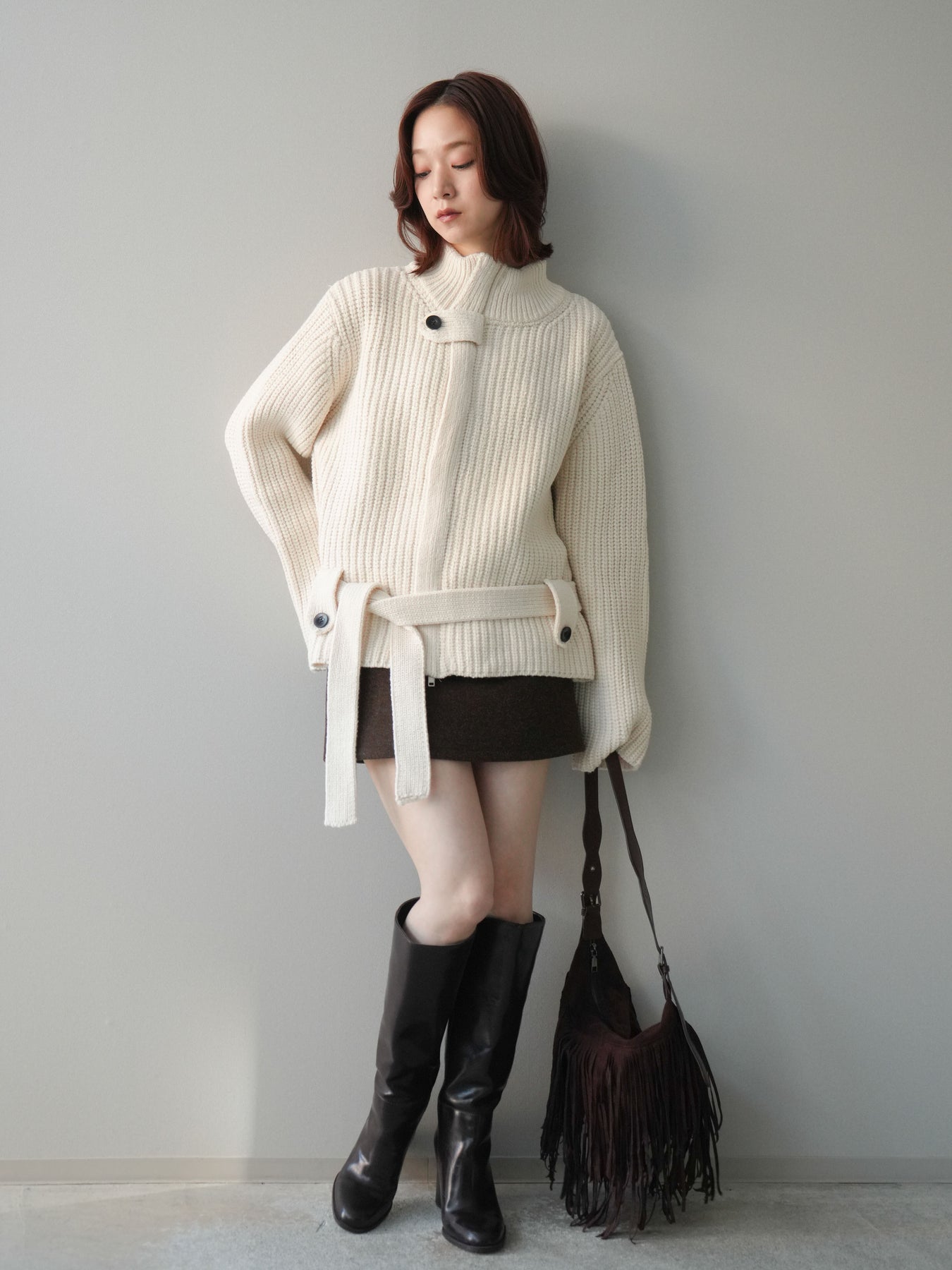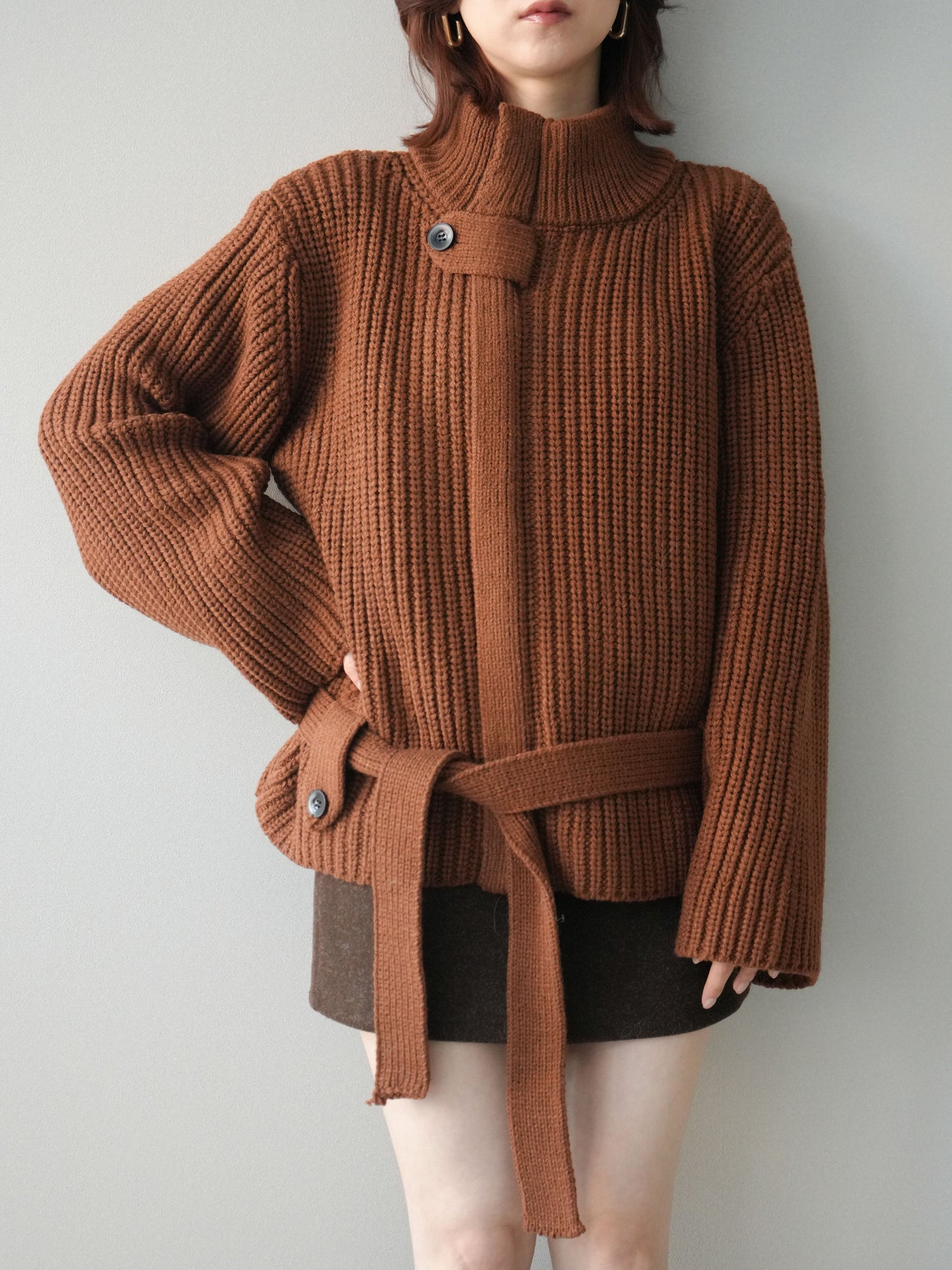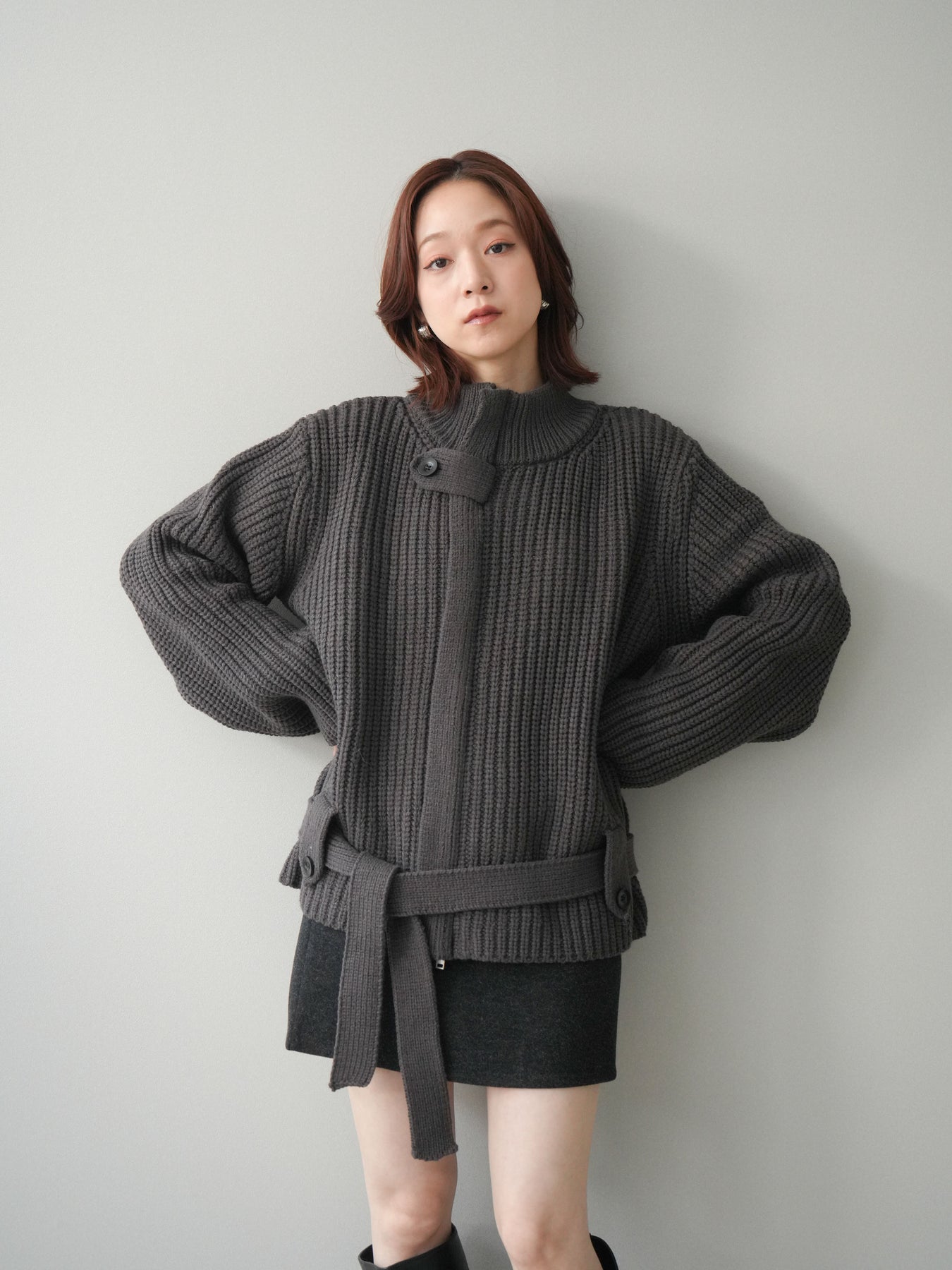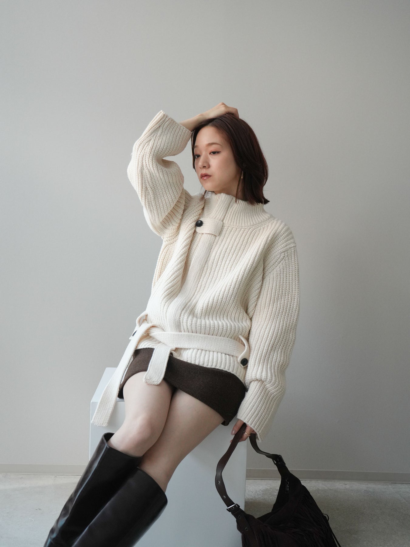 ◆ [予約]畦編みボトルネックZIPニットカーディガン