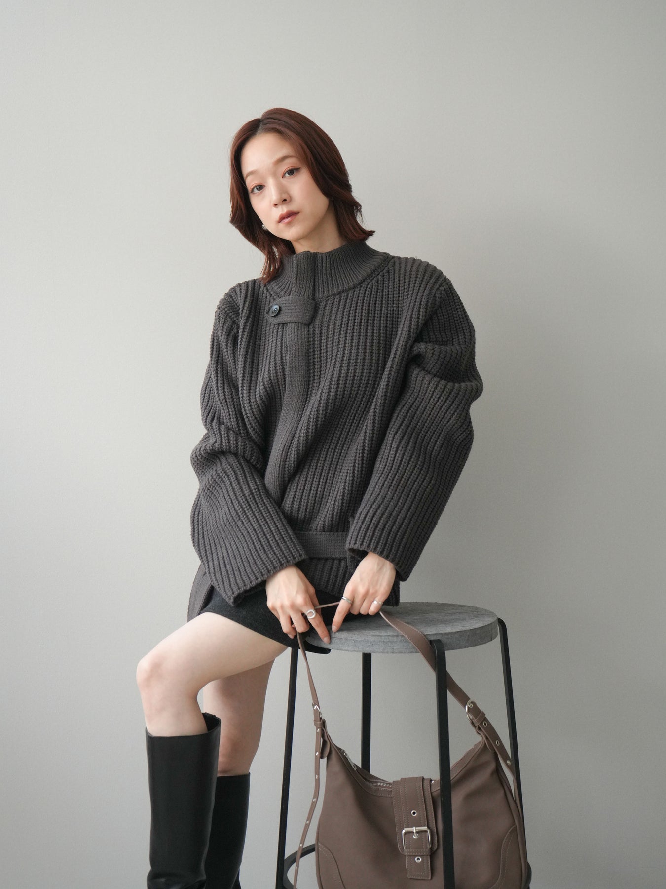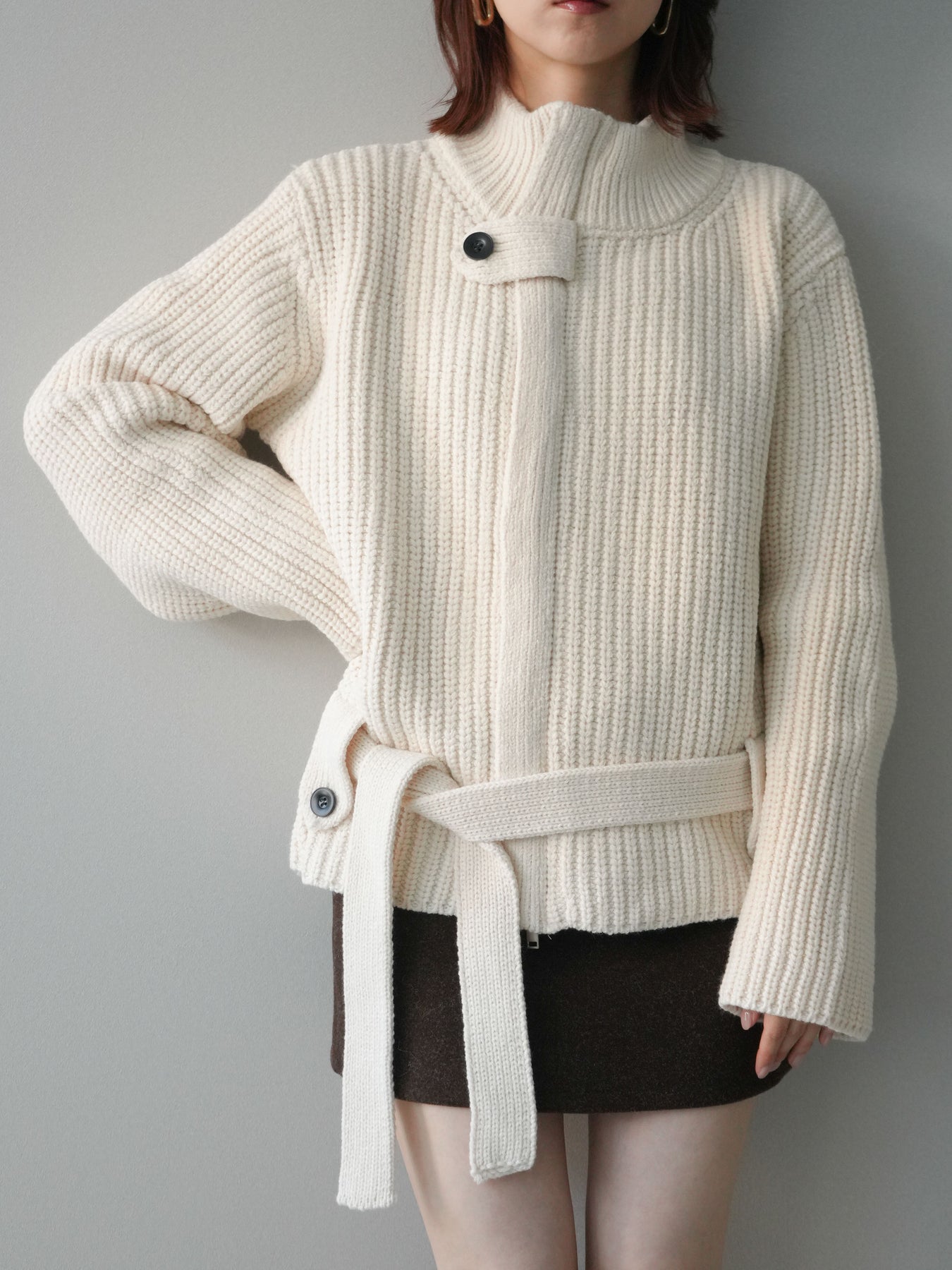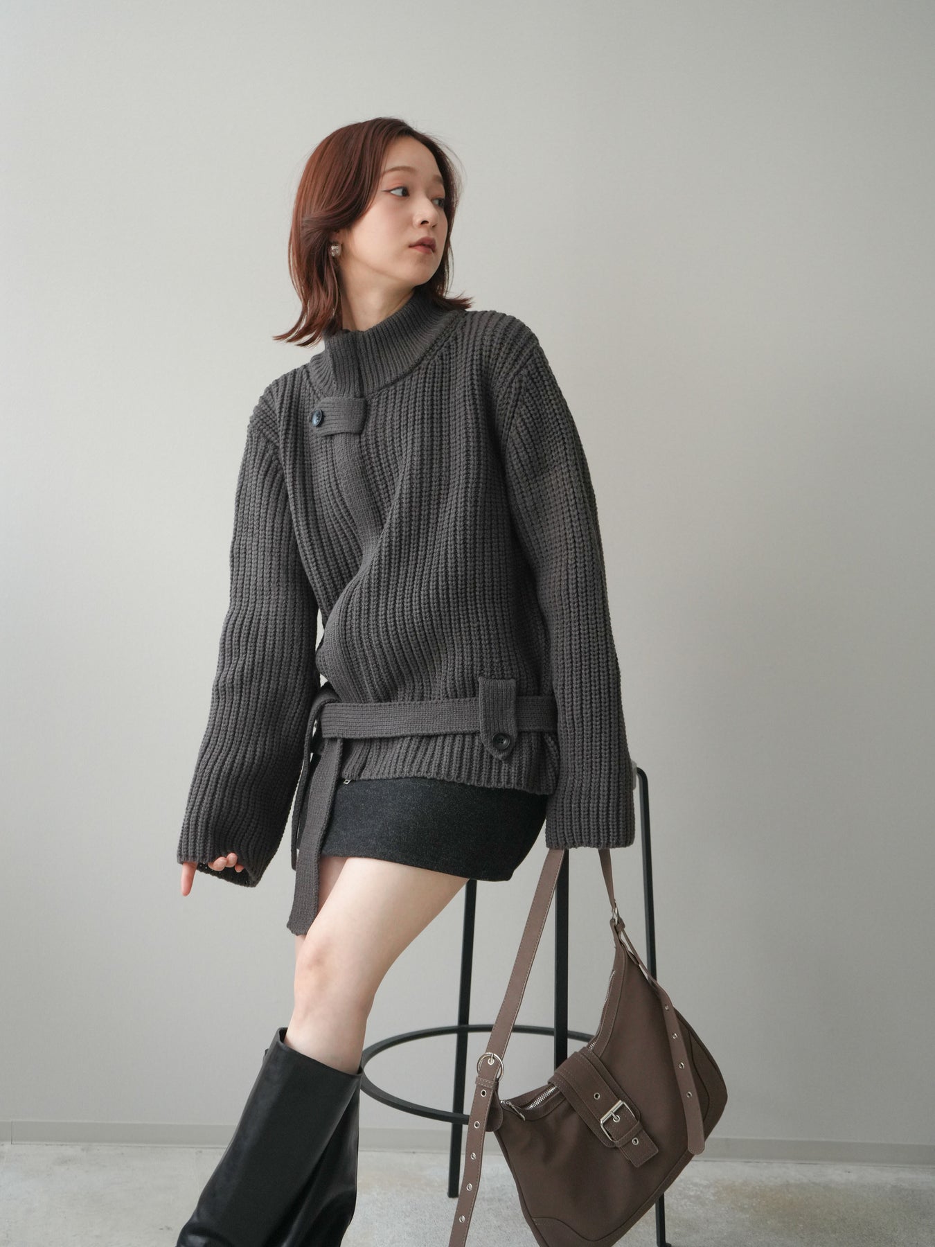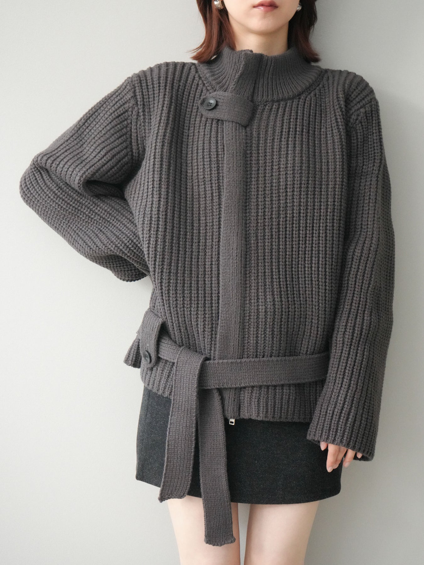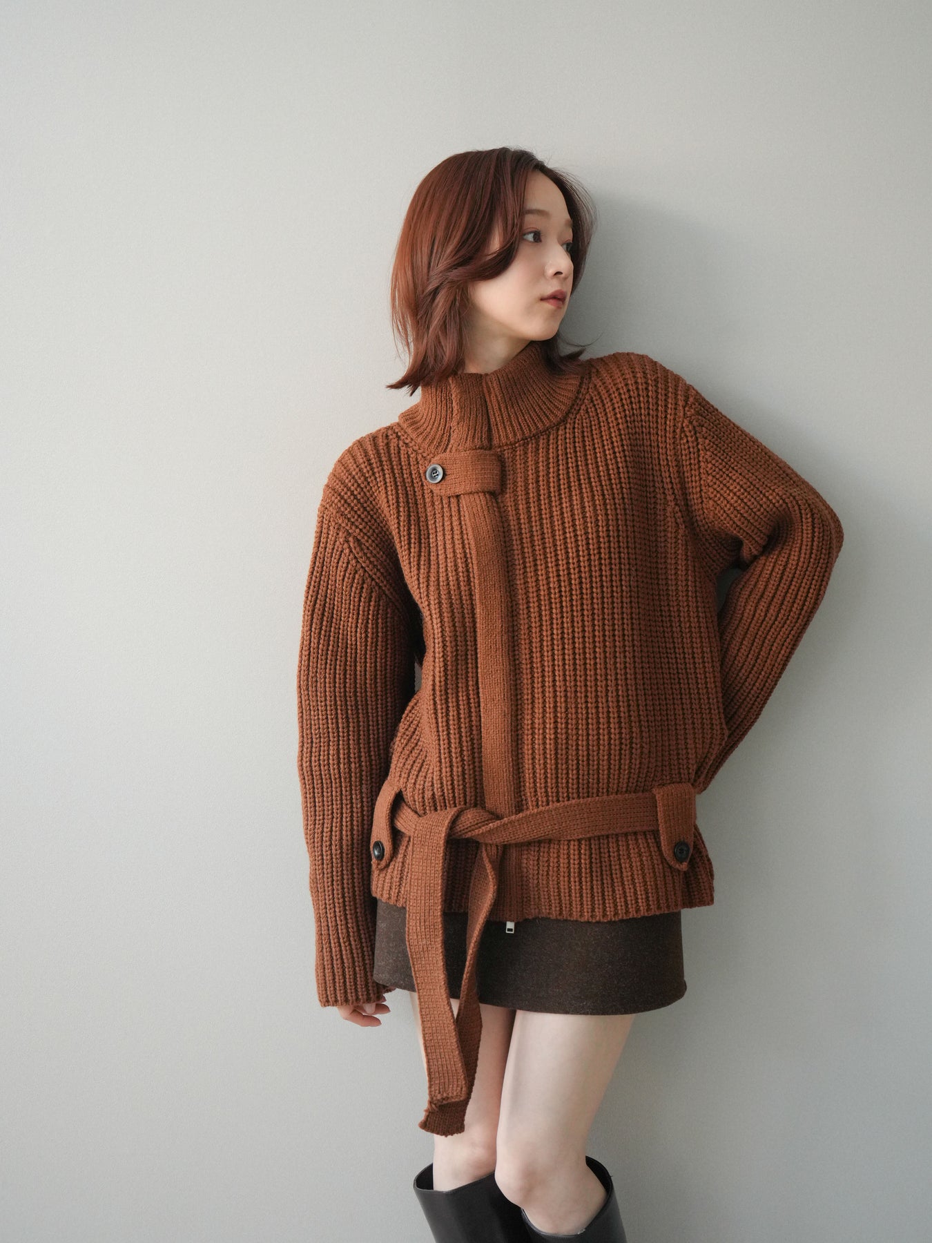 ◆ [予約]畦編みボトルネックZIPニットカーディガン