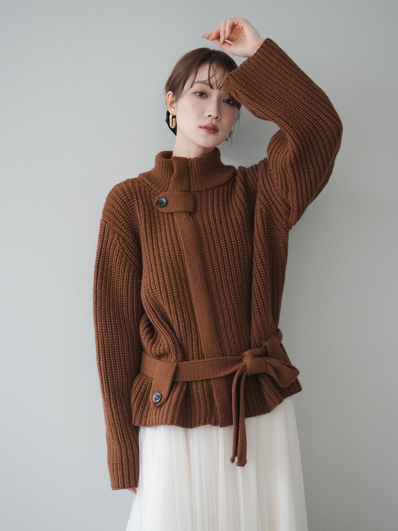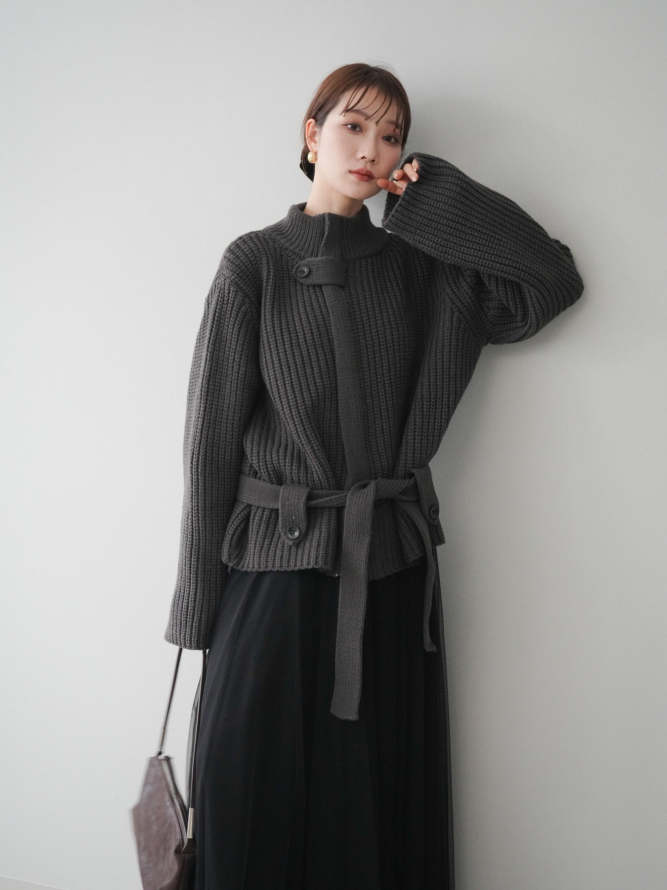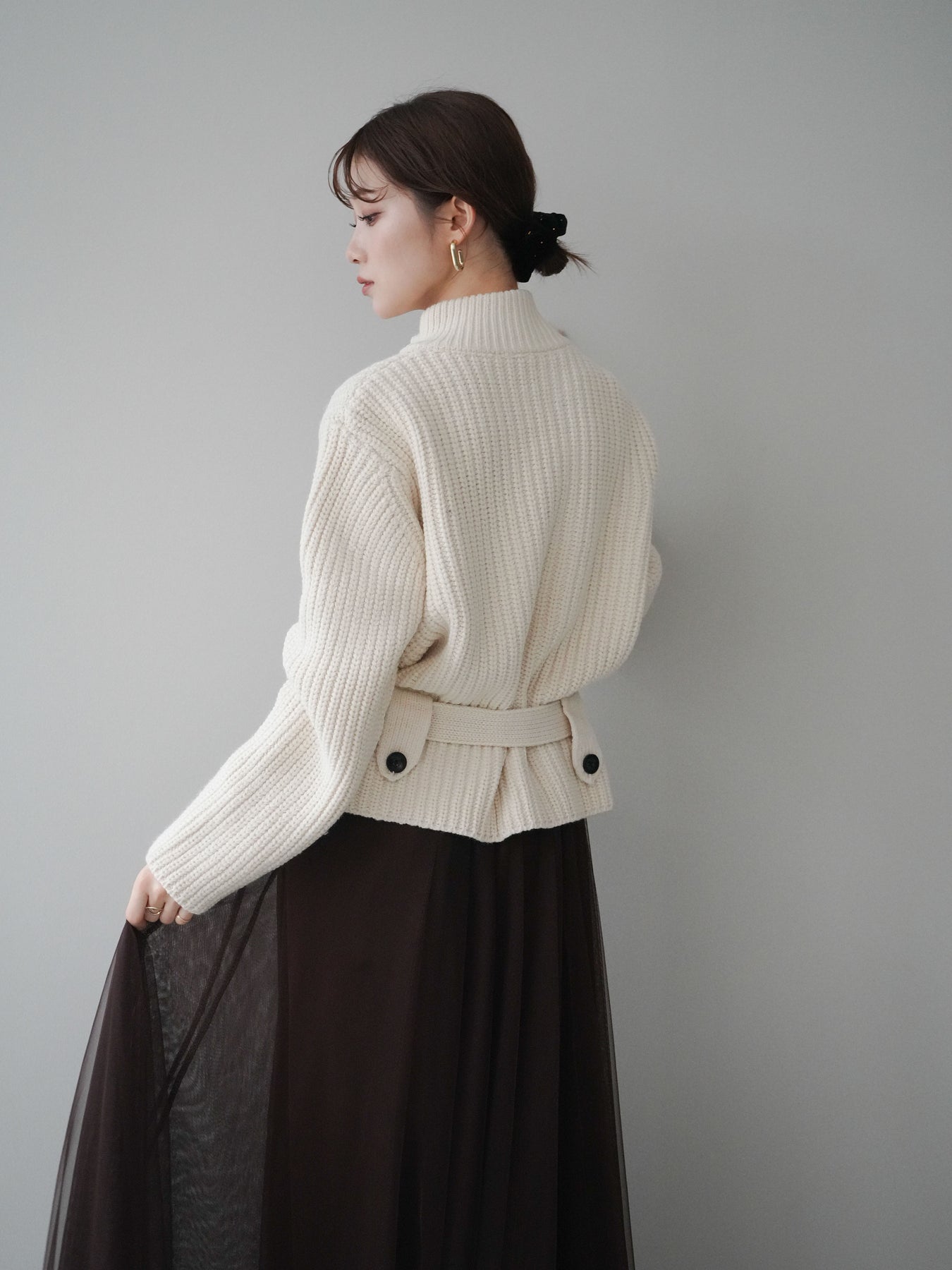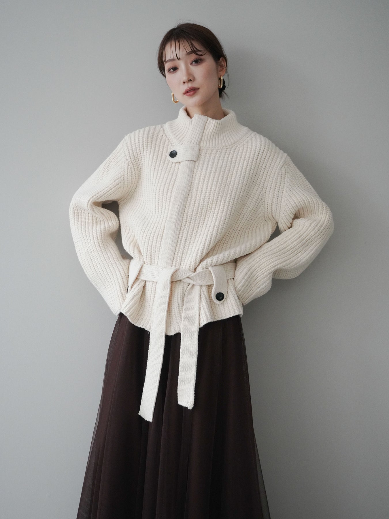 ◆ [予約]畦編みボトルネックZIPニットカーディガン