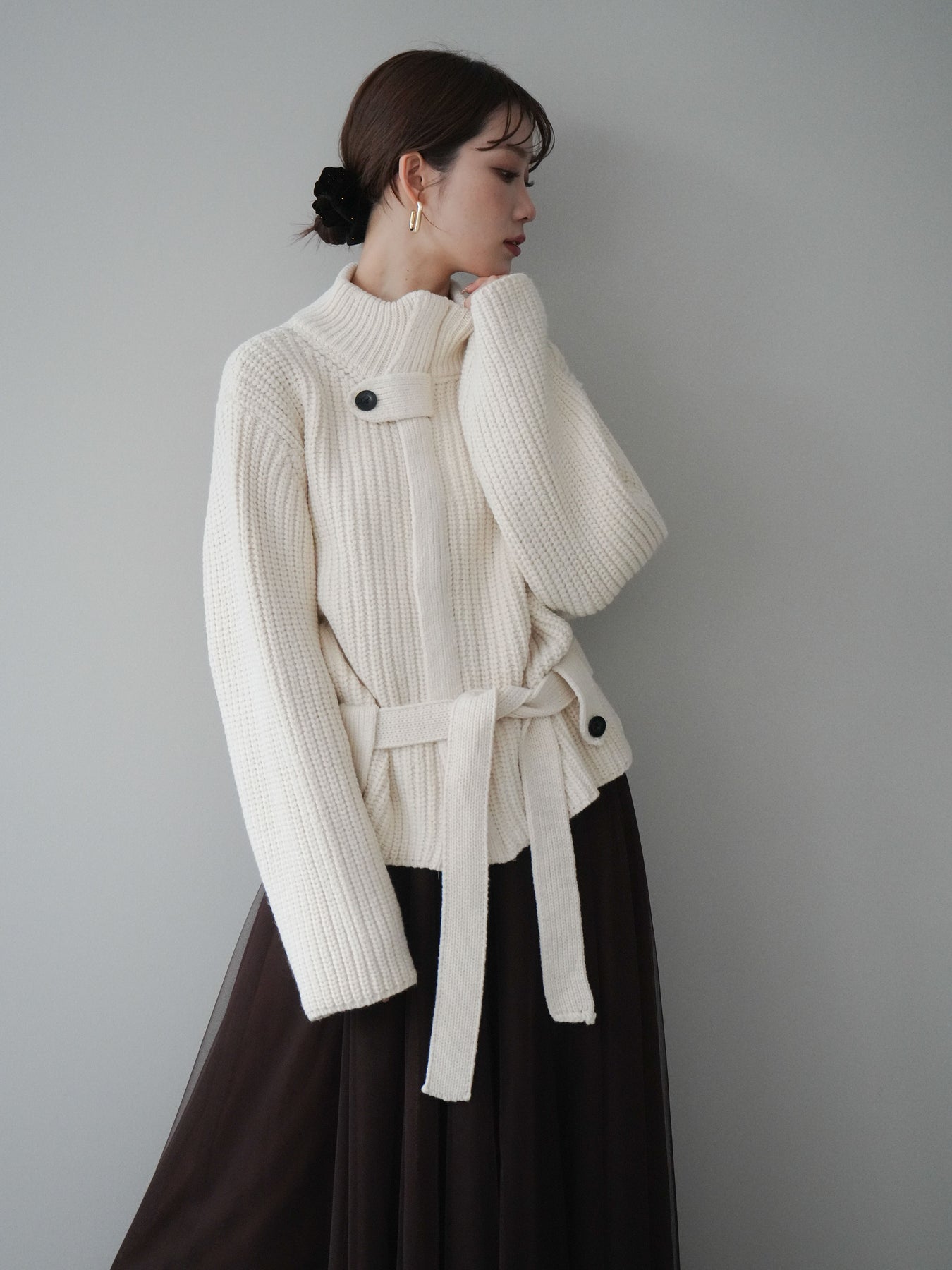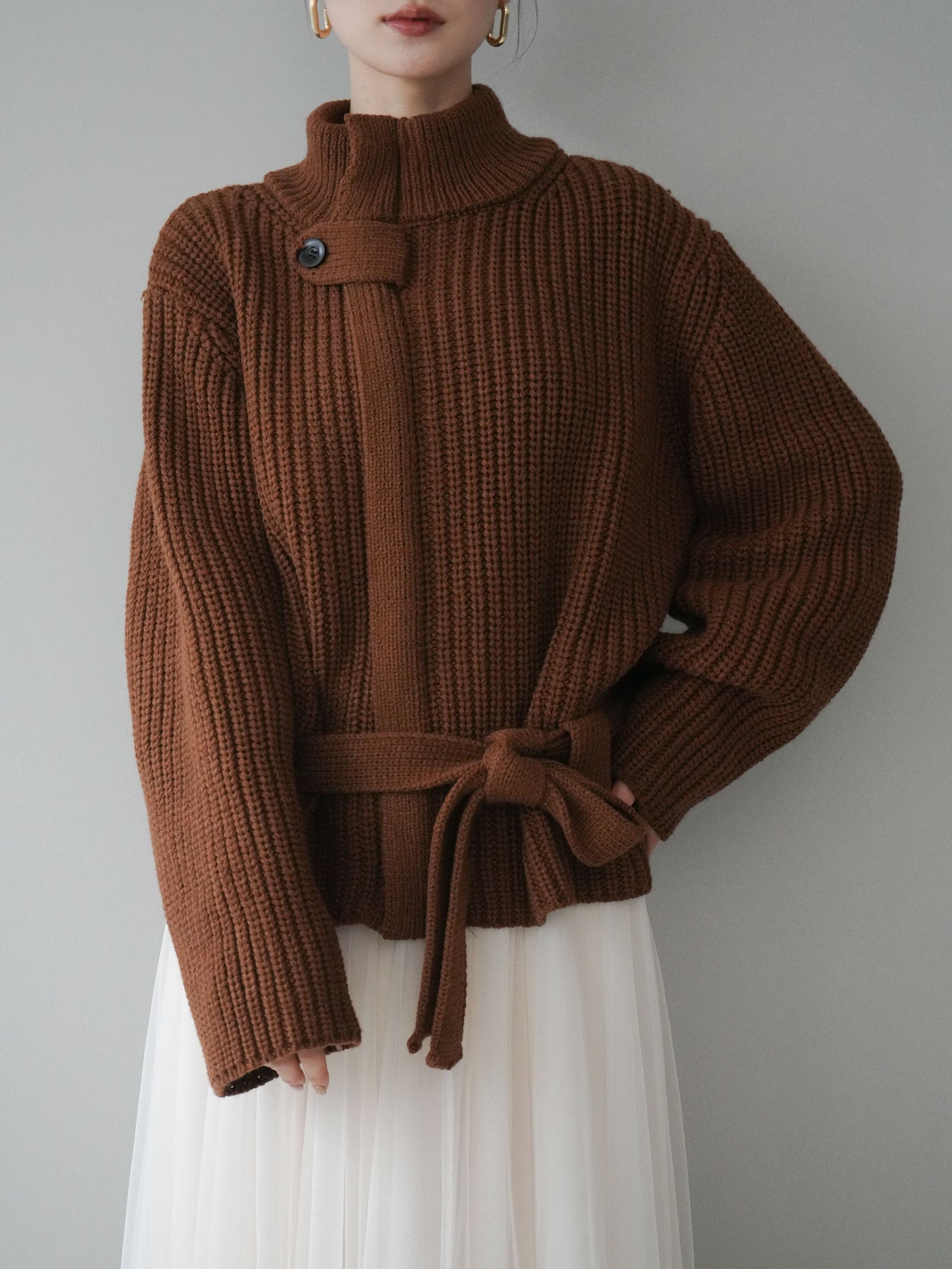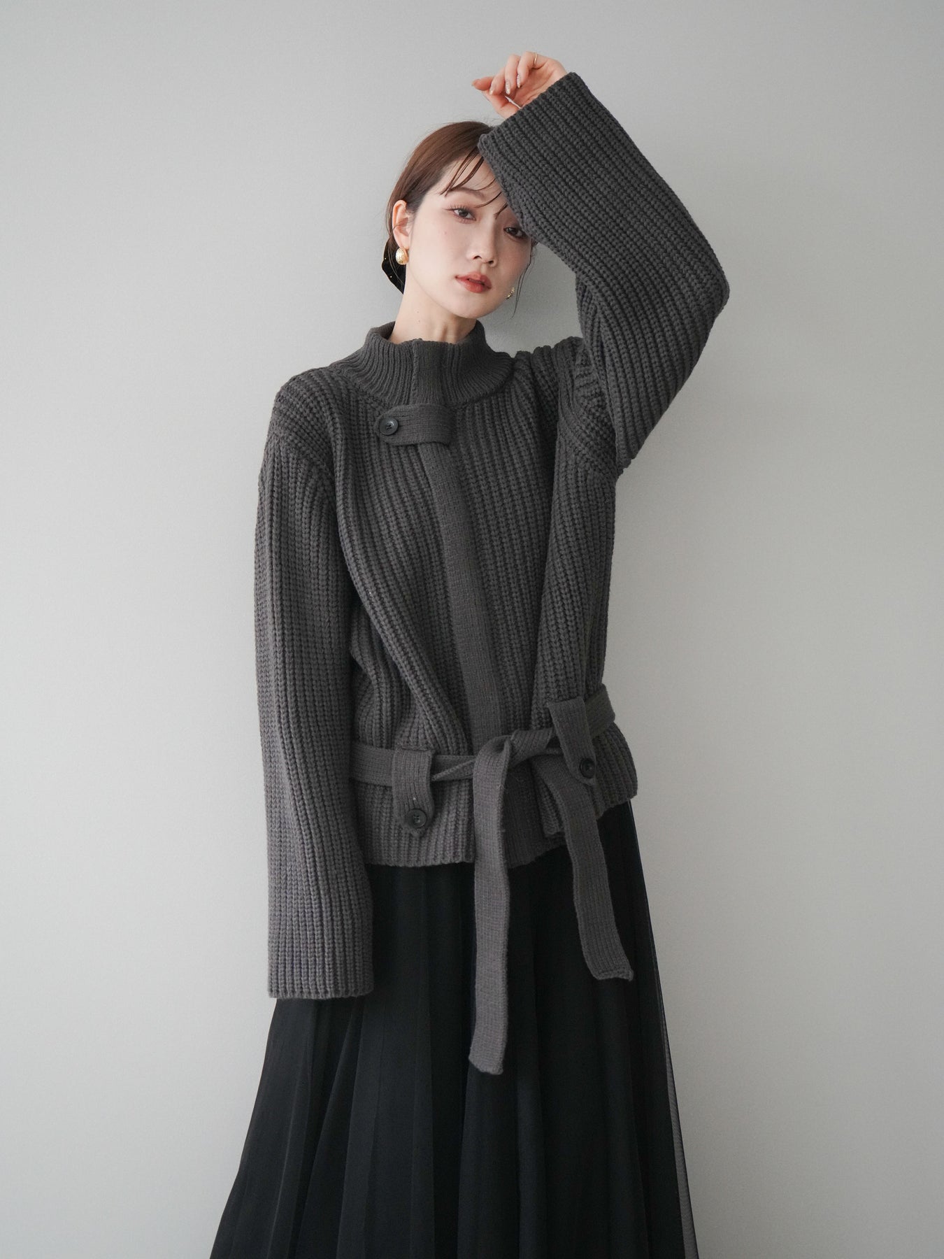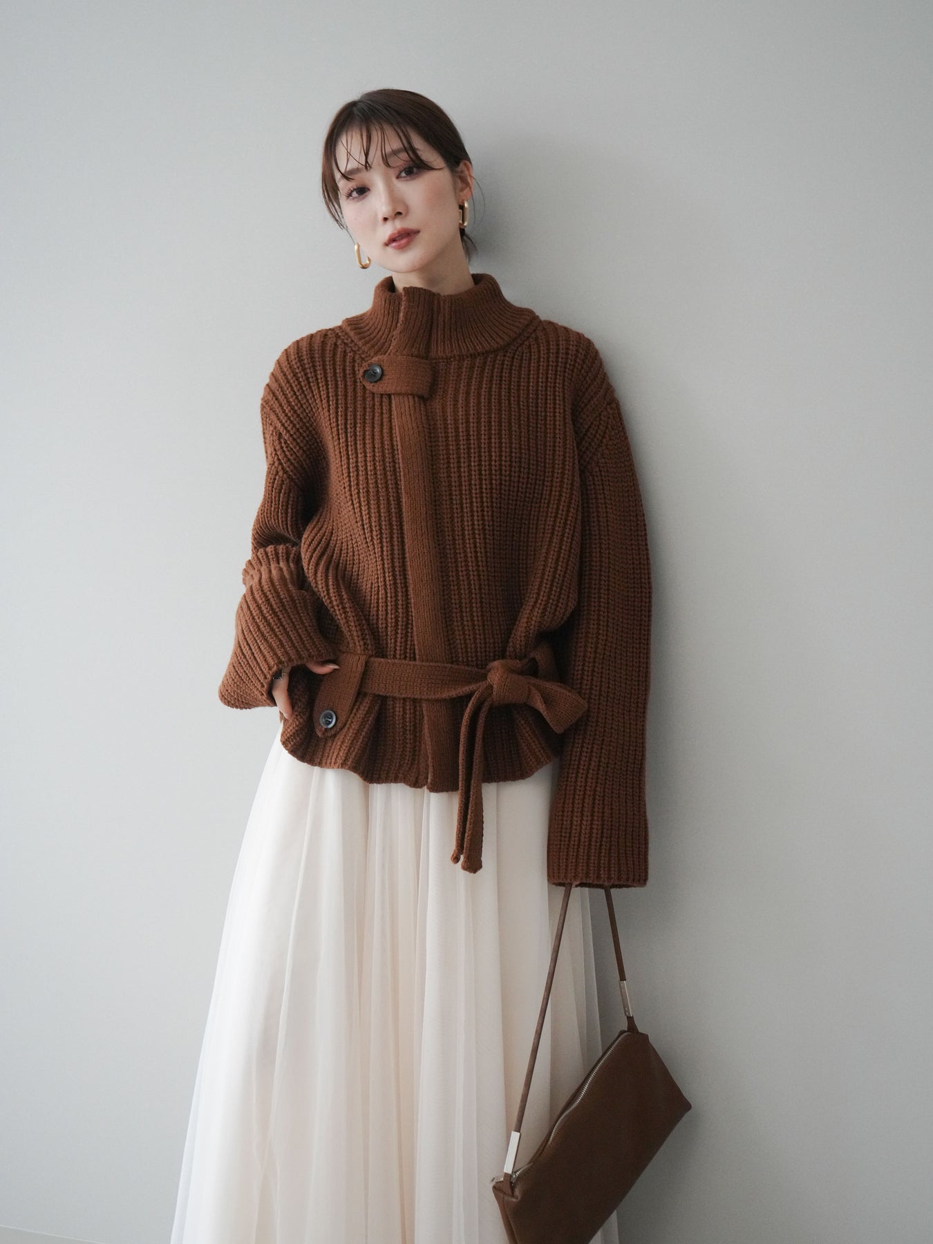 ◆ [予約]畦編みボトルネックZIPニットカーディガン