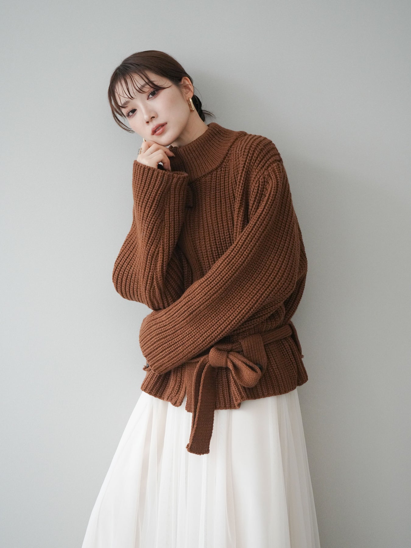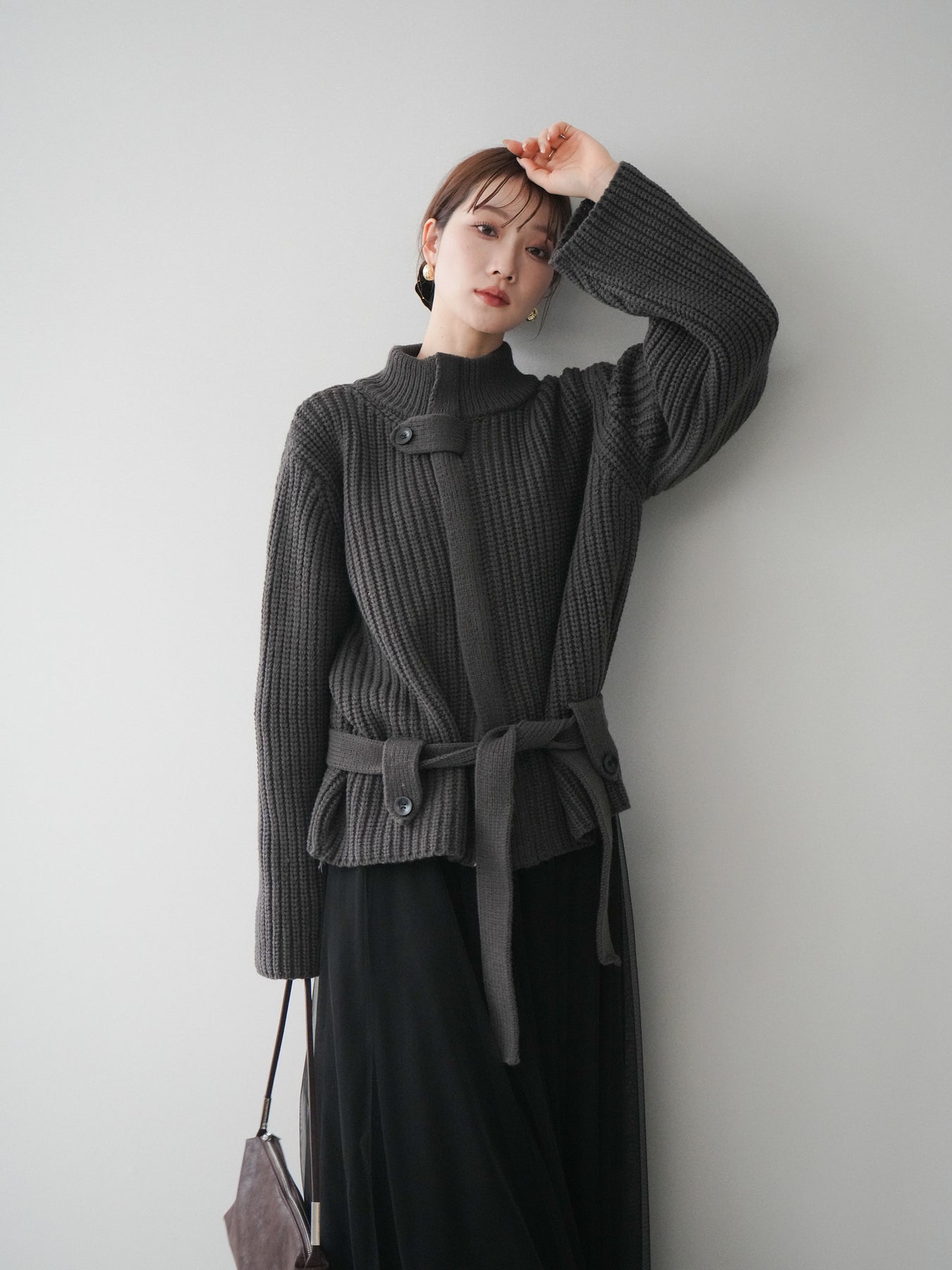 存在感のある畦編みデザインがシルエットを引き立てるボトルネックZIPニットカーディガン。程よく高さのあるネックとフロントのジップディテールが洗練された印象を与え、羽織りとしてもトップスとしても着回しやすい一枚です。立体感のある肉厚ニットながら重たさを感じにくいバランスで仕上げており、デイリーコーデに取り入れるだけでスタイルに奥行きをプラス。ウエストベルト付きでシルエット調整もでき、さまざまな着こなしを楽しめます。 ※ボトムス、キャミソール(インナー)以外の商品は一律でインナーは付属していません。