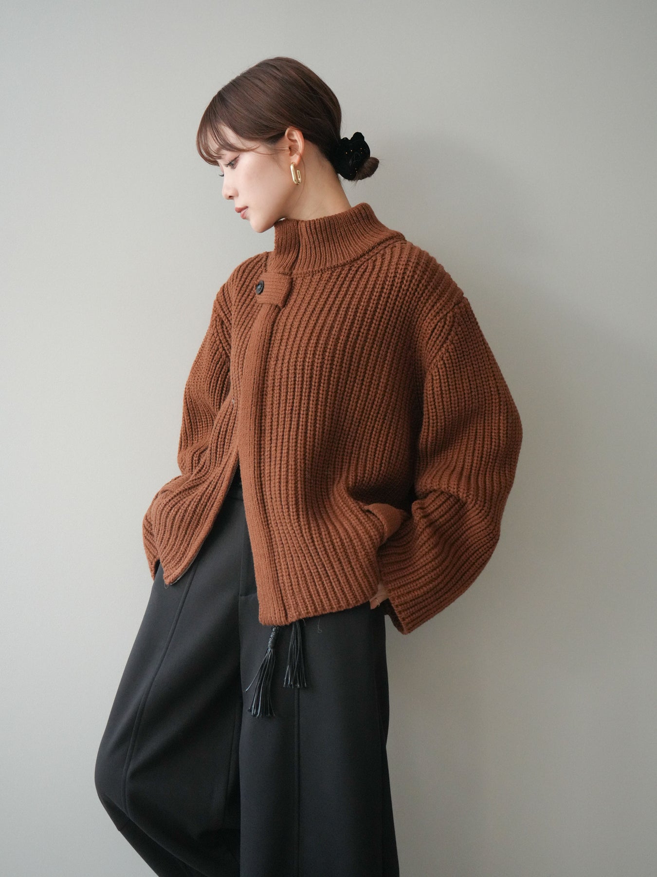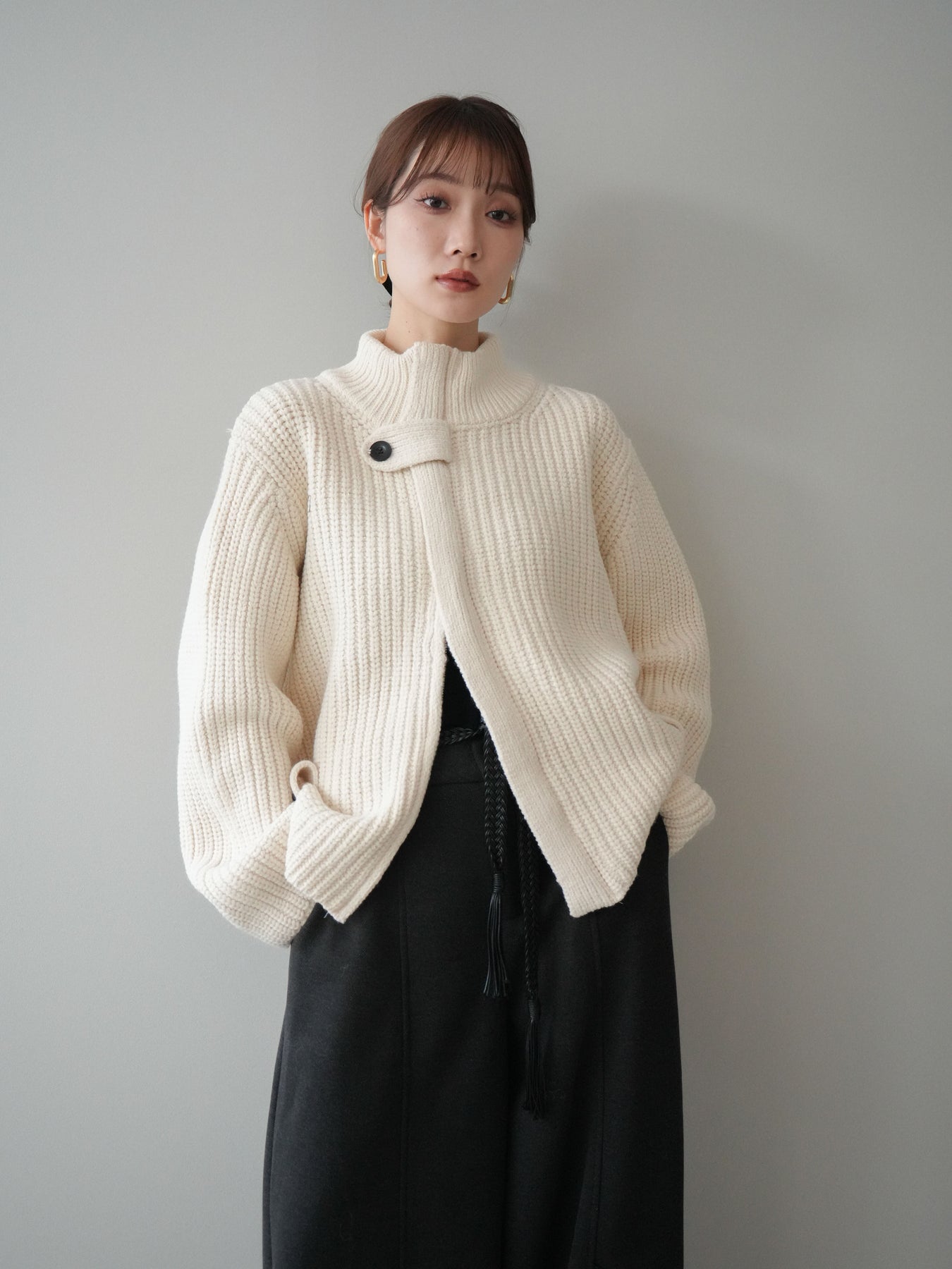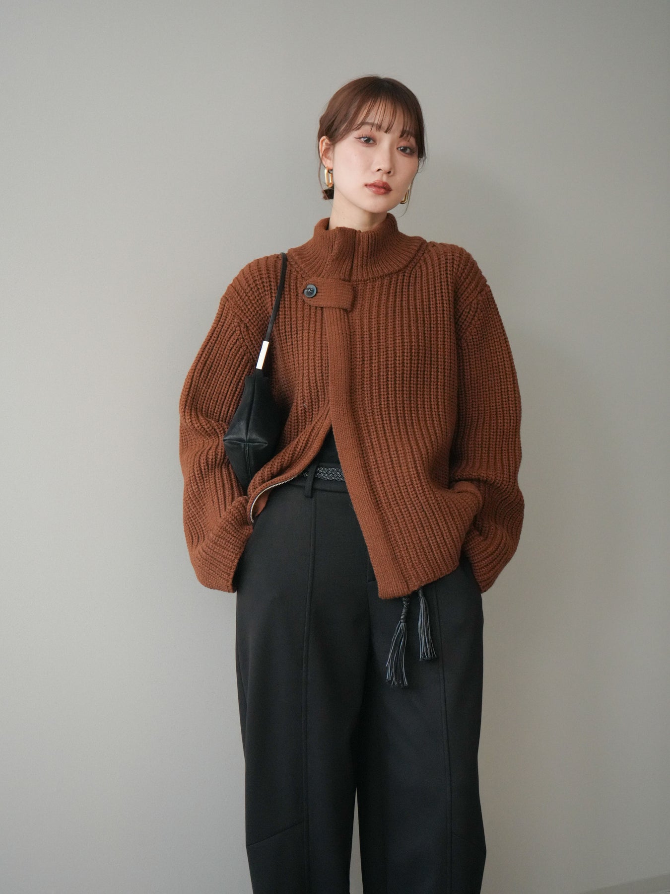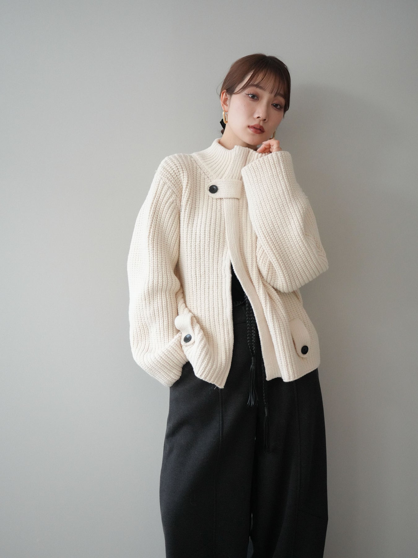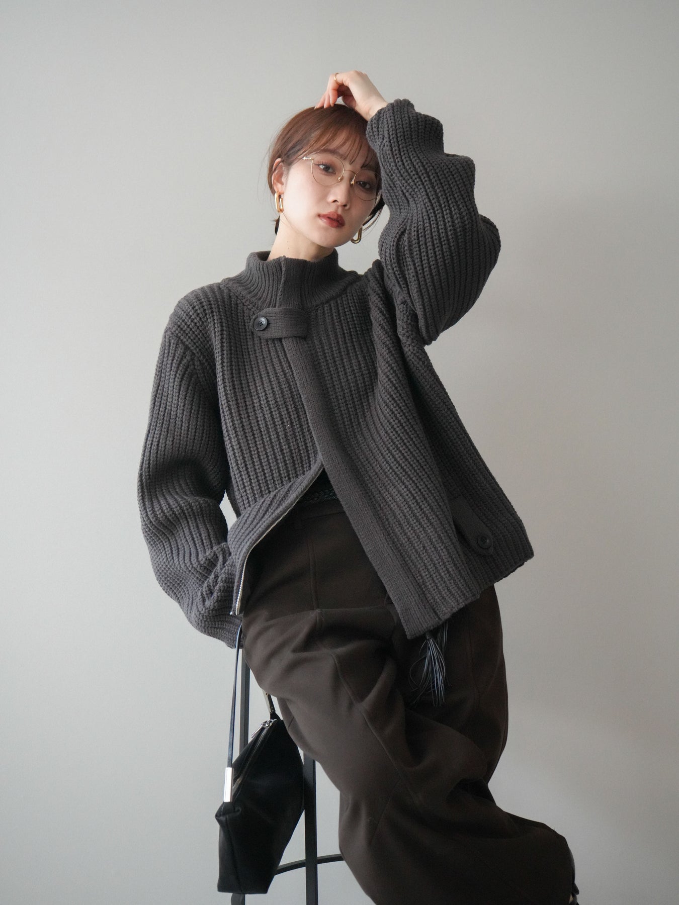 ◆ [予約]畦編みボトルネックZIPニットカーディガン