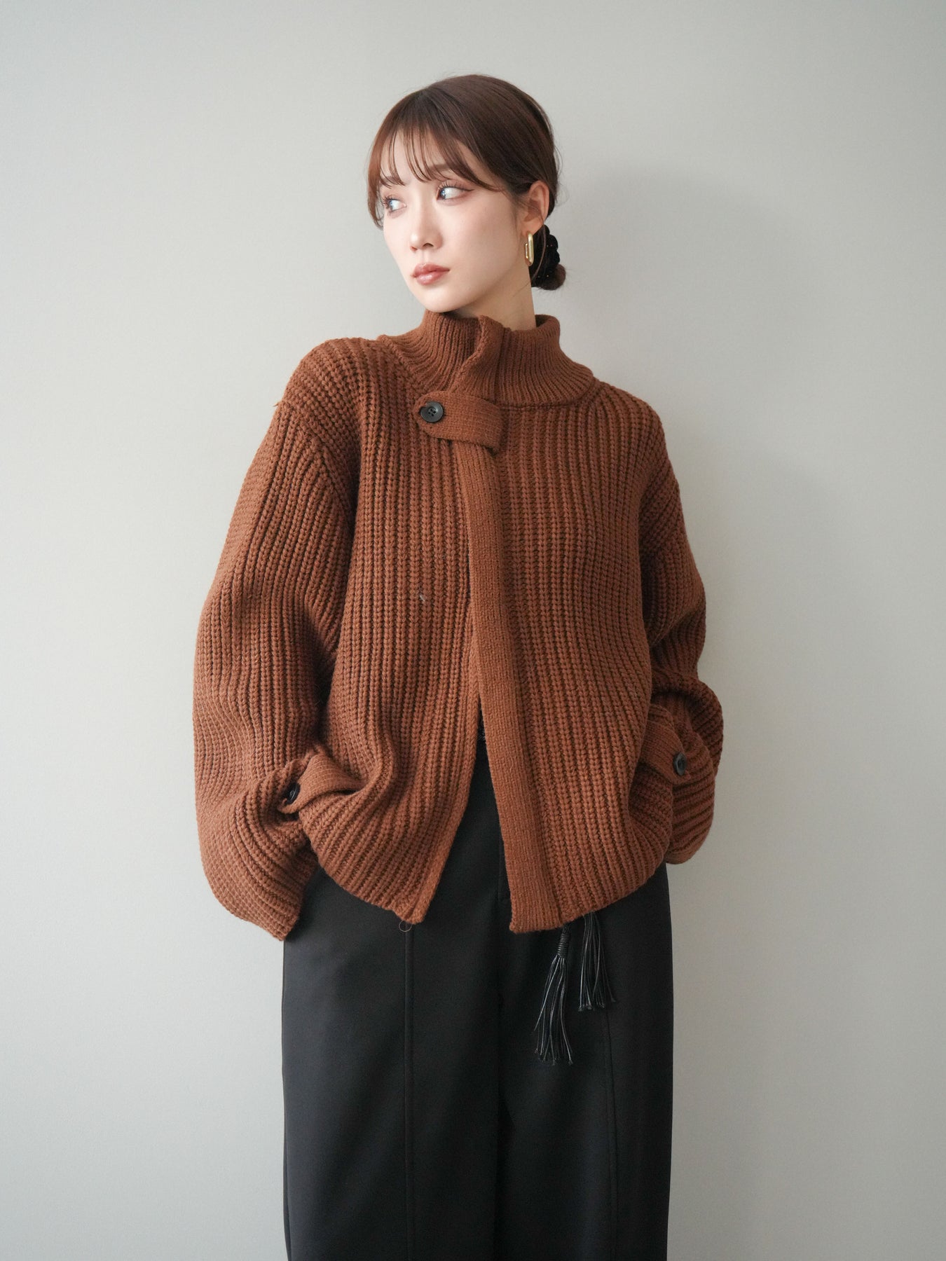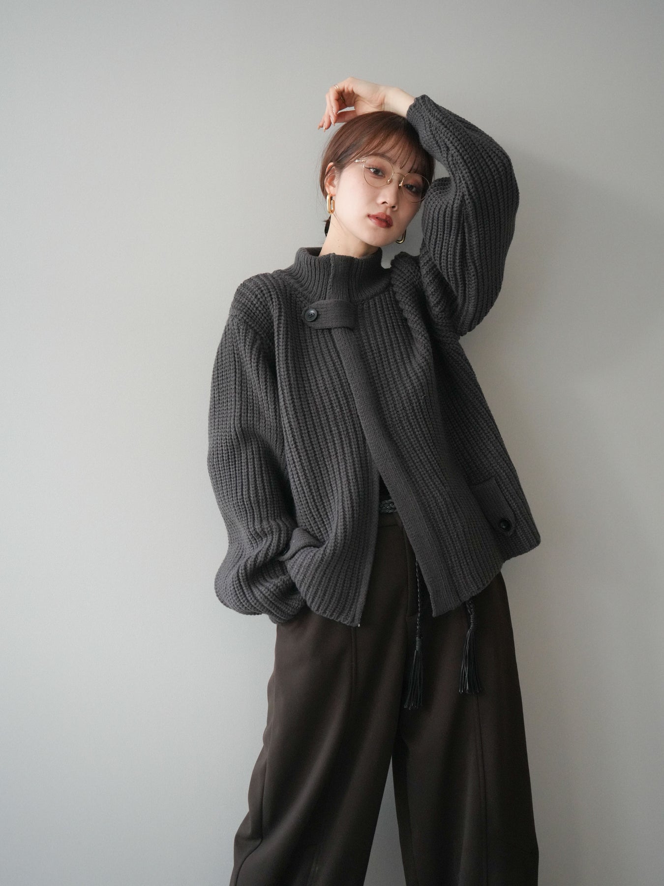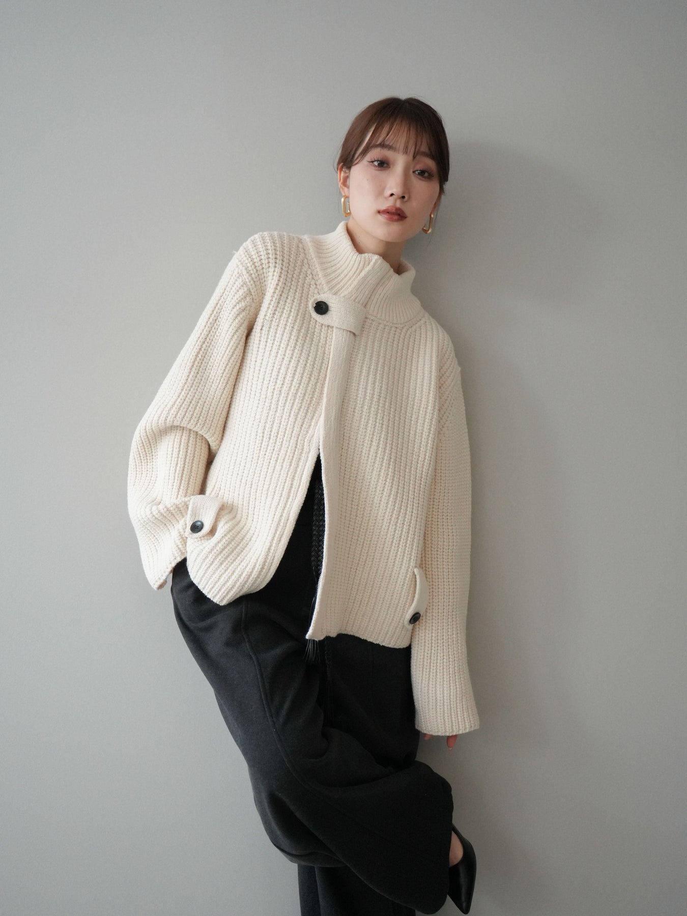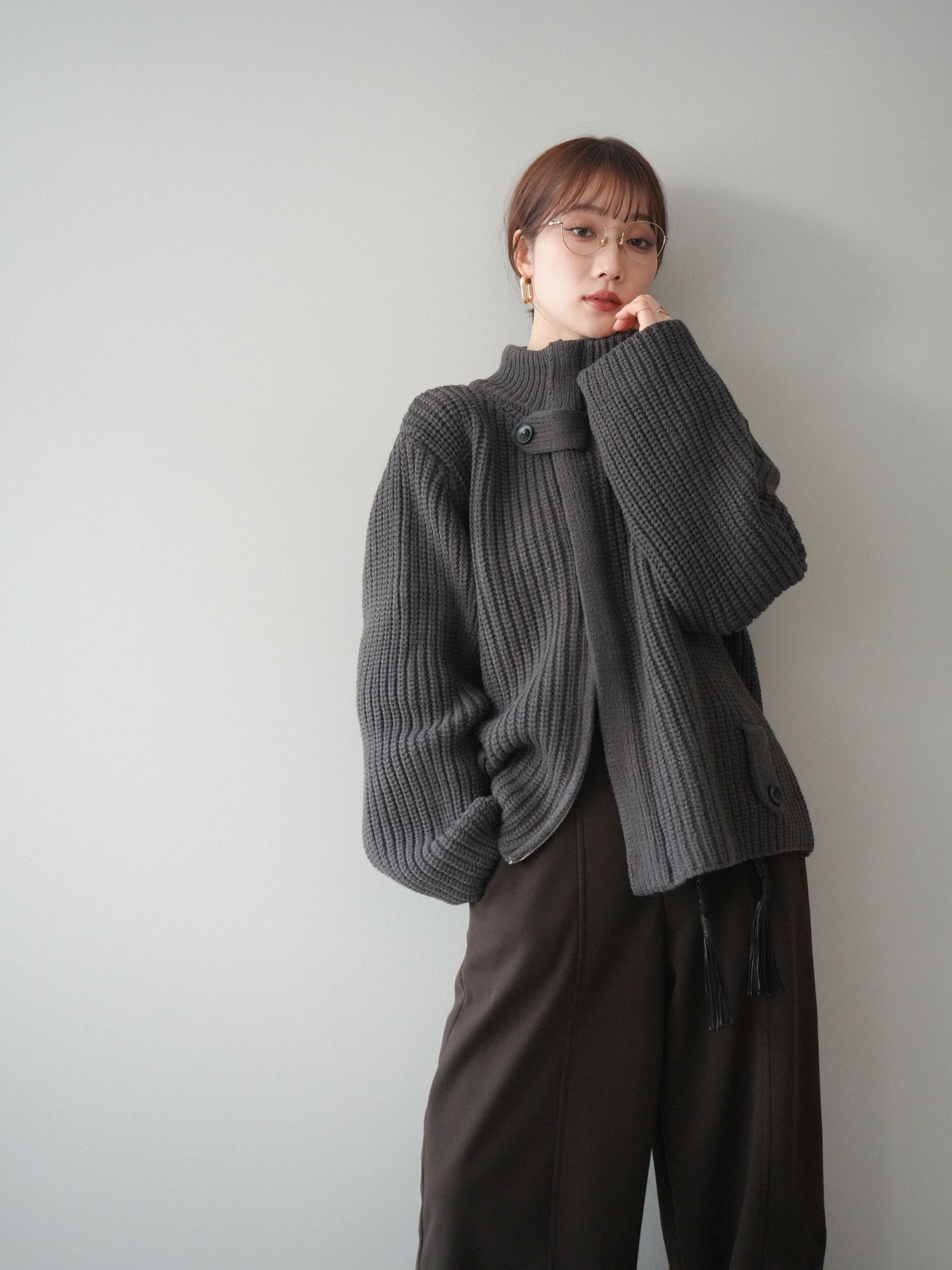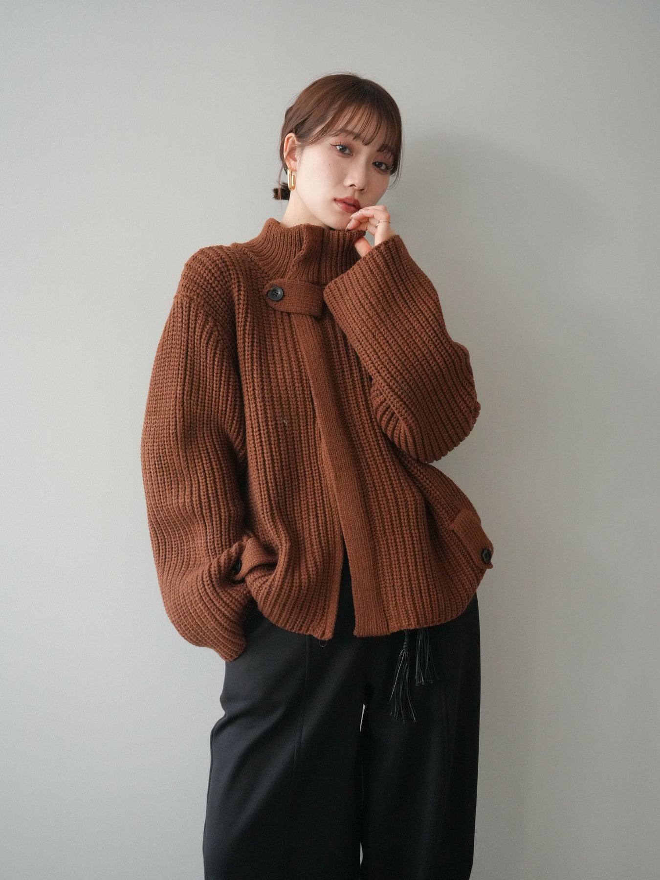 ◆ [予約]畦編みボトルネックZIPニットカーディガン