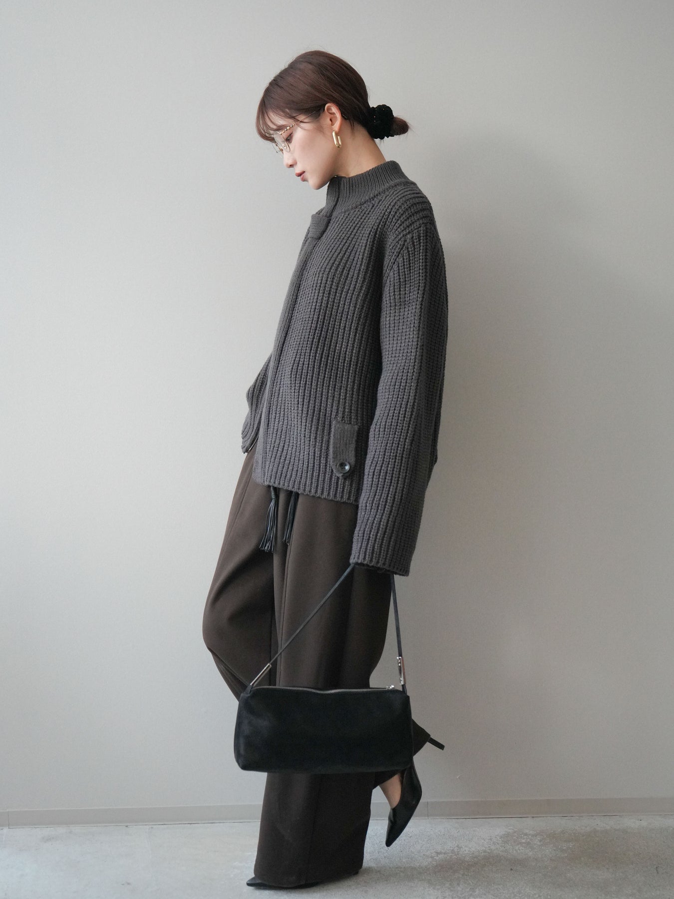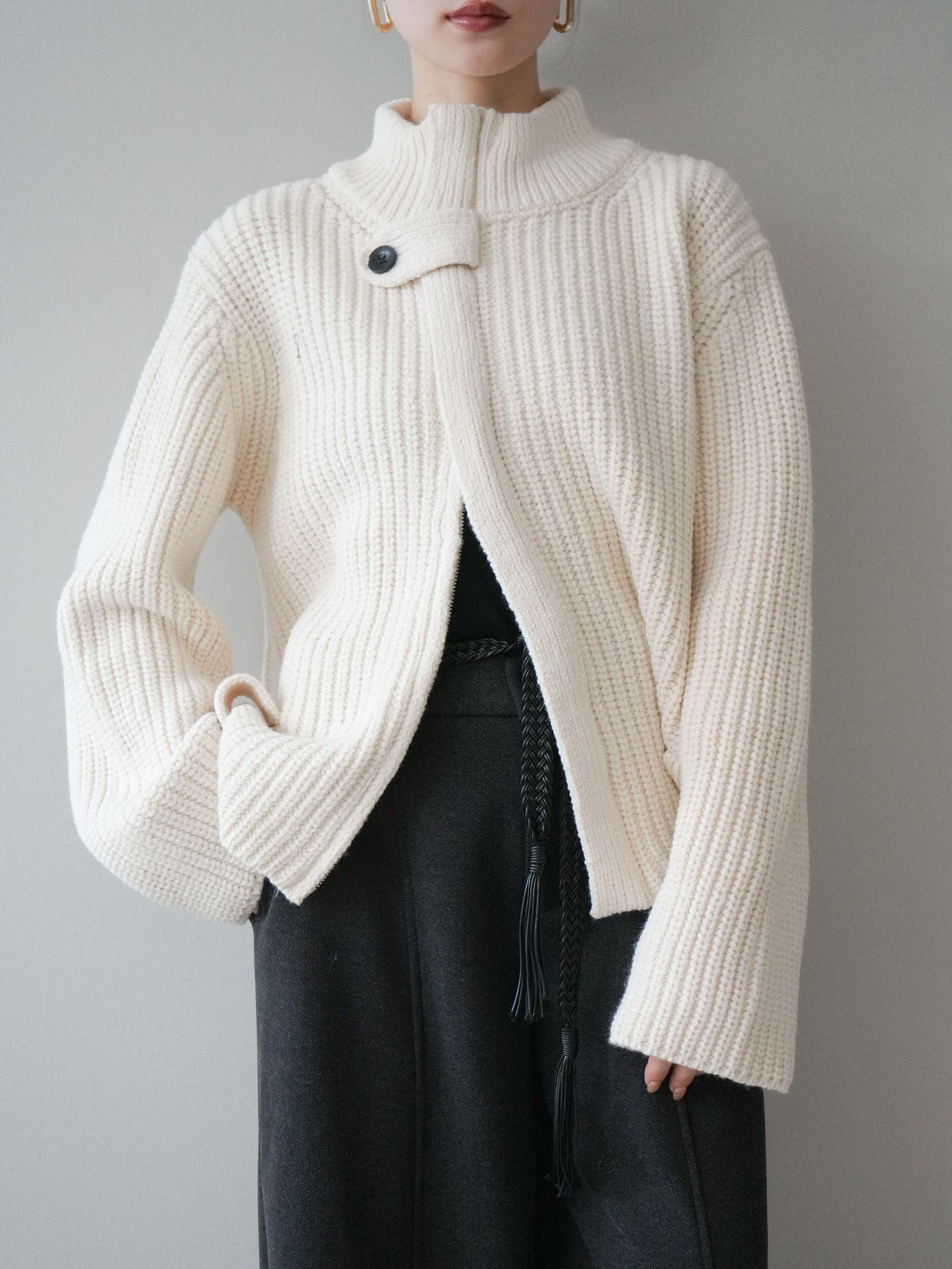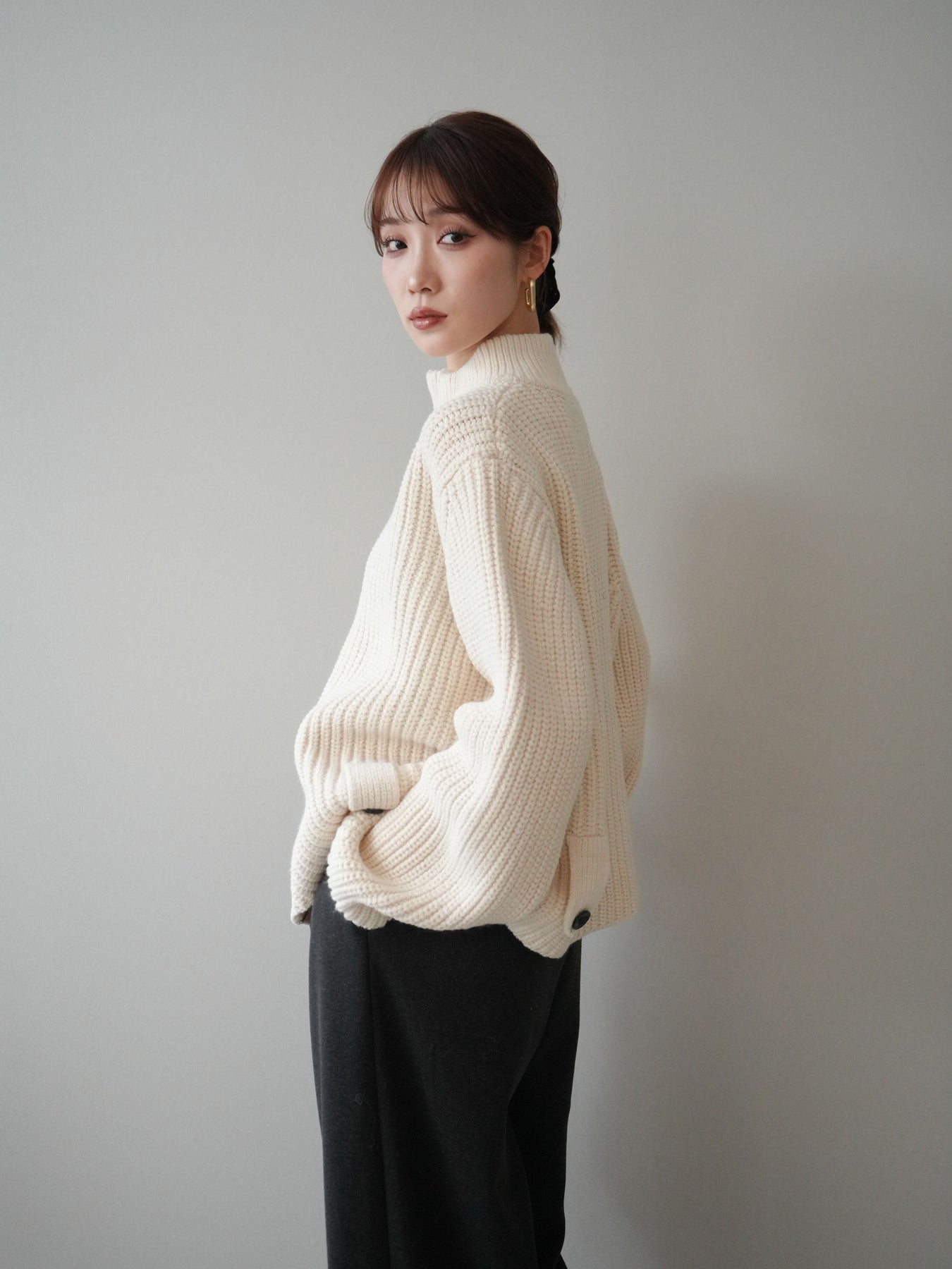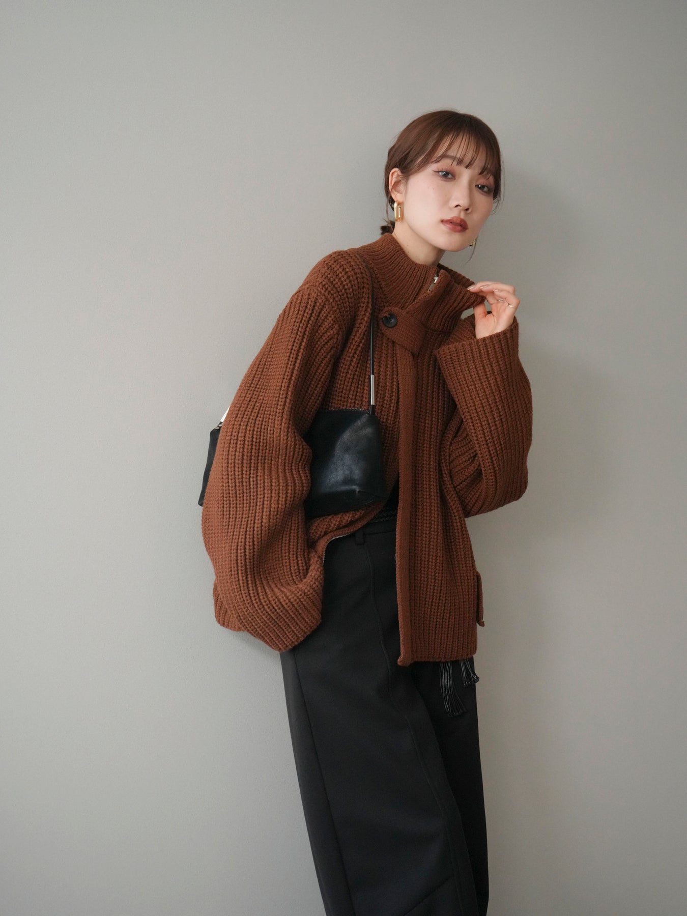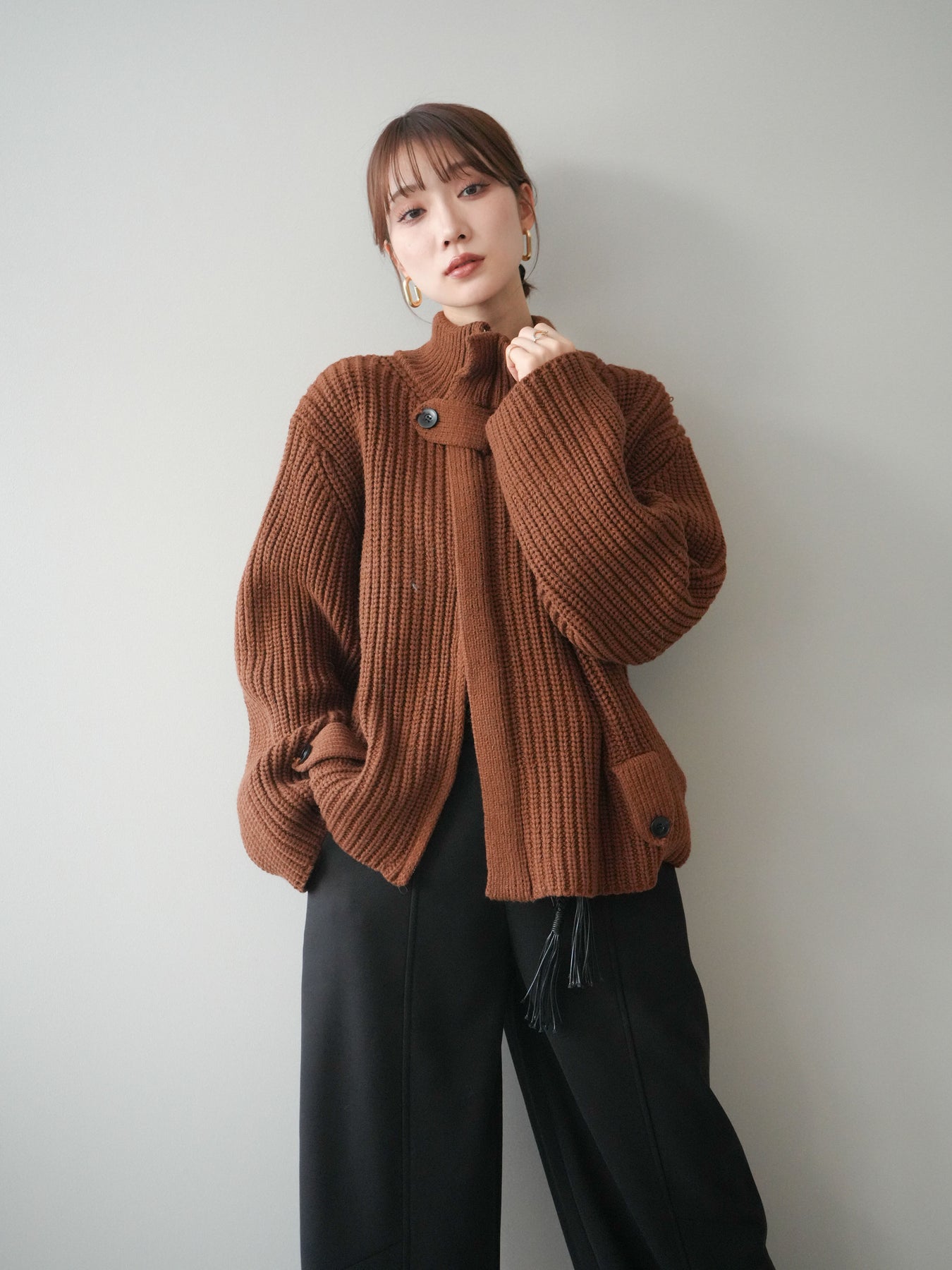 ◆ [予約]畦編みボトルネックZIPニットカーディガン