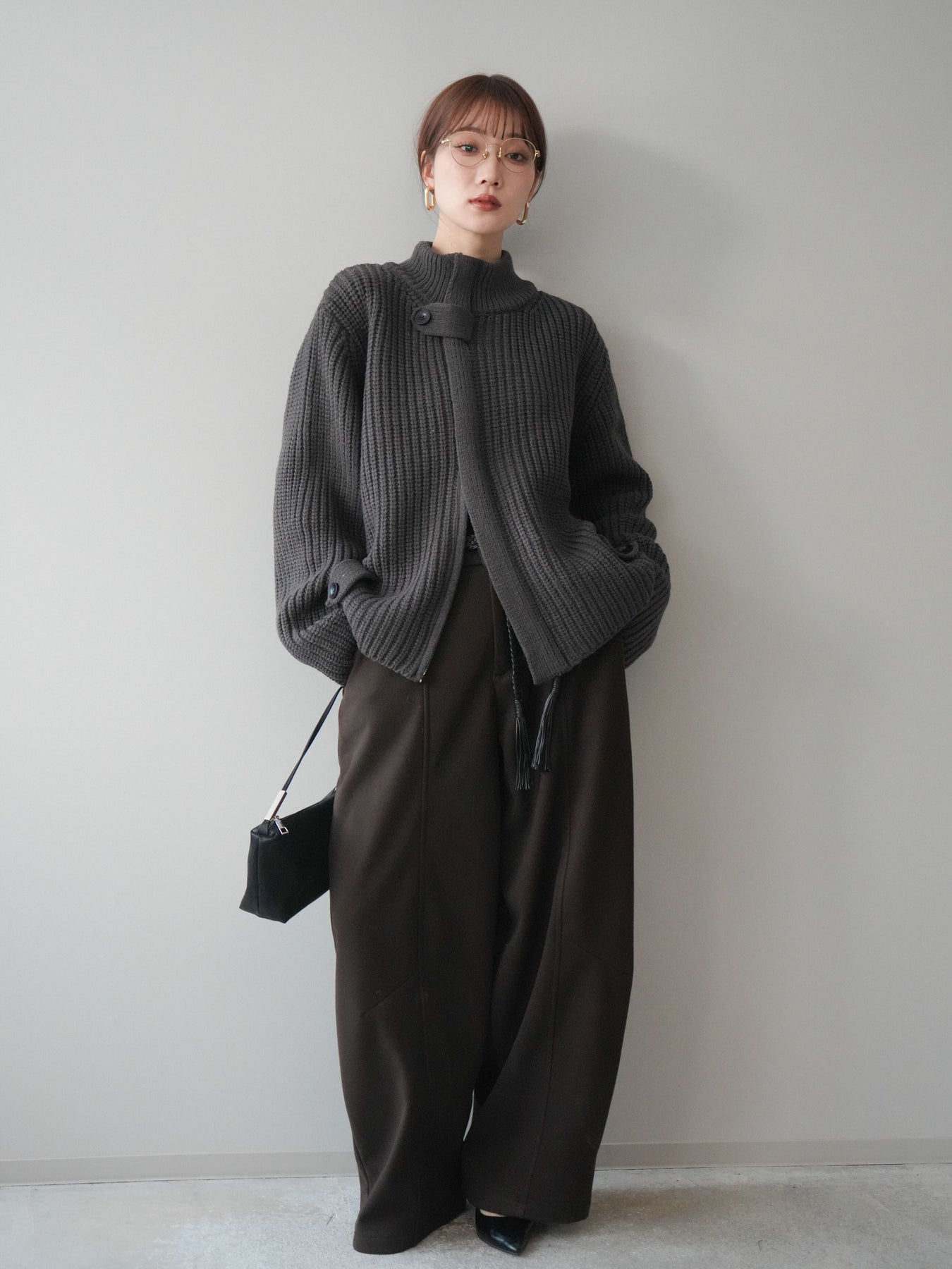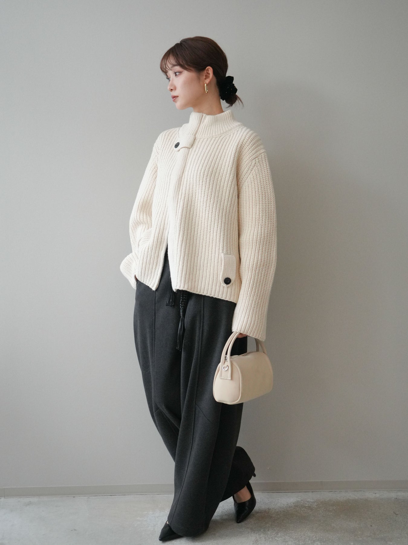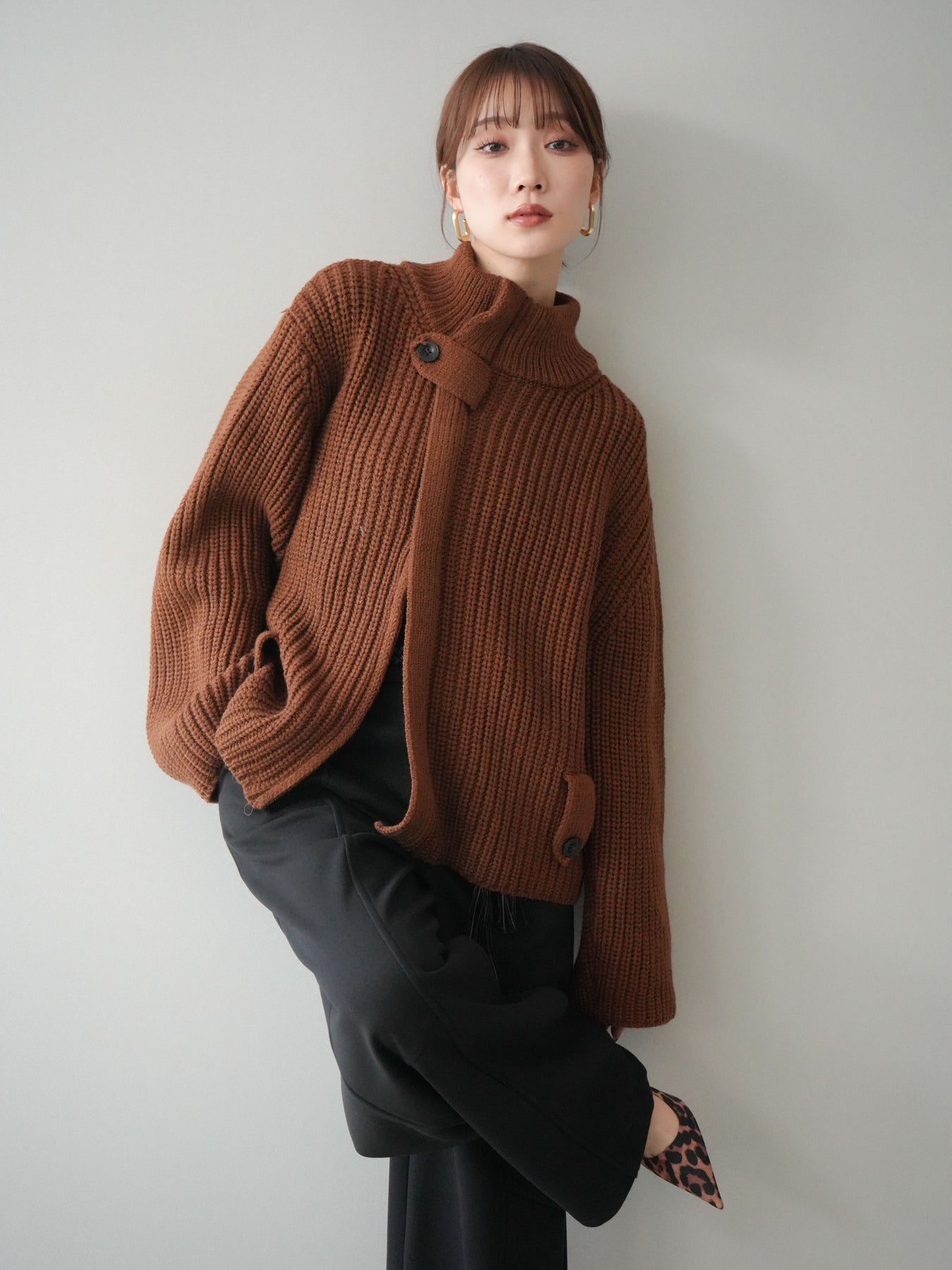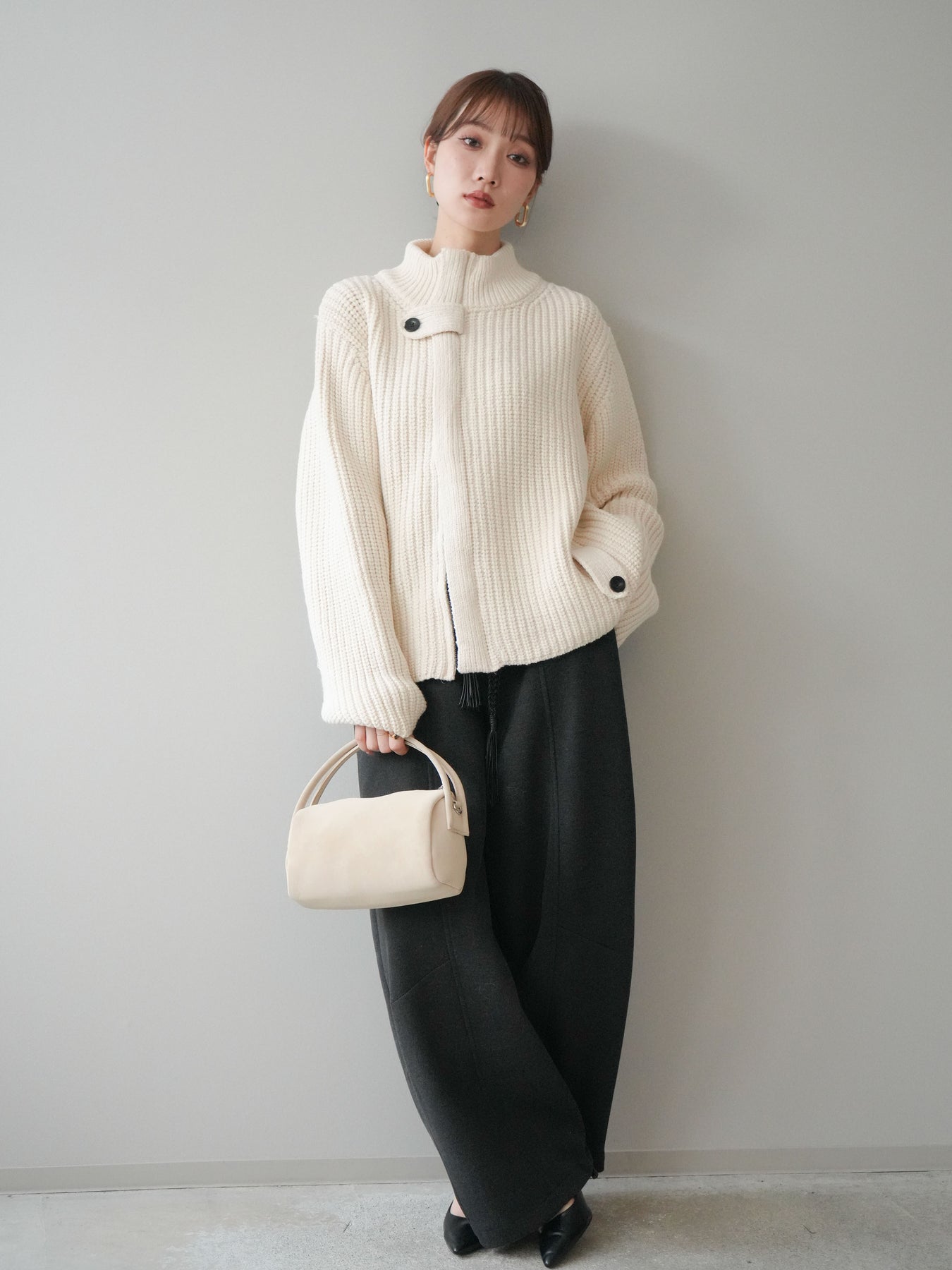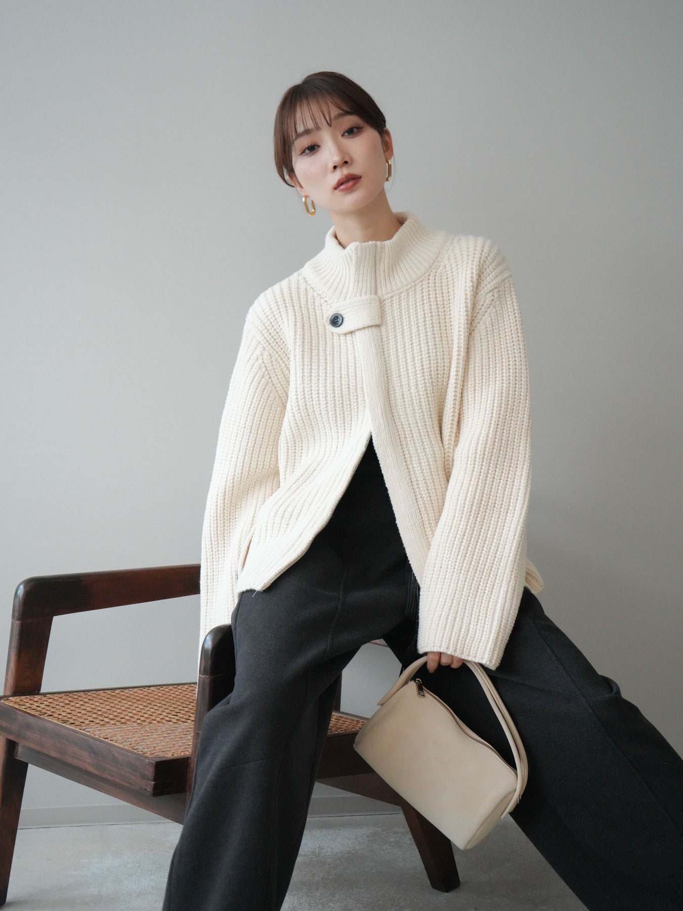 ◆ [予約]畦編みボトルネックZIPニットカーディガン
