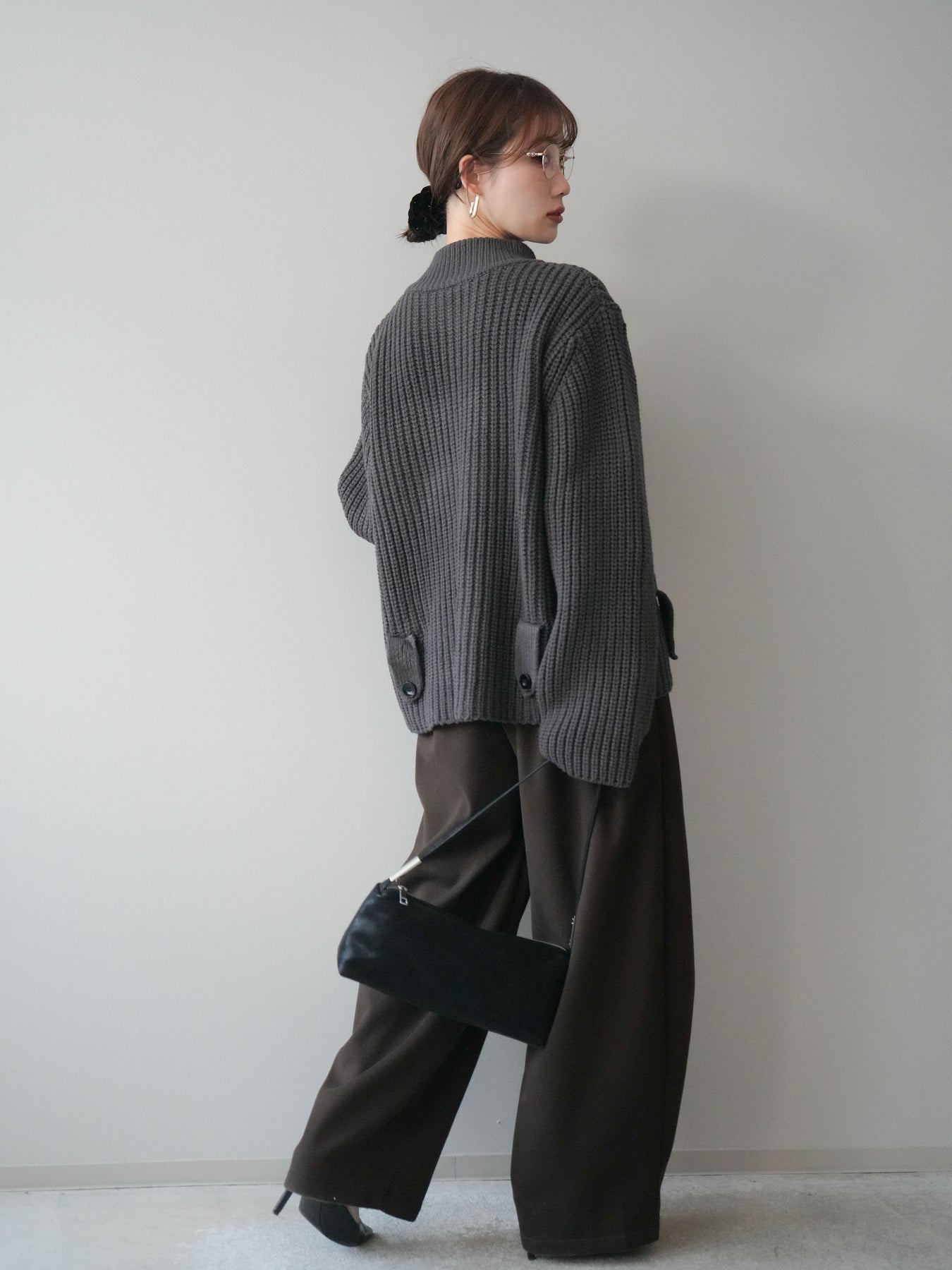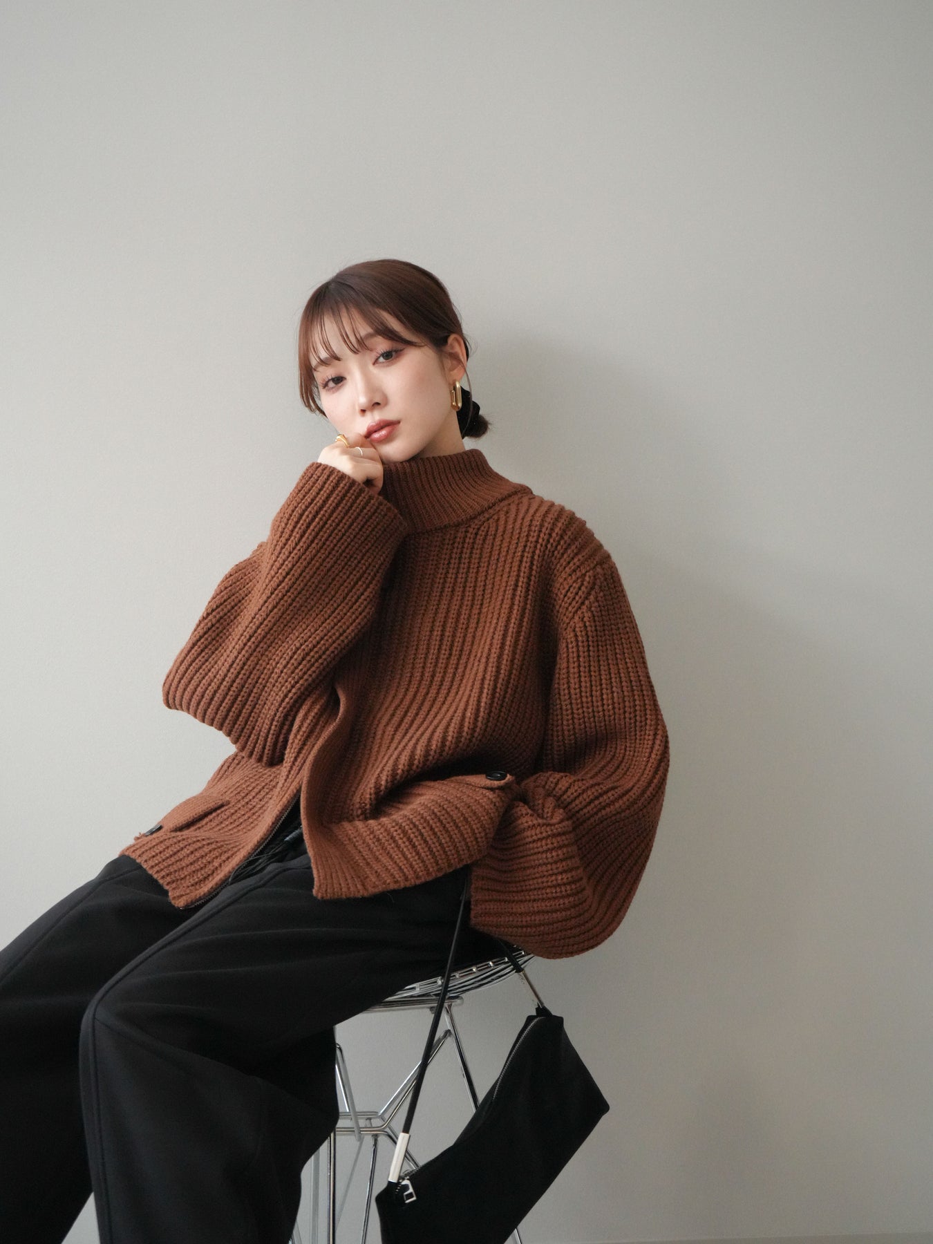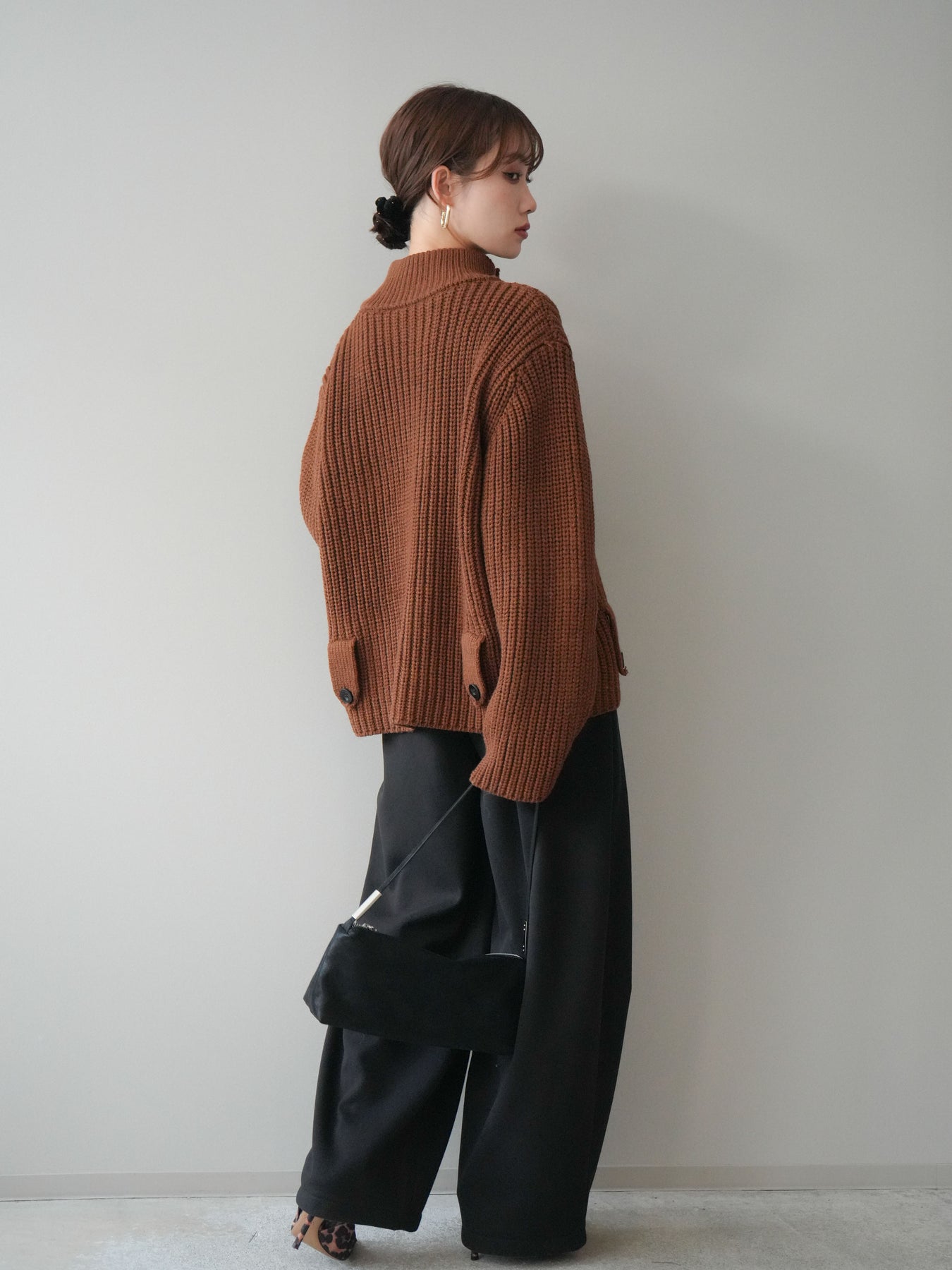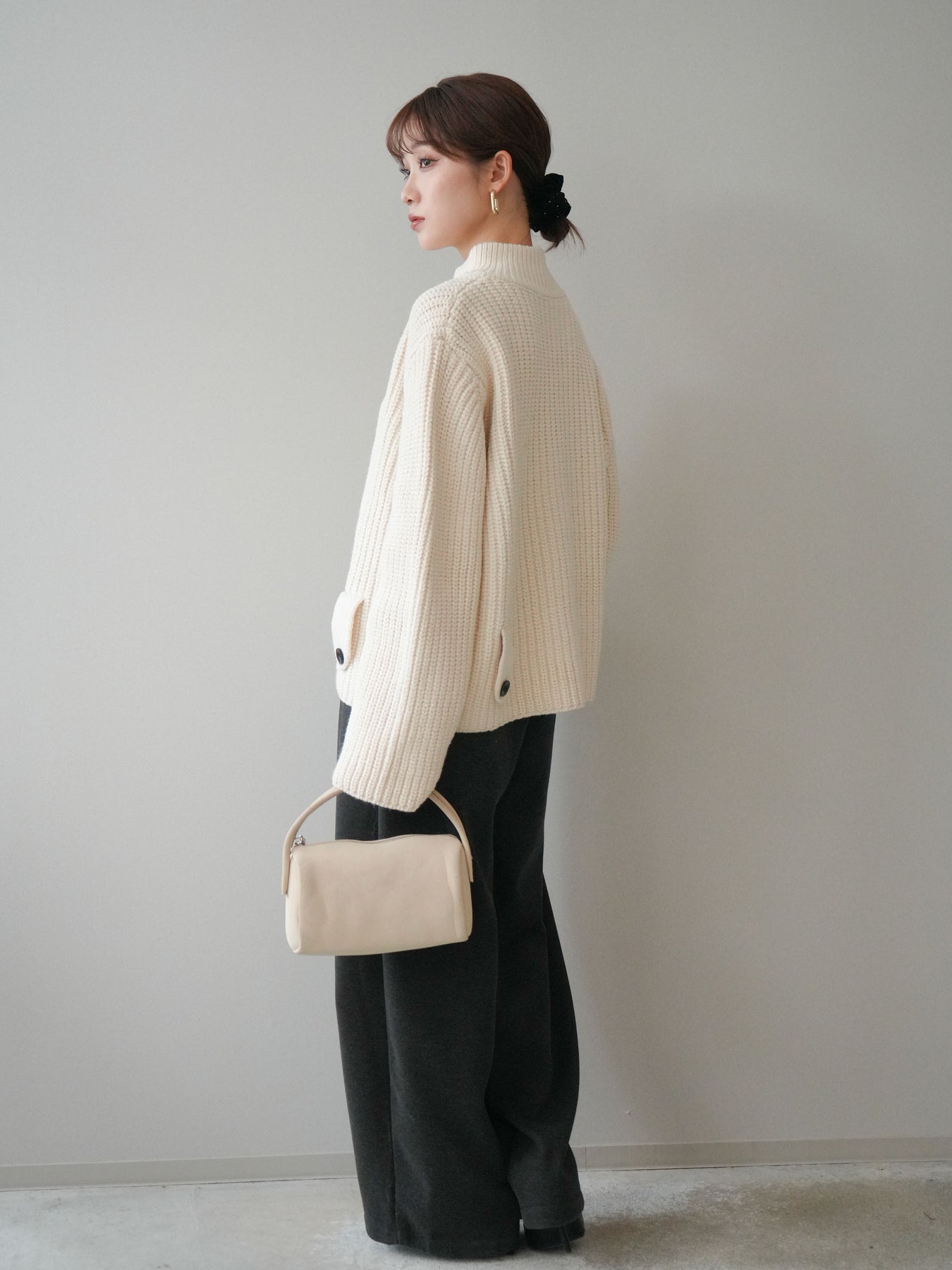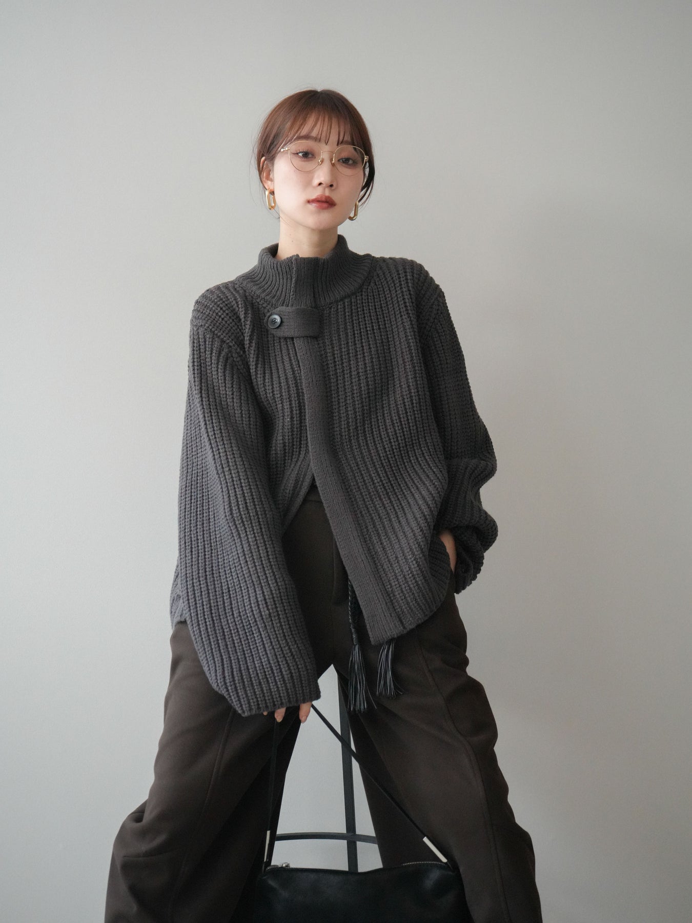 ◆ [予約]畦編みボトルネックZIPニットカーディガン
