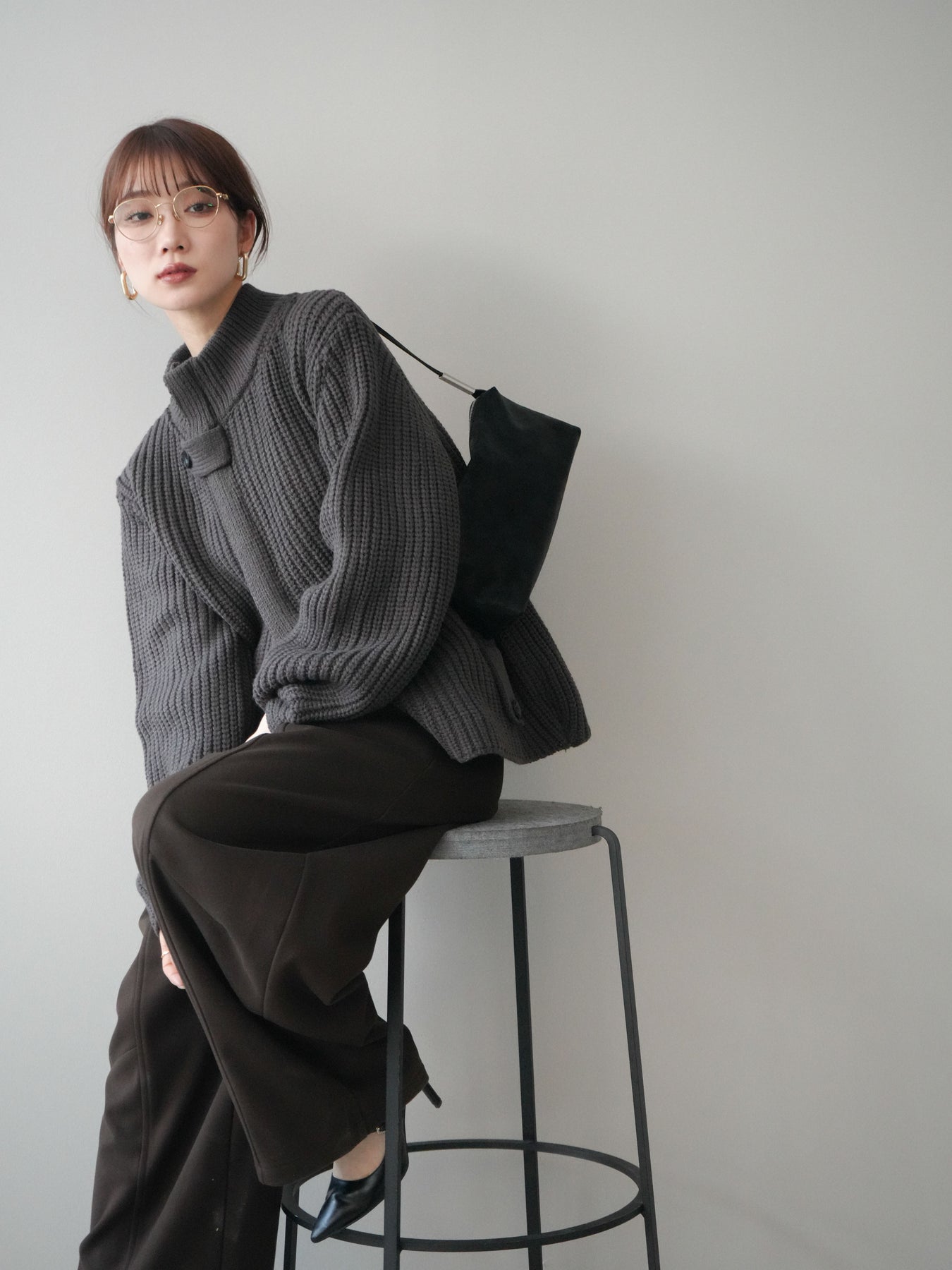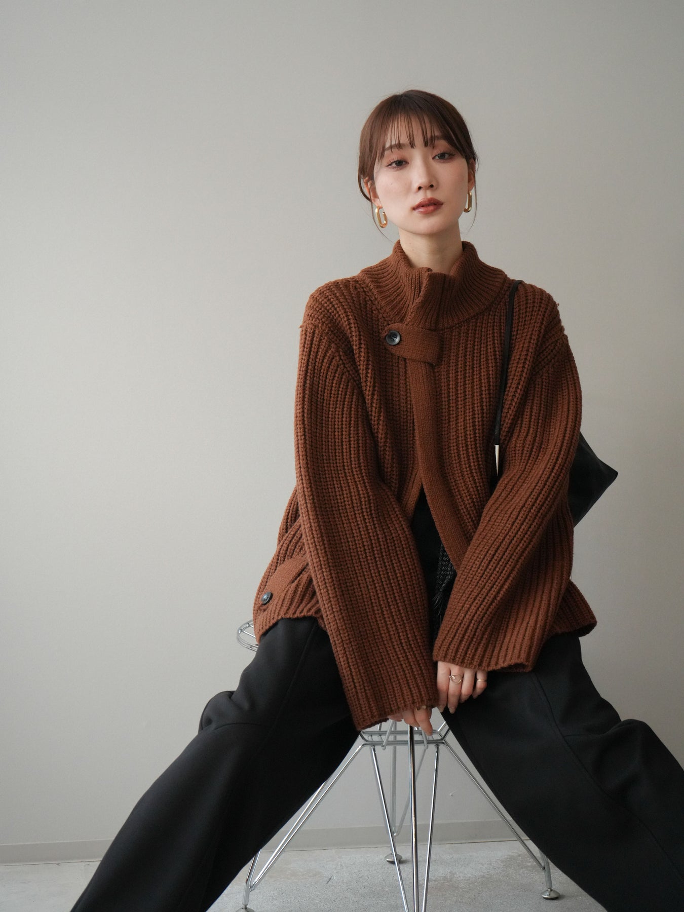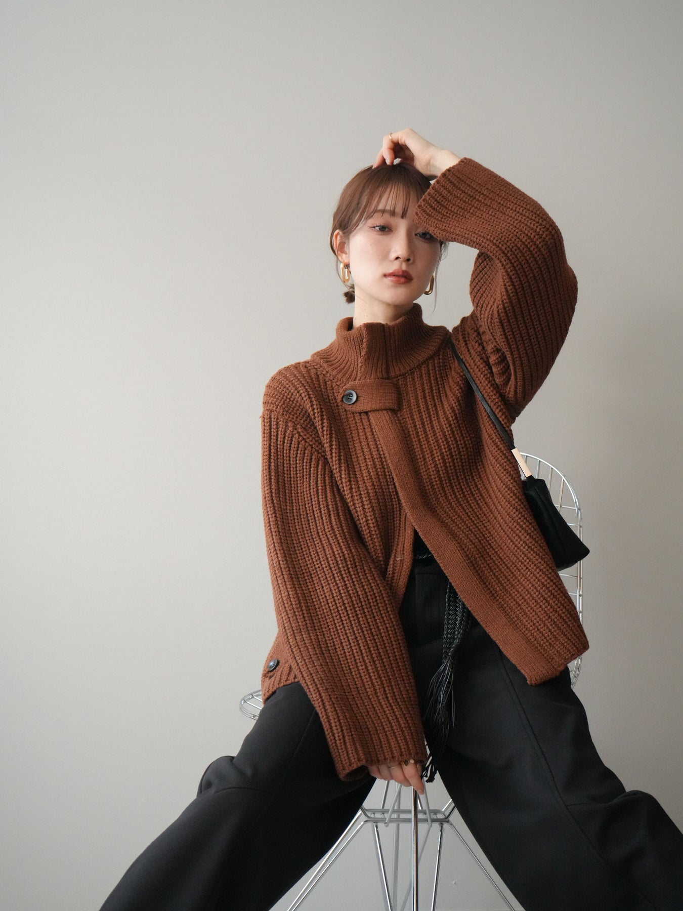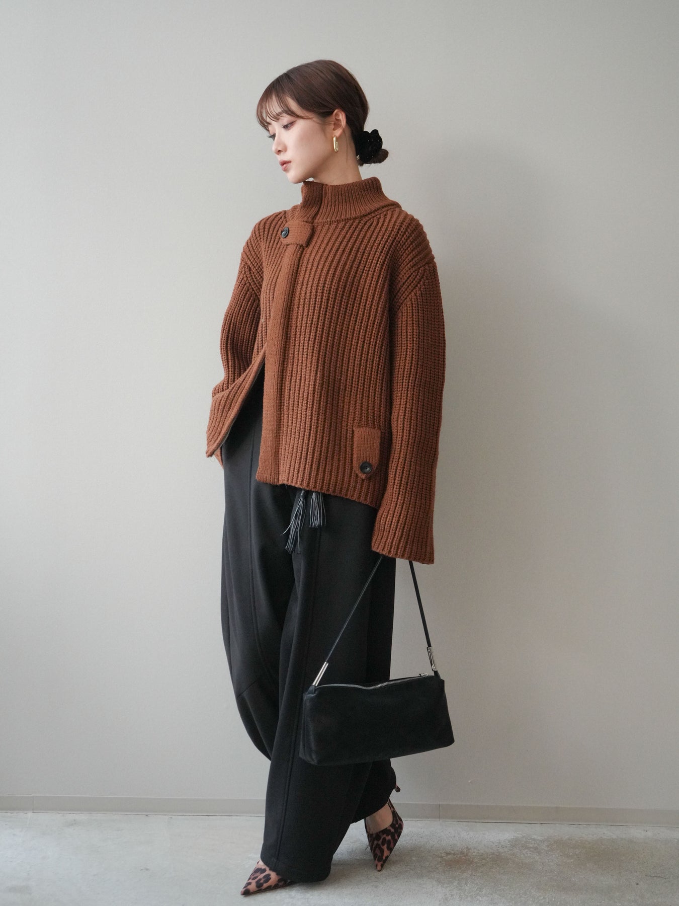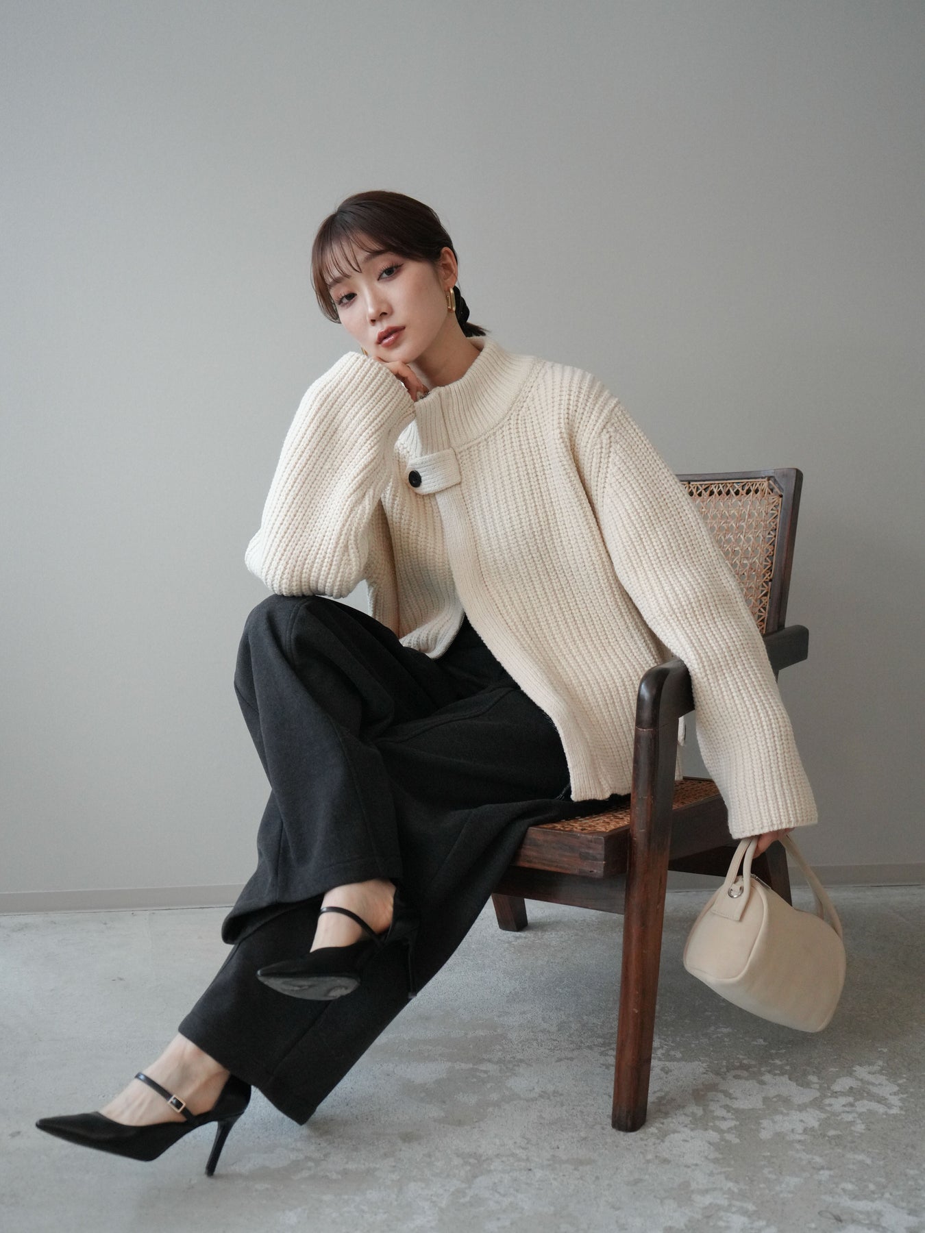 ◆ [予約]畦編みボトルネックZIPニットカーディガン