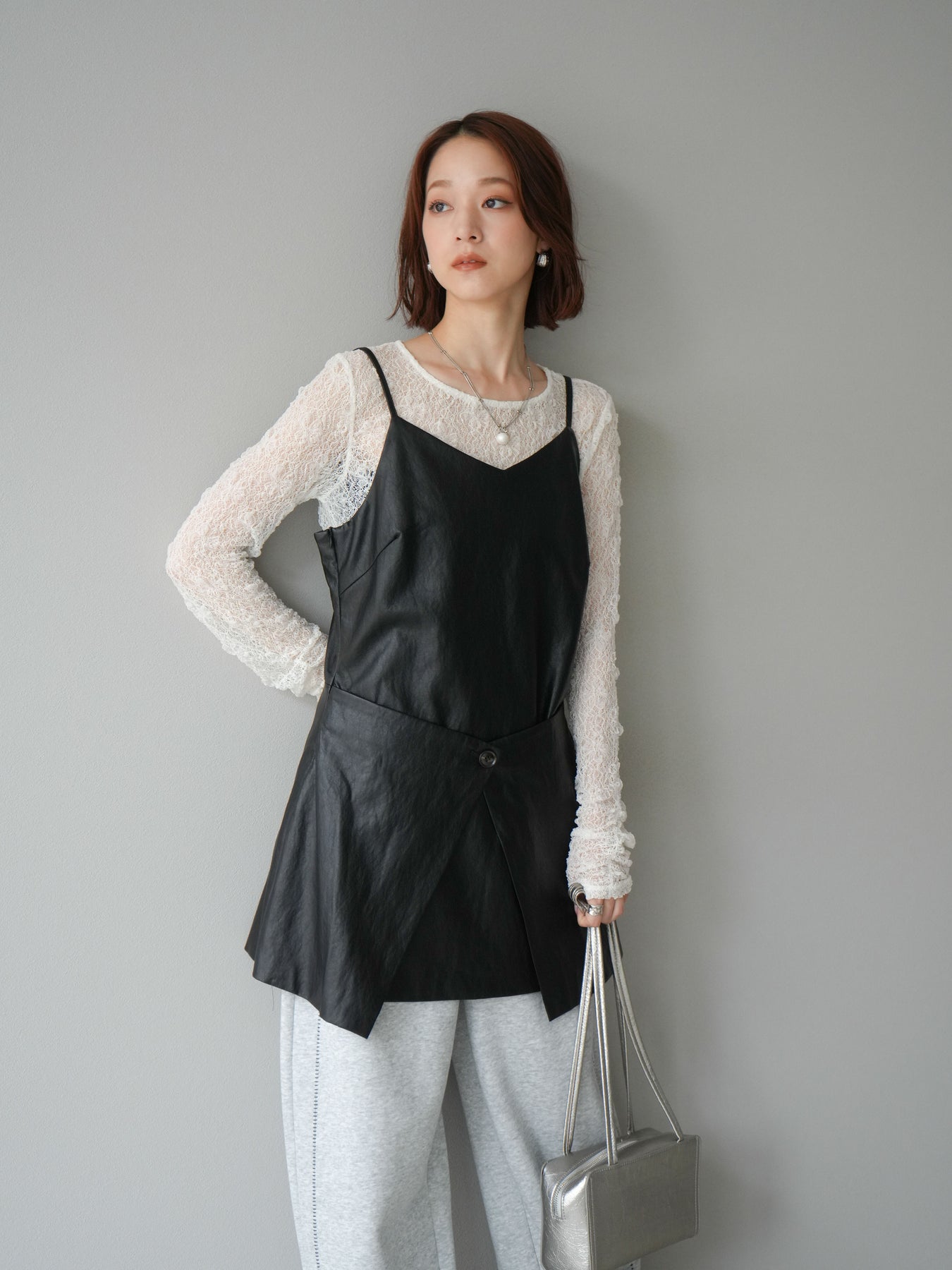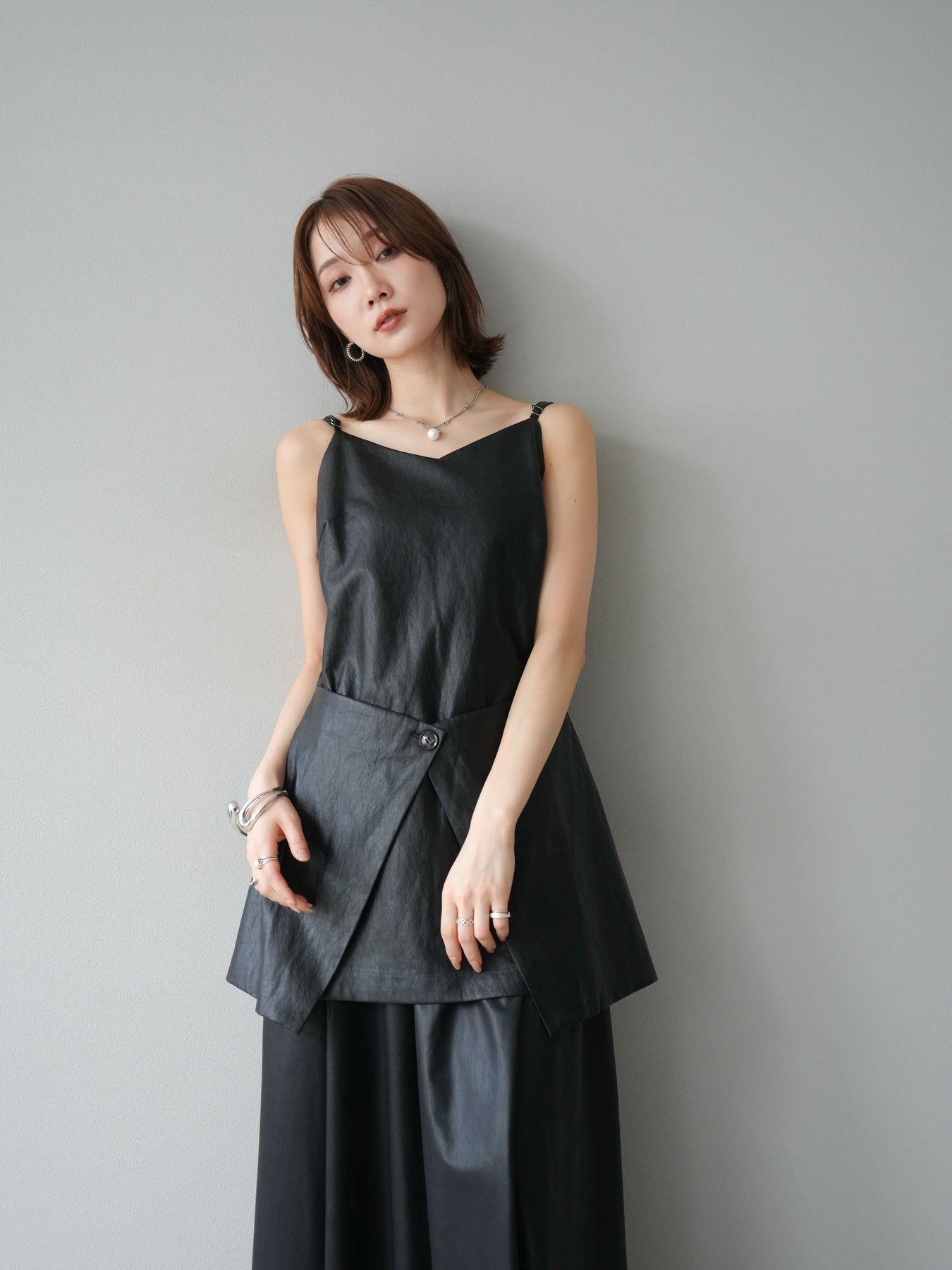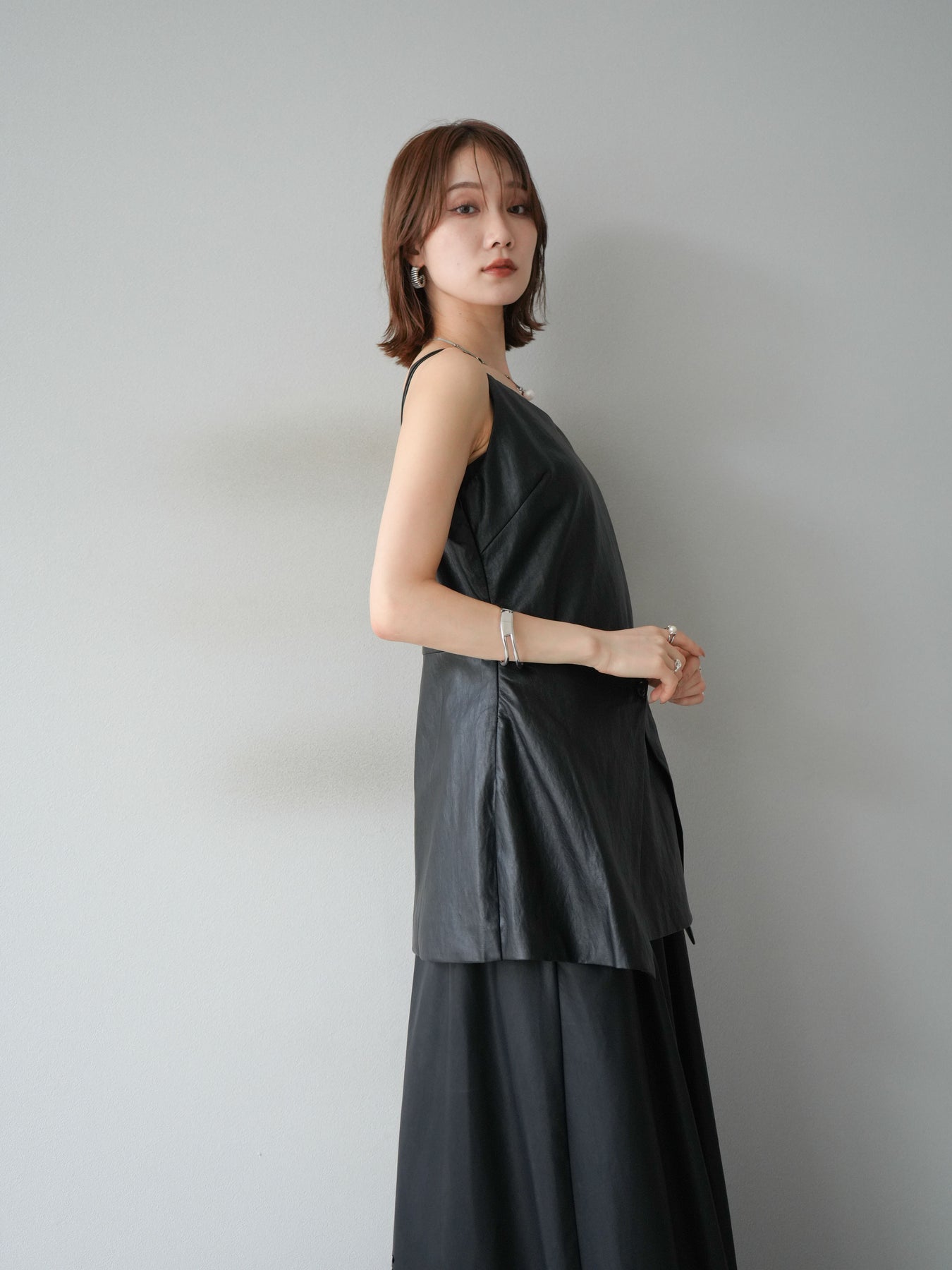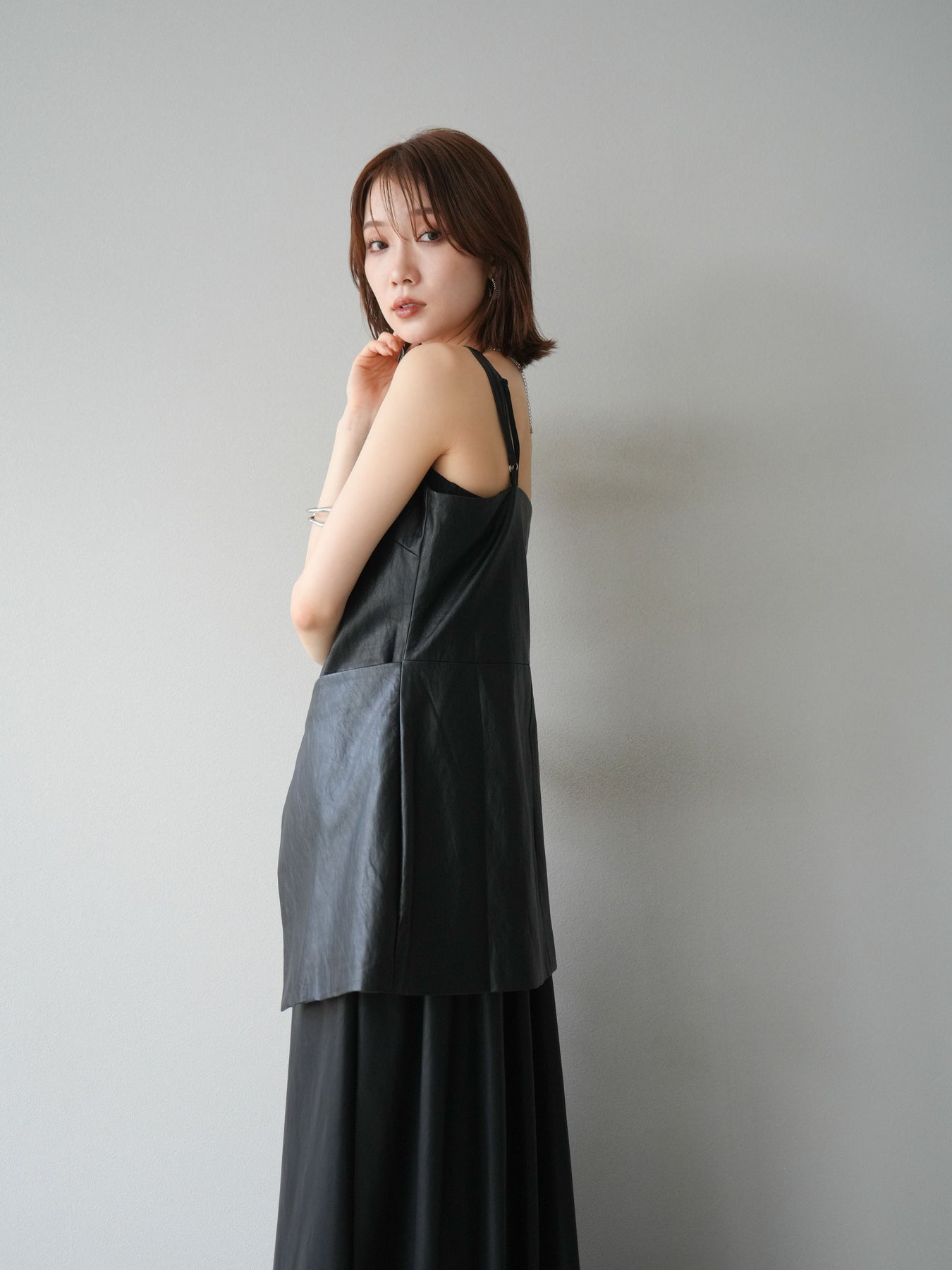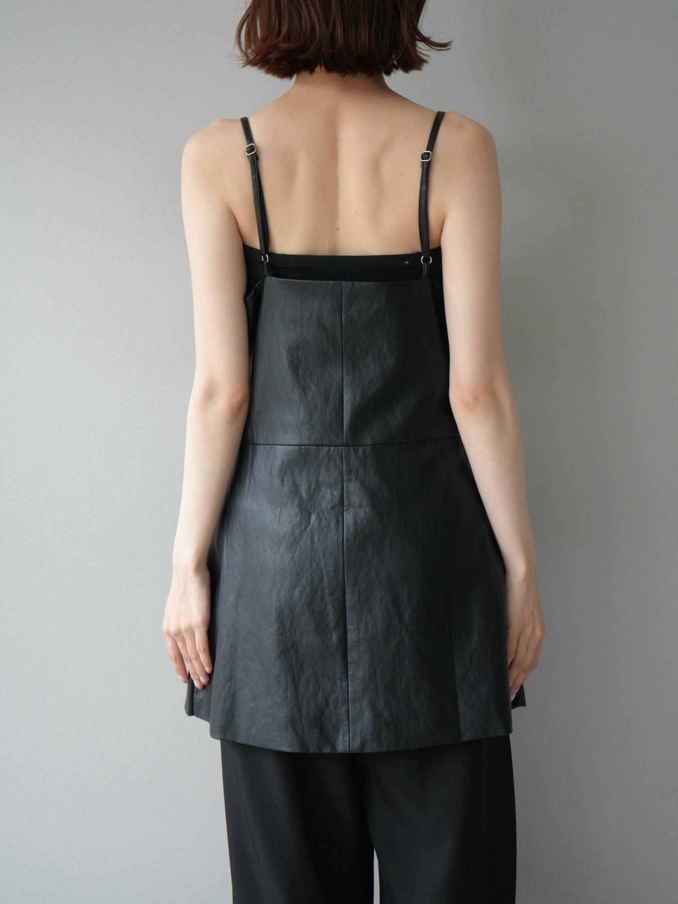 [予約]レイヤードレザーキャミソールチュニック/ブラック
