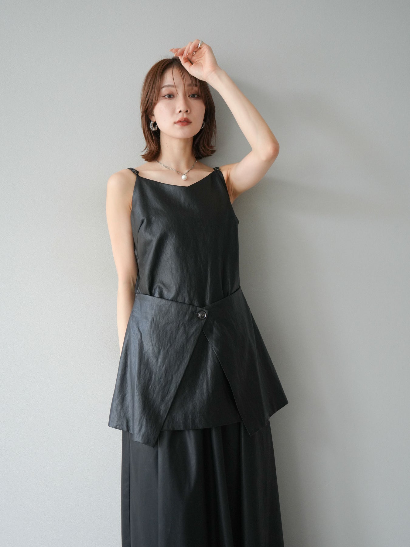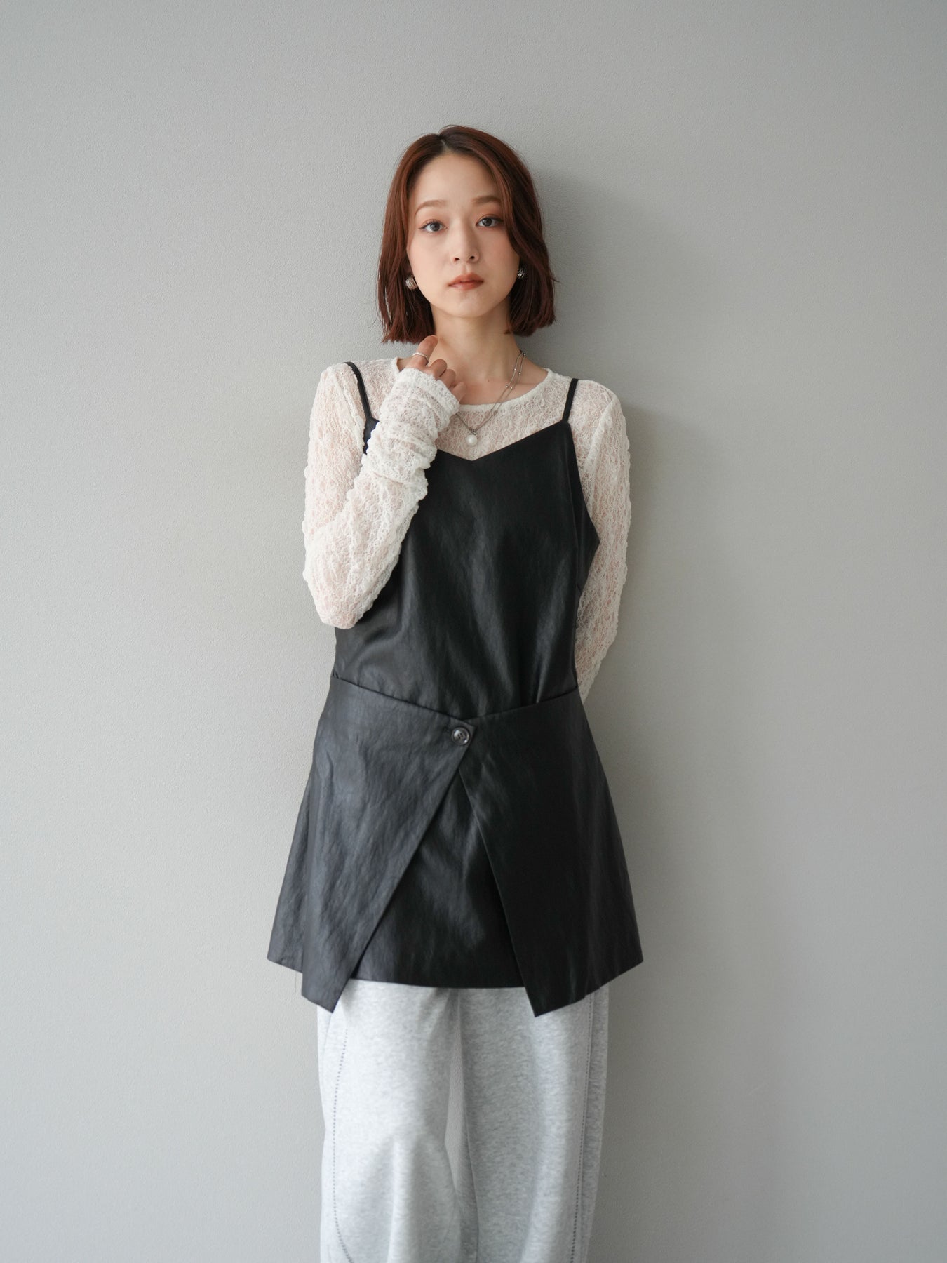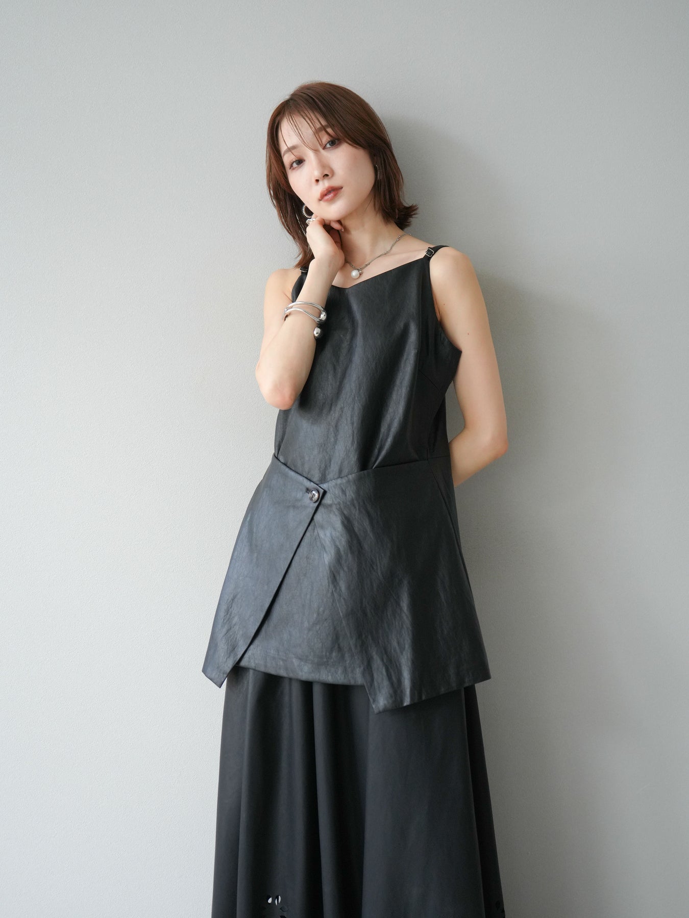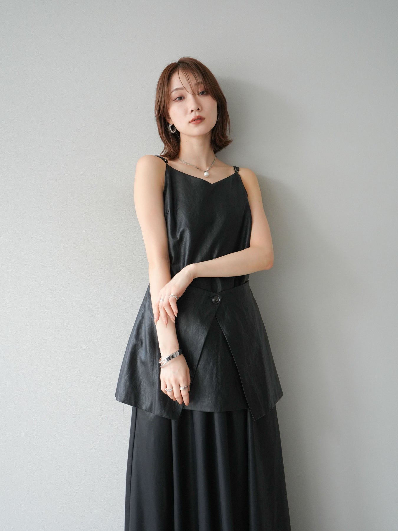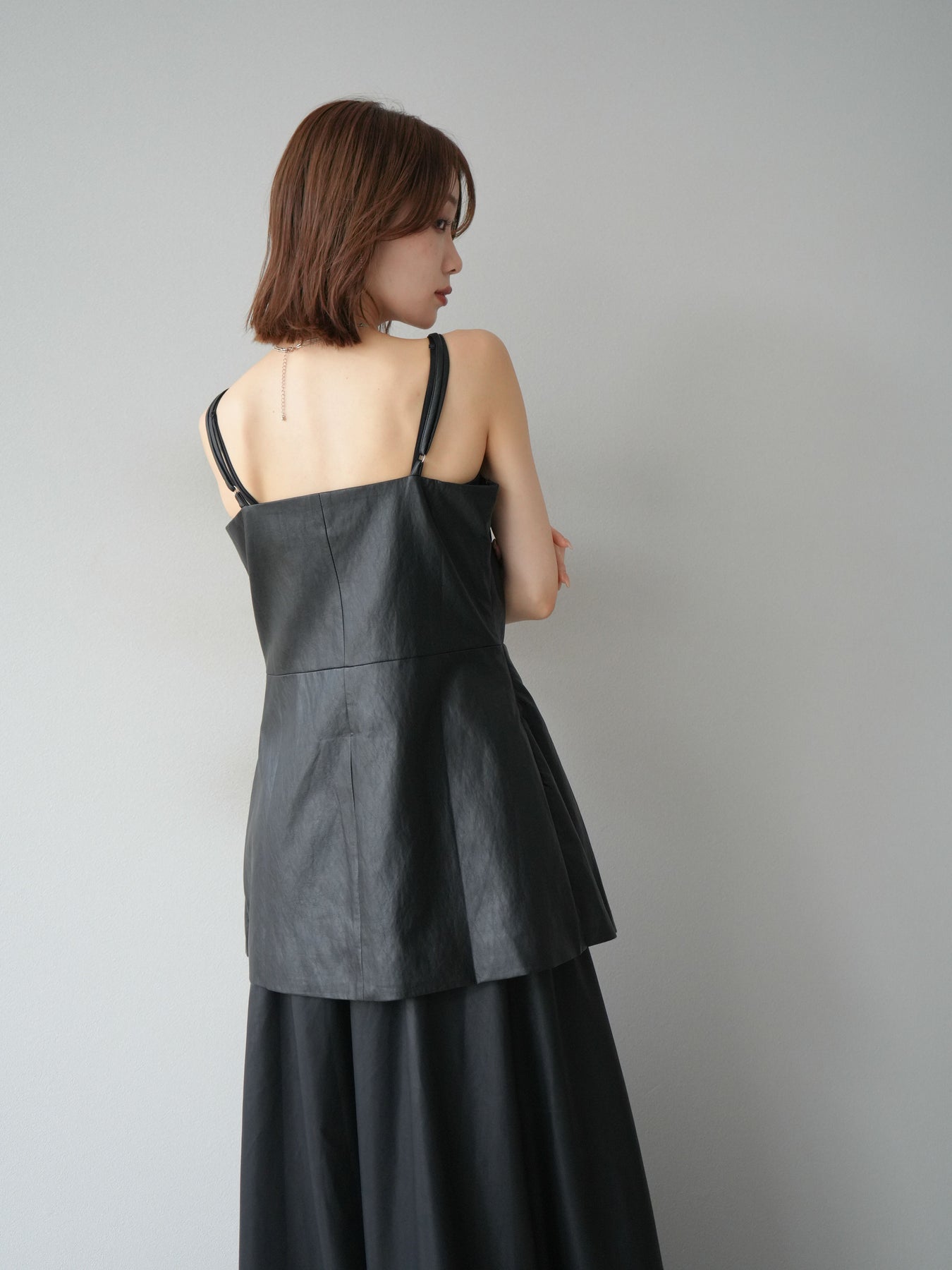 [予約]レイヤードレザーキャミソールチュニック/ブラック
