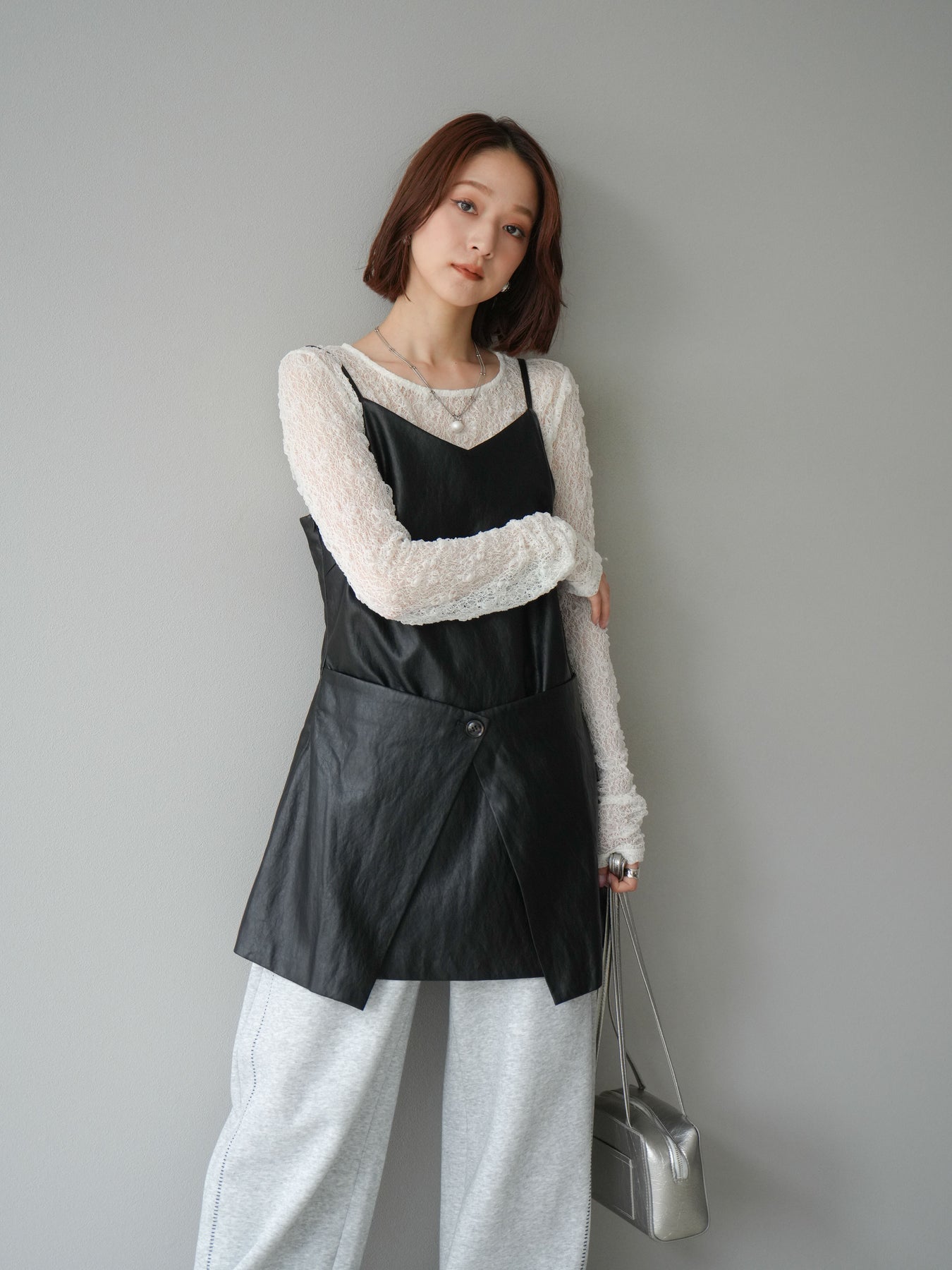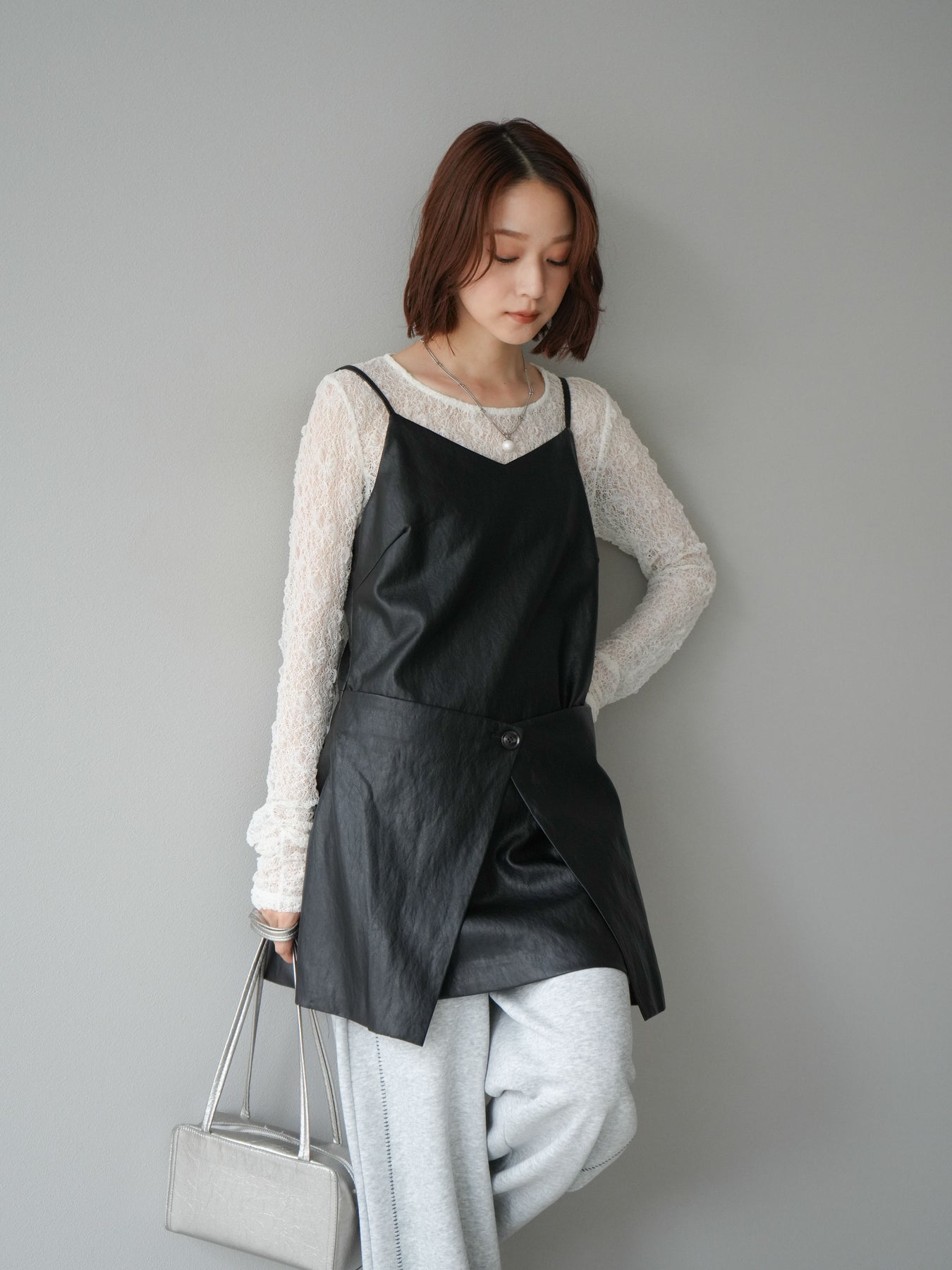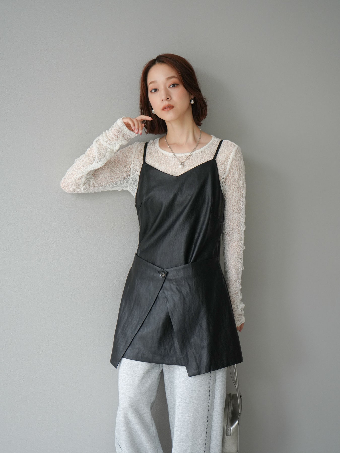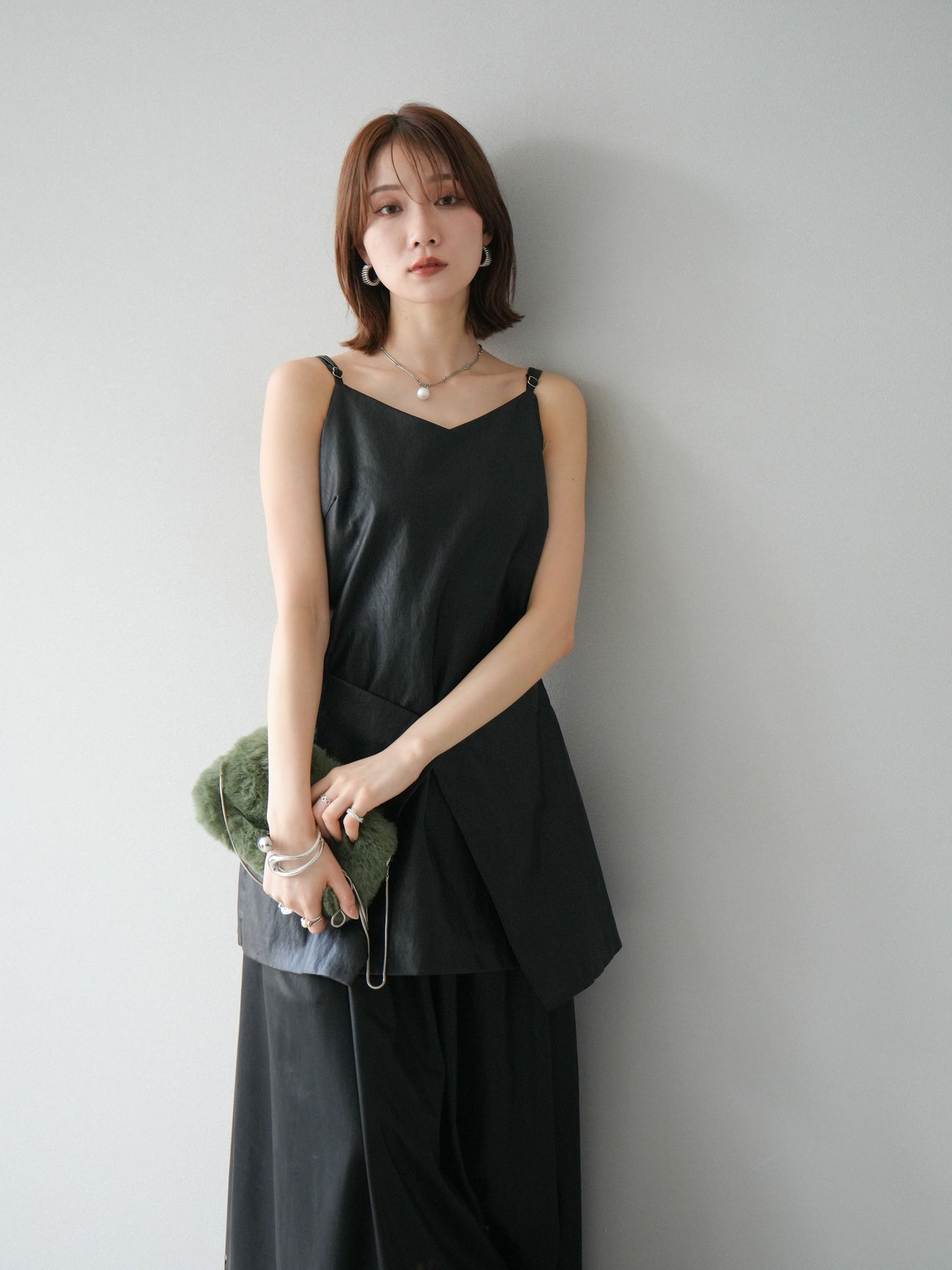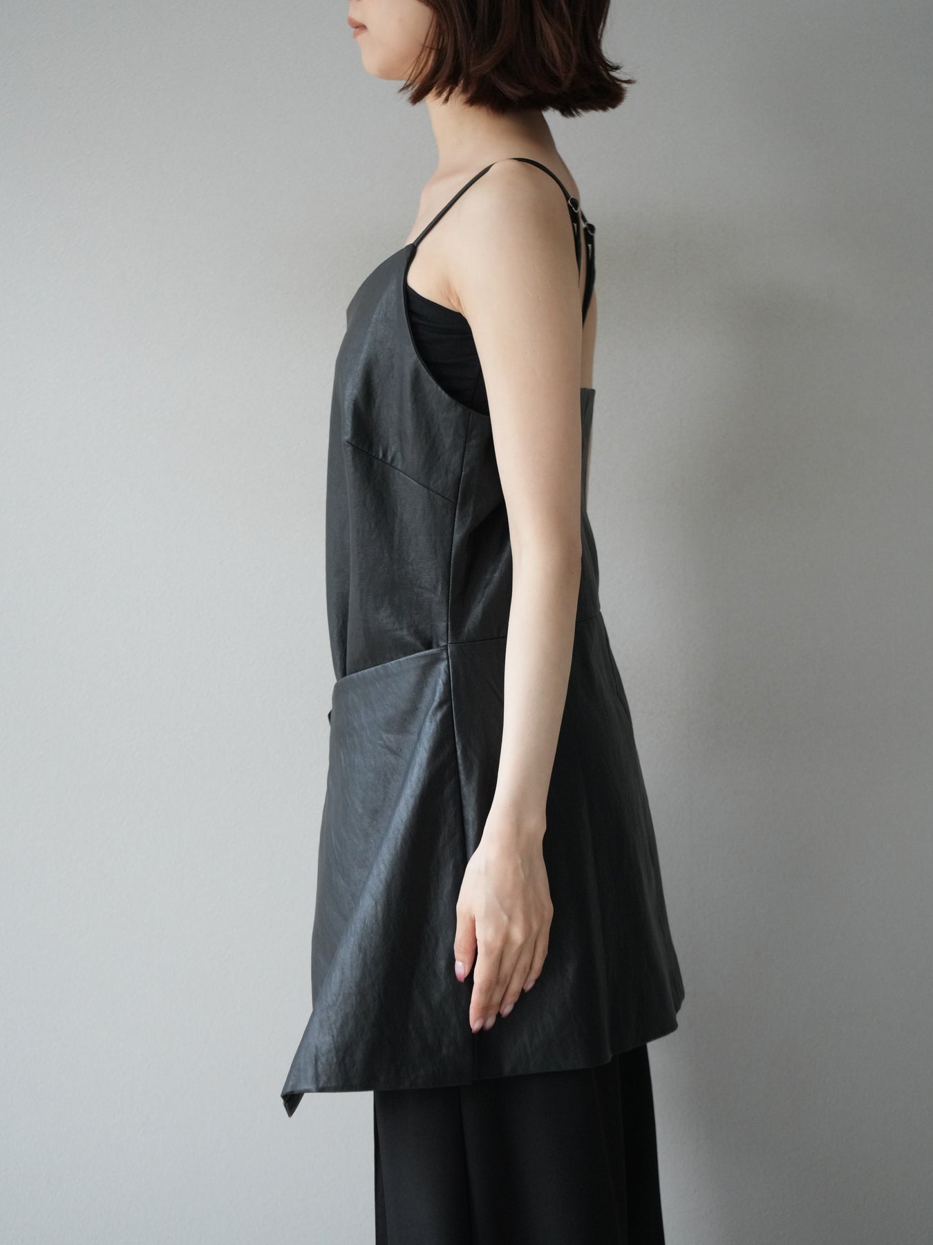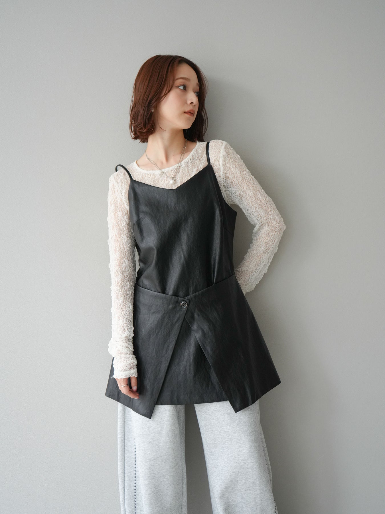 [予約]レイヤードレザーキャミソールチュニック/ブラック