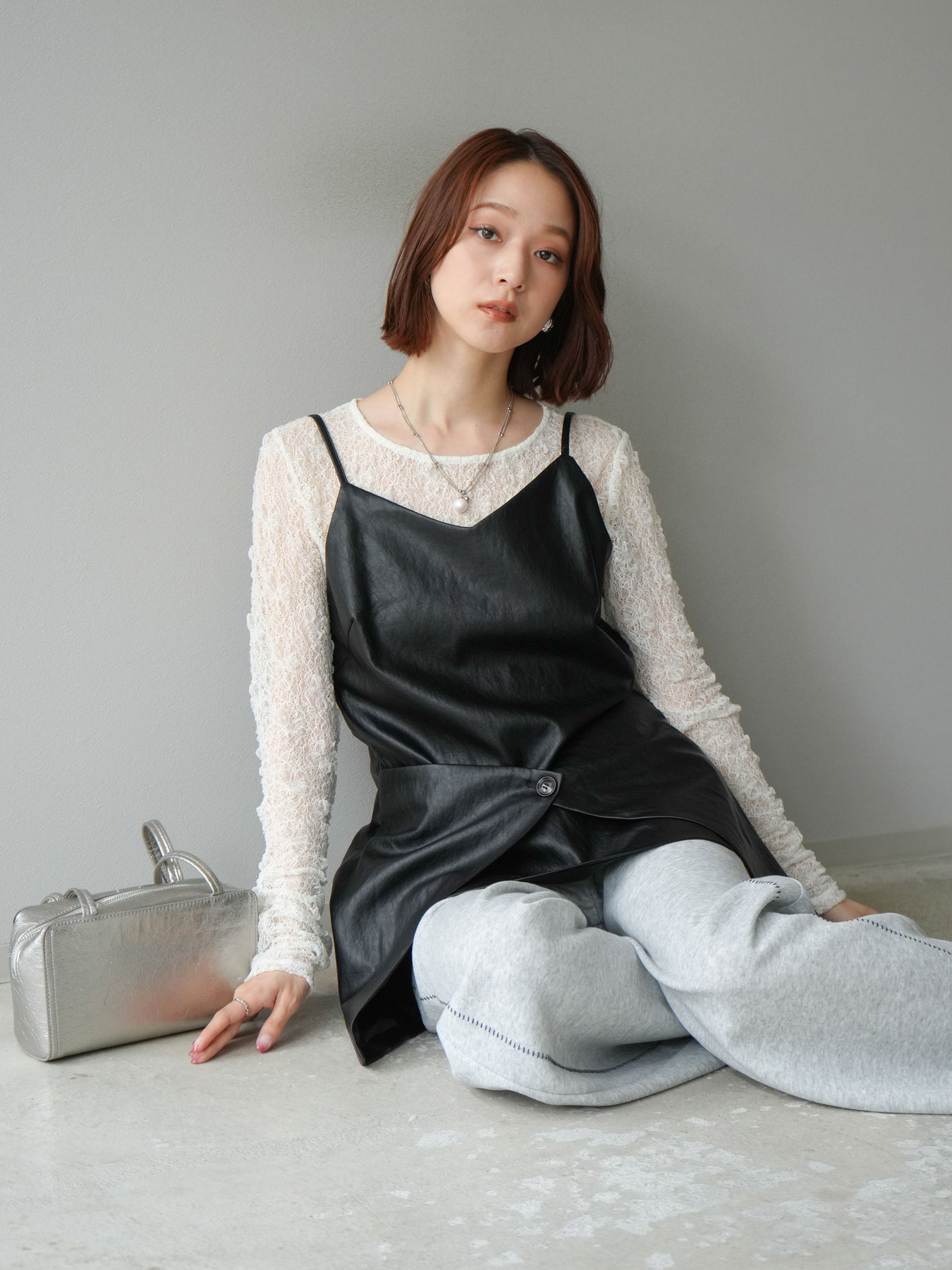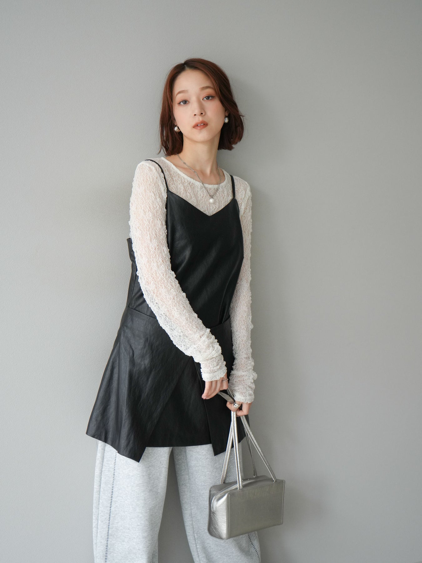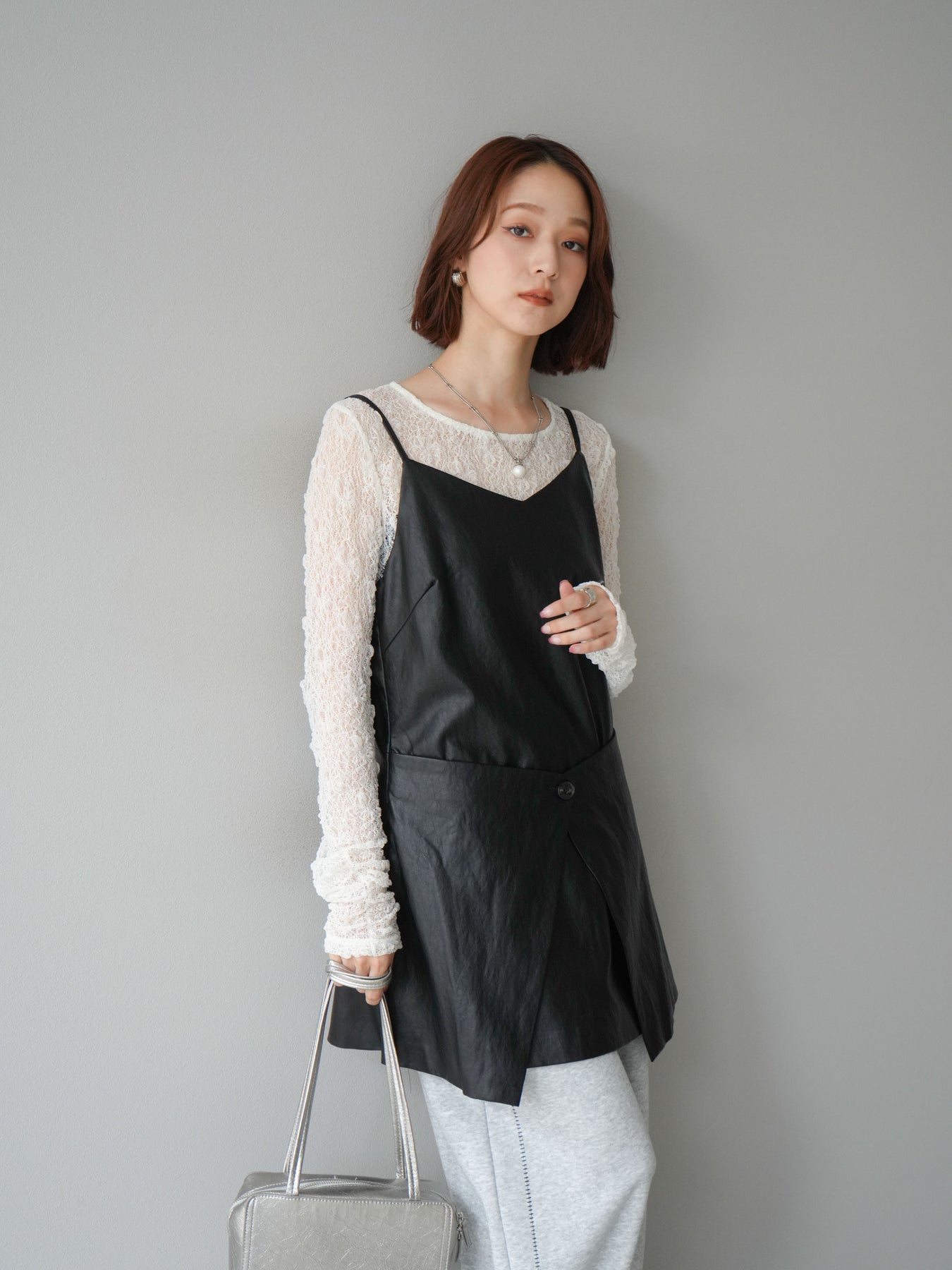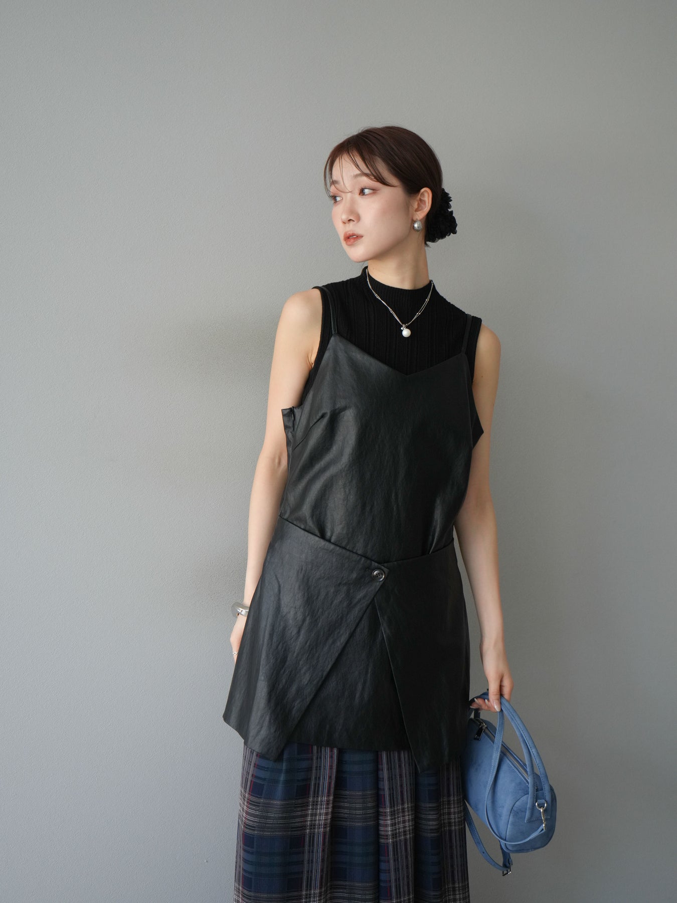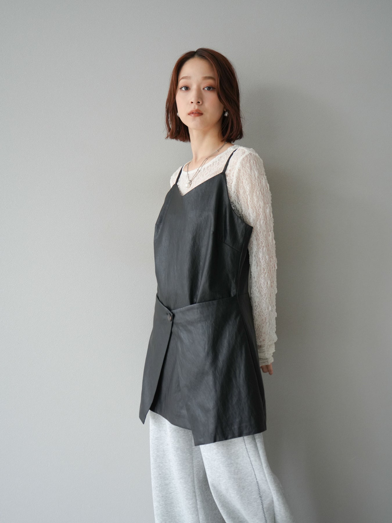 [予約]レイヤードレザーキャミソールチュニック/ブラック