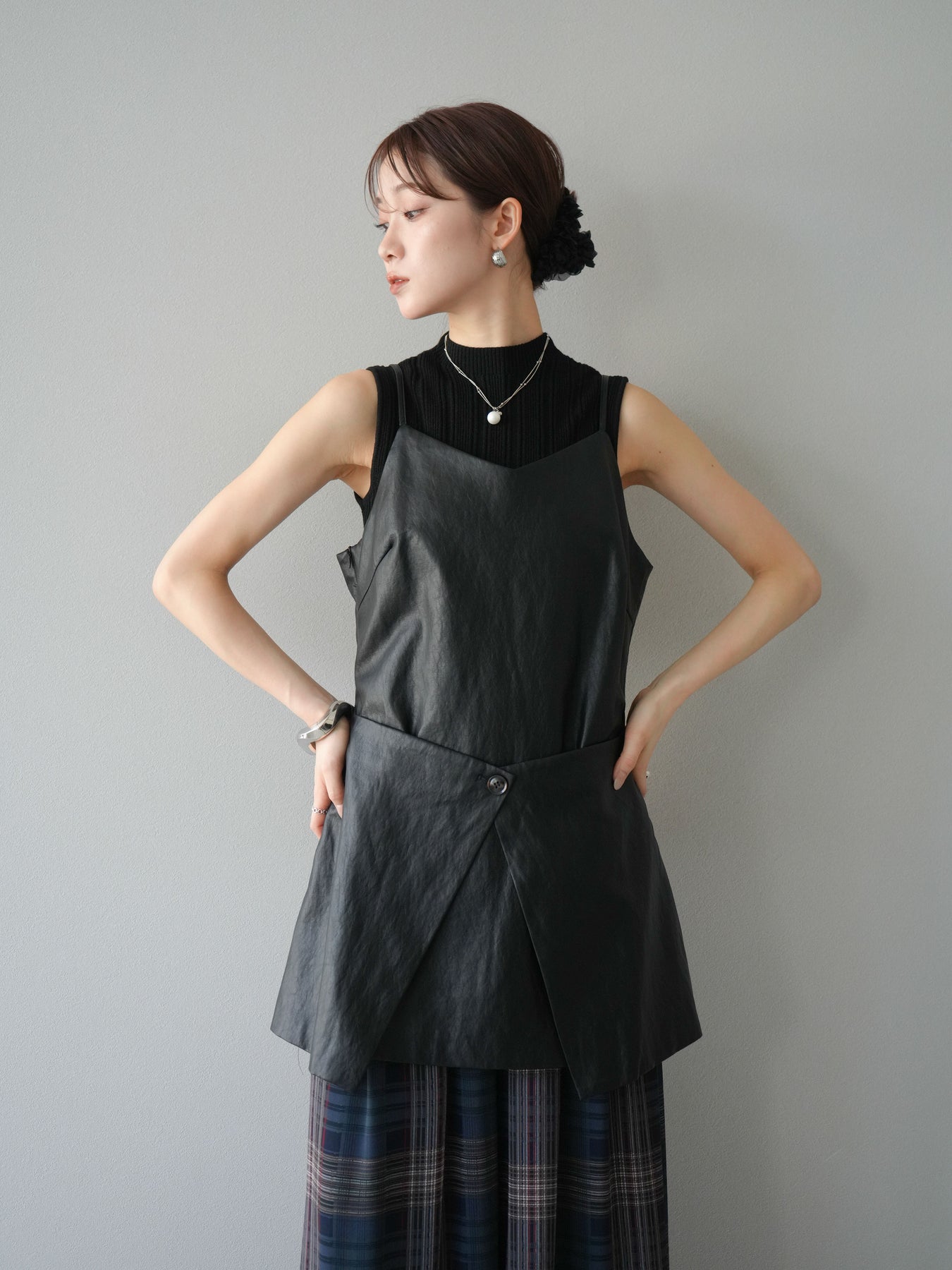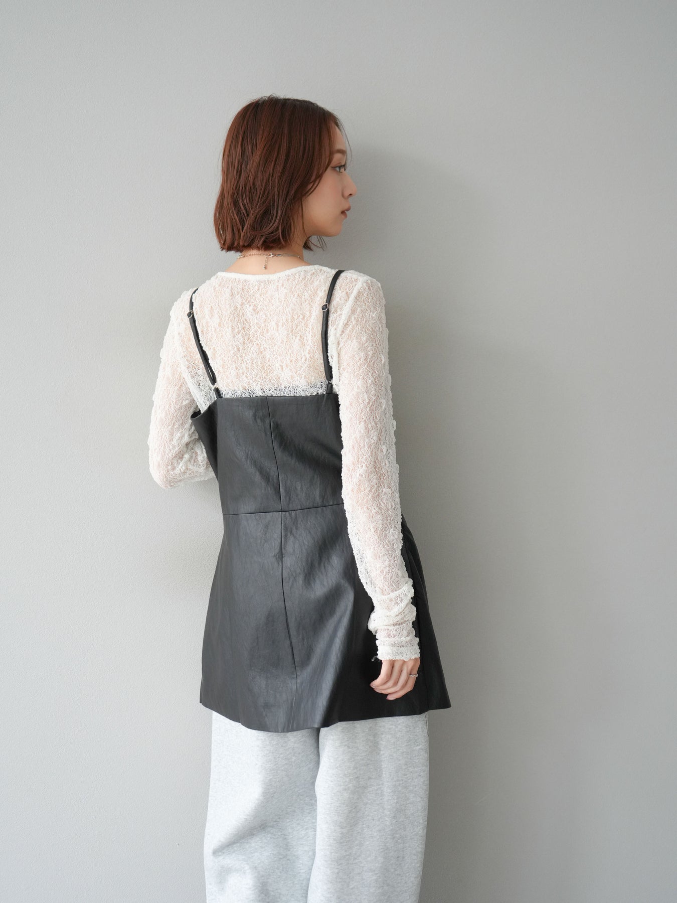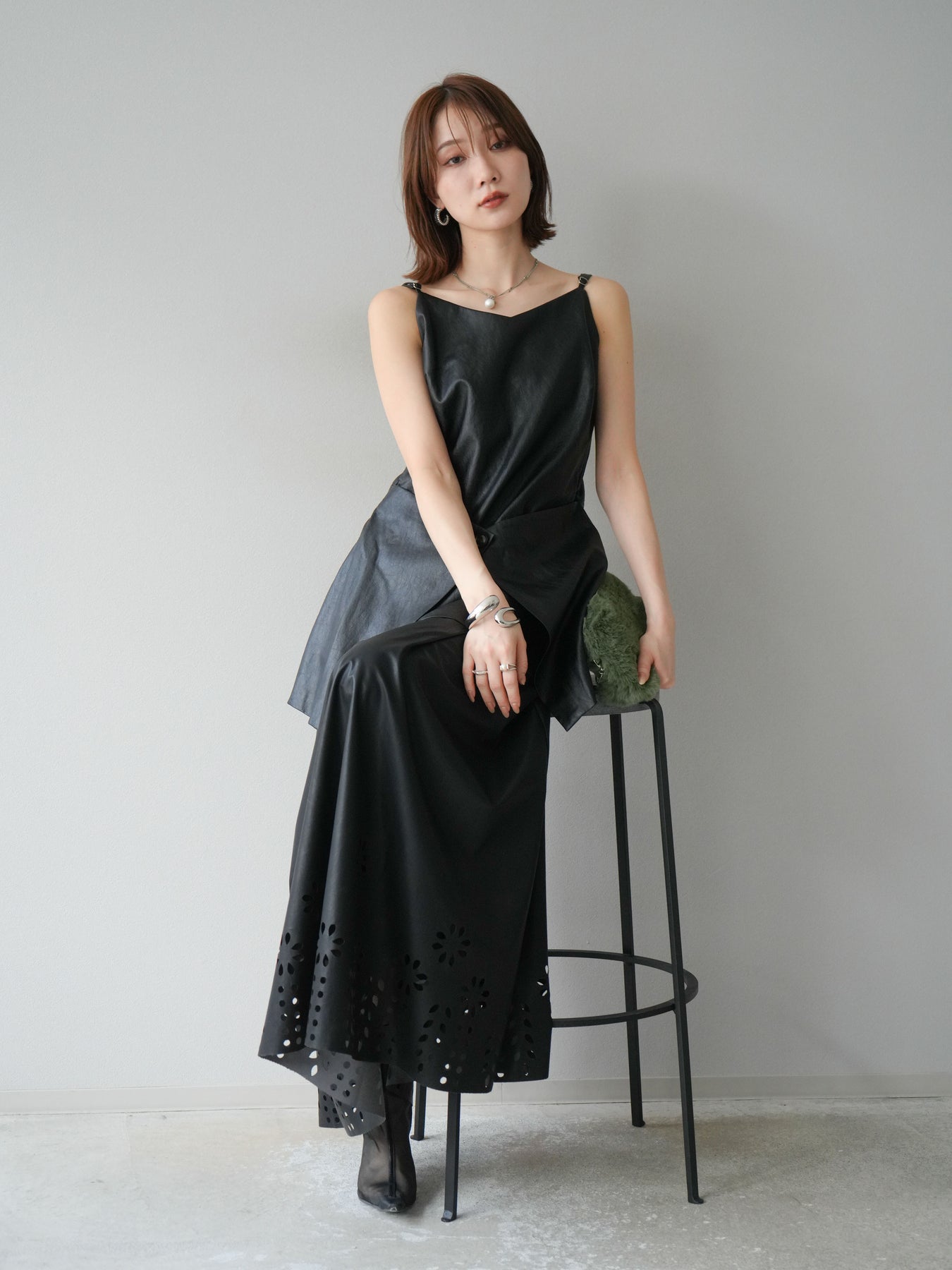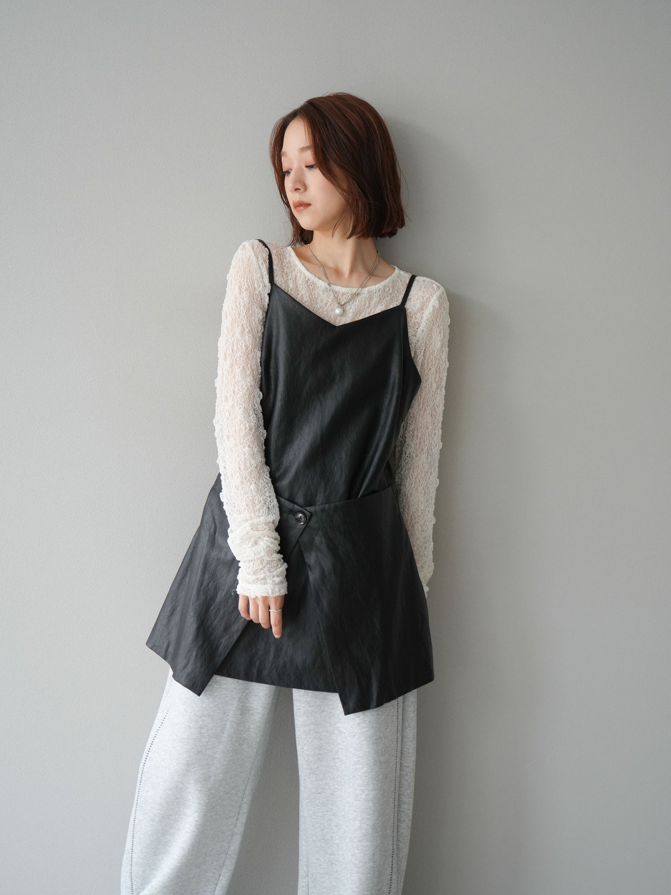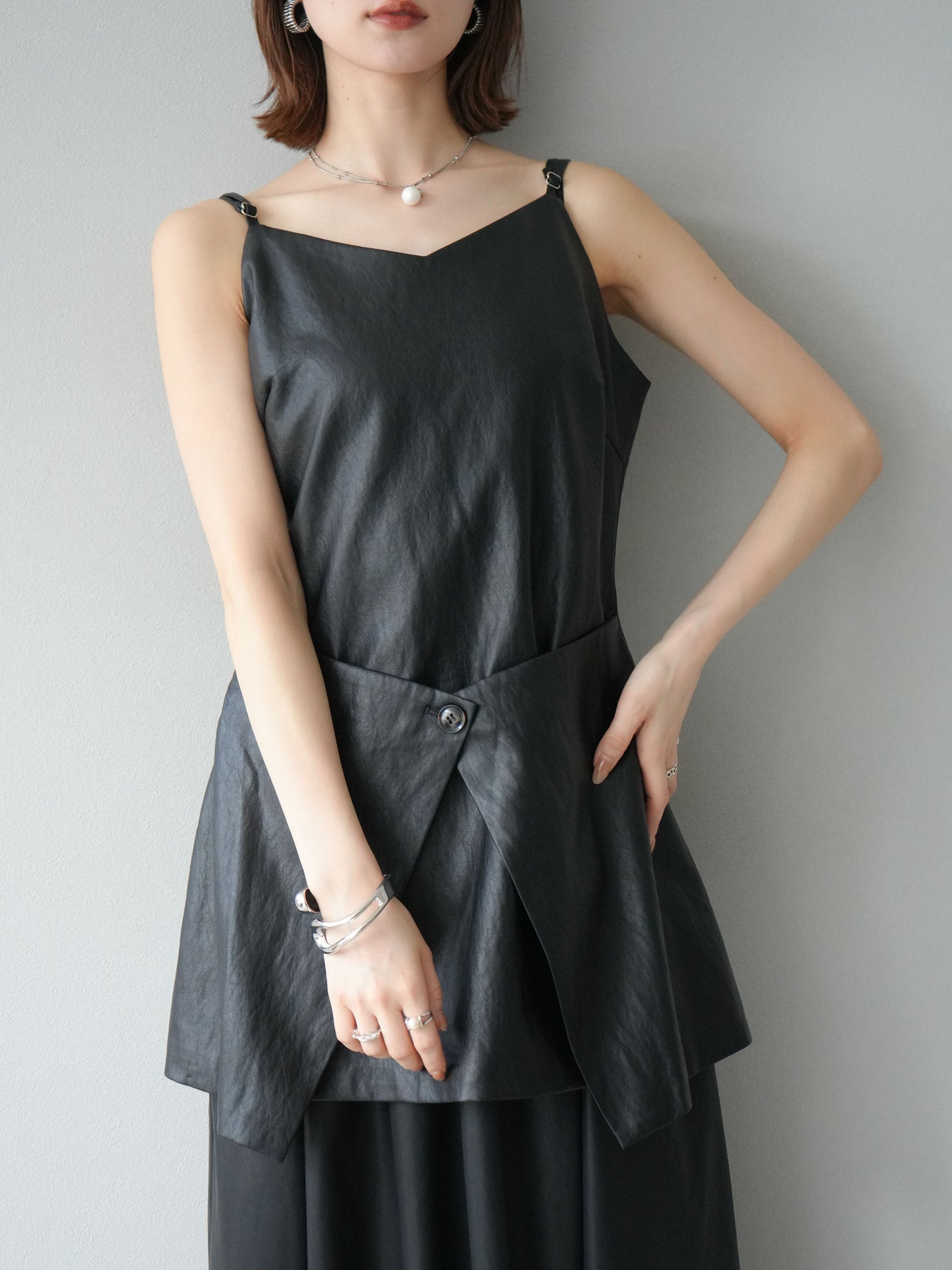 [予約]レイヤードレザーキャミソールチュニック/ブラック