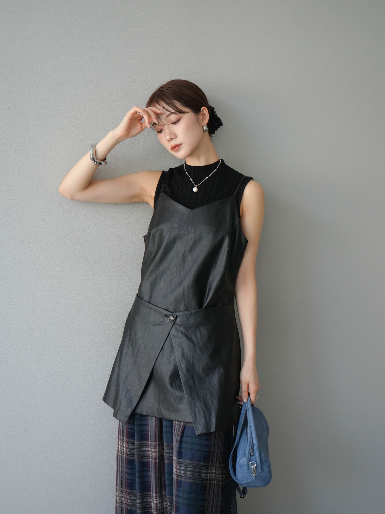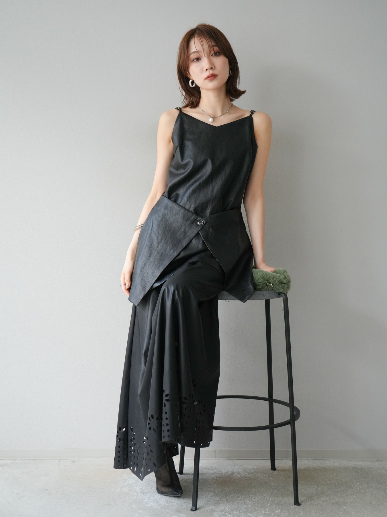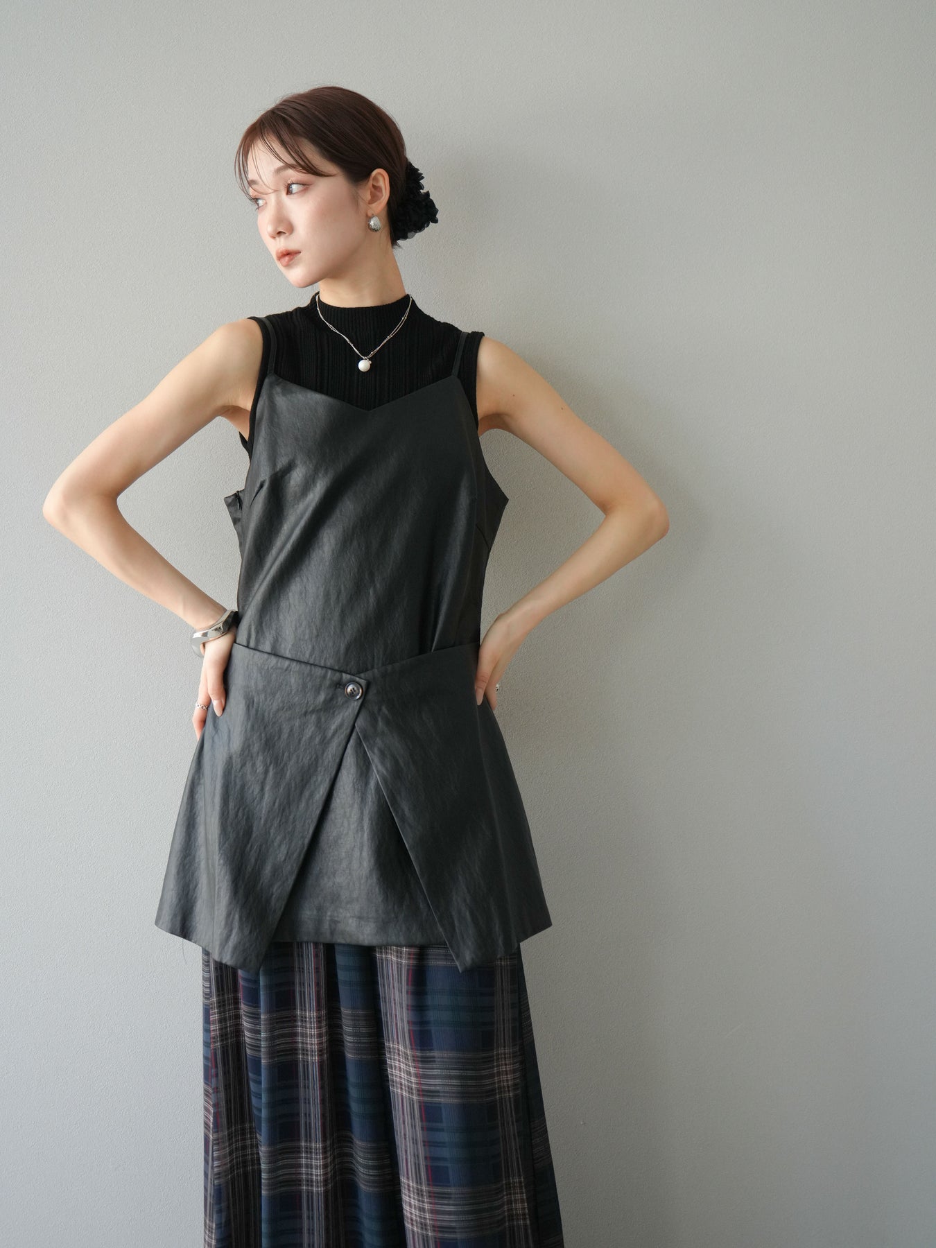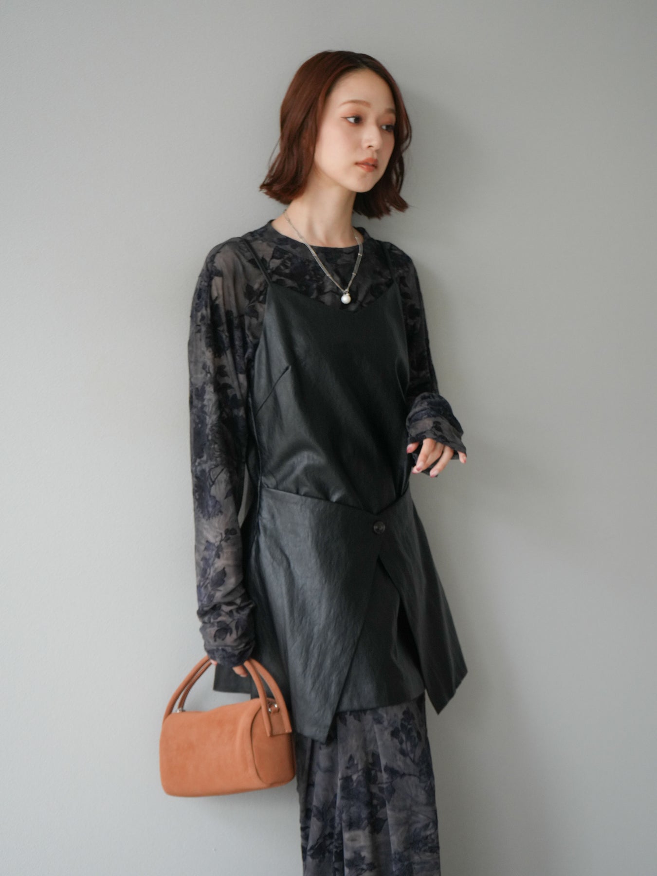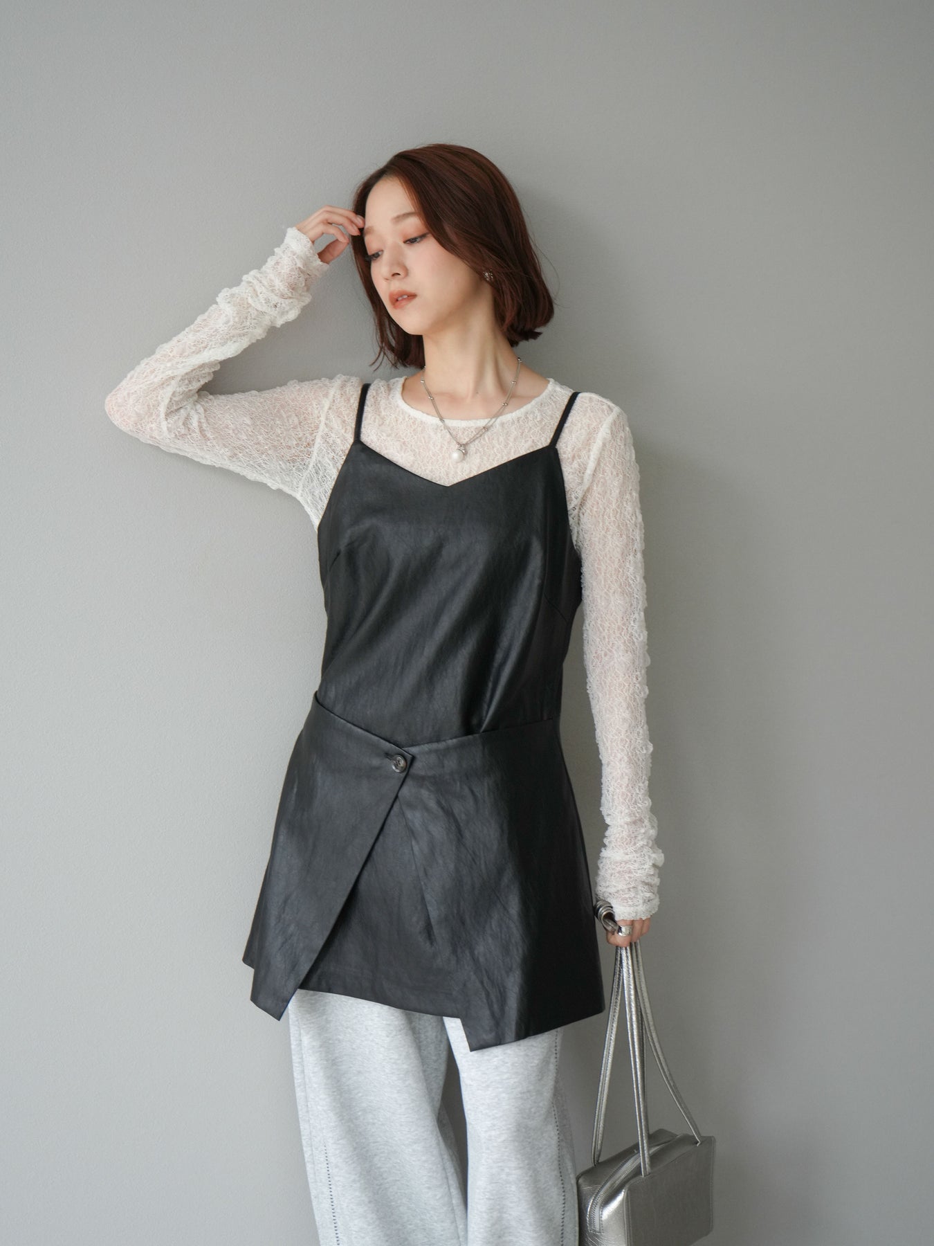 [予約]レイヤードレザーキャミソールチュニック/ブラック