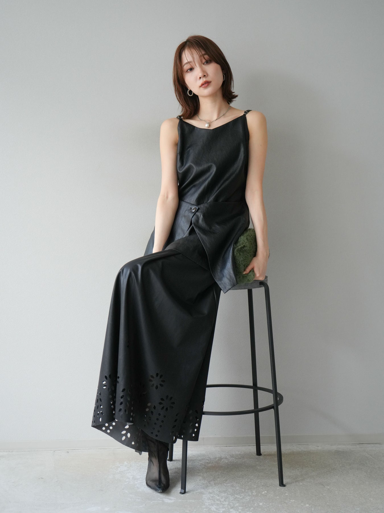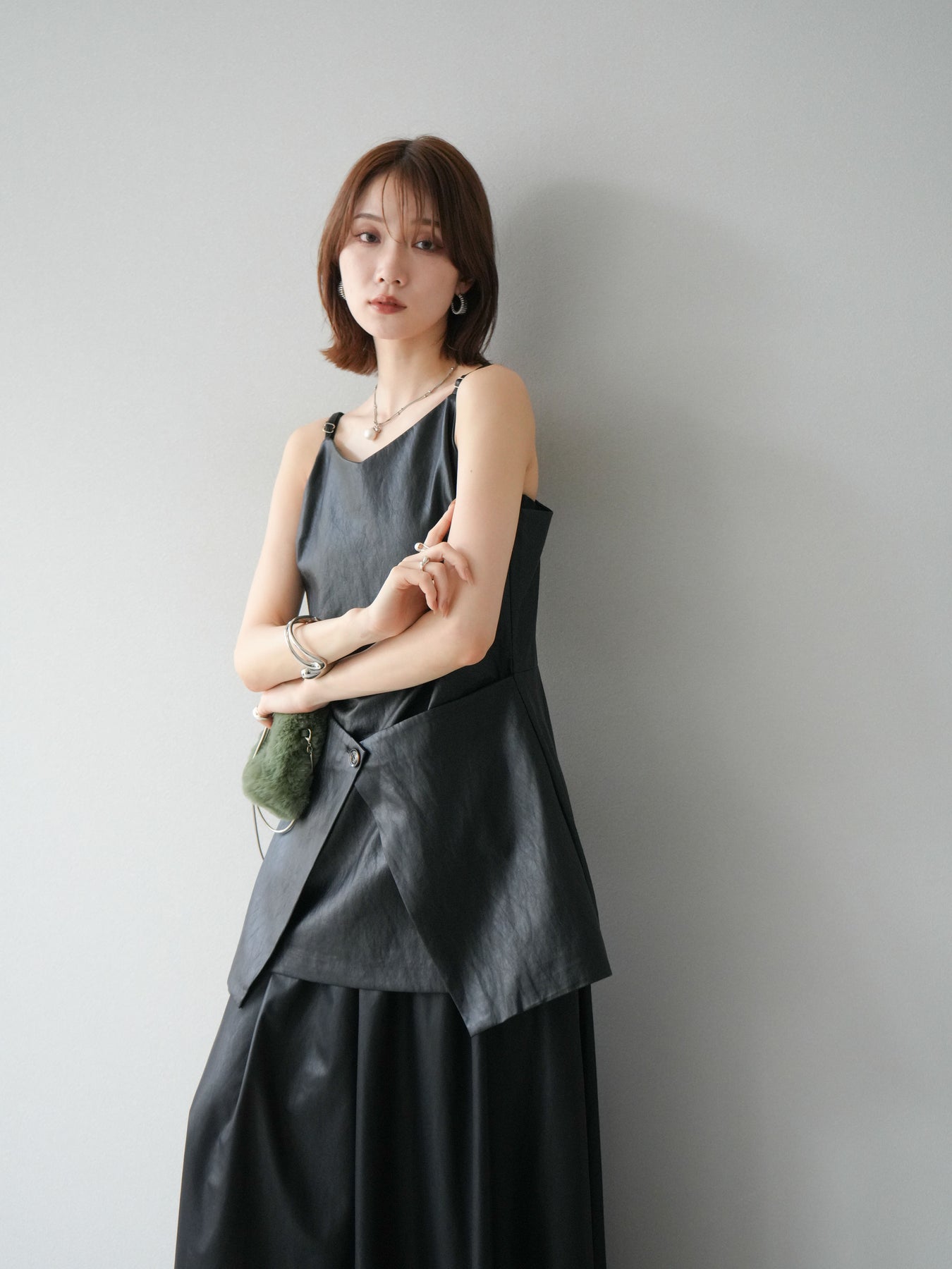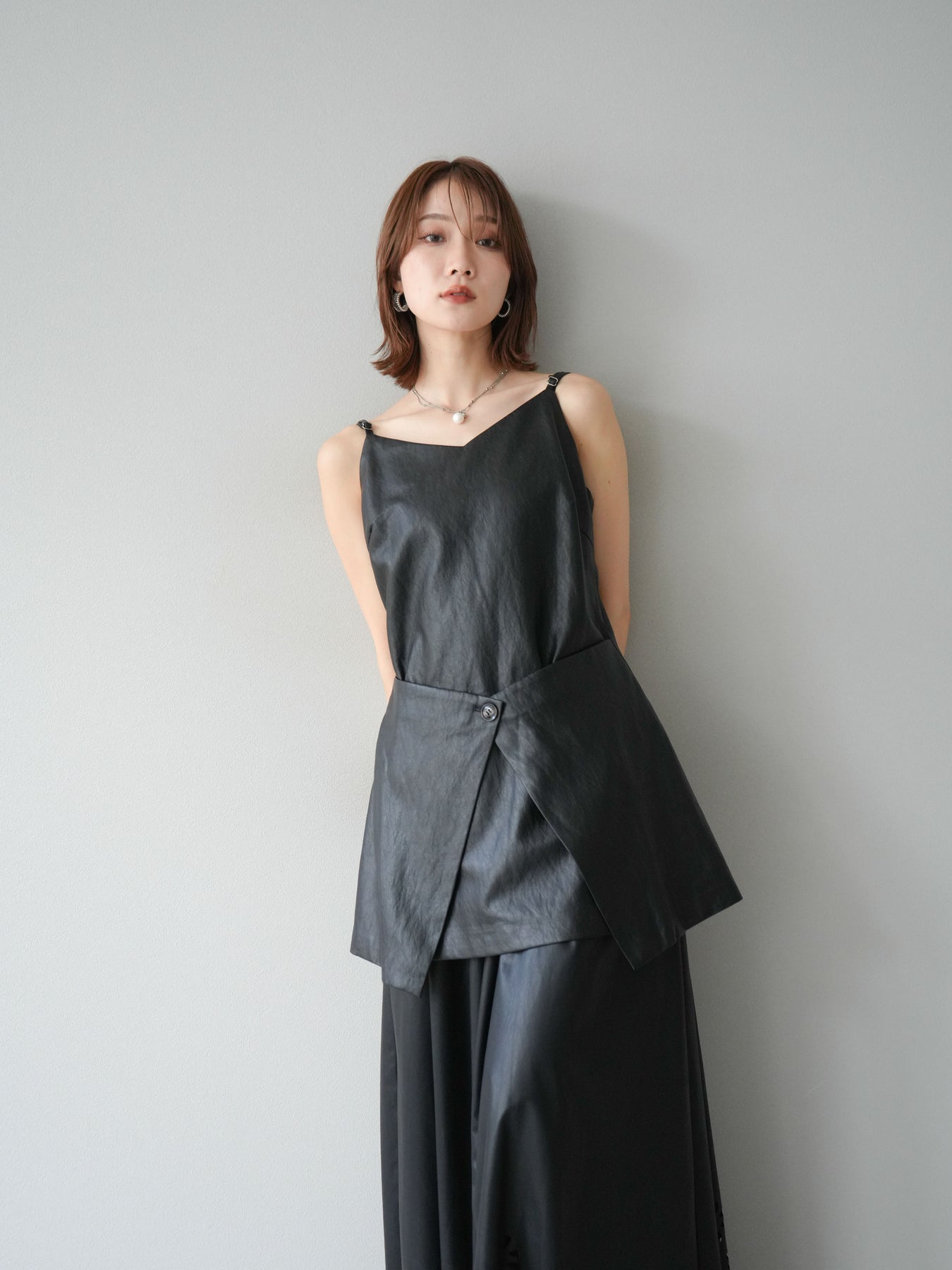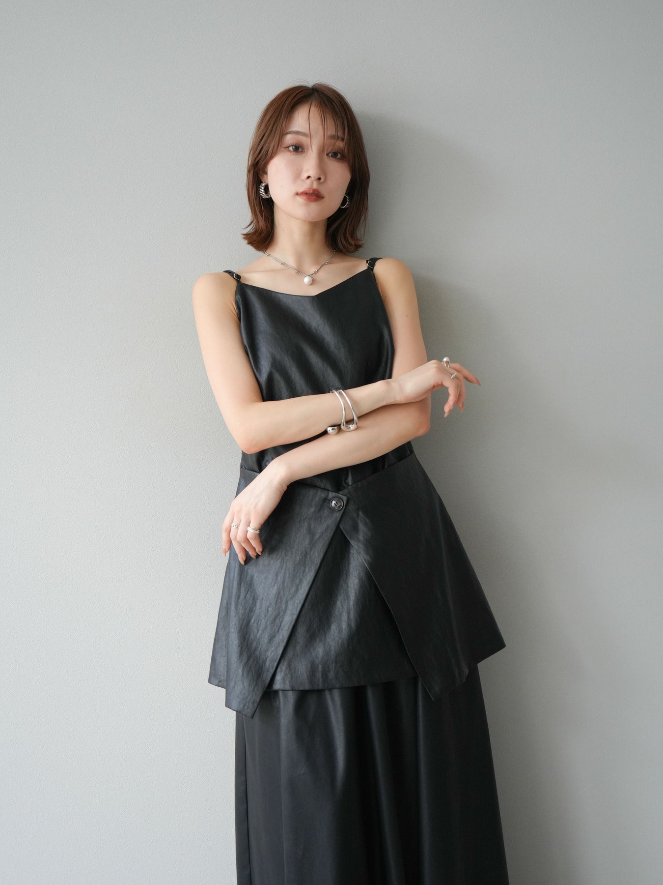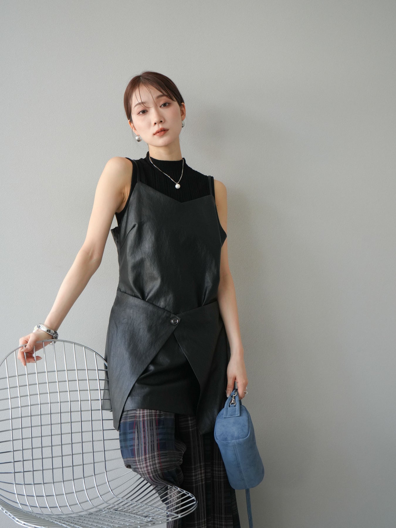 [予約]レイヤードレザーキャミソールチュニック/ブラック