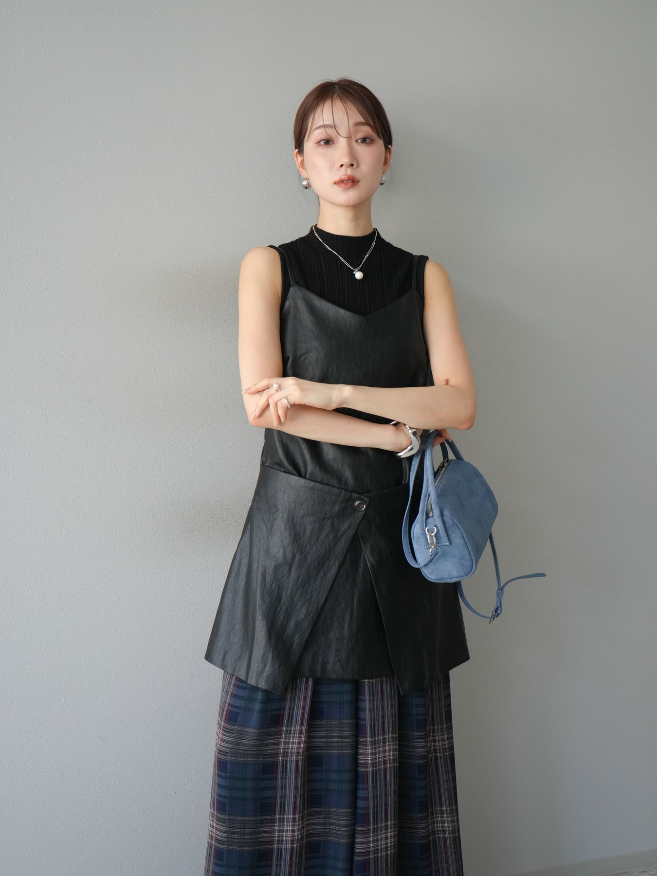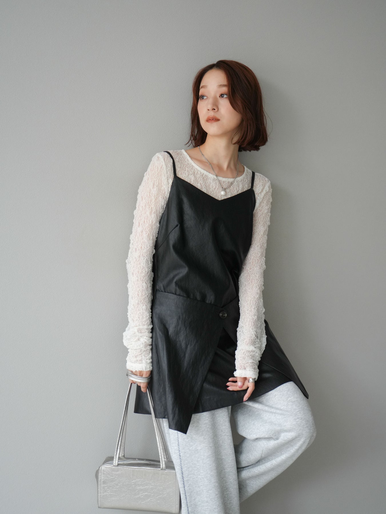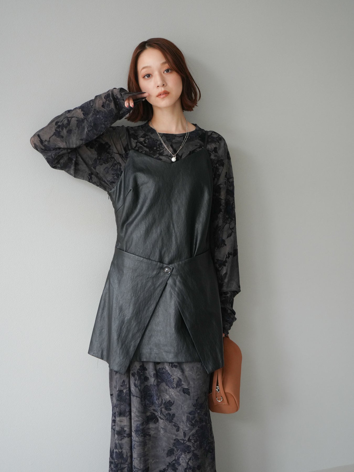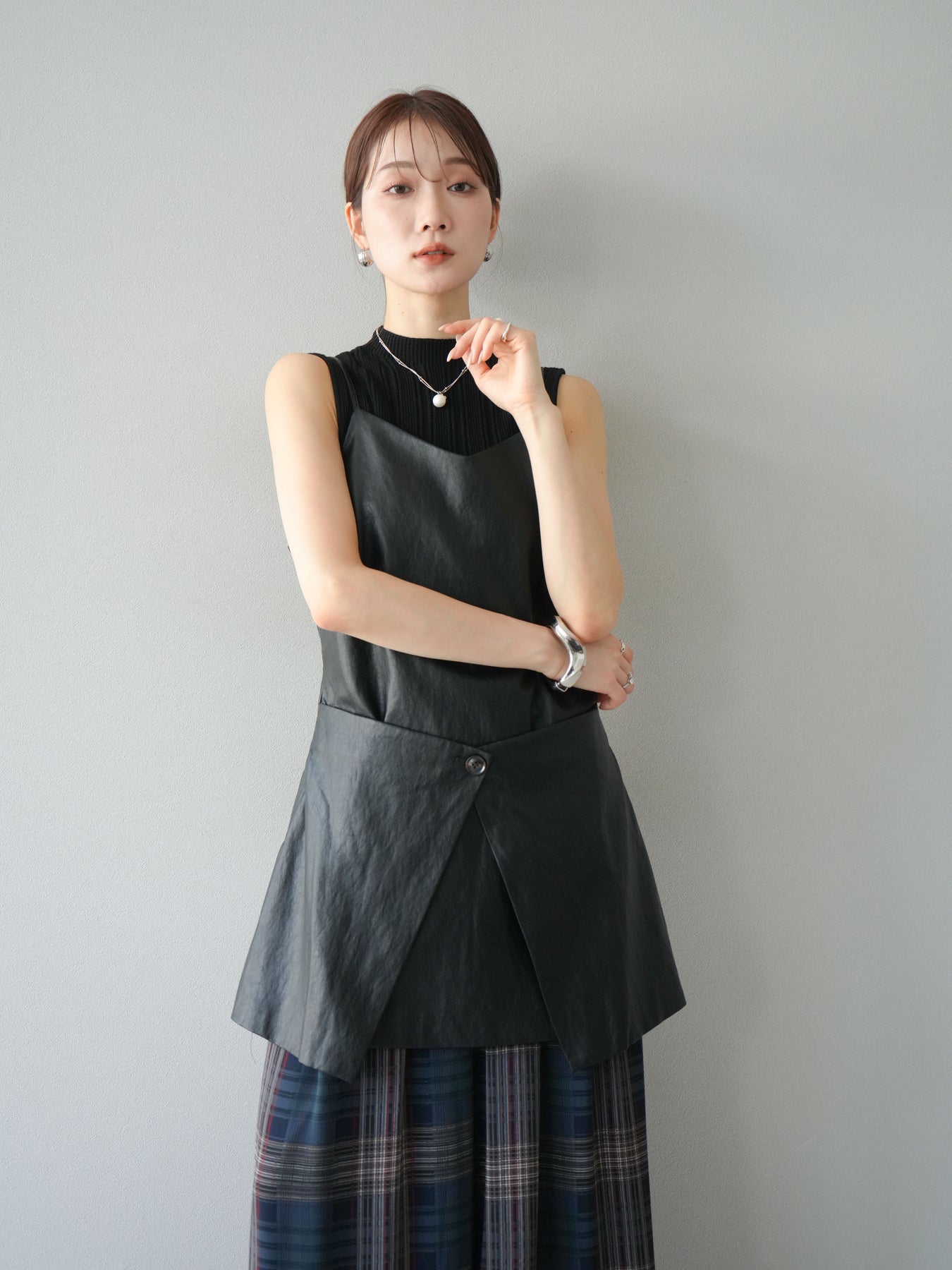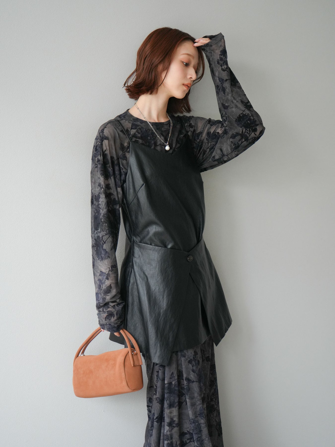 [予約]レイヤードレザーキャミソールチュニック/ブラック