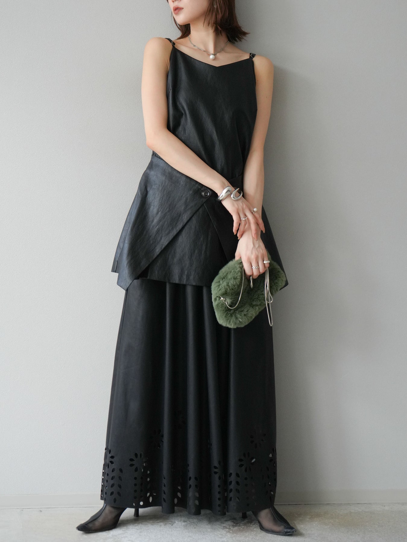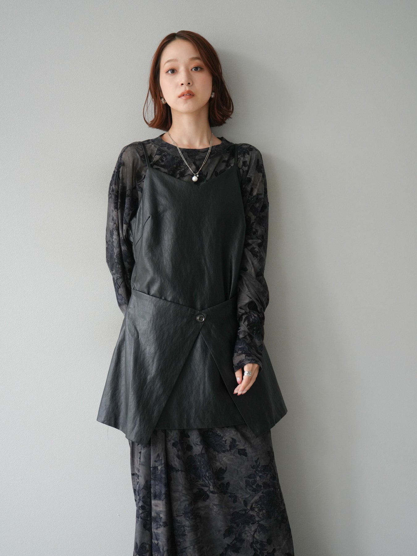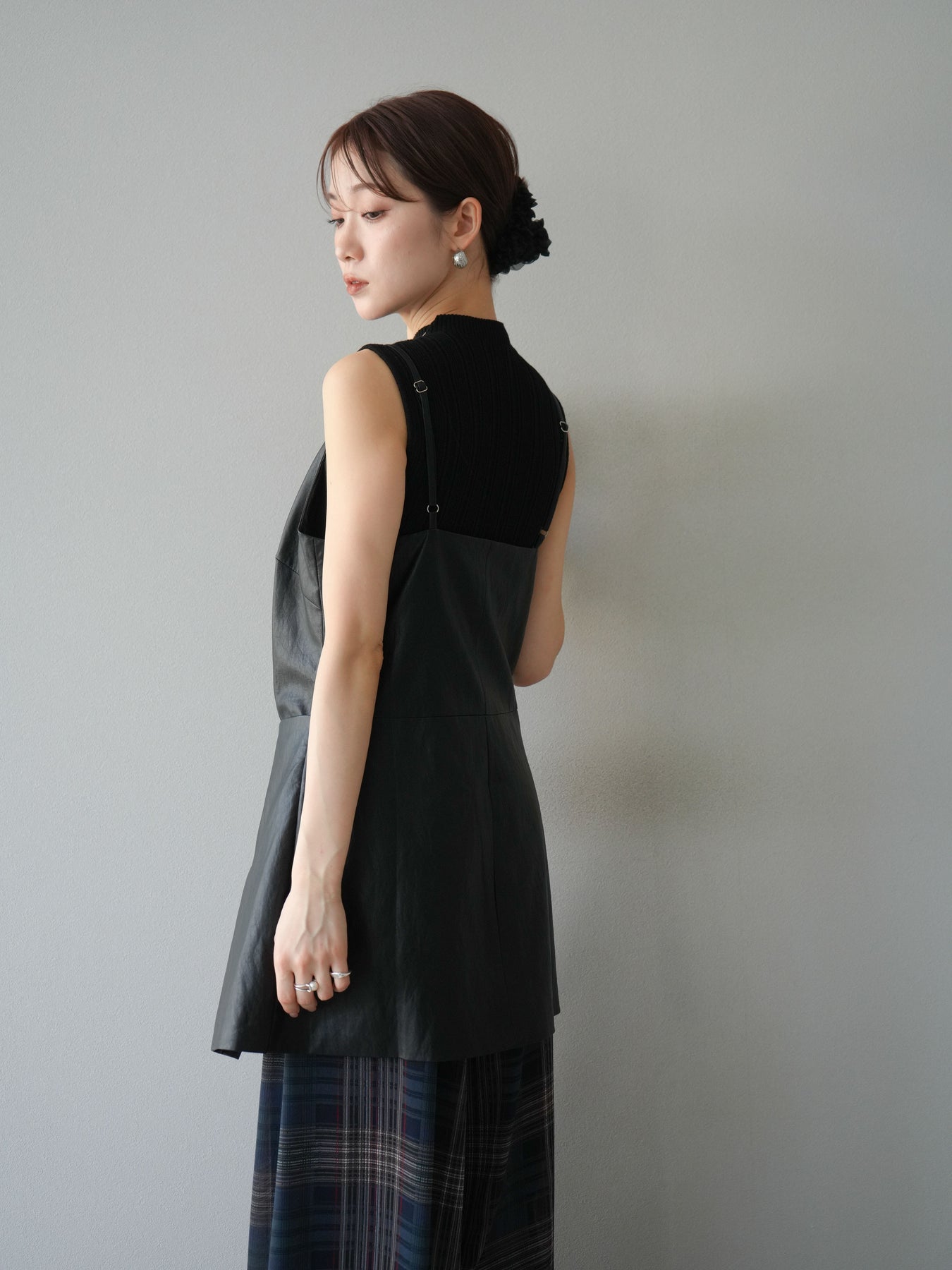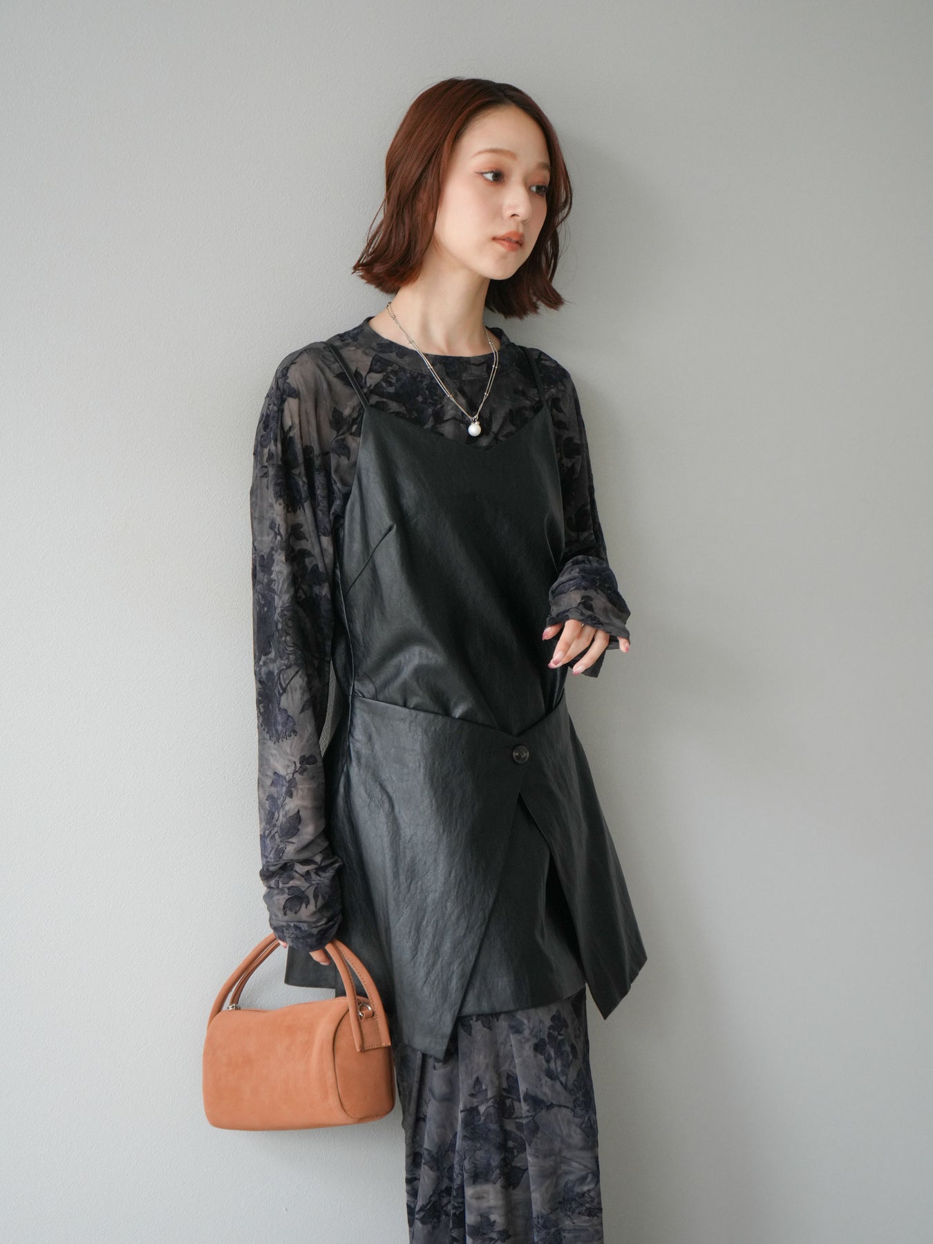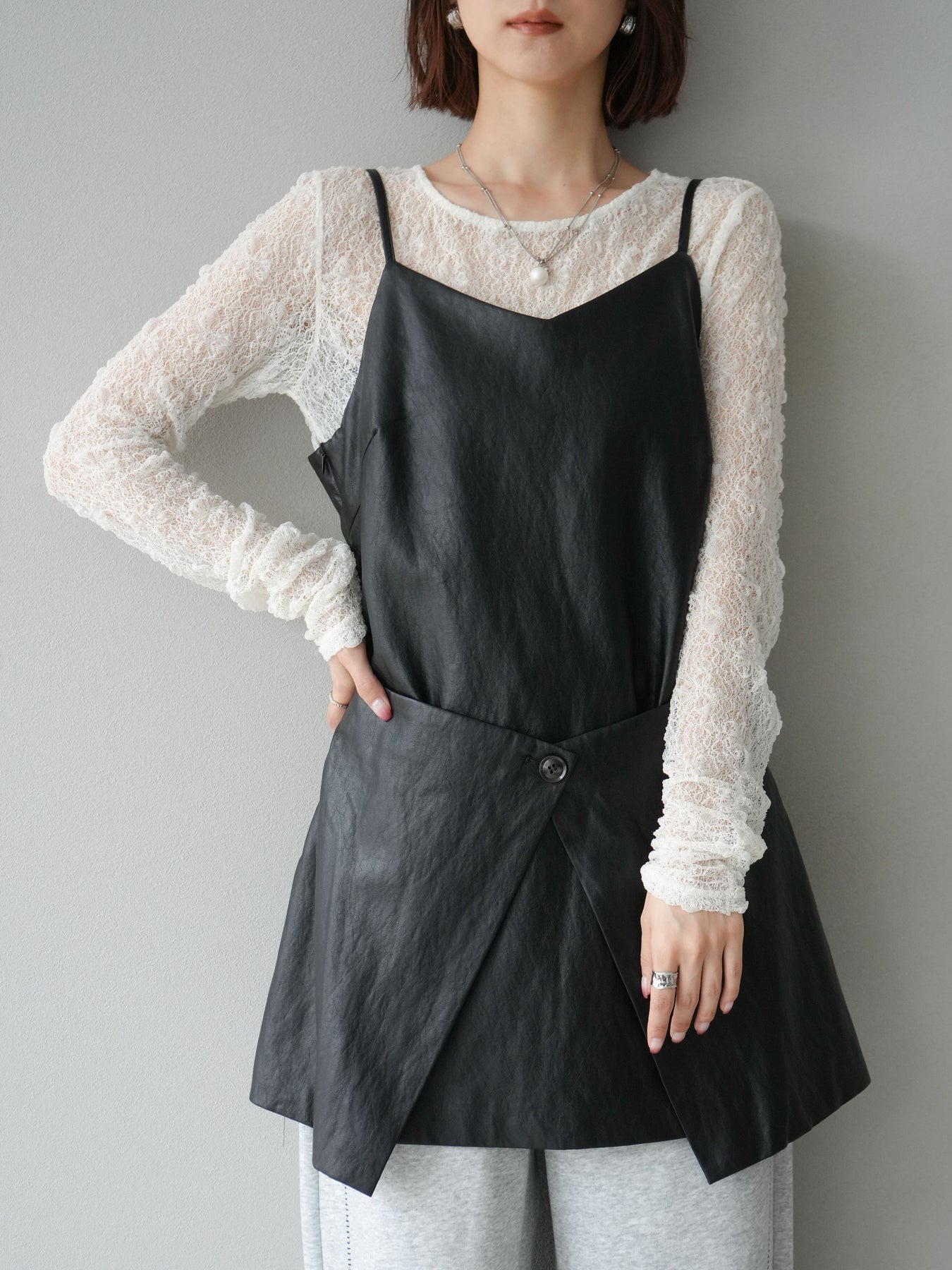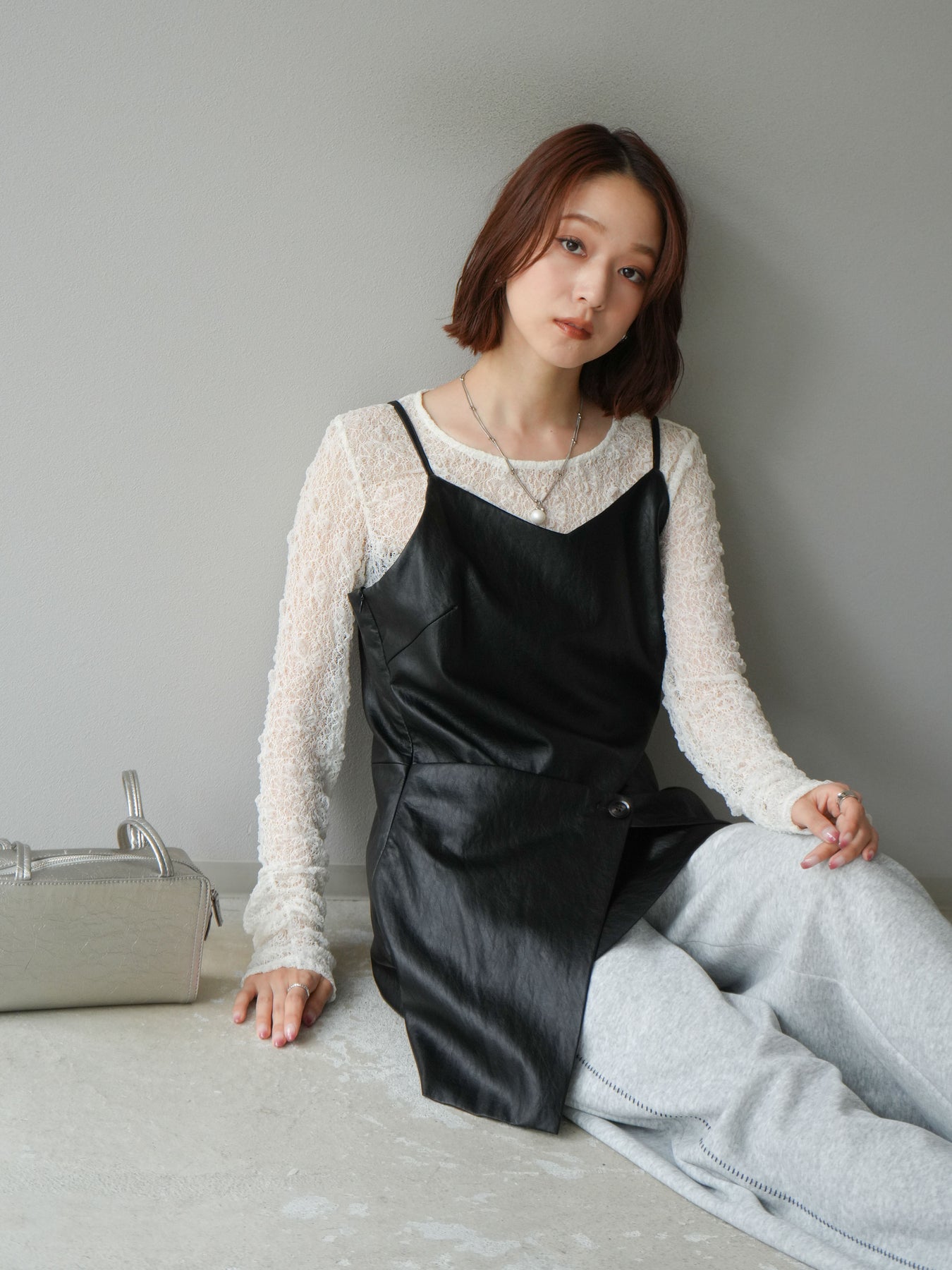 [予約]レイヤードレザーキャミソールチュニック/ブラック