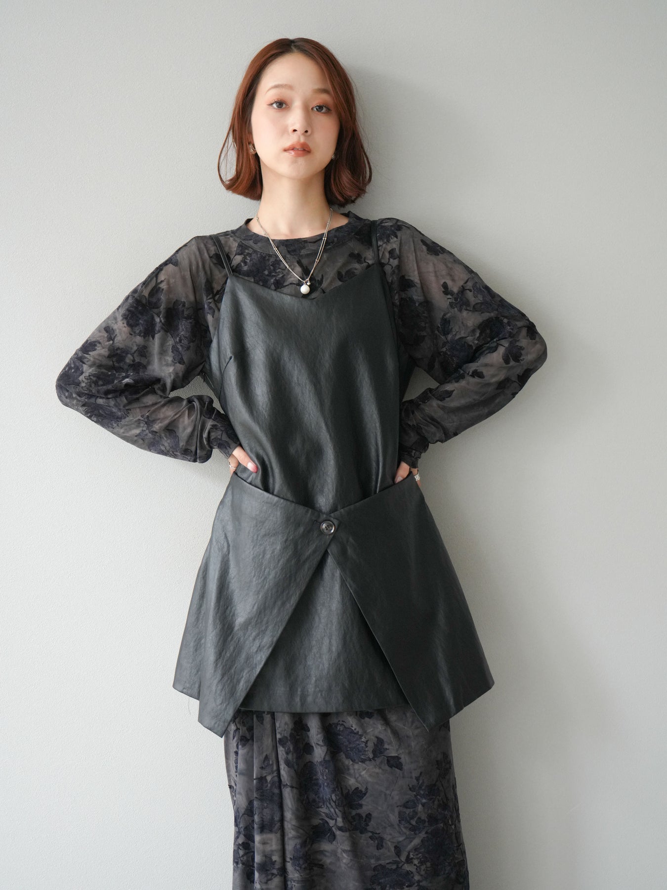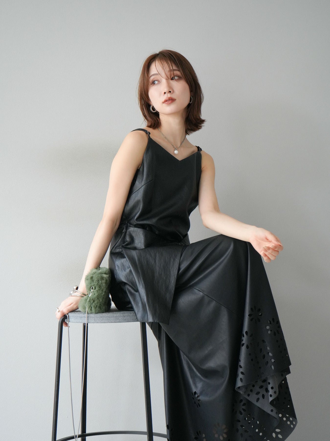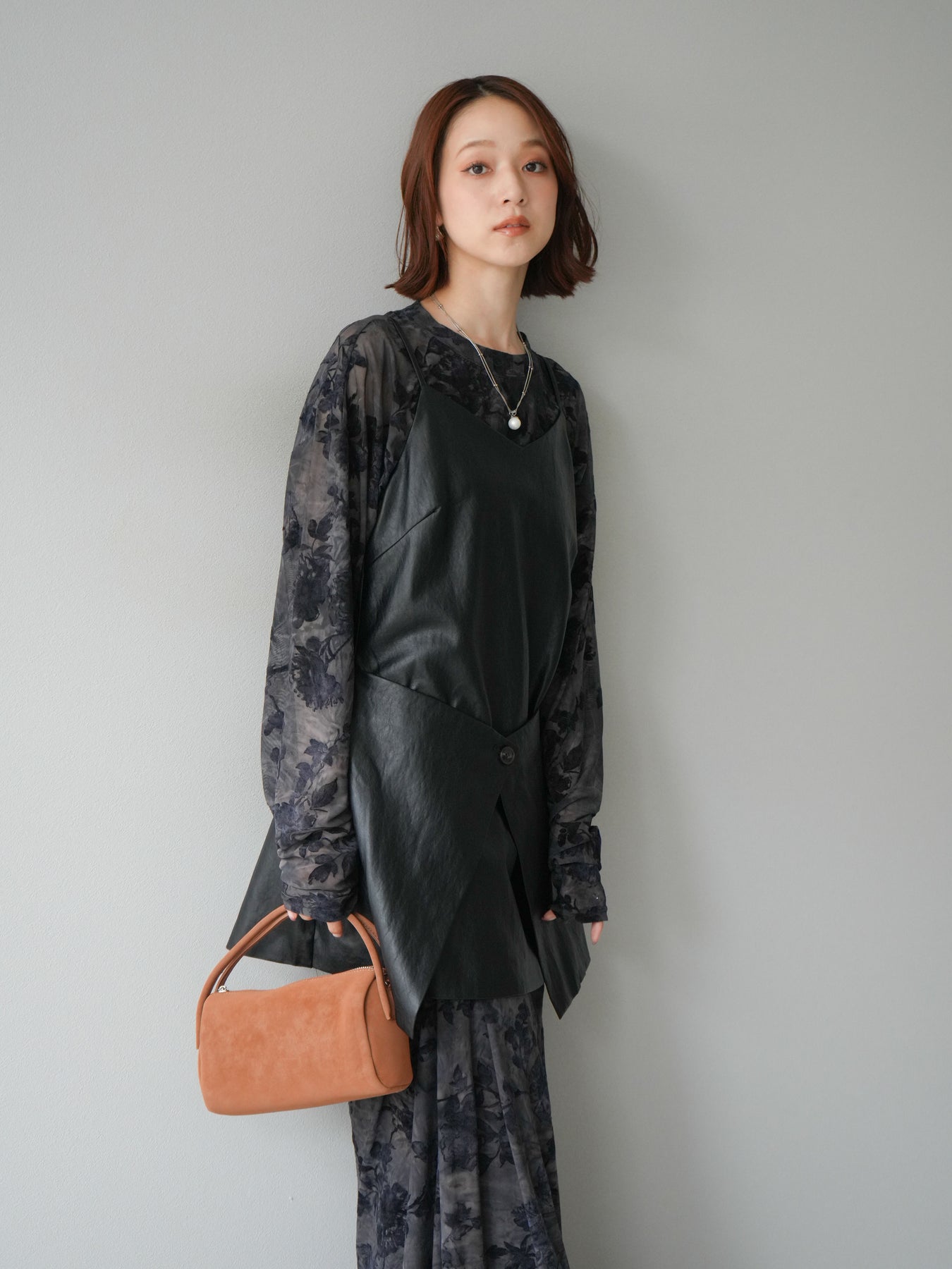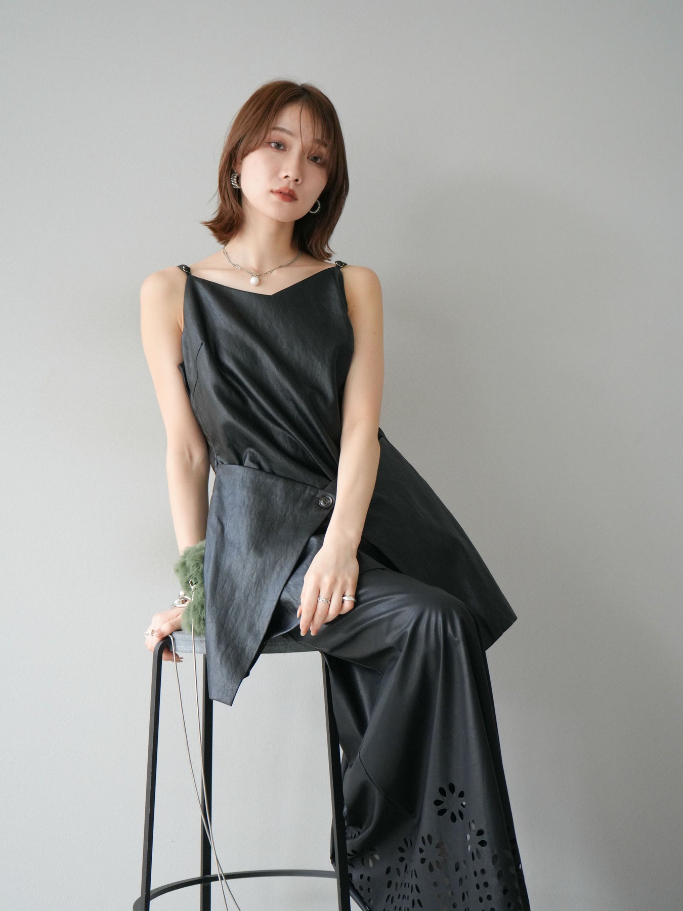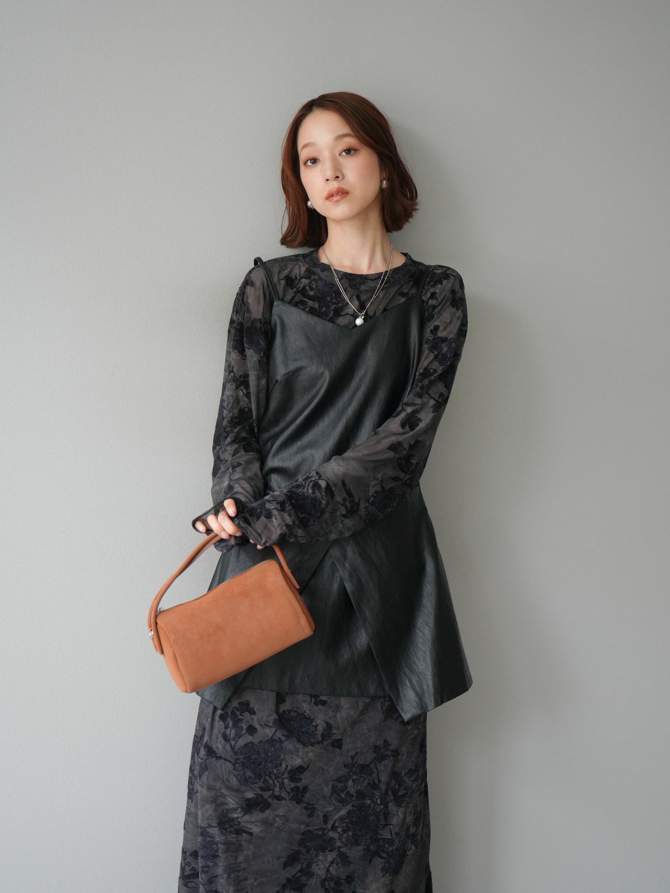 [予約]レイヤードレザーキャミソールチュニック/ブラック