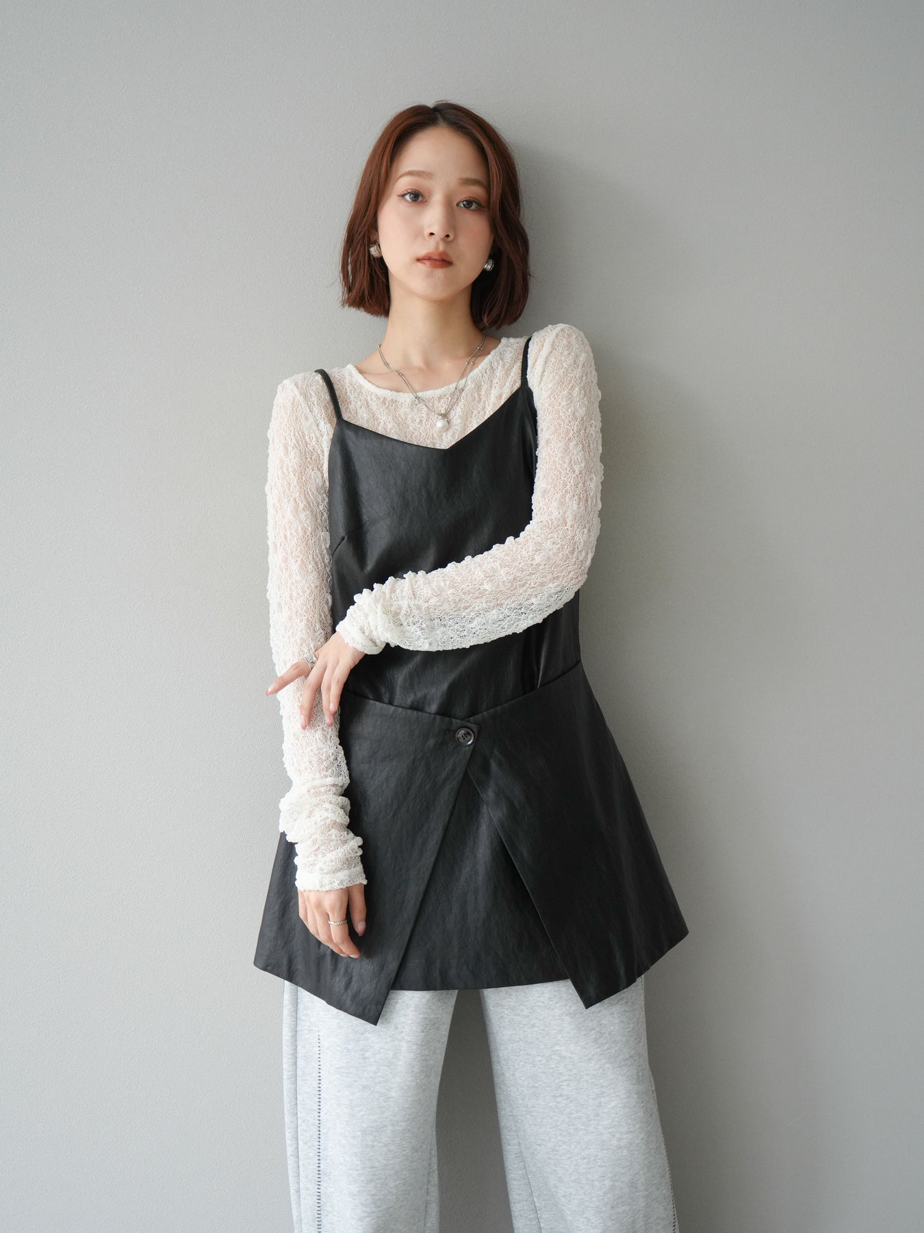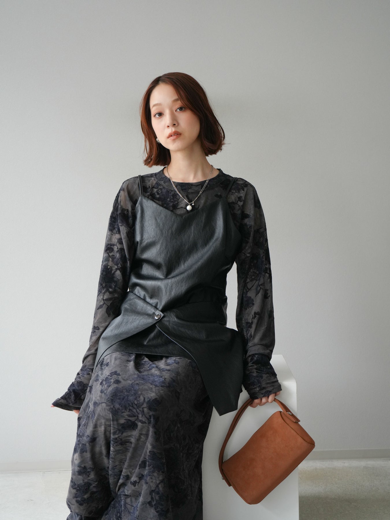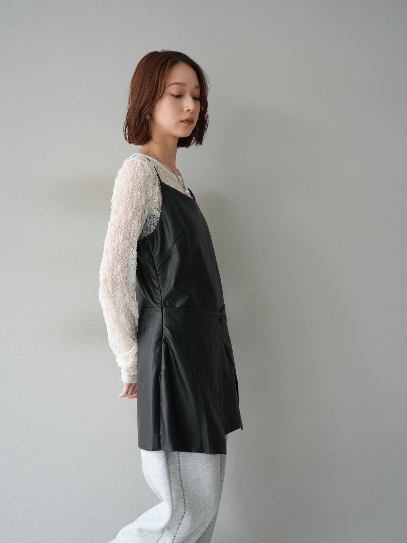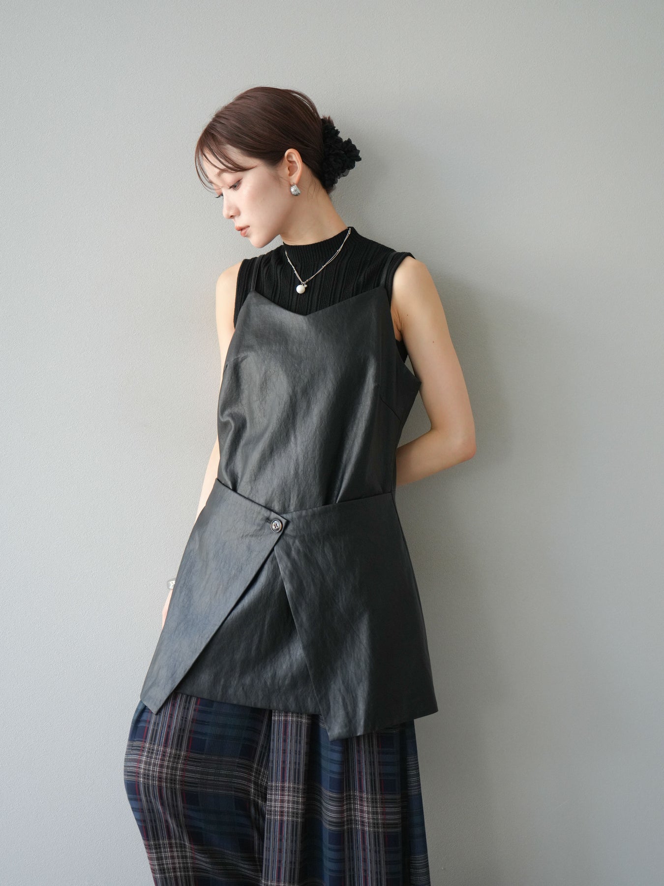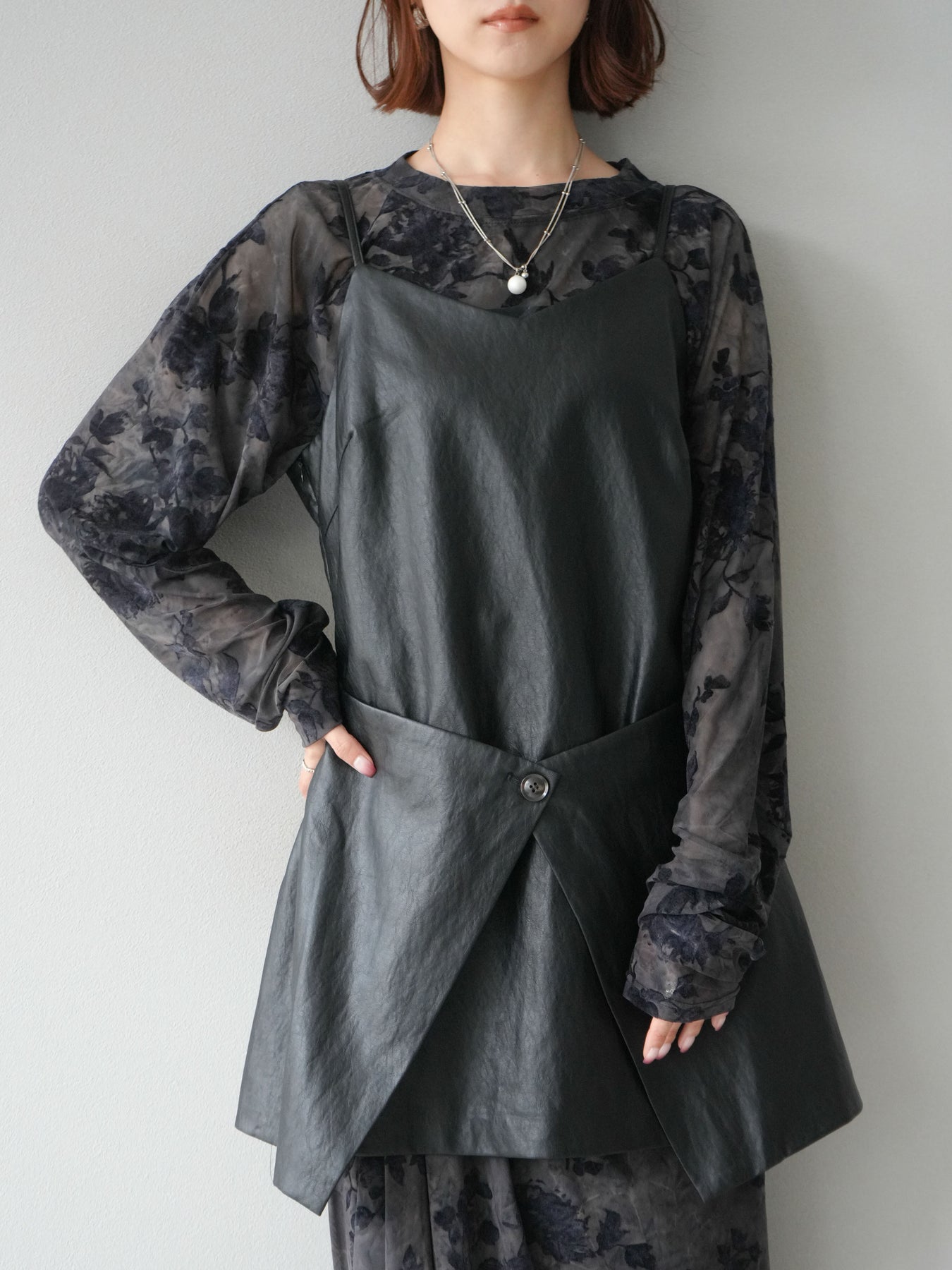 [予約]レイヤードレザーキャミソールチュニック/ブラック