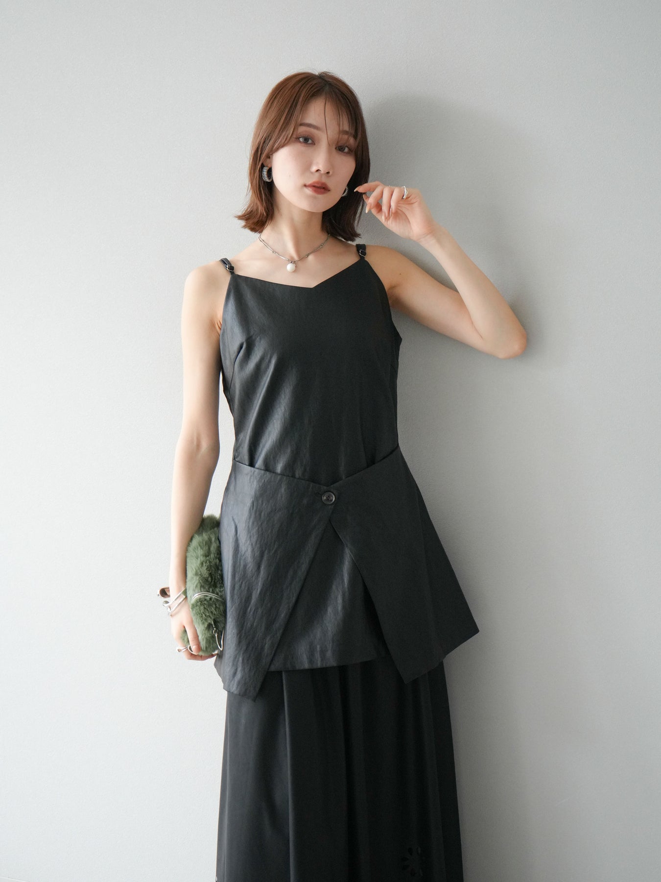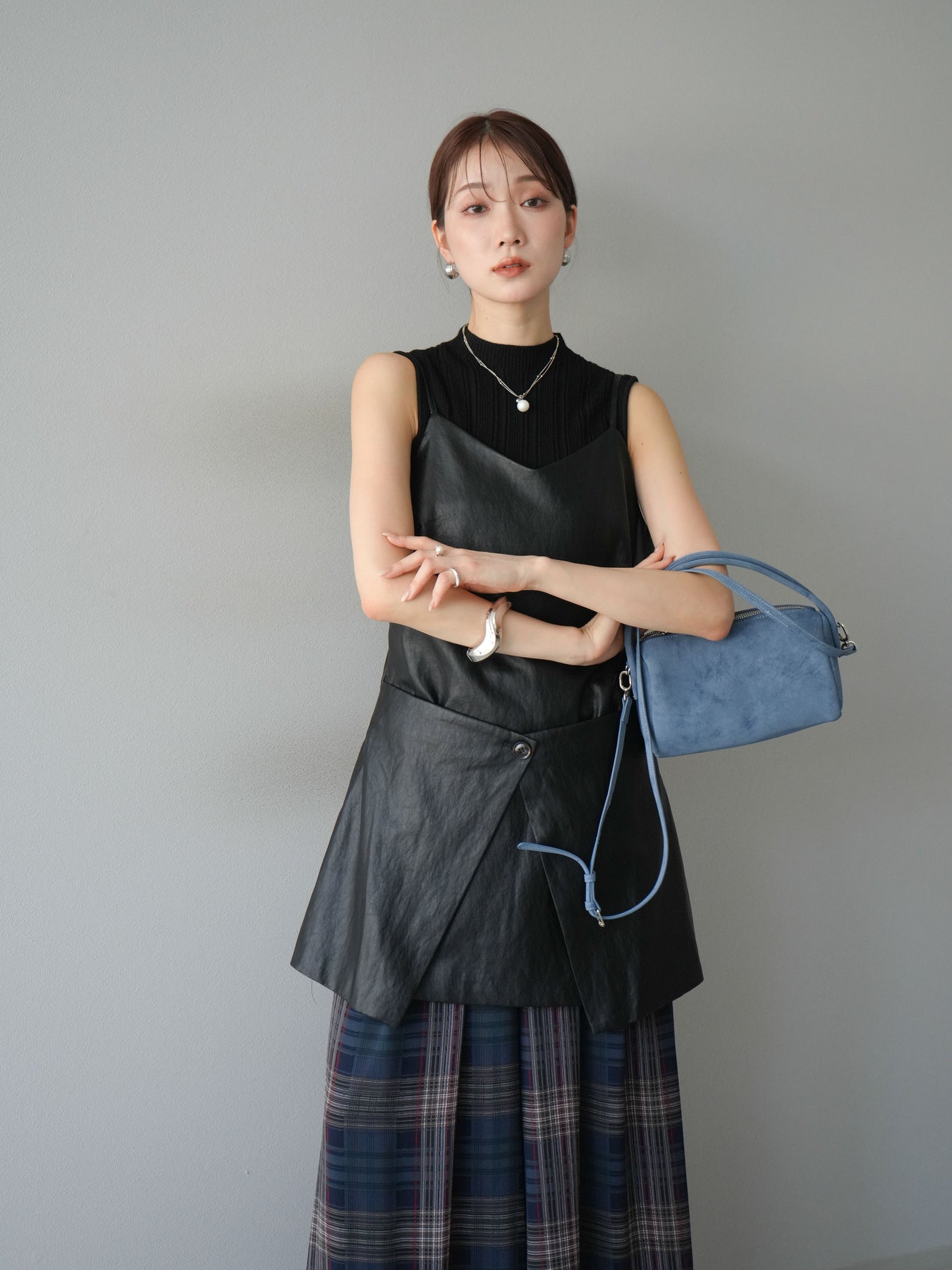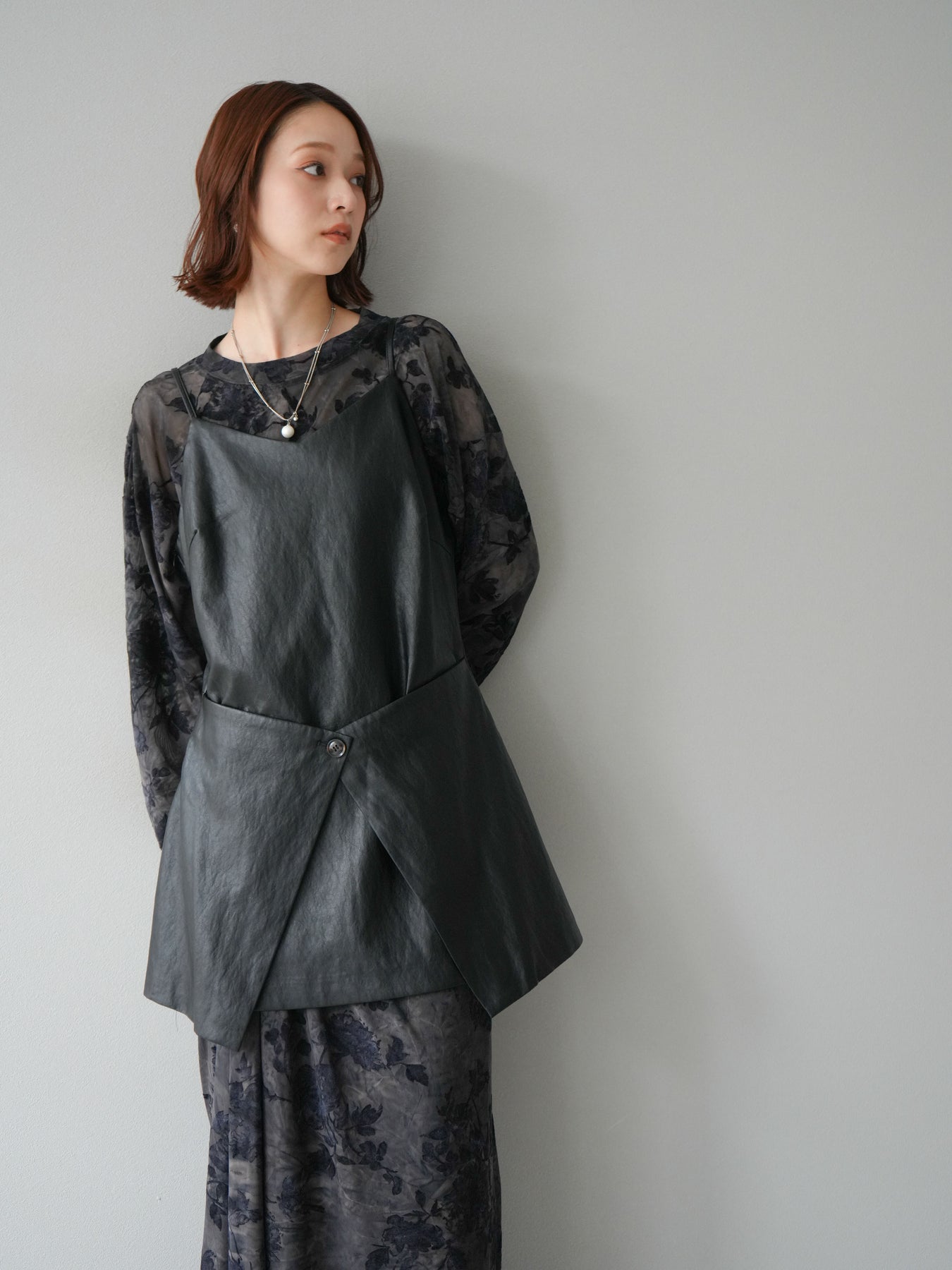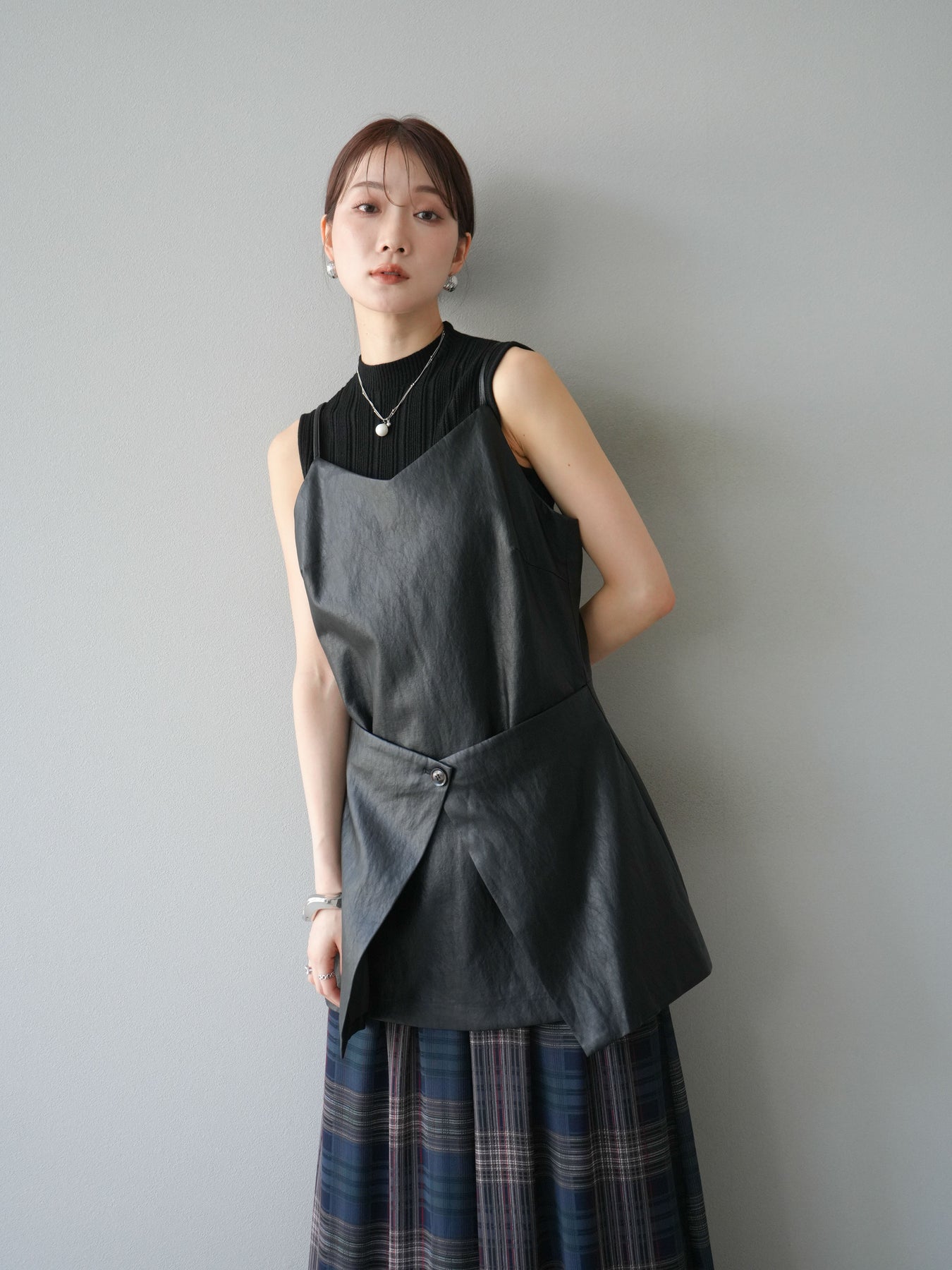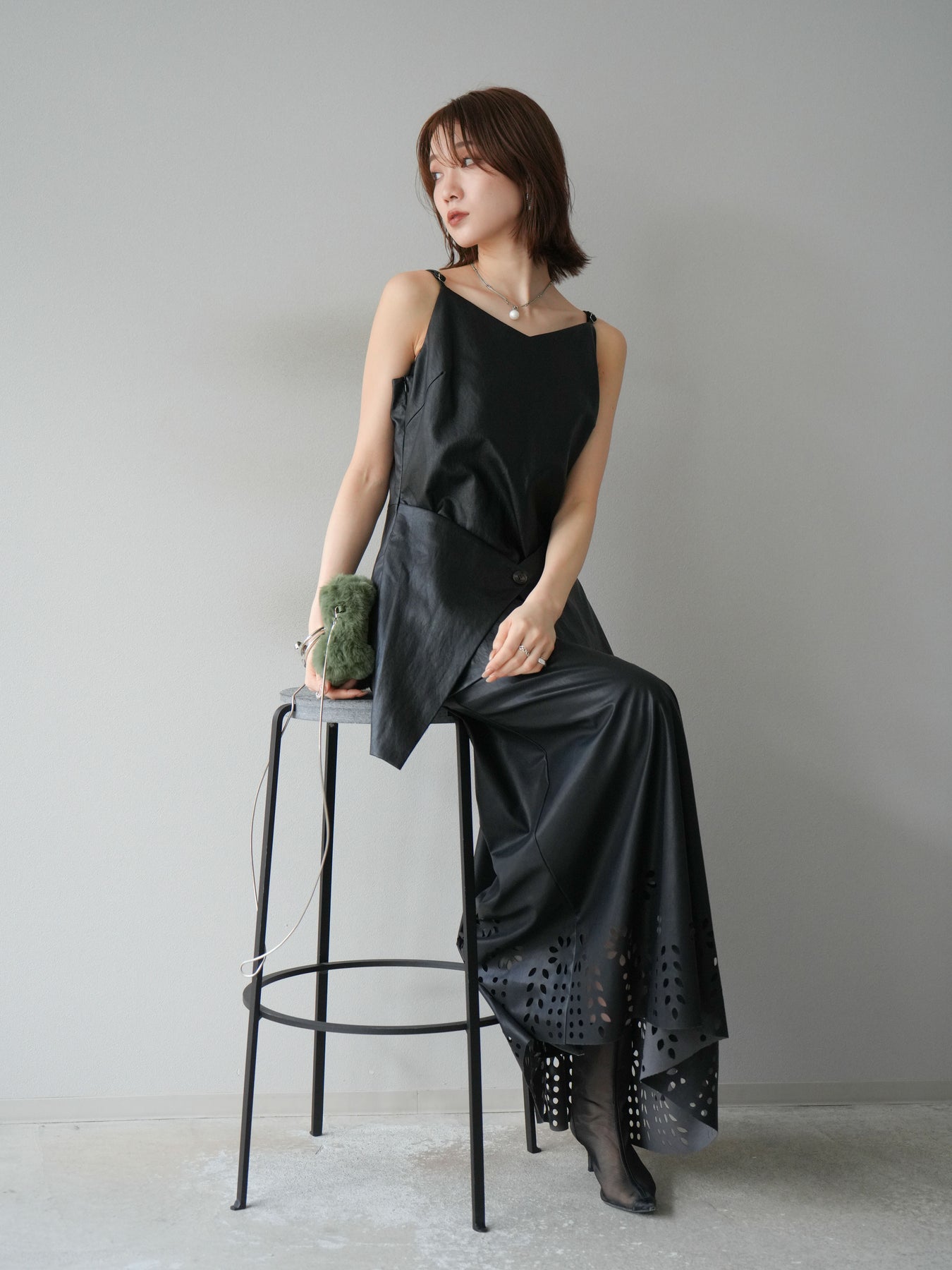 [予約]レイヤードレザーキャミソールチュニック/ブラック