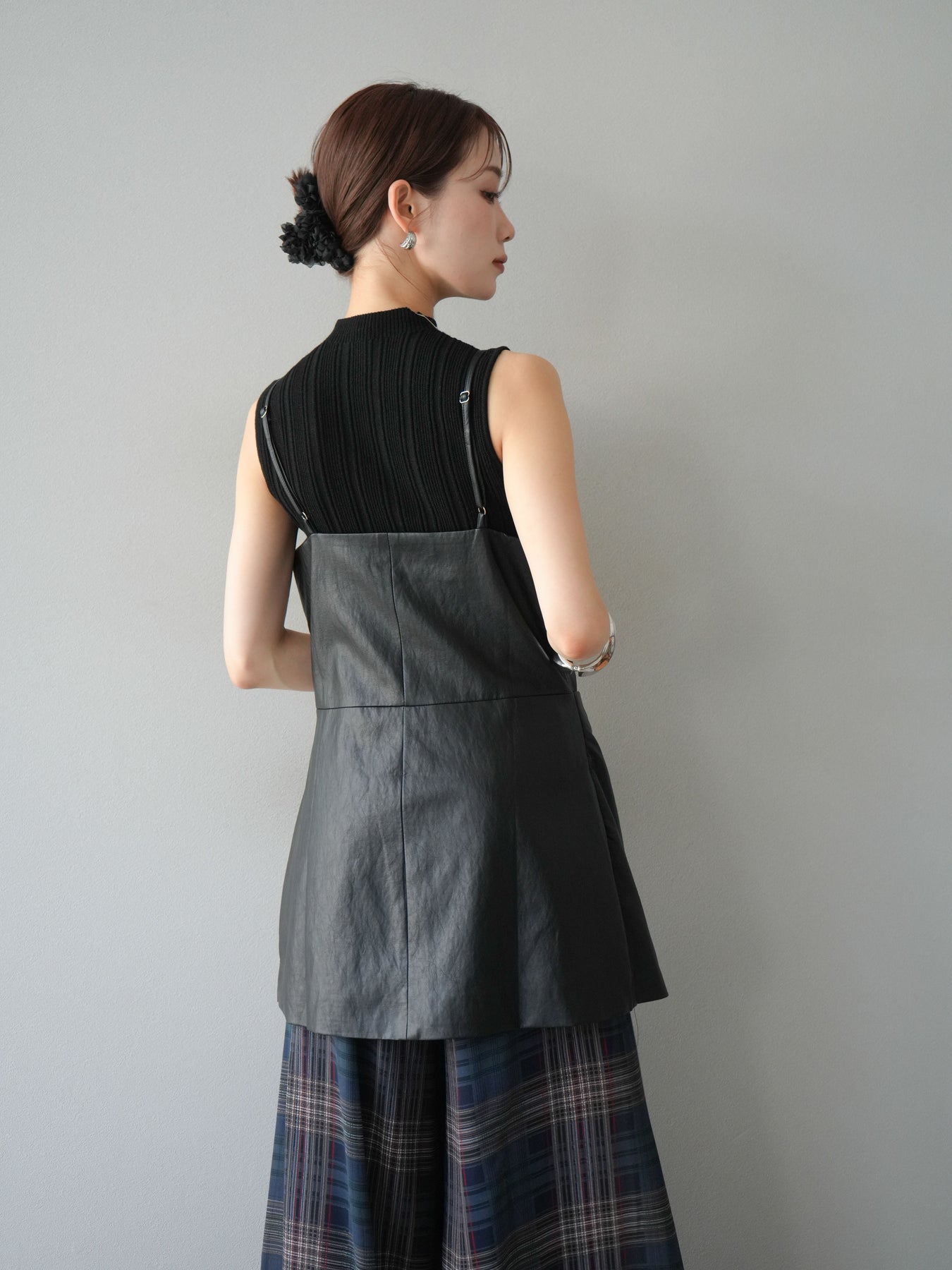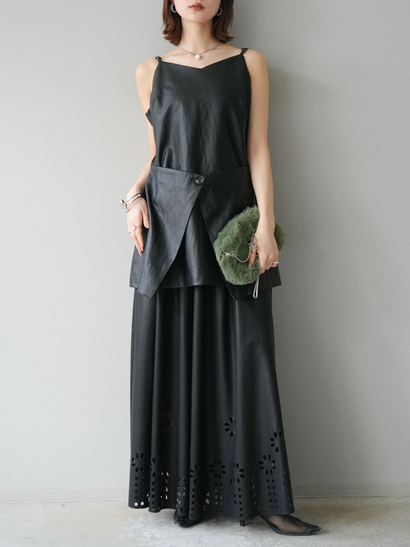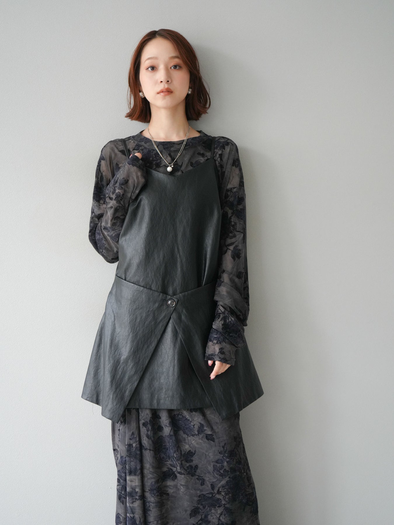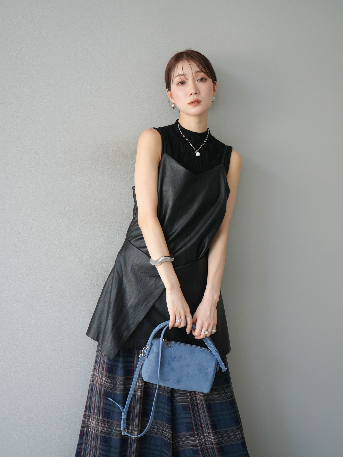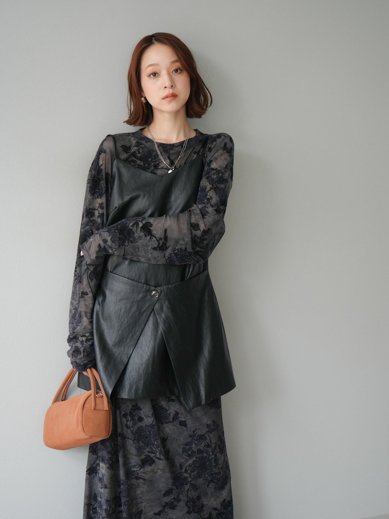 [予約]レイヤードレザーキャミソールチュニック/ブラック