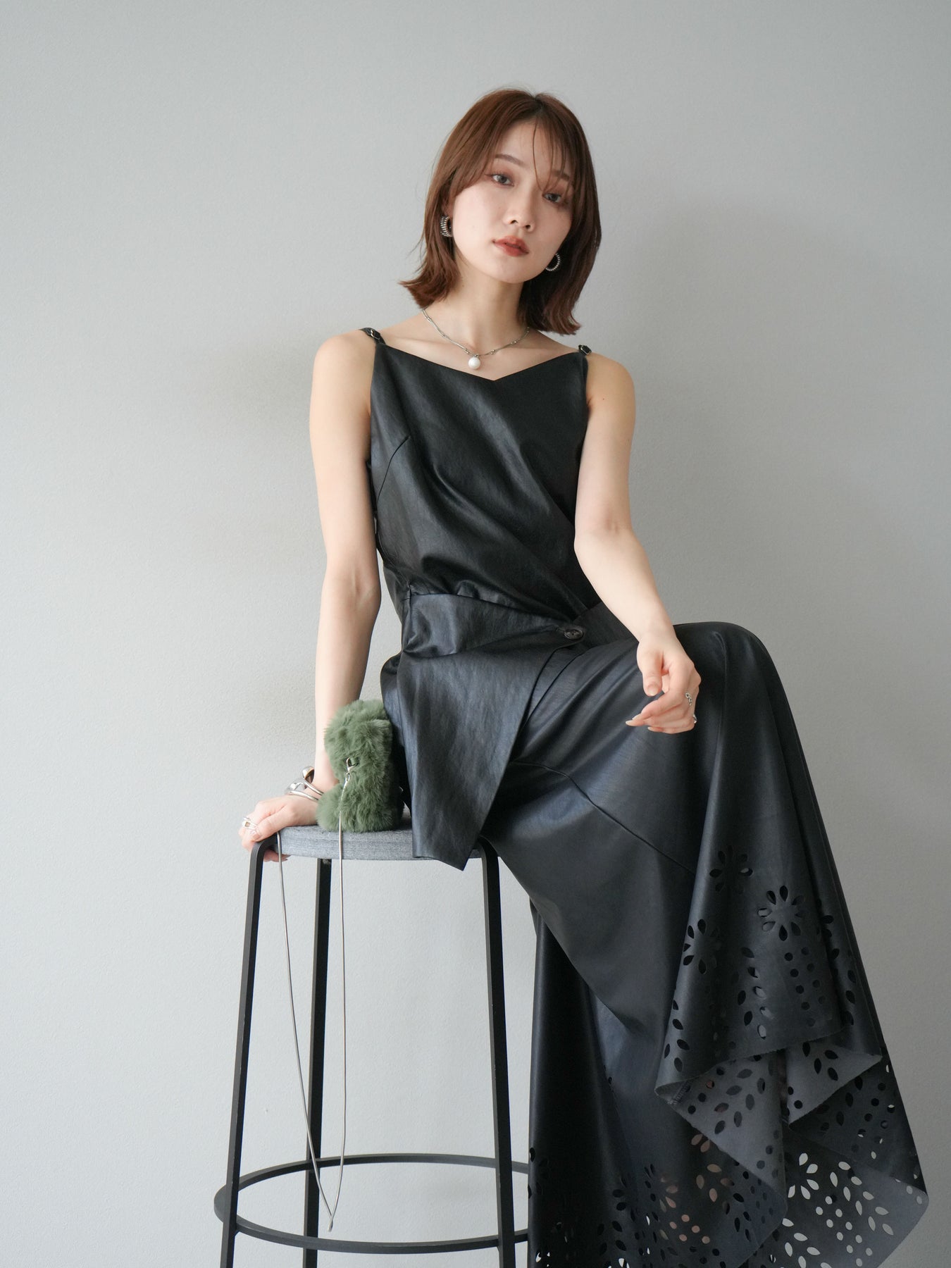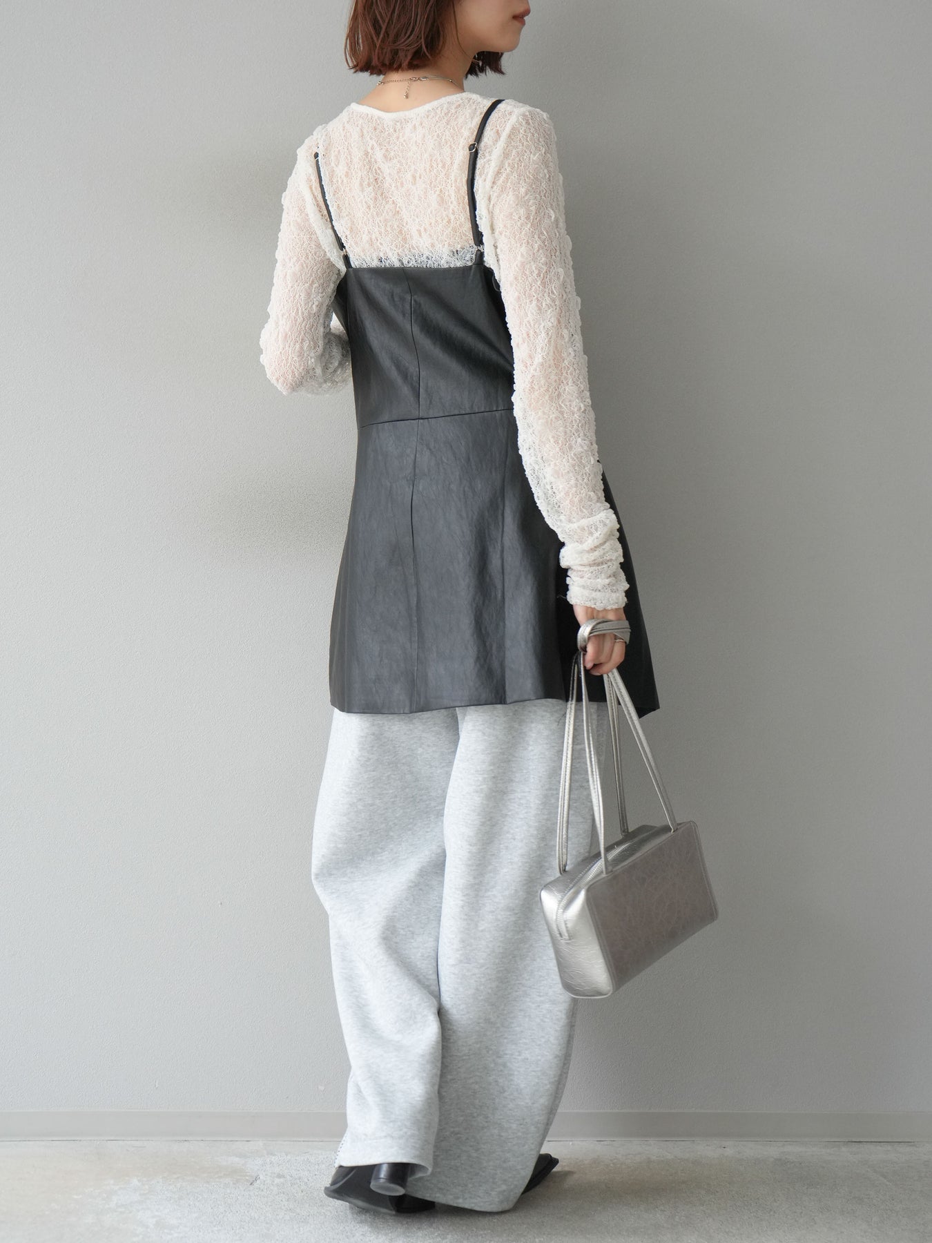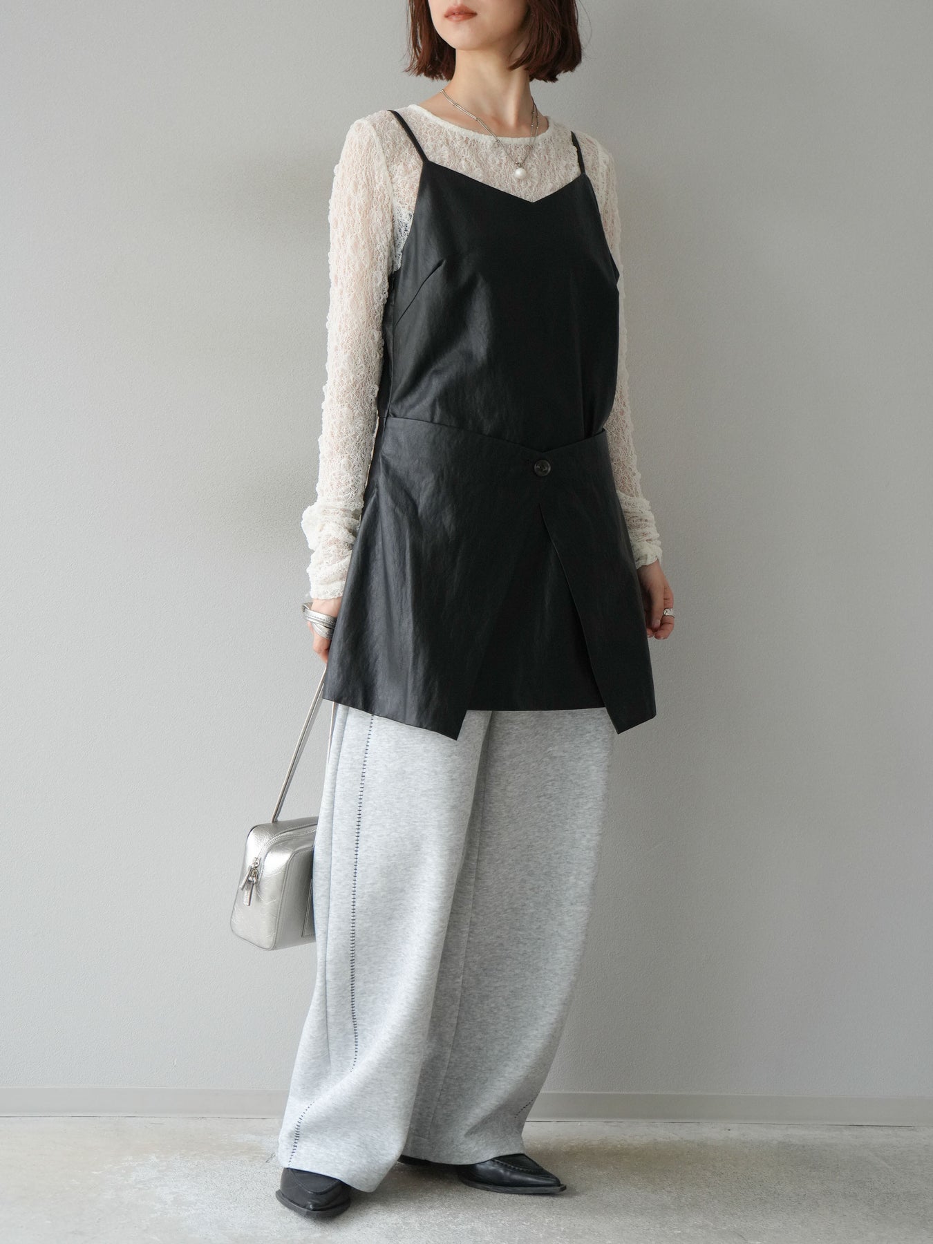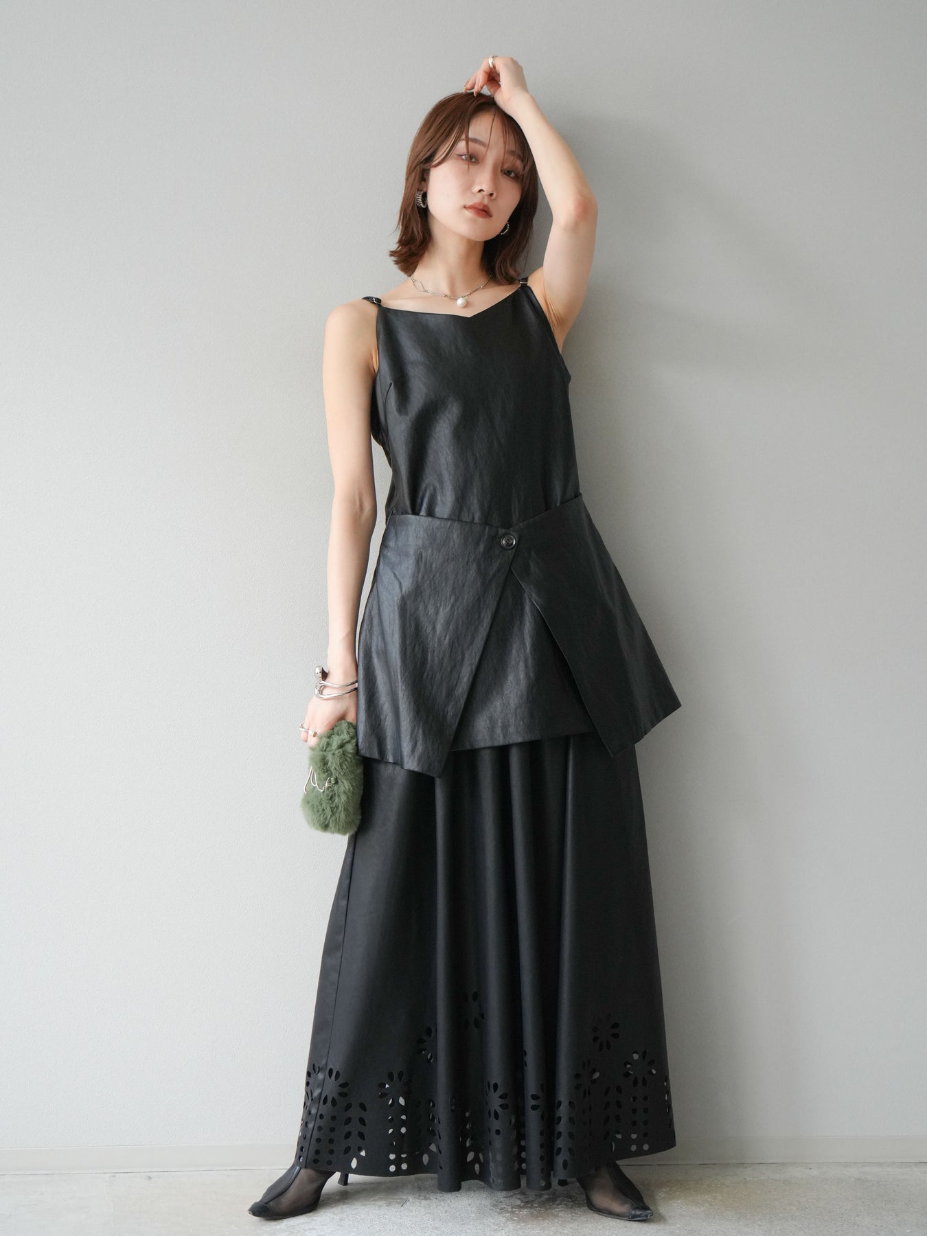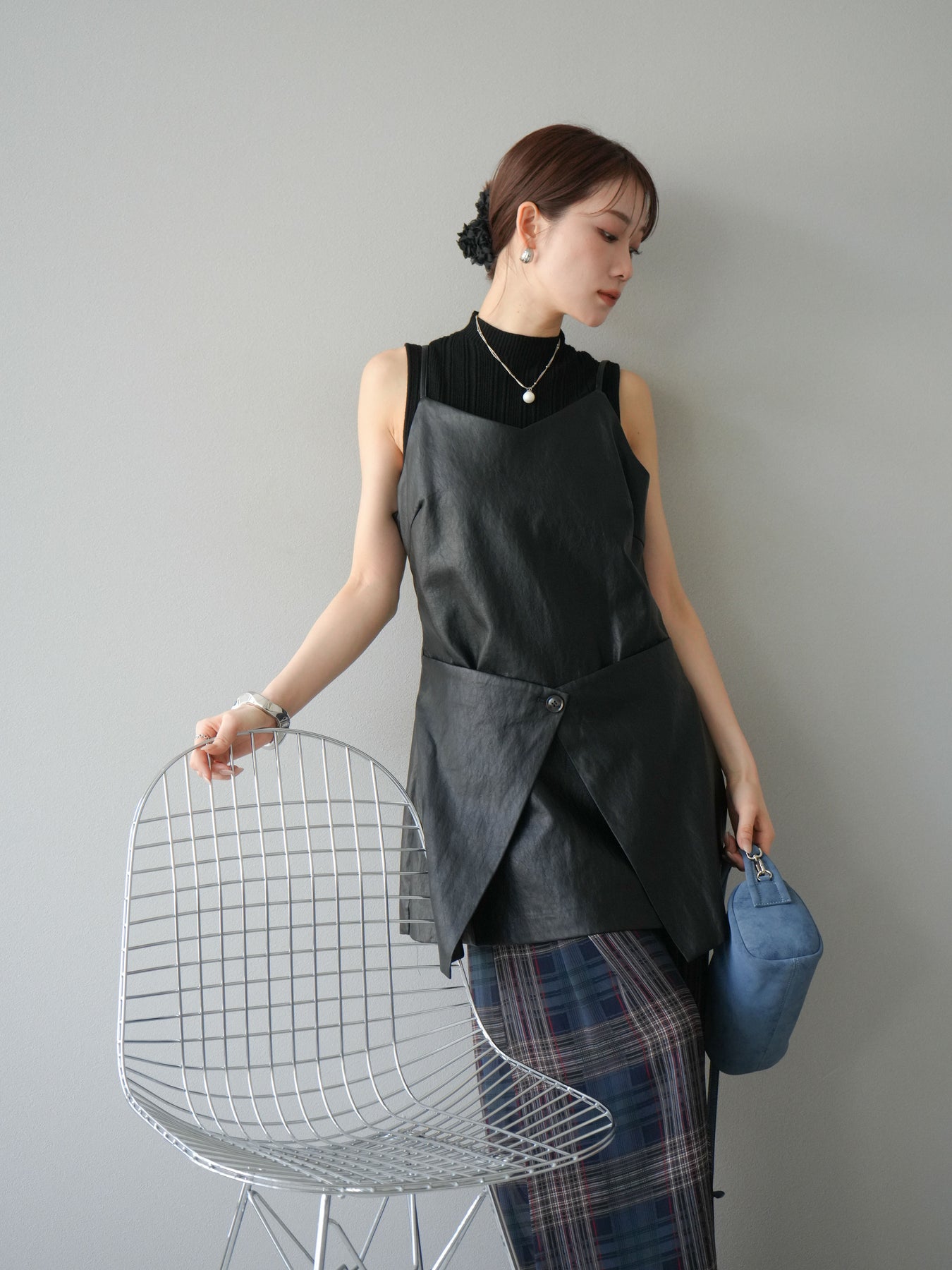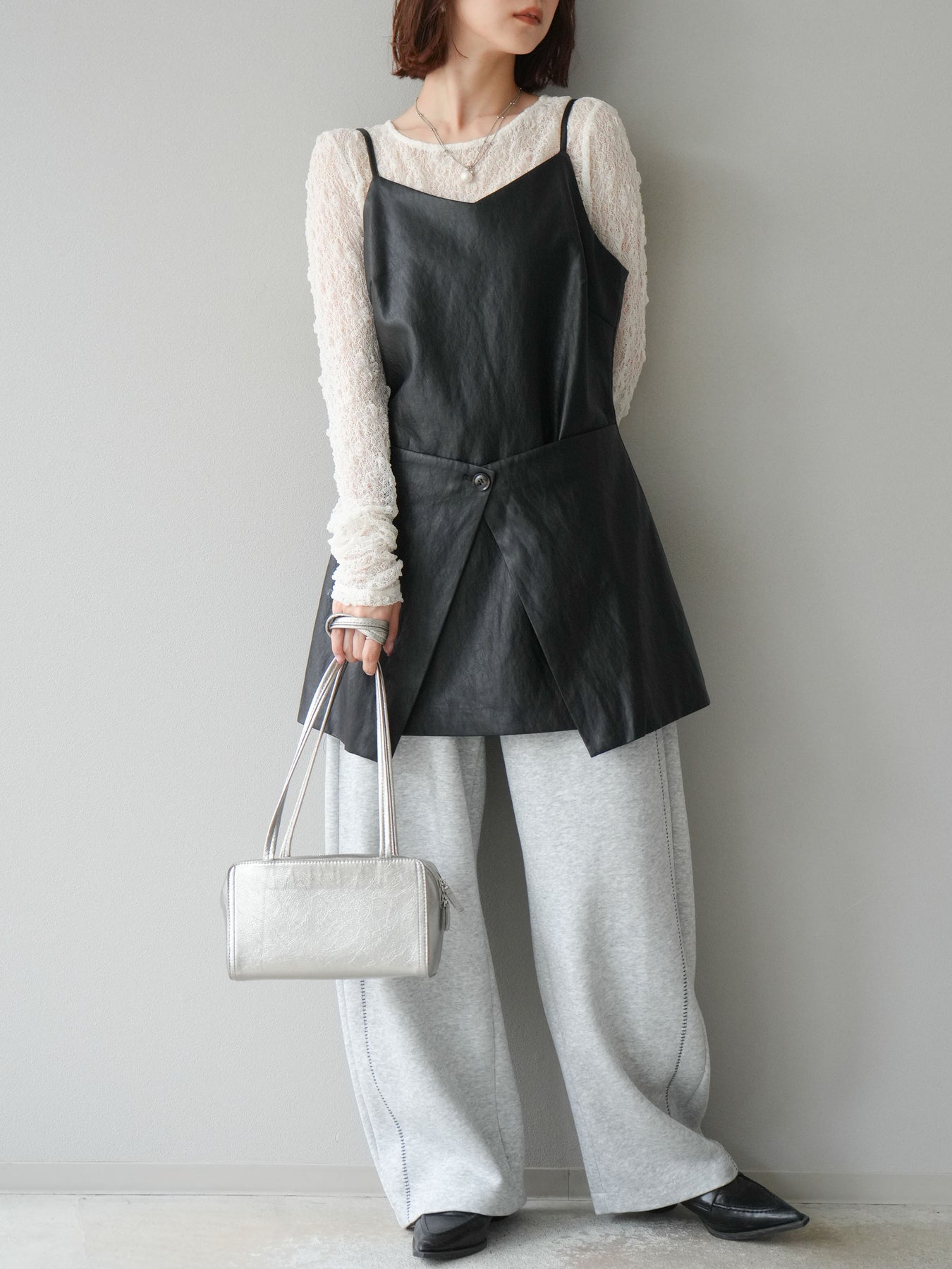 [予約]レイヤードレザーキャミソールチュニック/ブラック