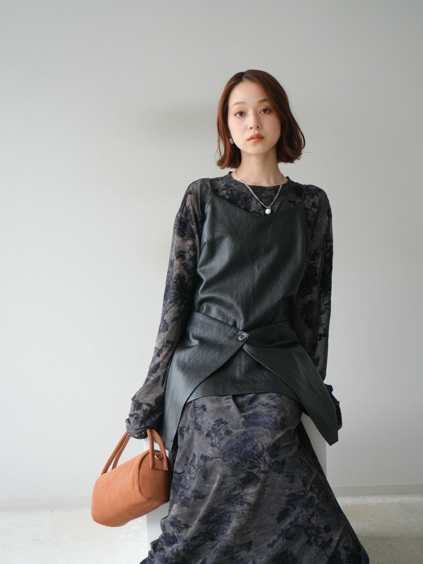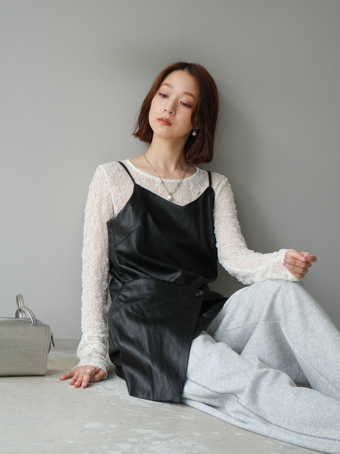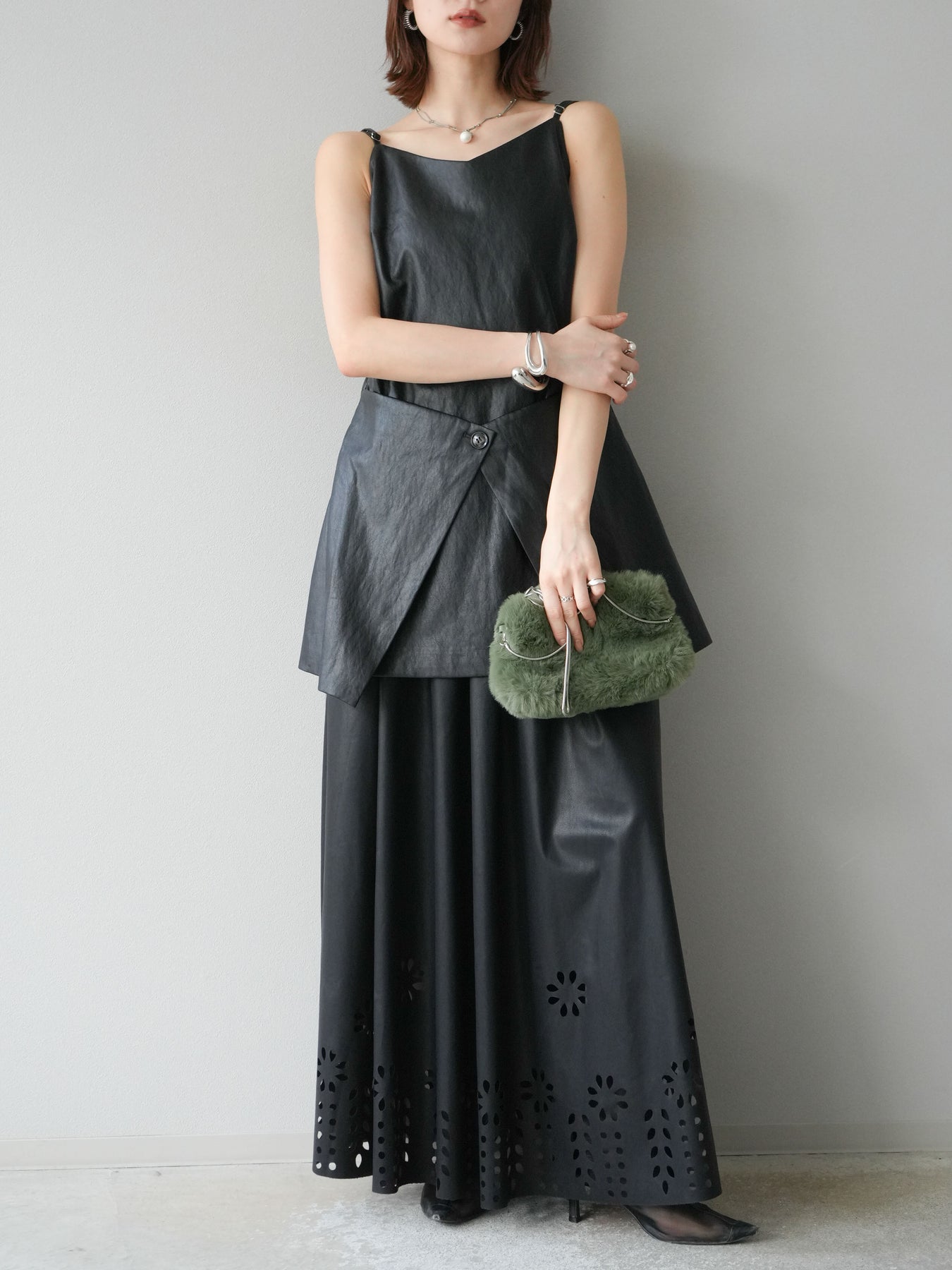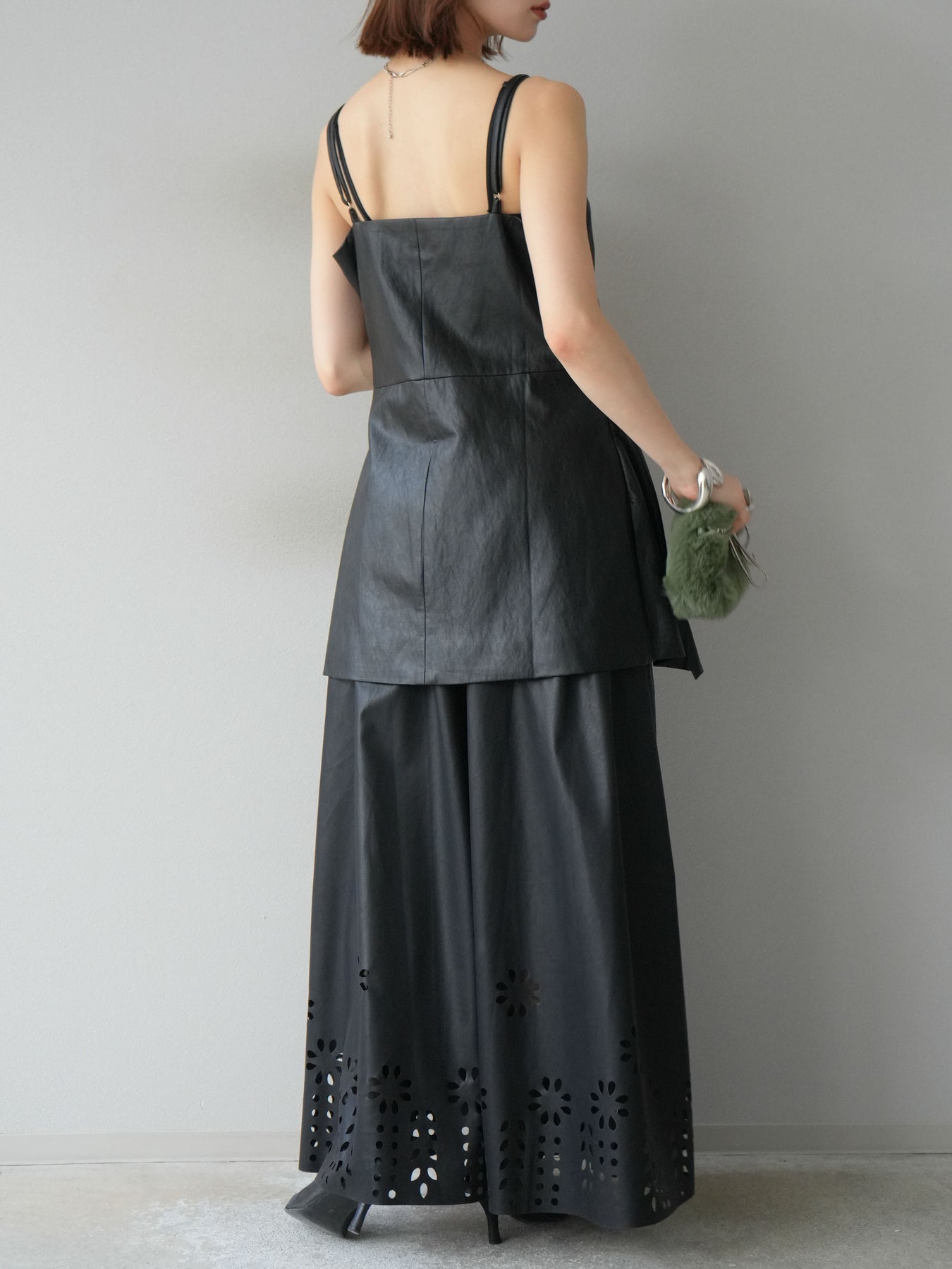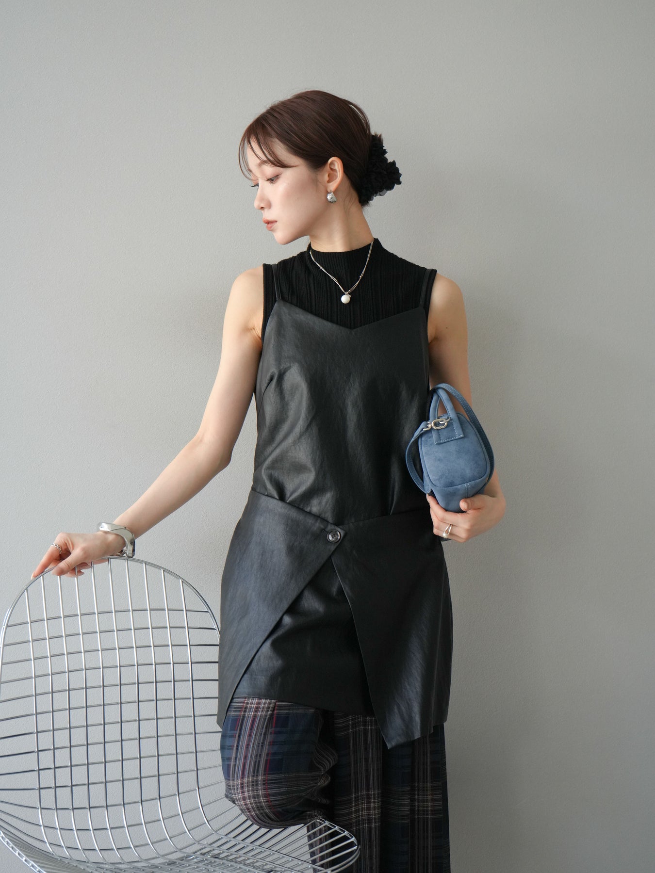 [予約]レイヤードレザーキャミソールチュニック/ブラック