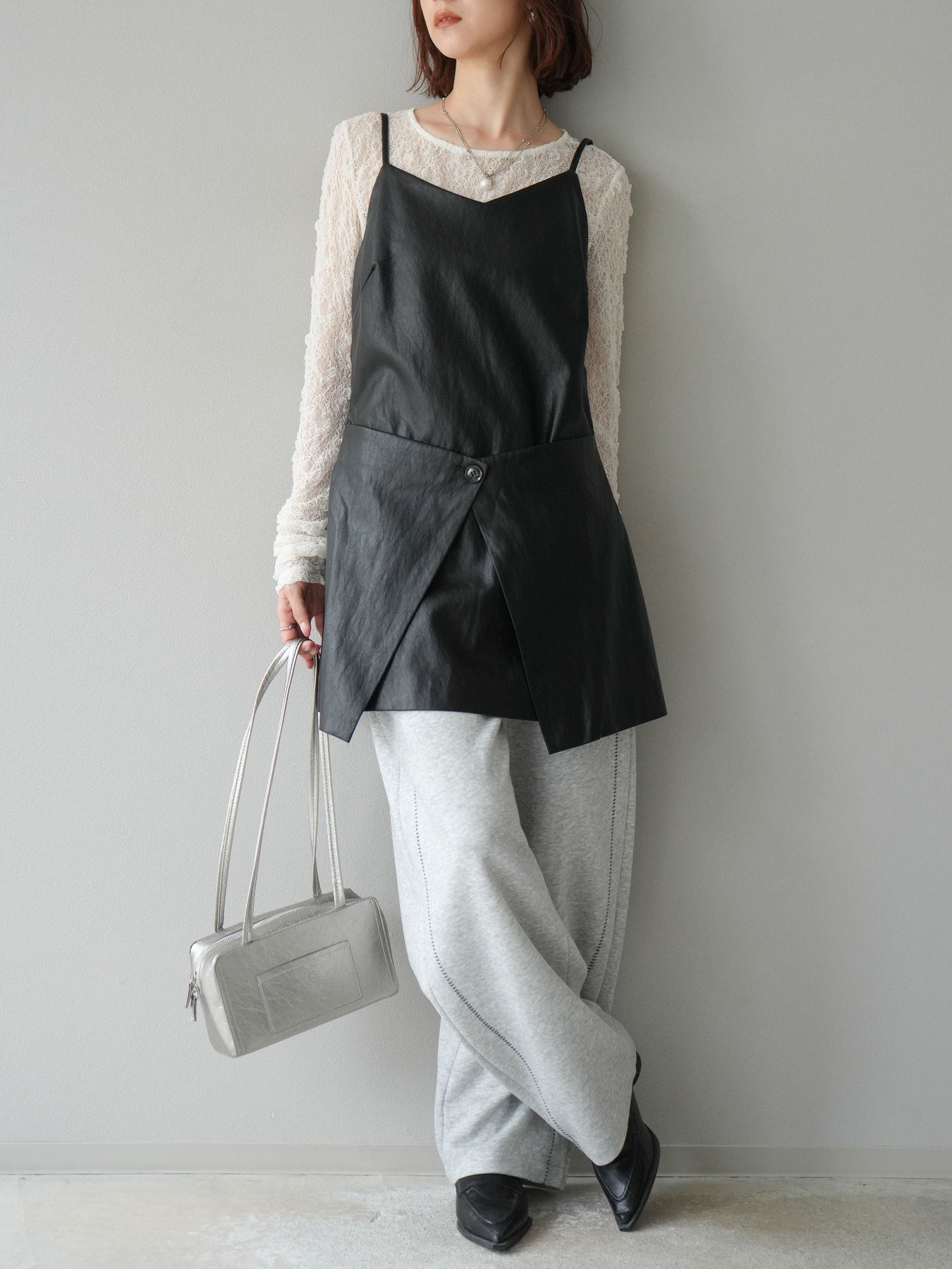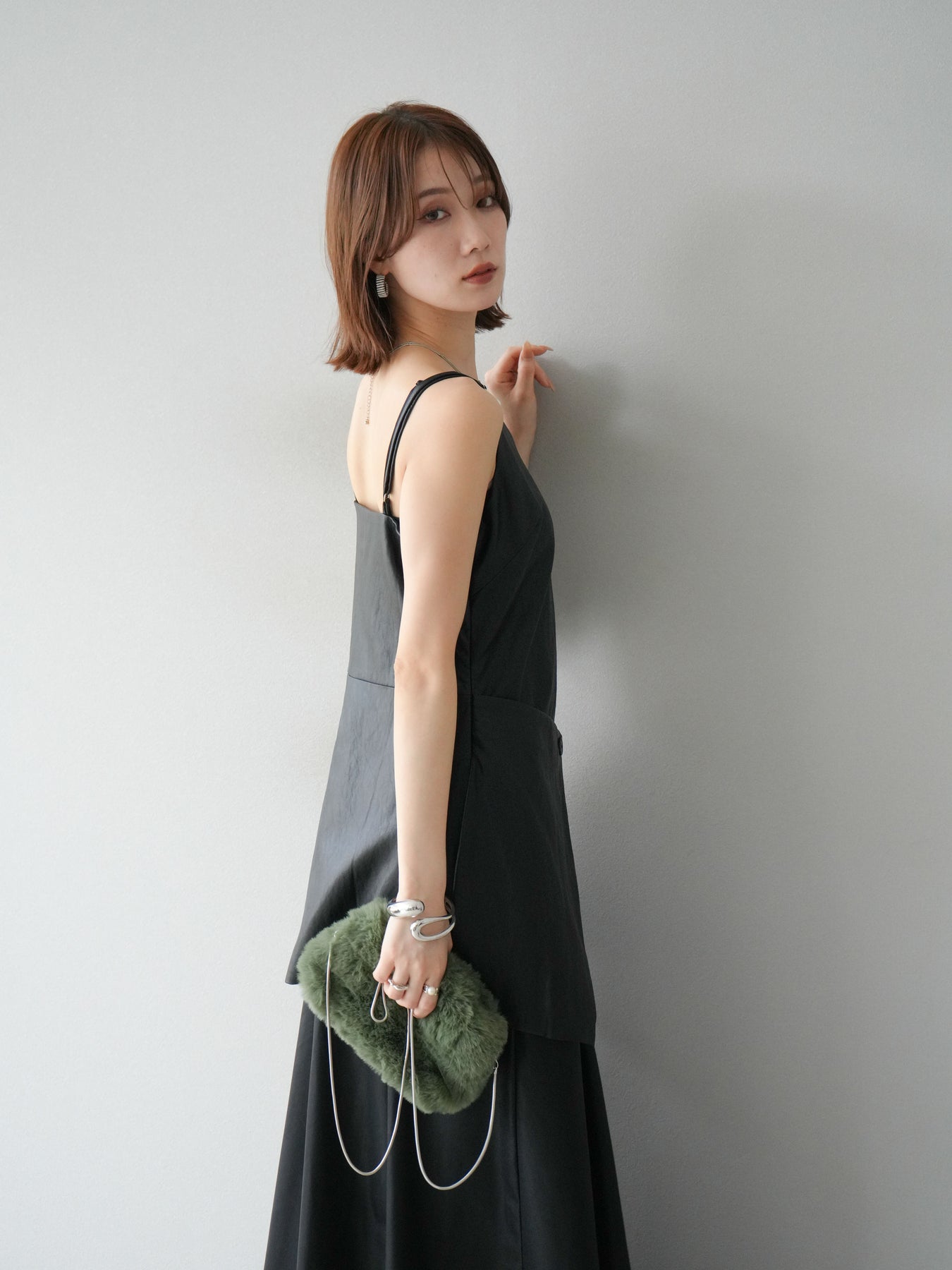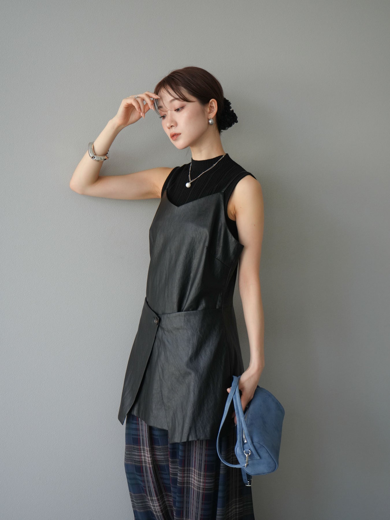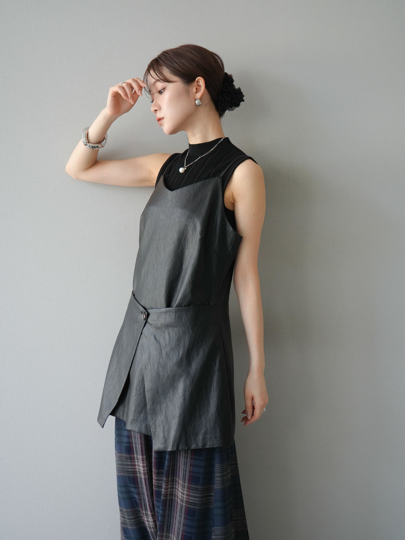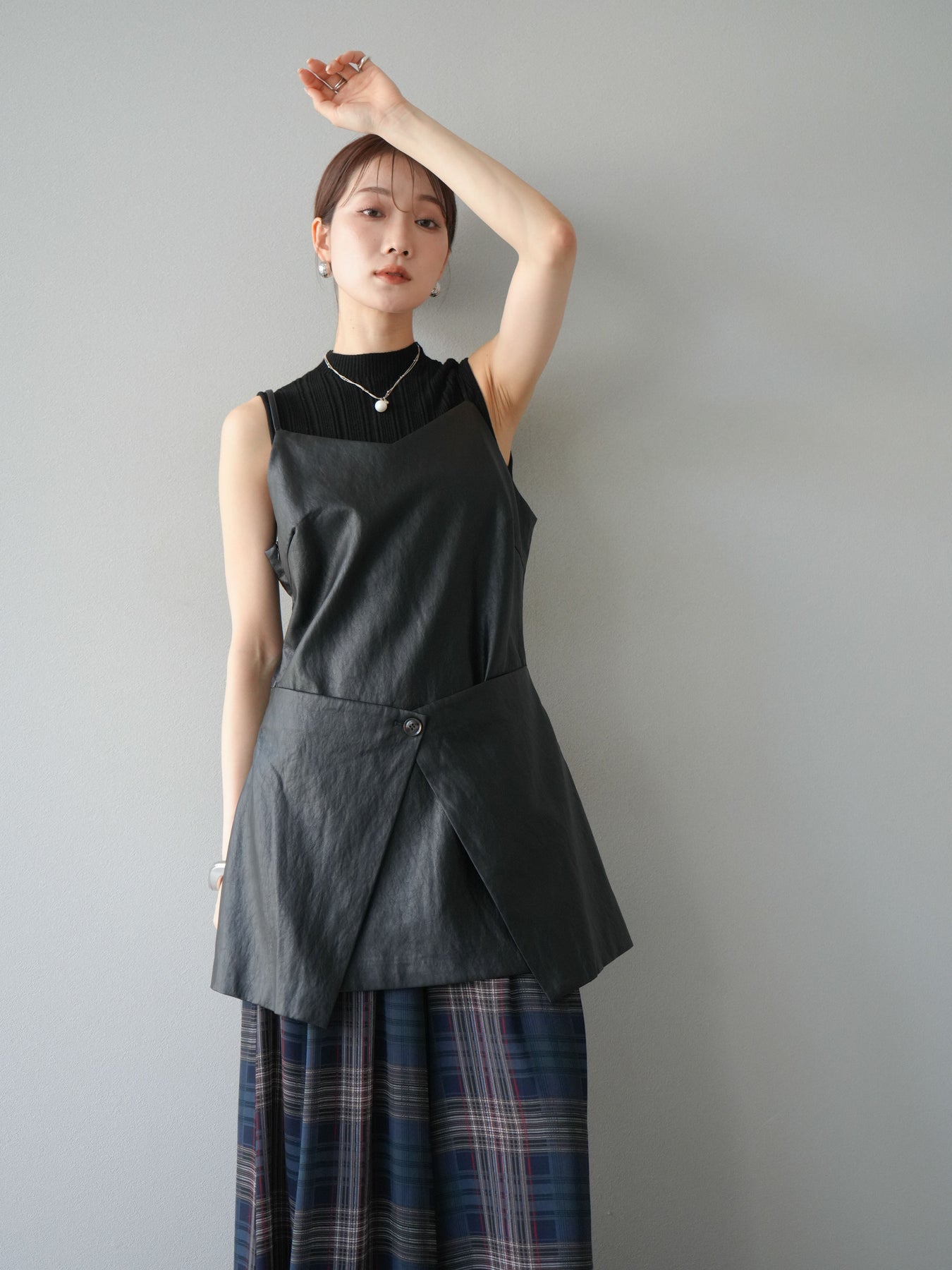 [予約]レイヤードレザーキャミソールチュニック/ブラック