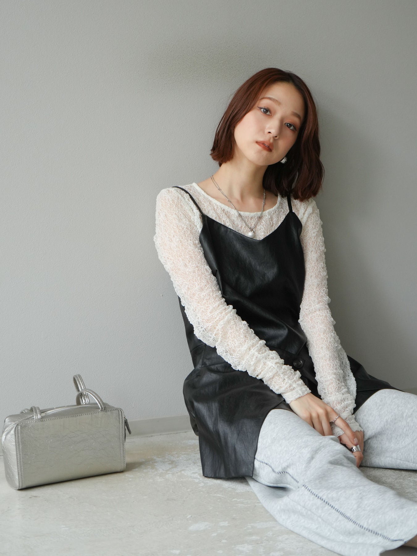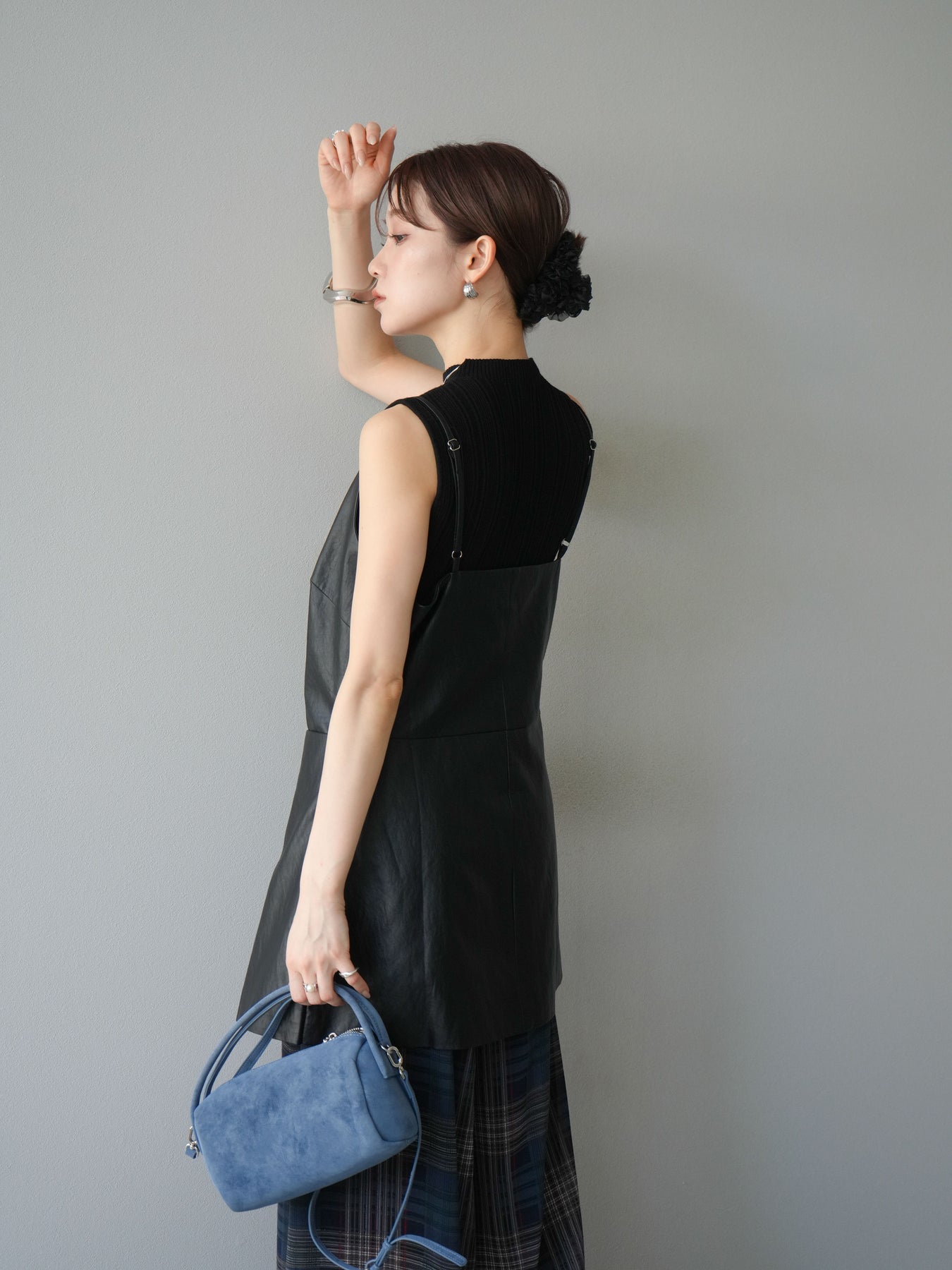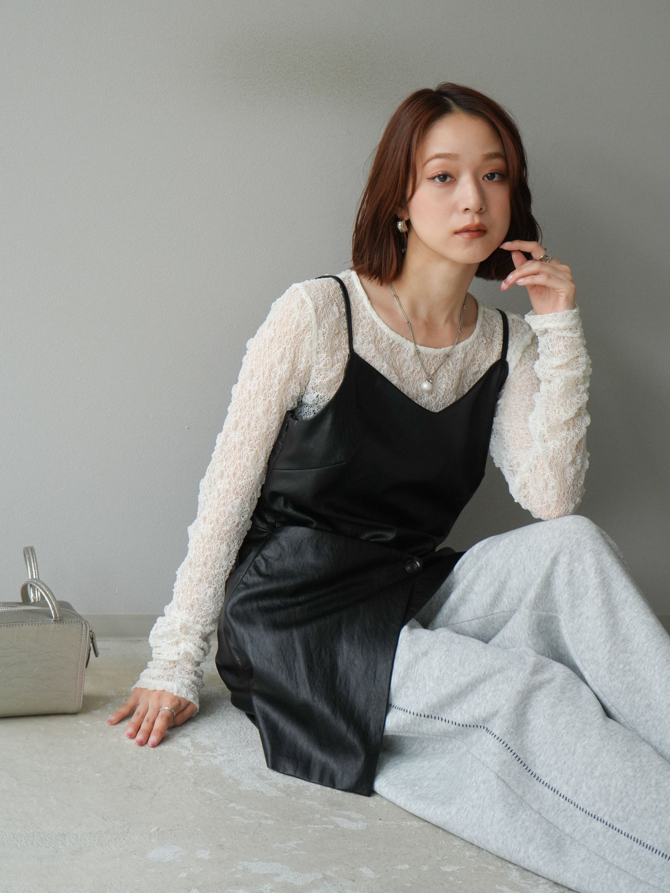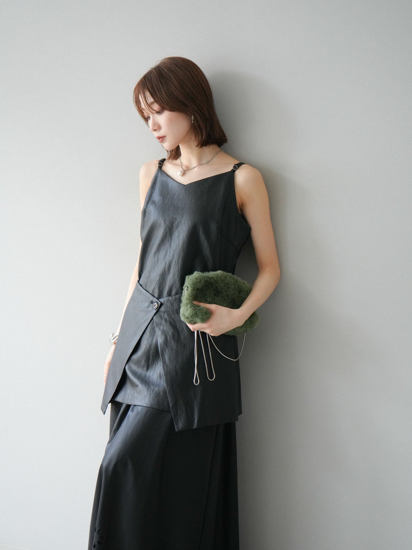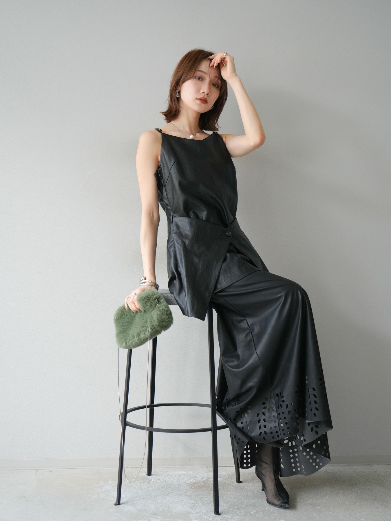 [予約]レイヤードレザーキャミソールチュニック/ブラック