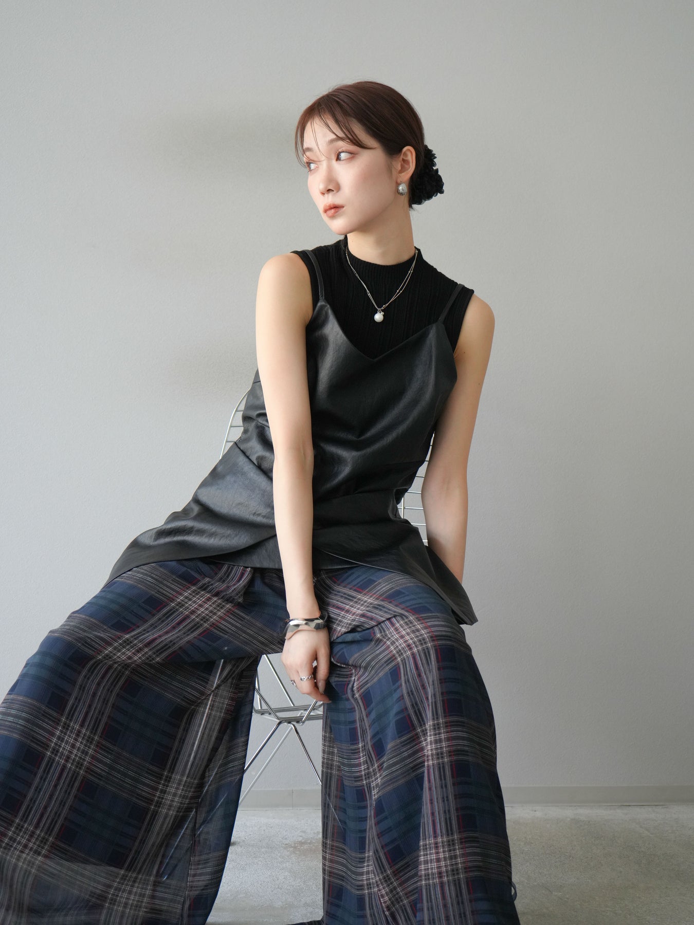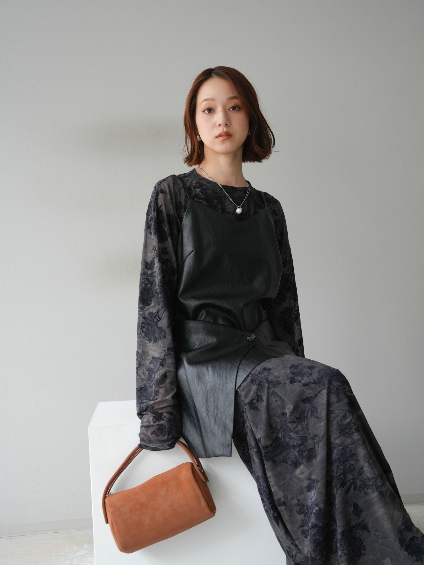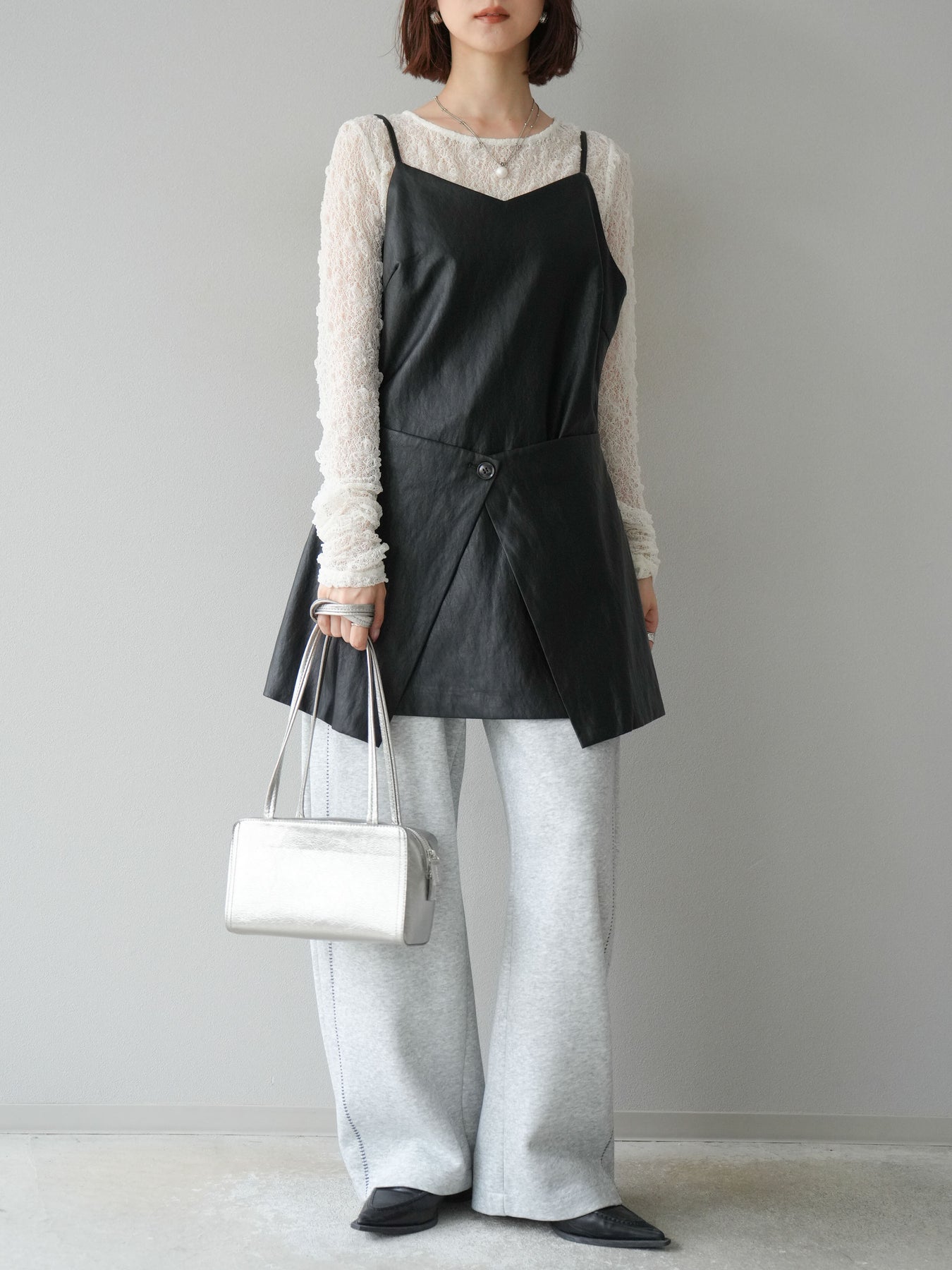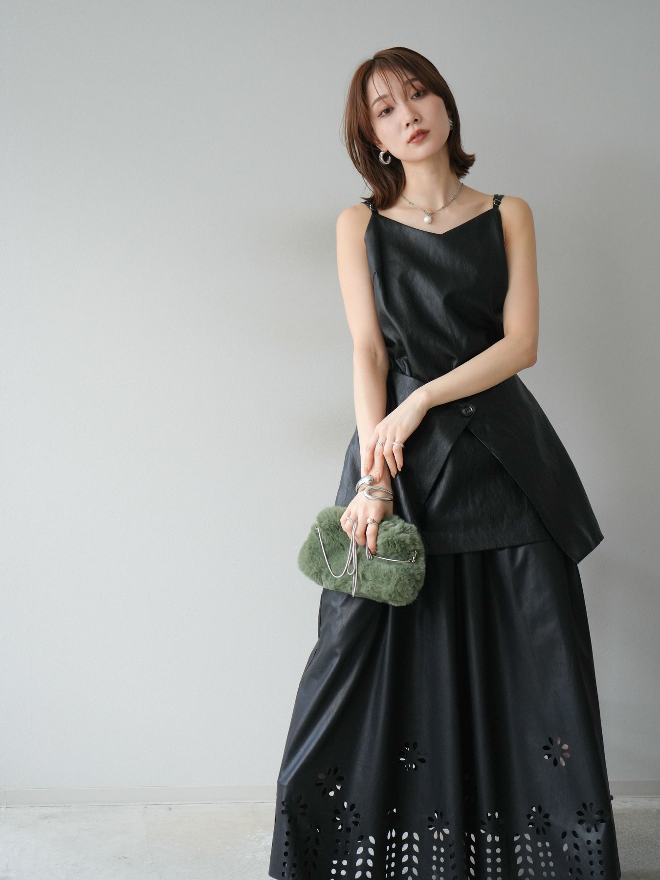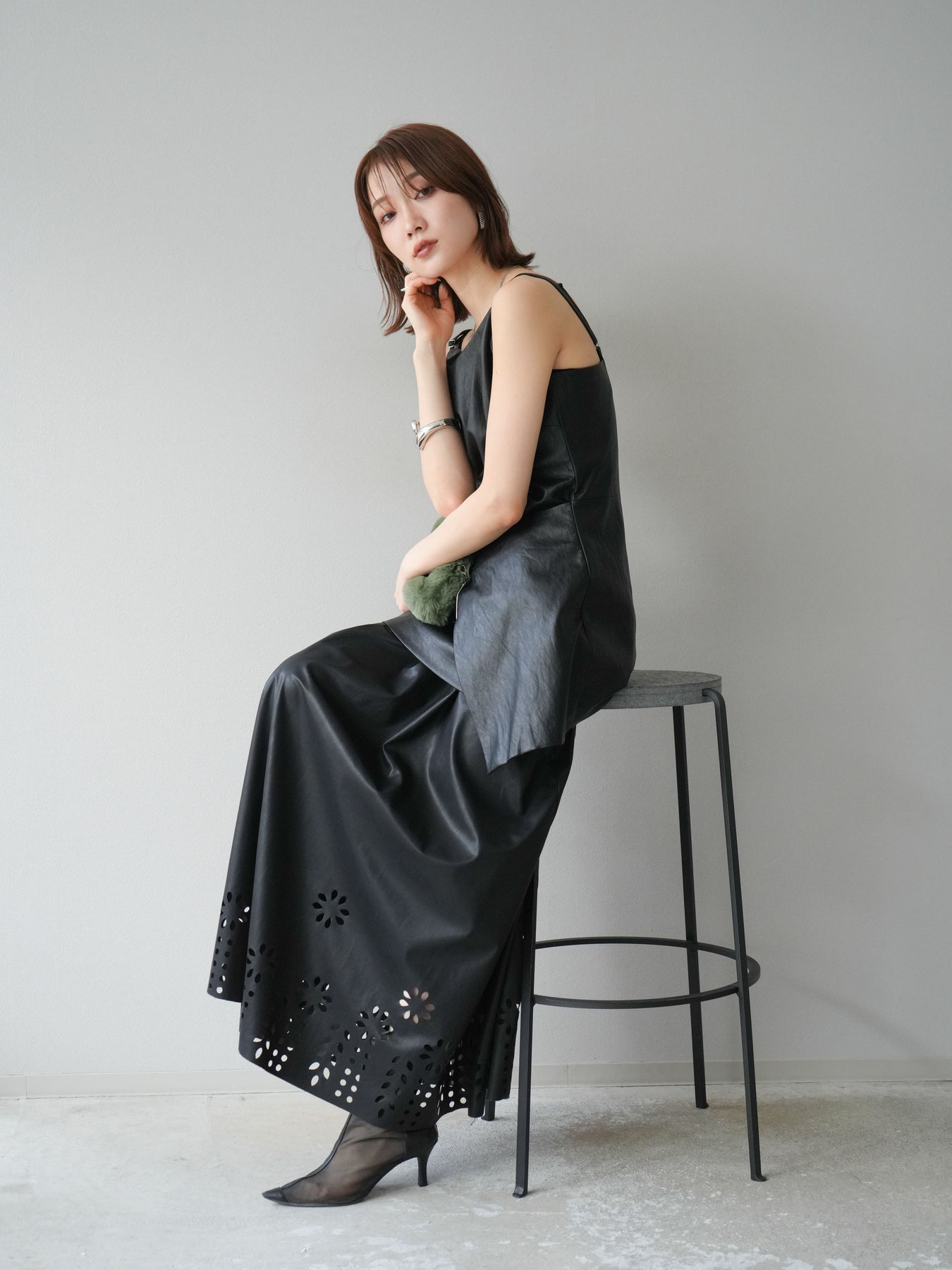 [予約]レイヤードレザーキャミソールチュニック/ブラック