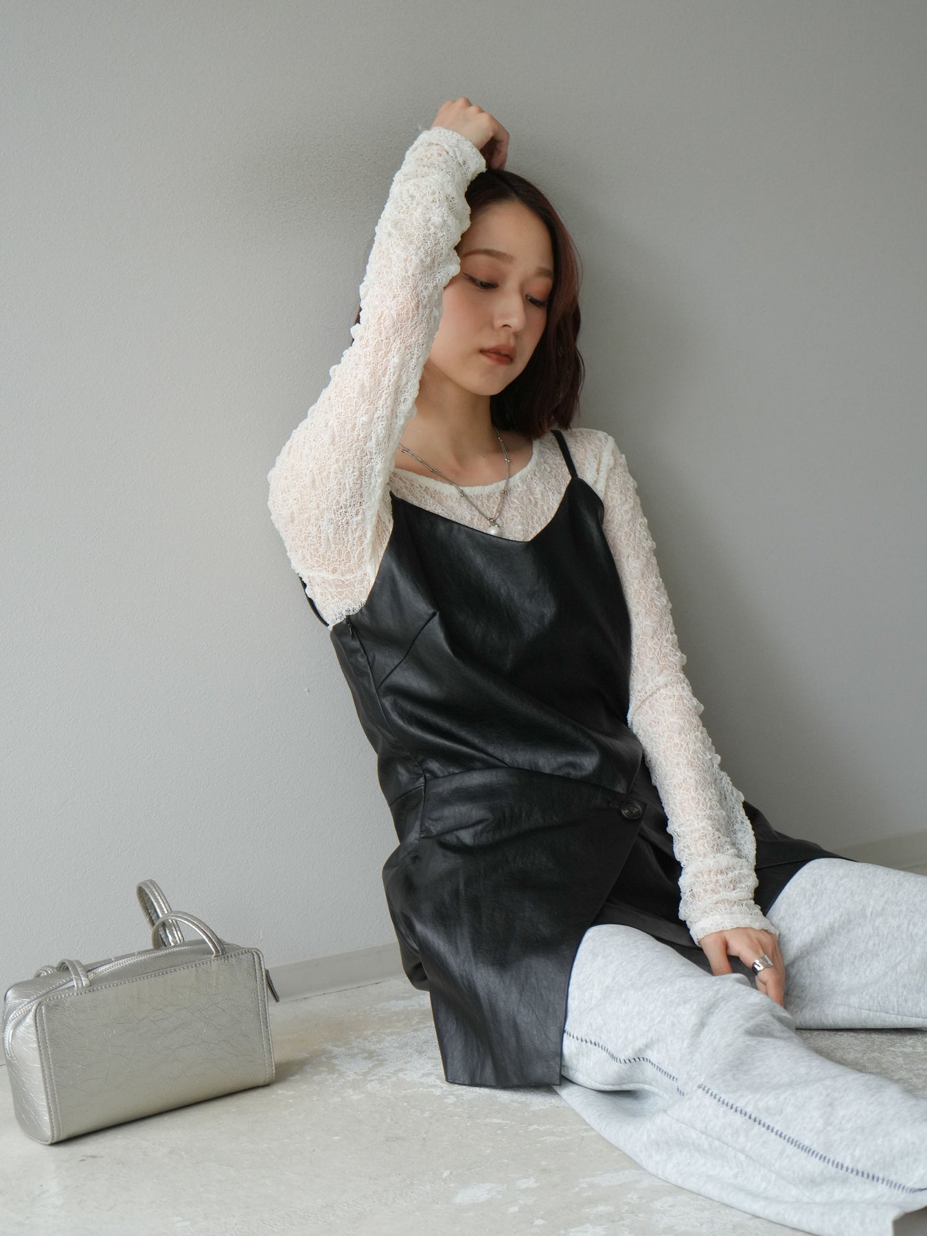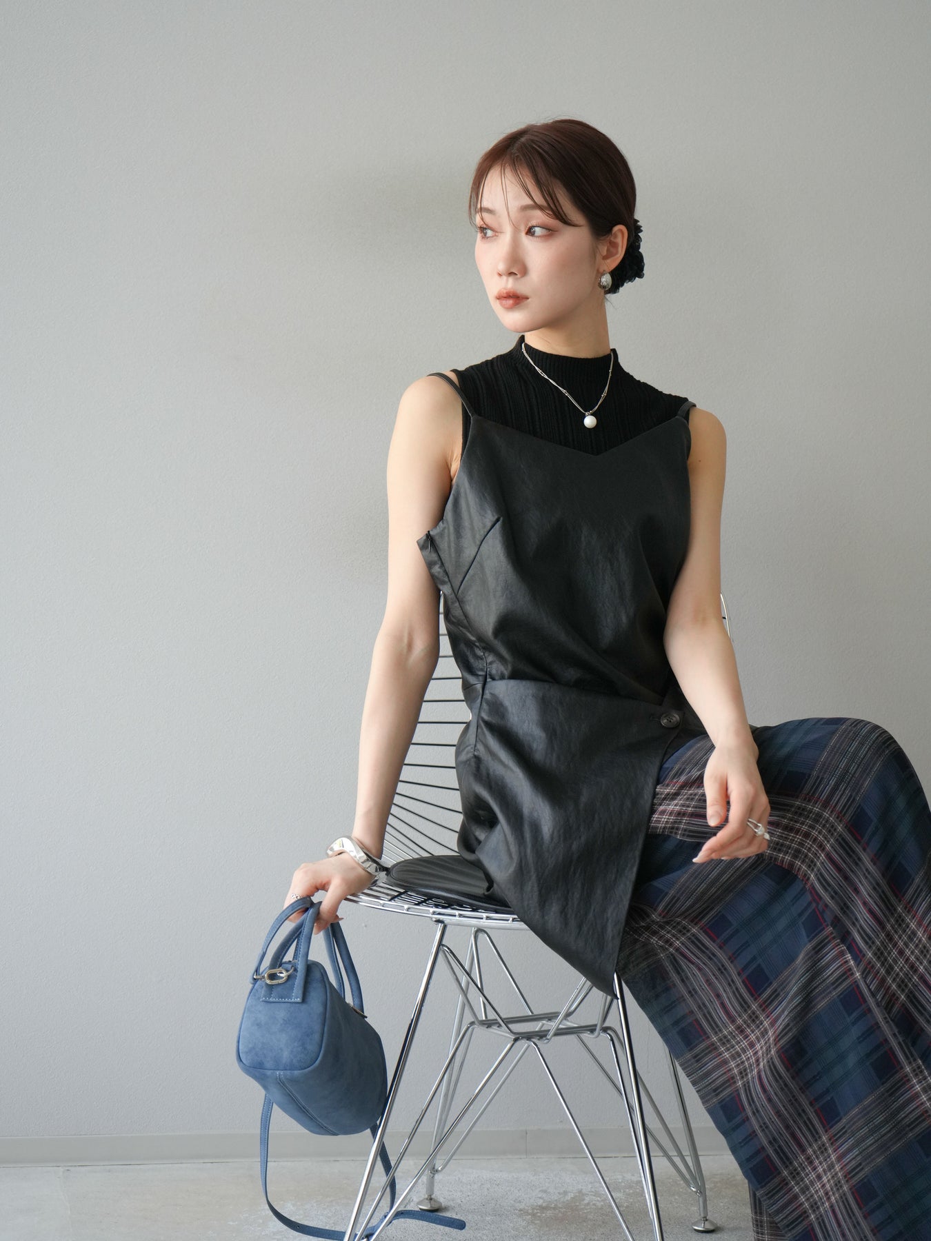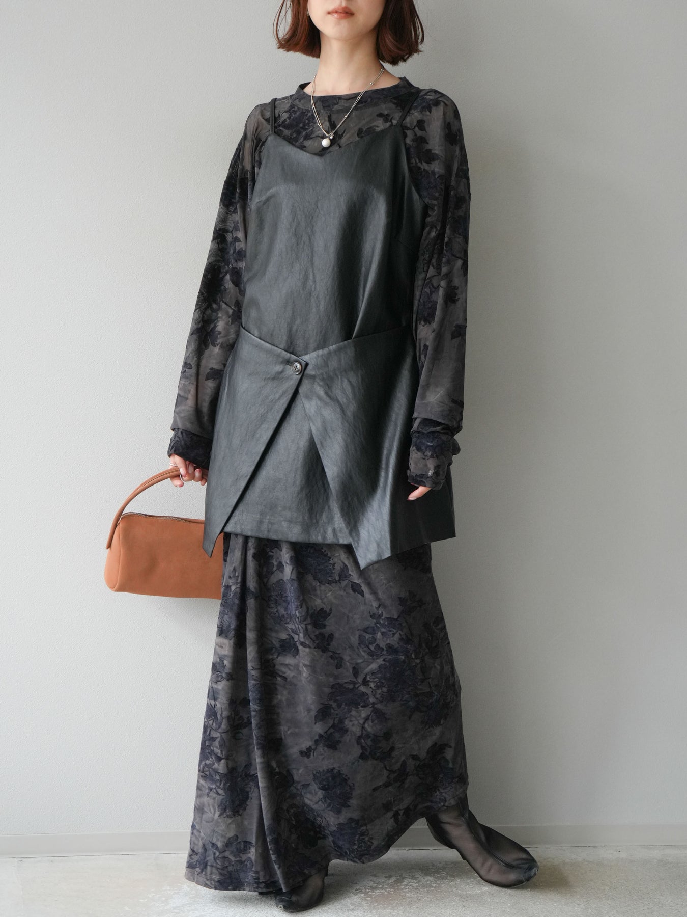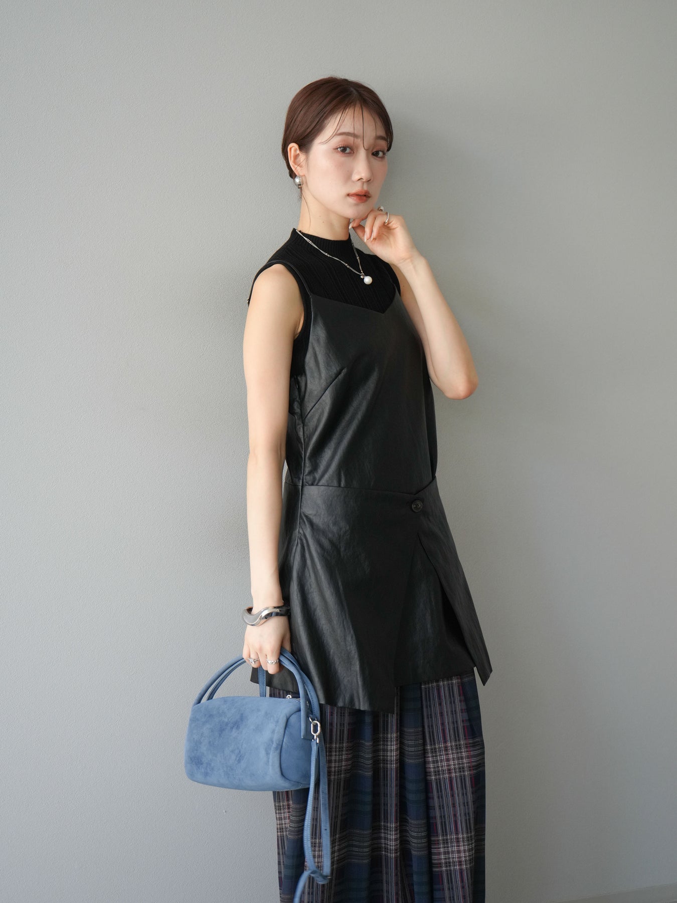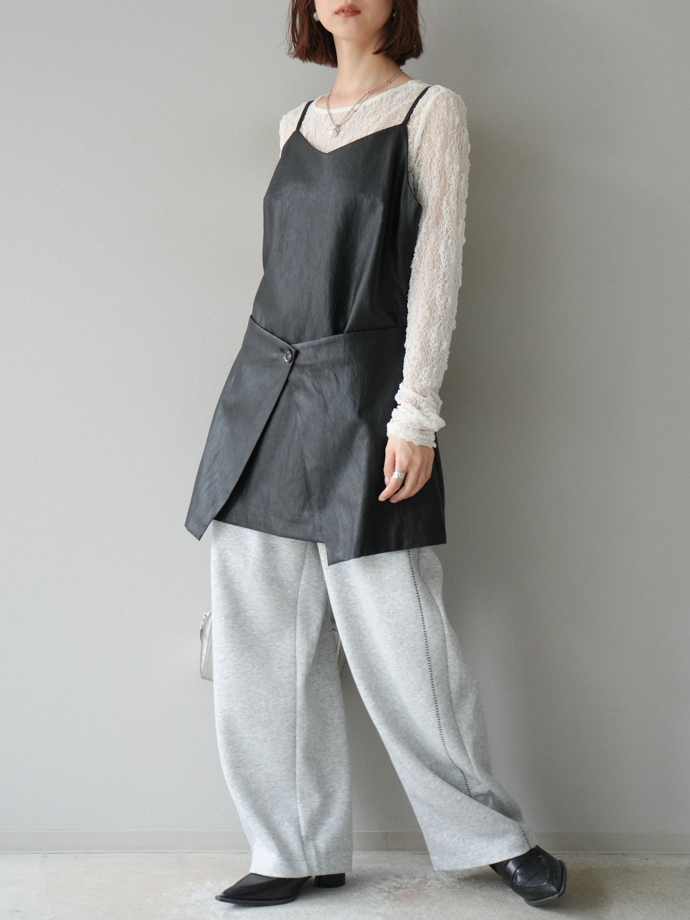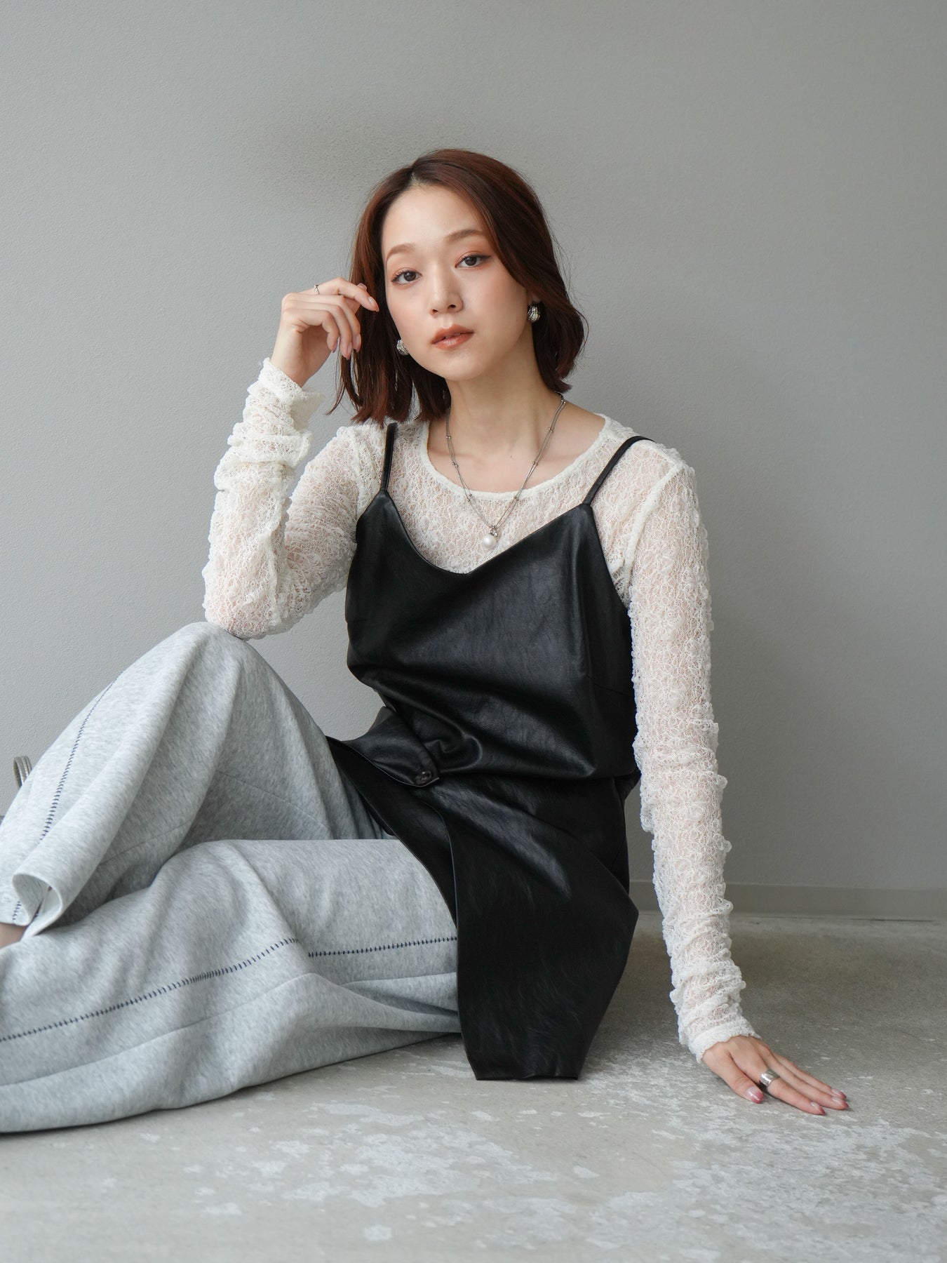 [予約]レイヤードレザーキャミソールチュニック/ブラック