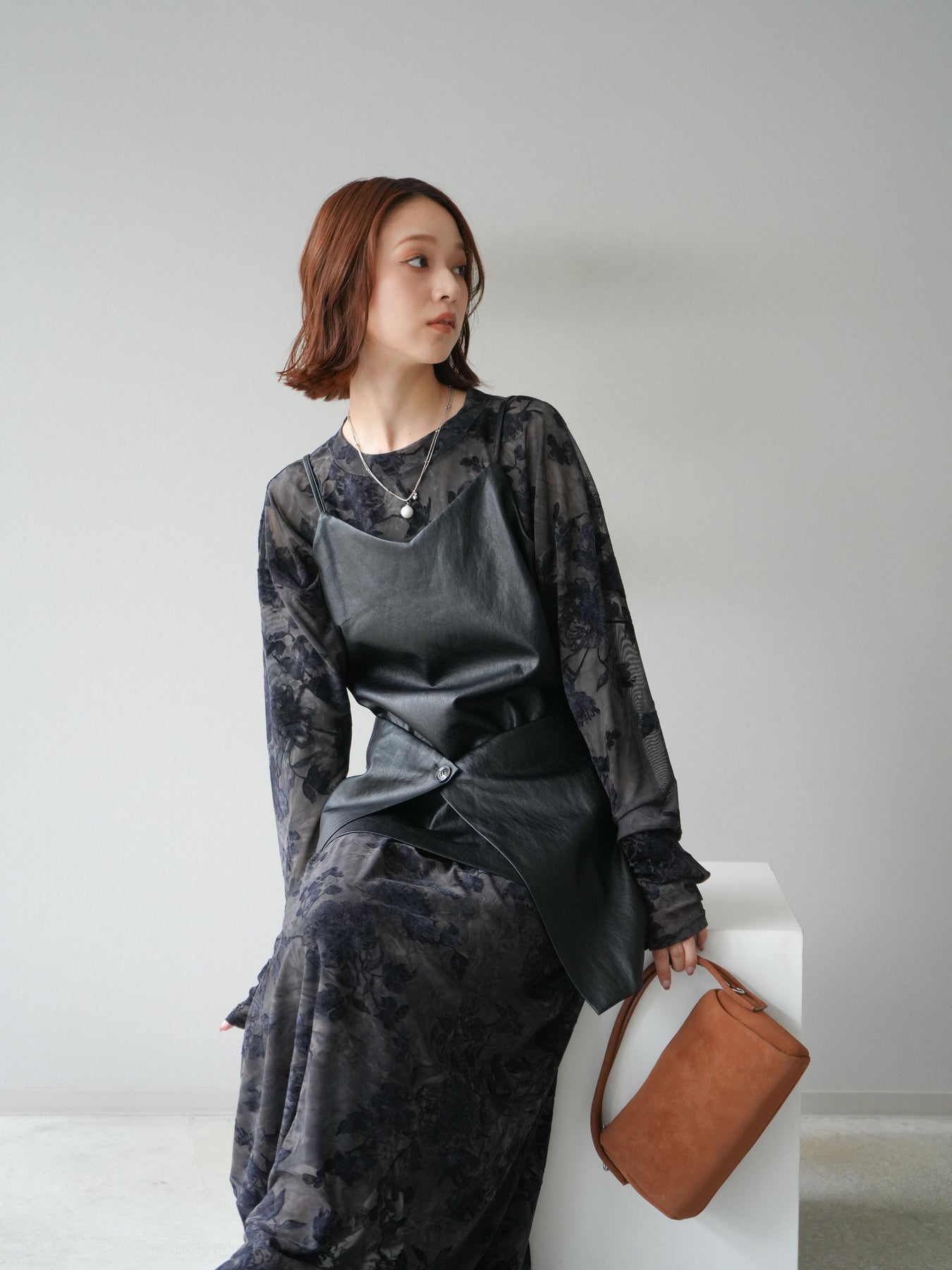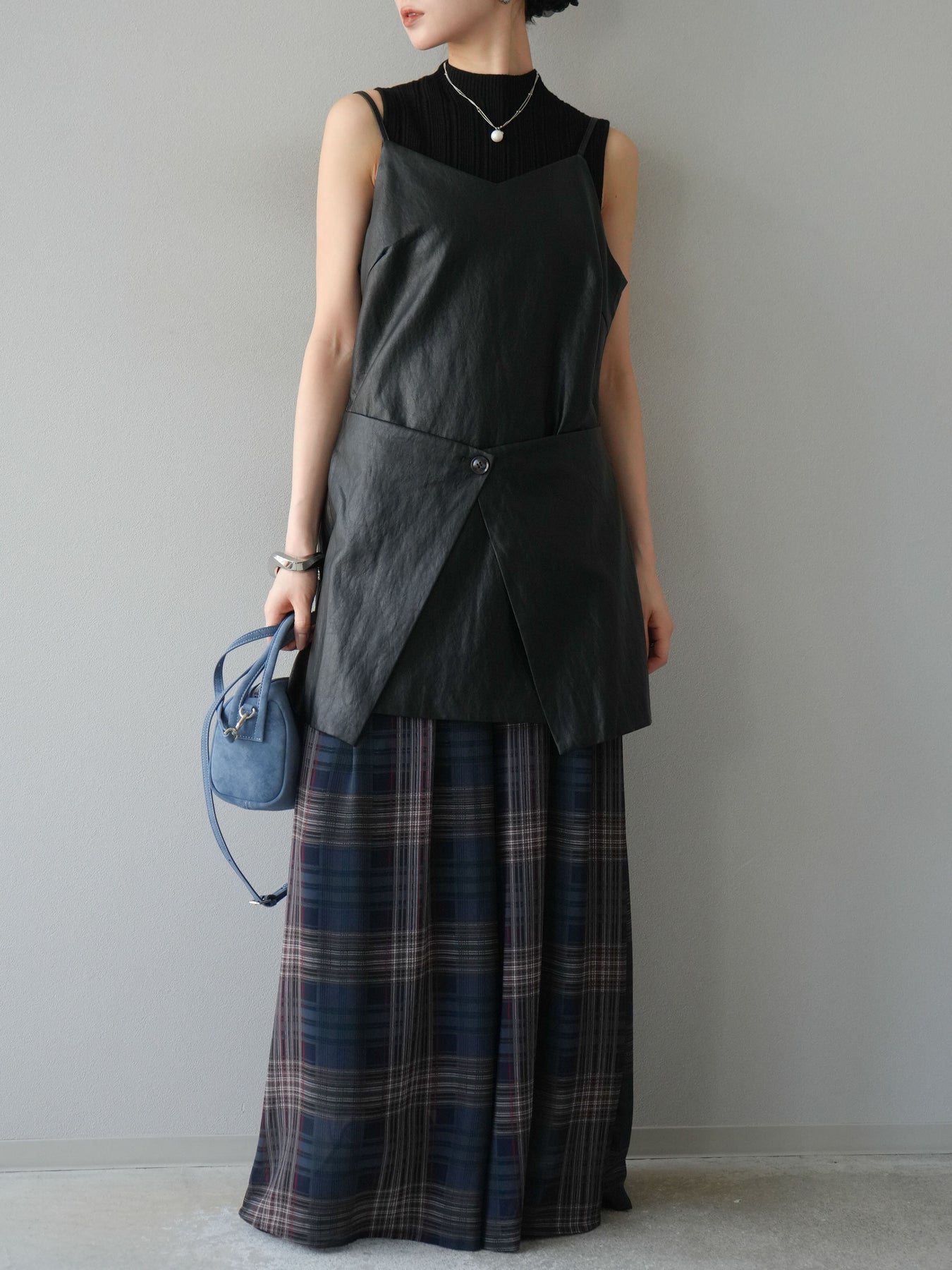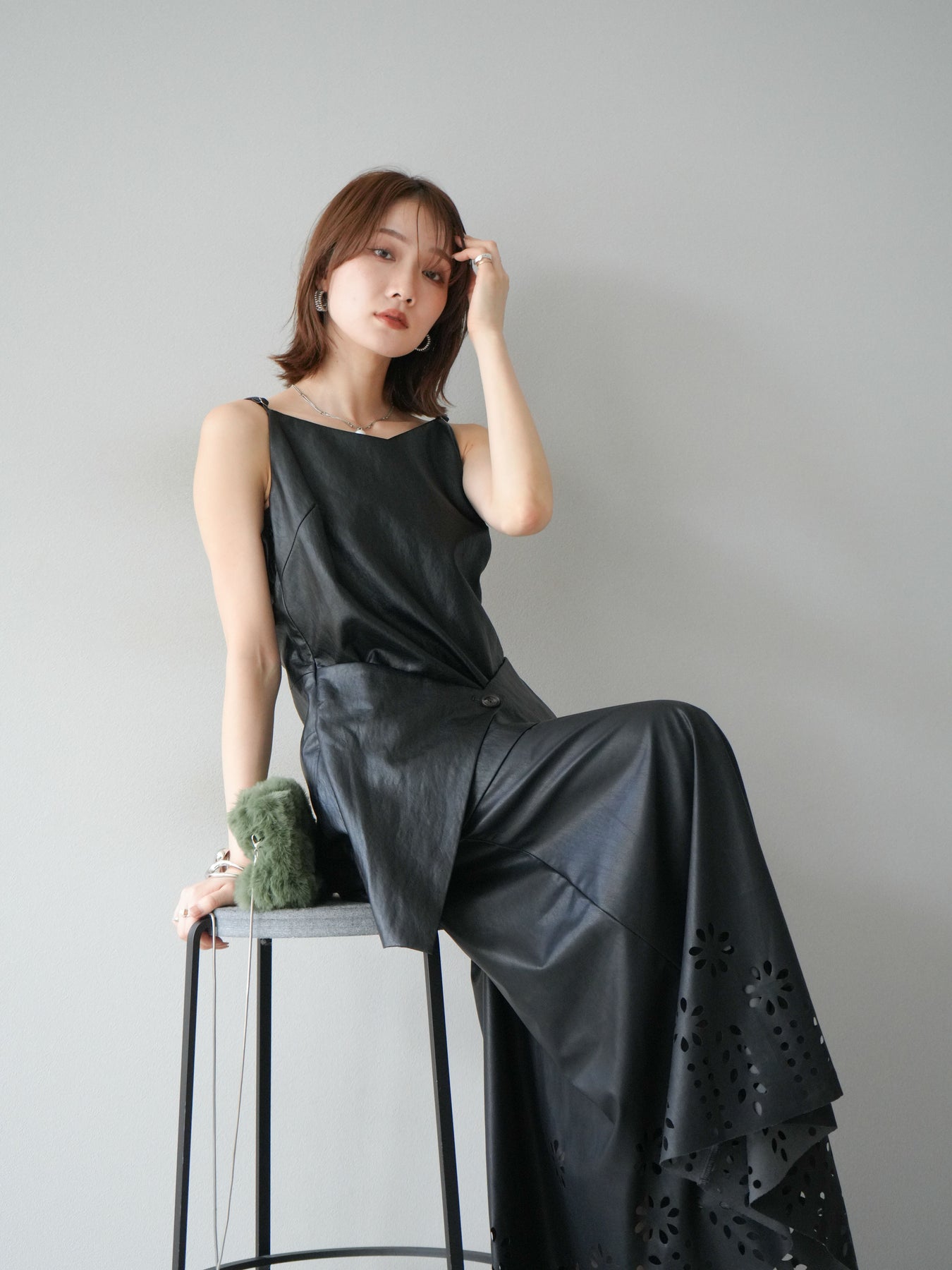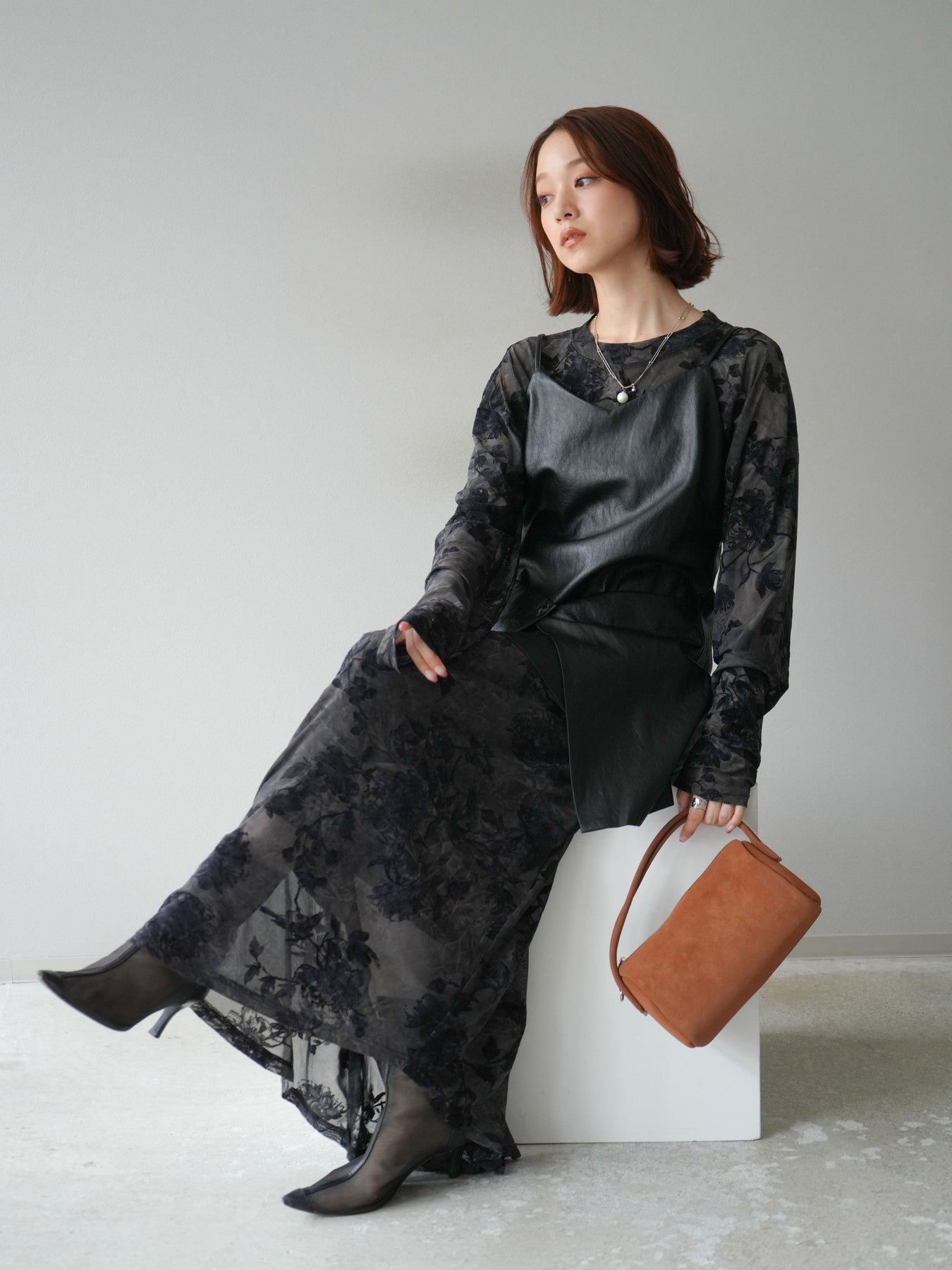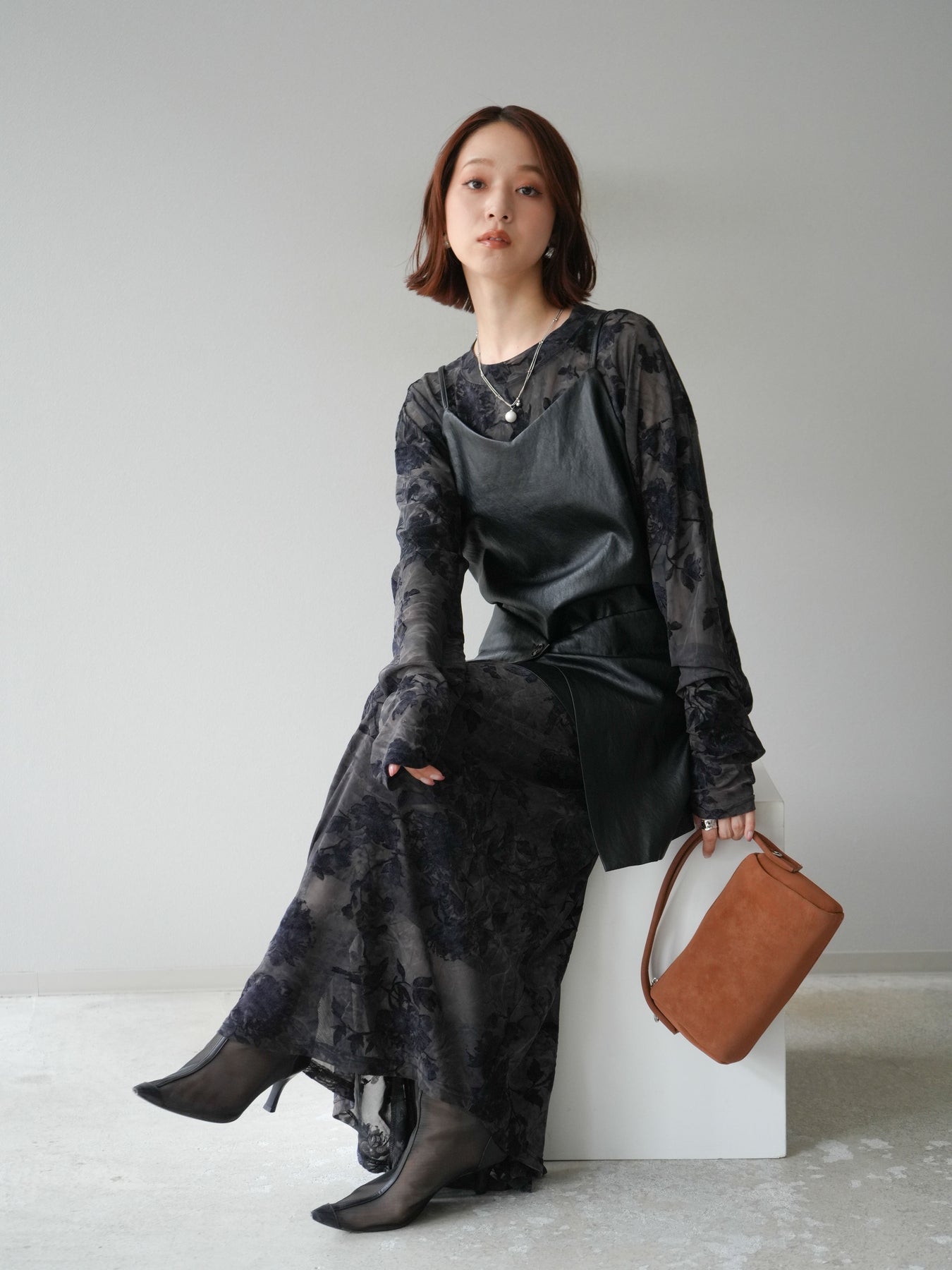[予約]レイヤードレザーキャミソールチュニック/ブラック