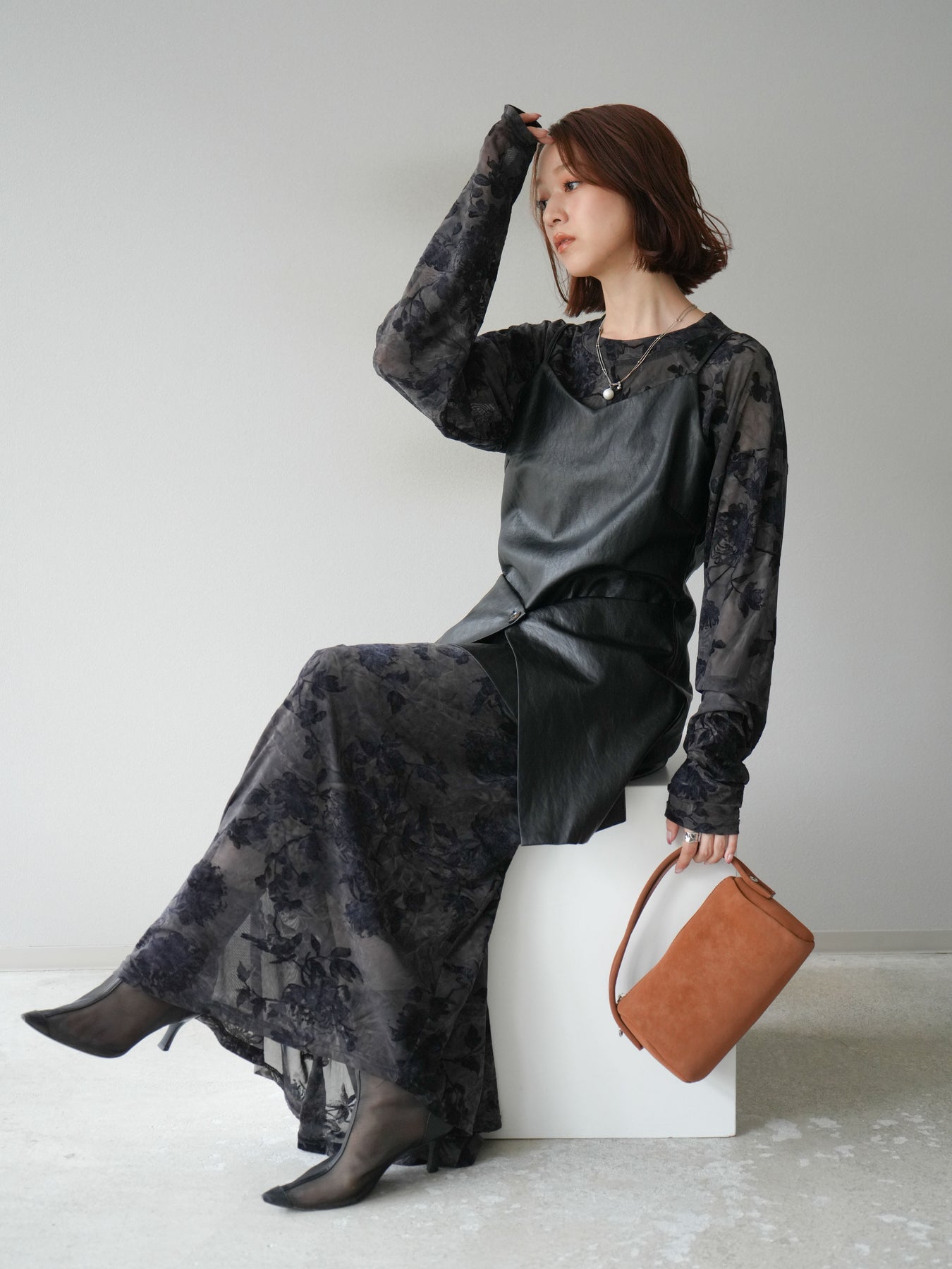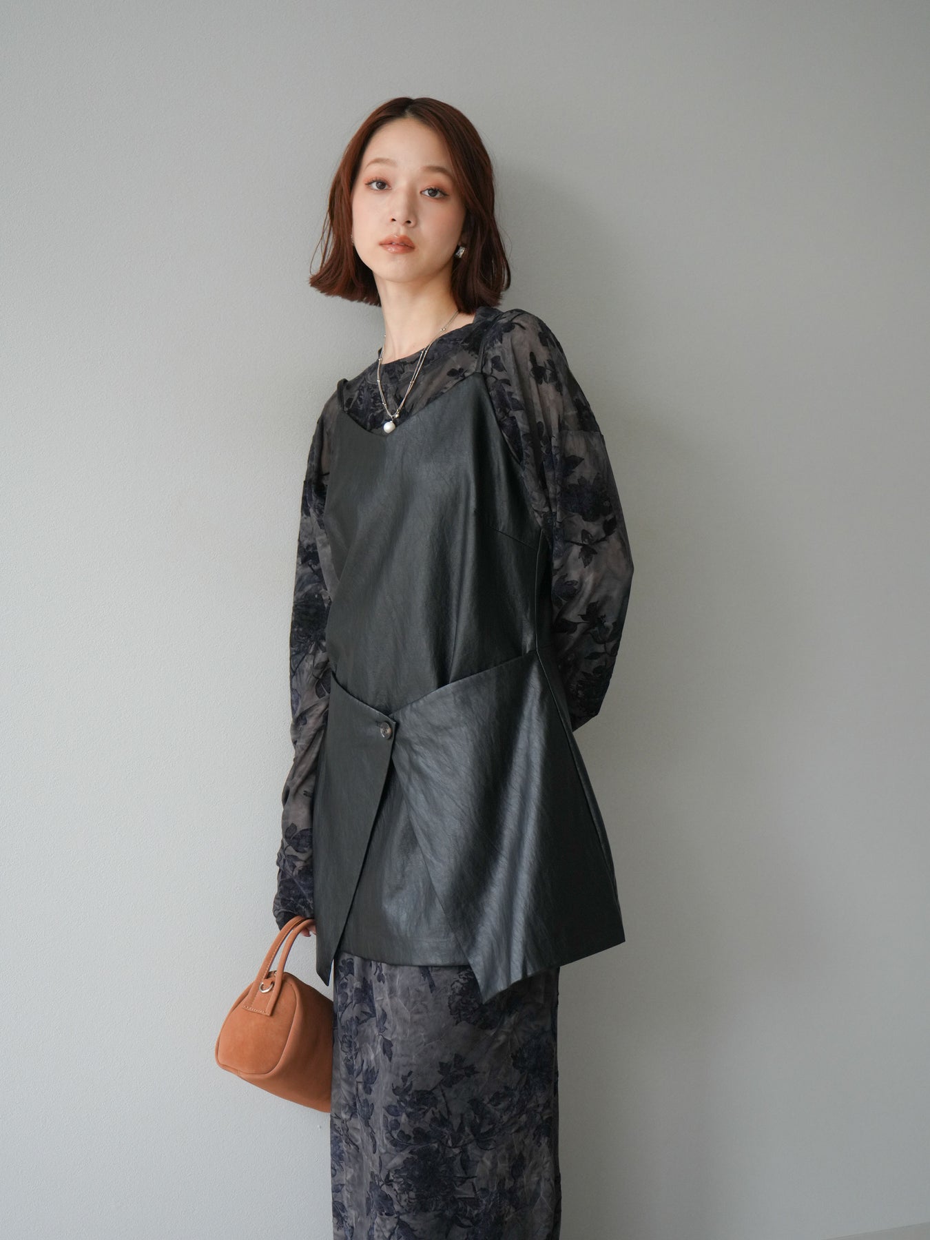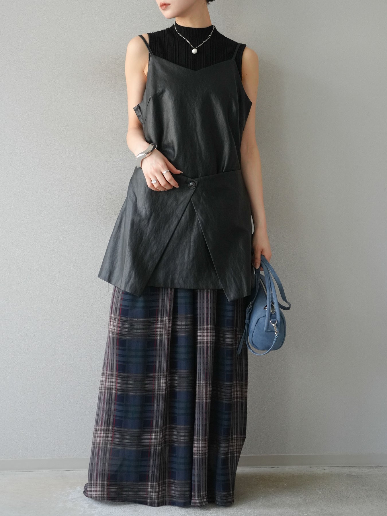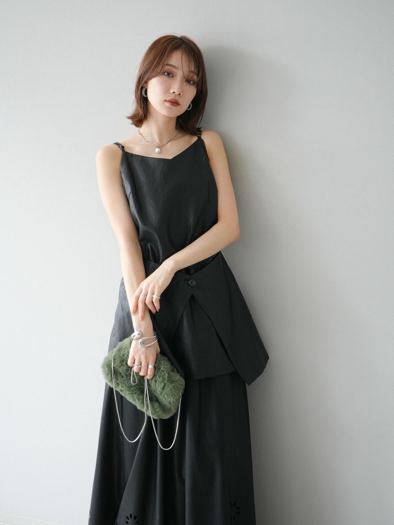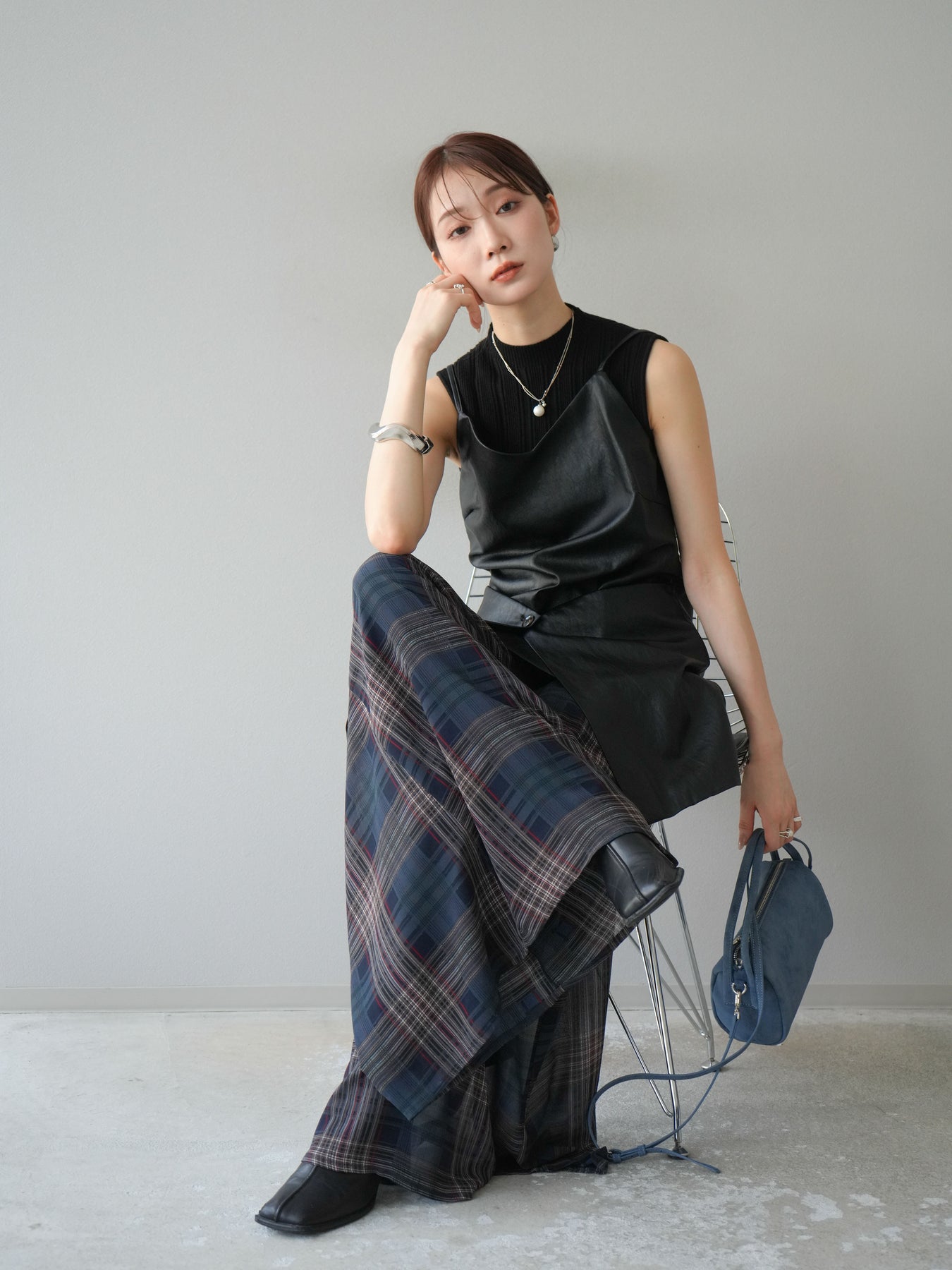 [予約]レイヤードレザーキャミソールチュニック/ブラック