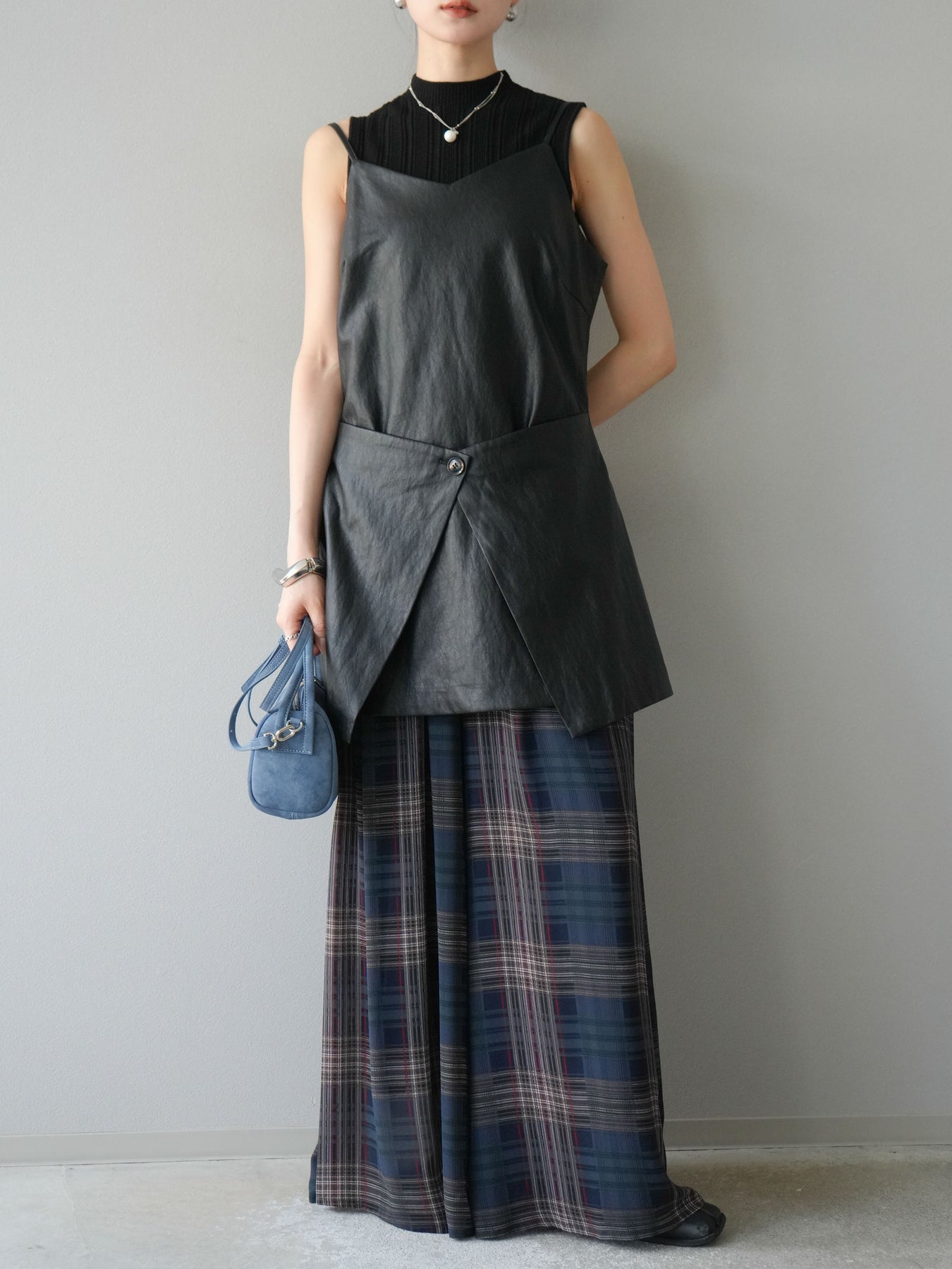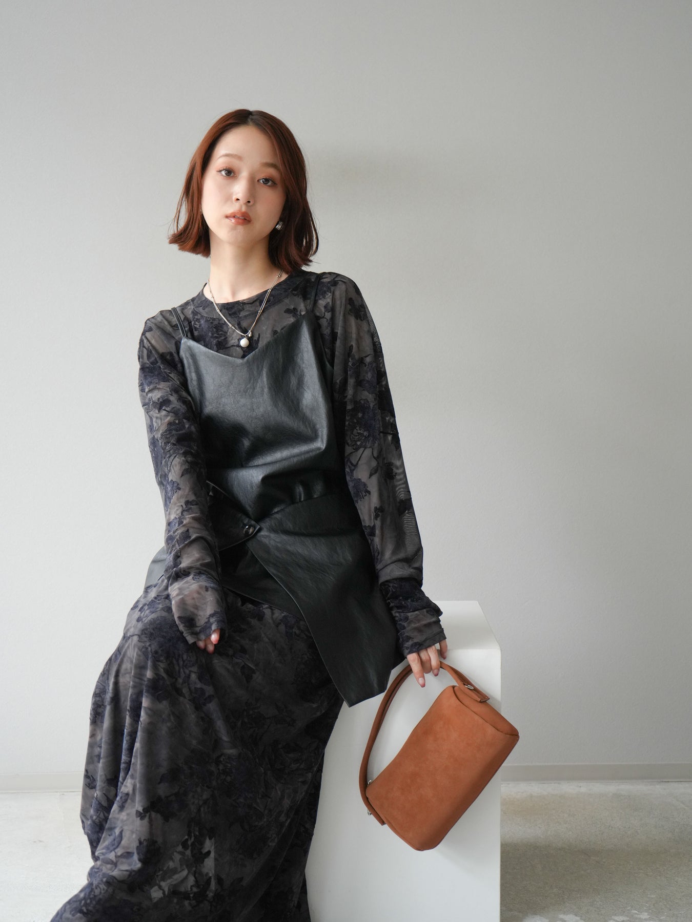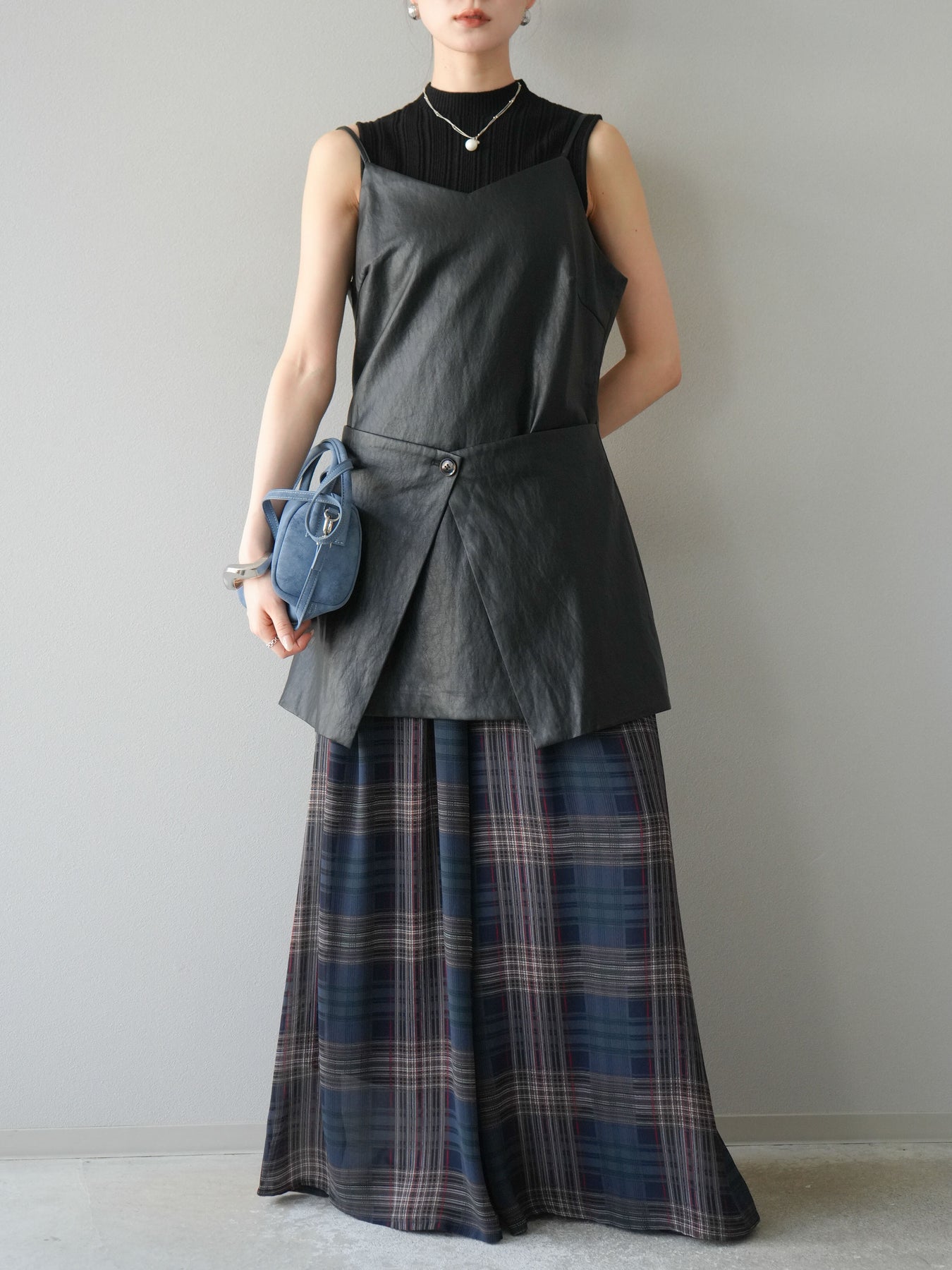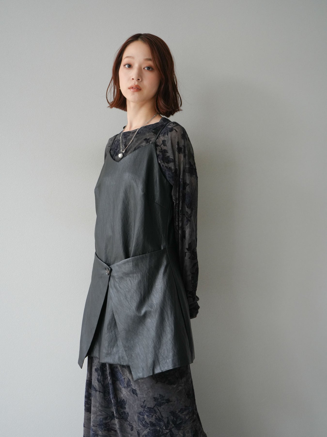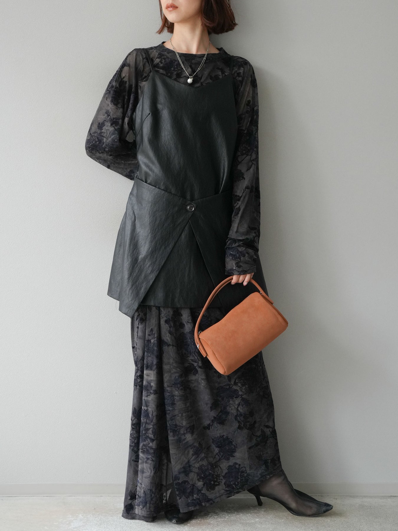 [予約]レイヤードレザーキャミソールチュニック/ブラック
