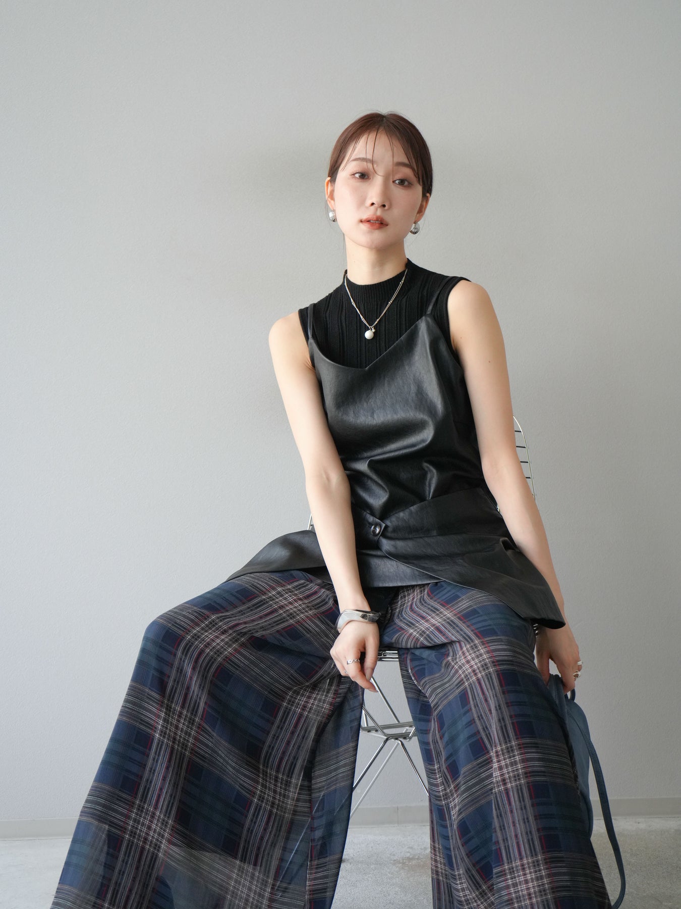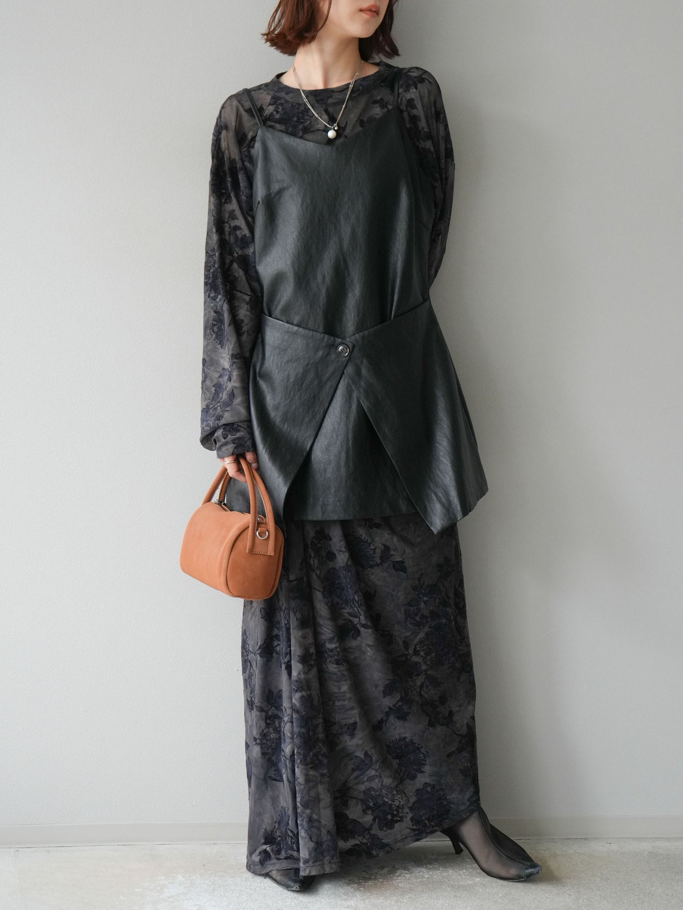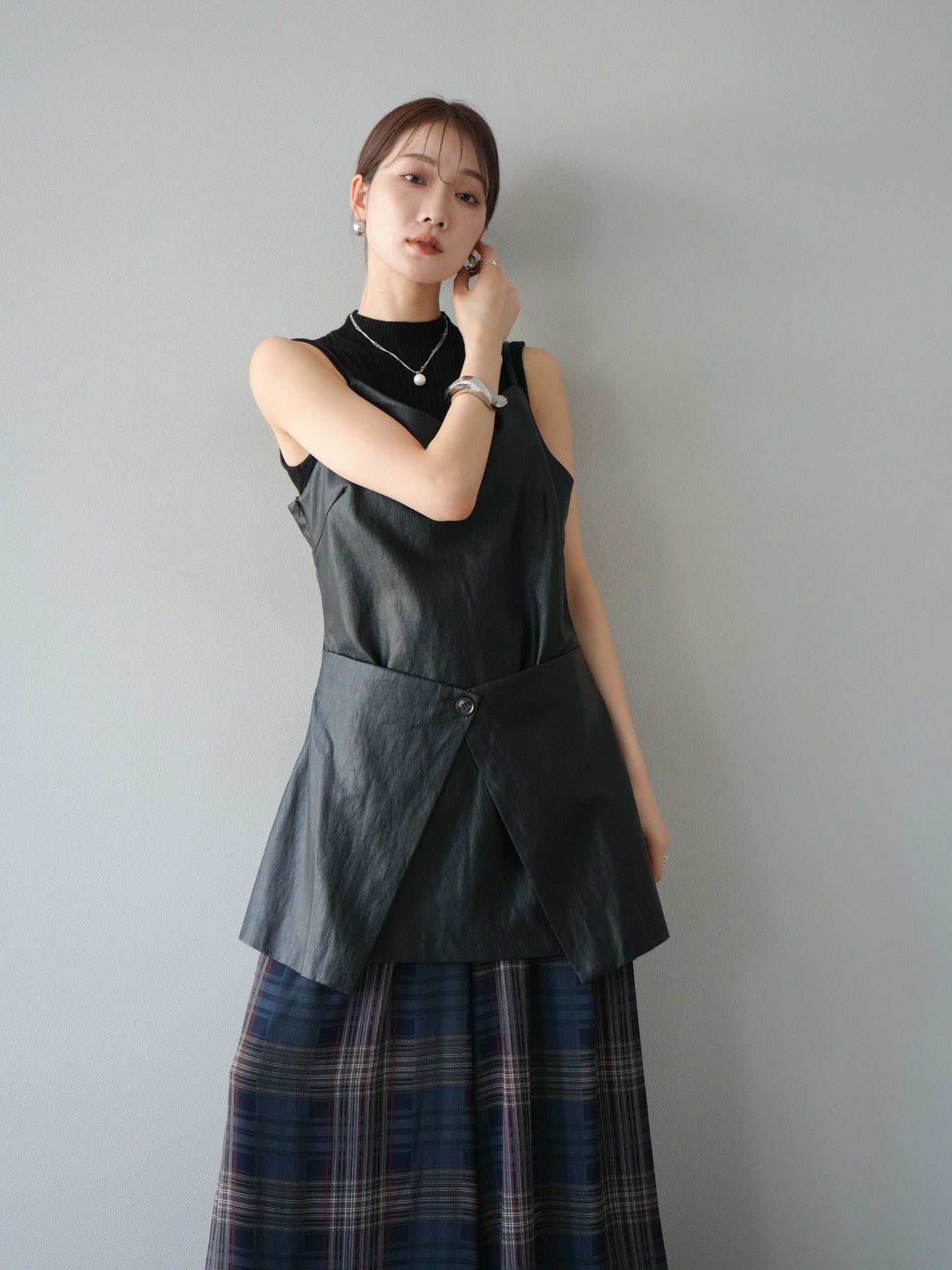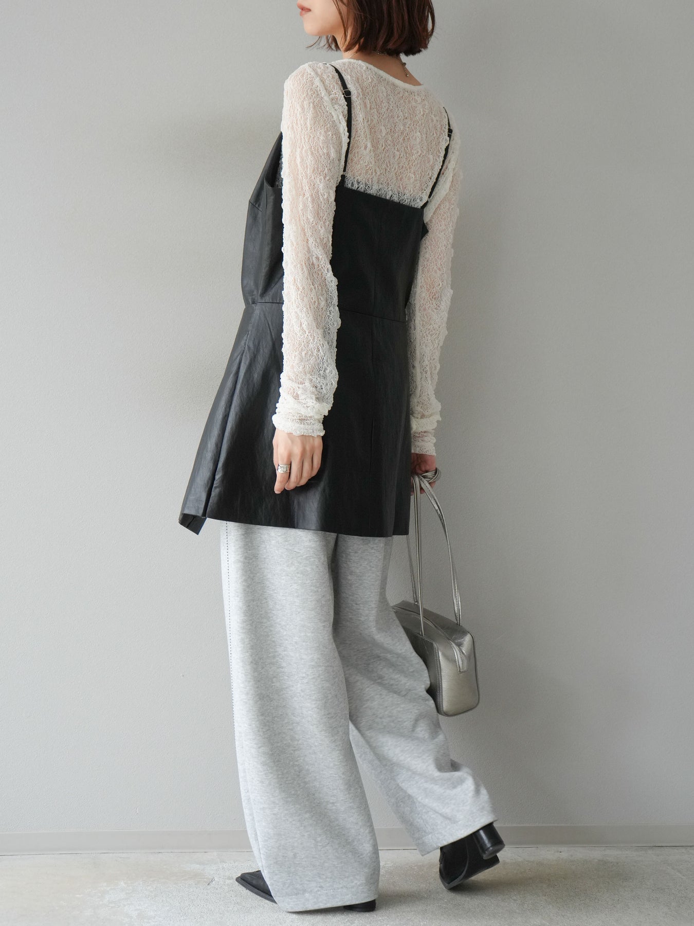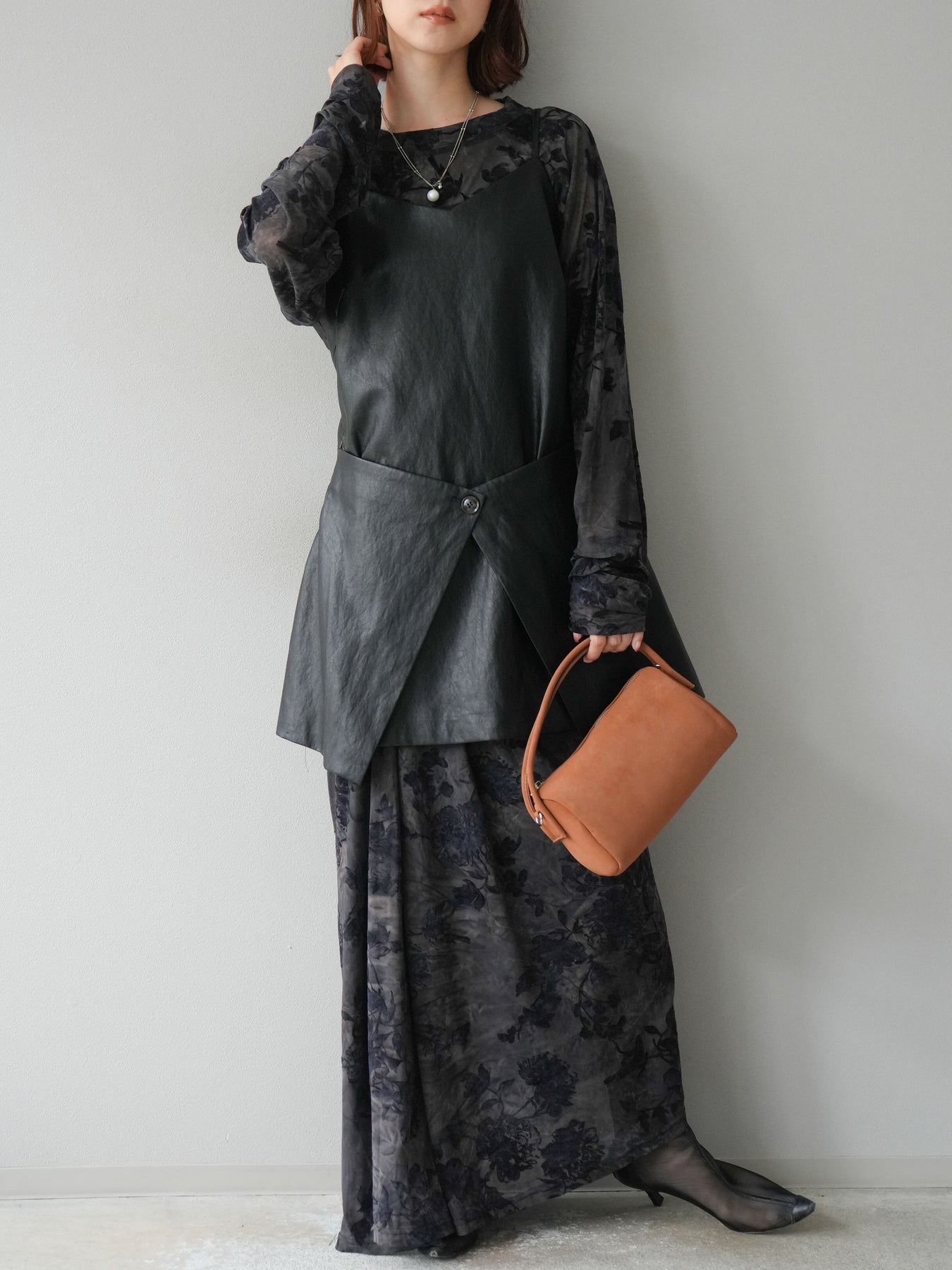 [予約]レイヤードレザーキャミソールチュニック/ブラック