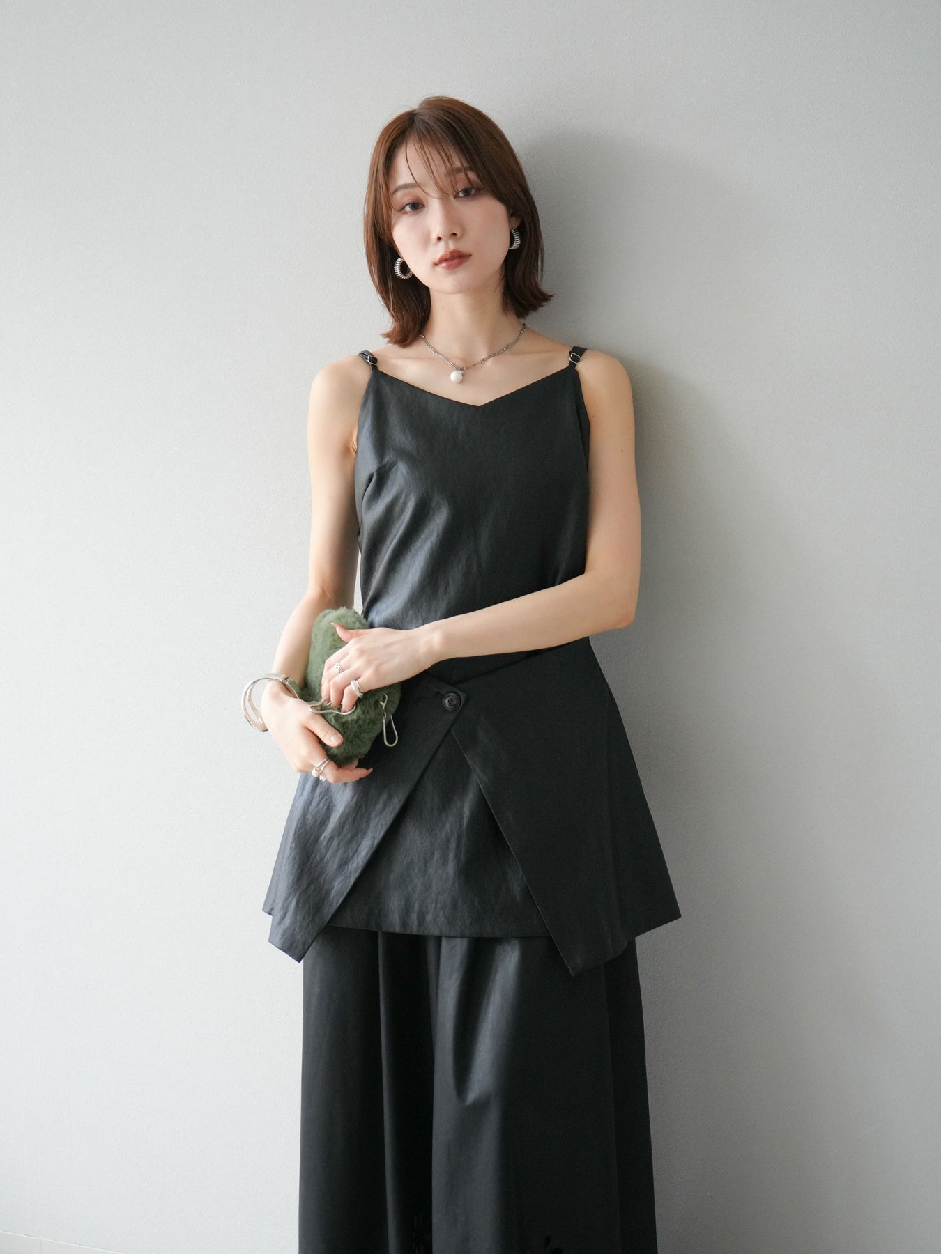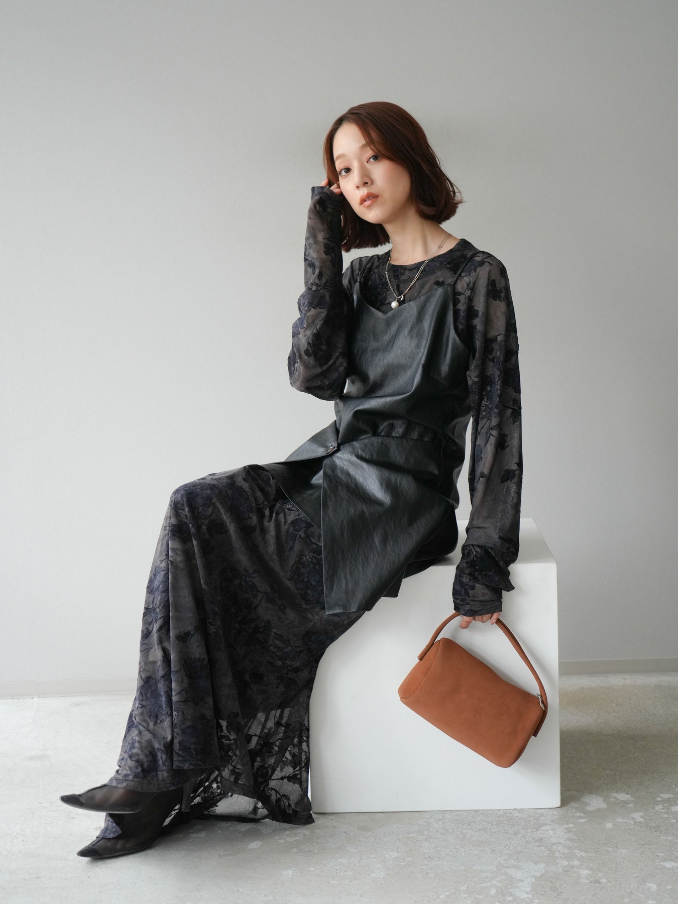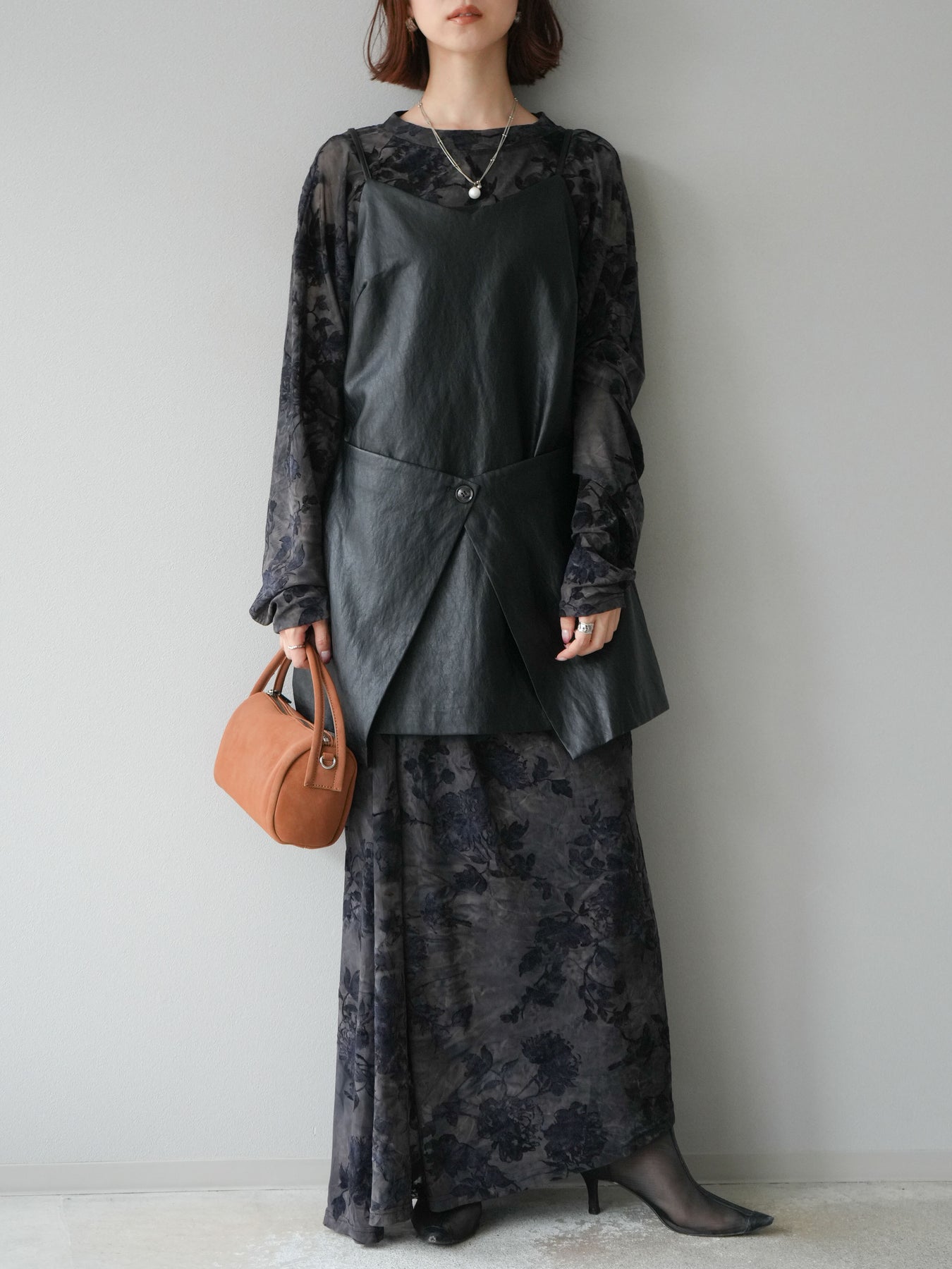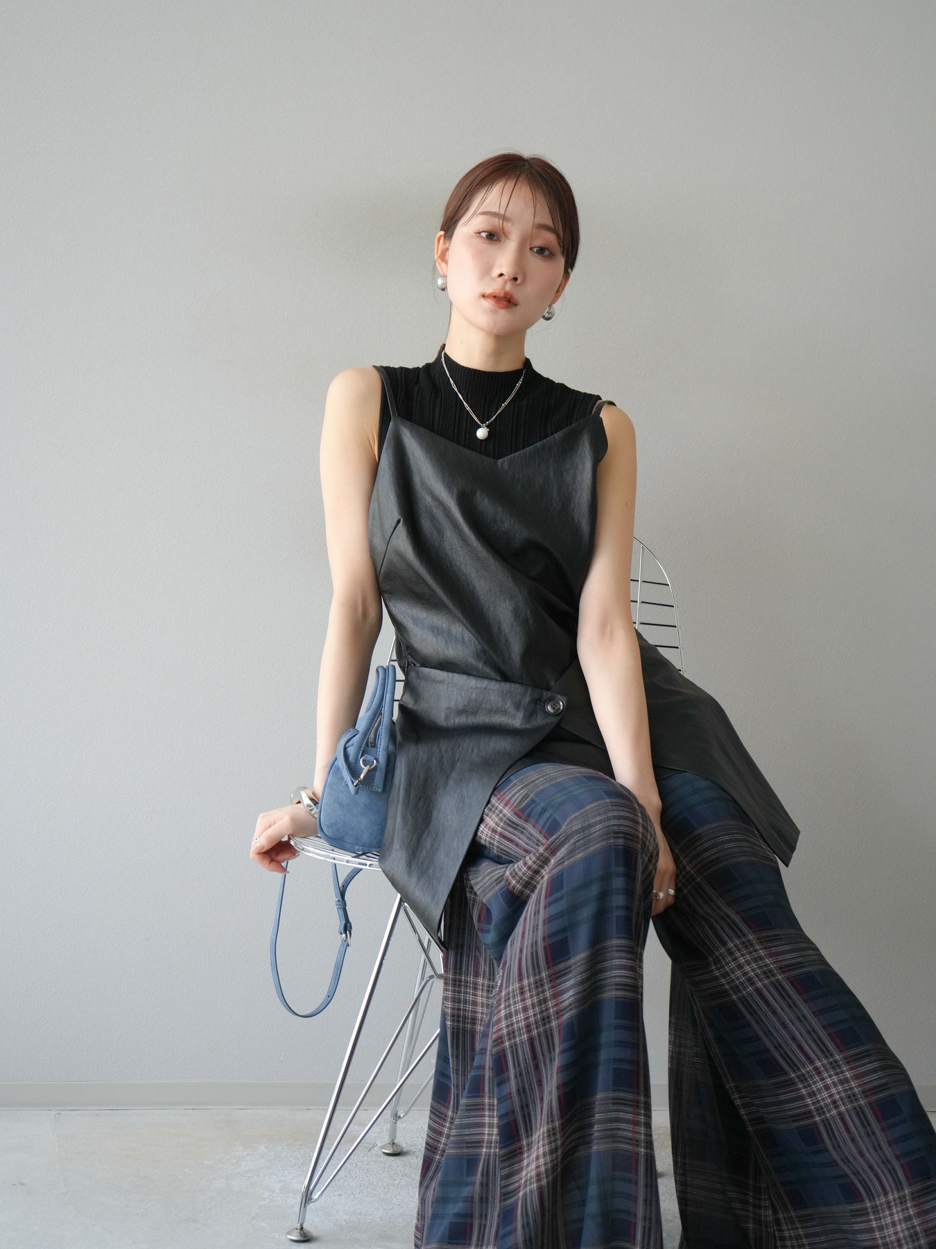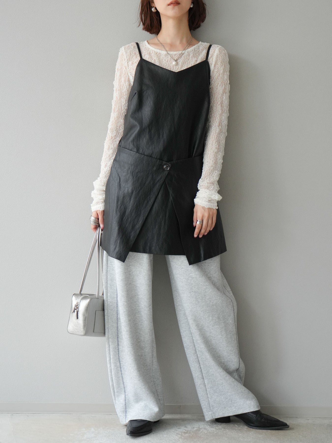 [予約]レイヤードレザーキャミソールチュニック/ブラック