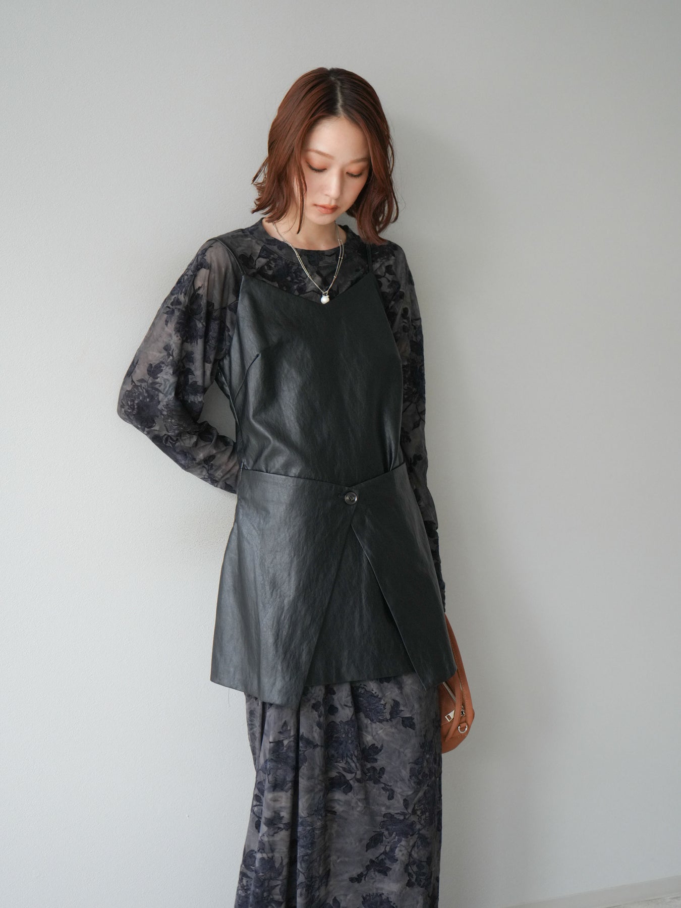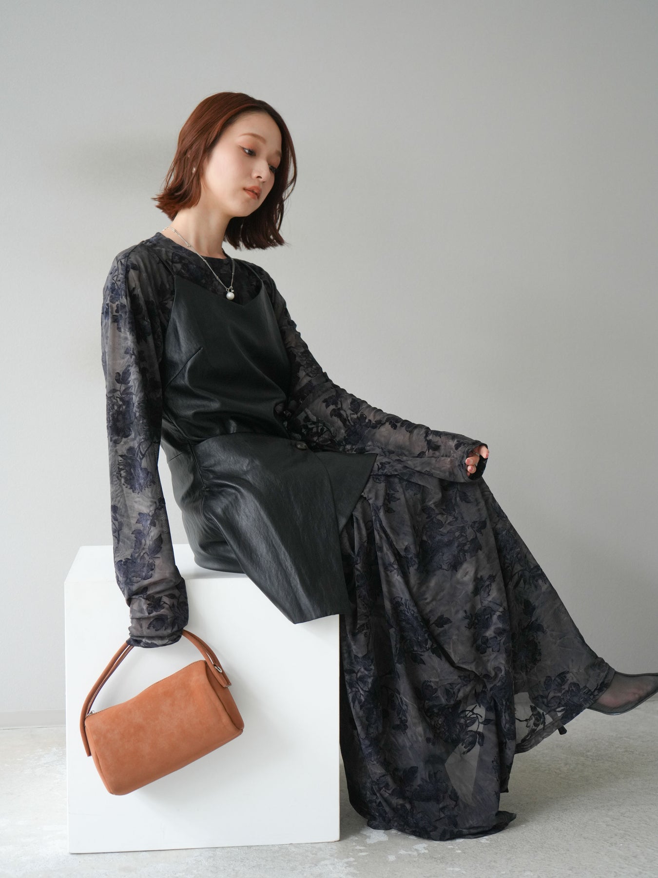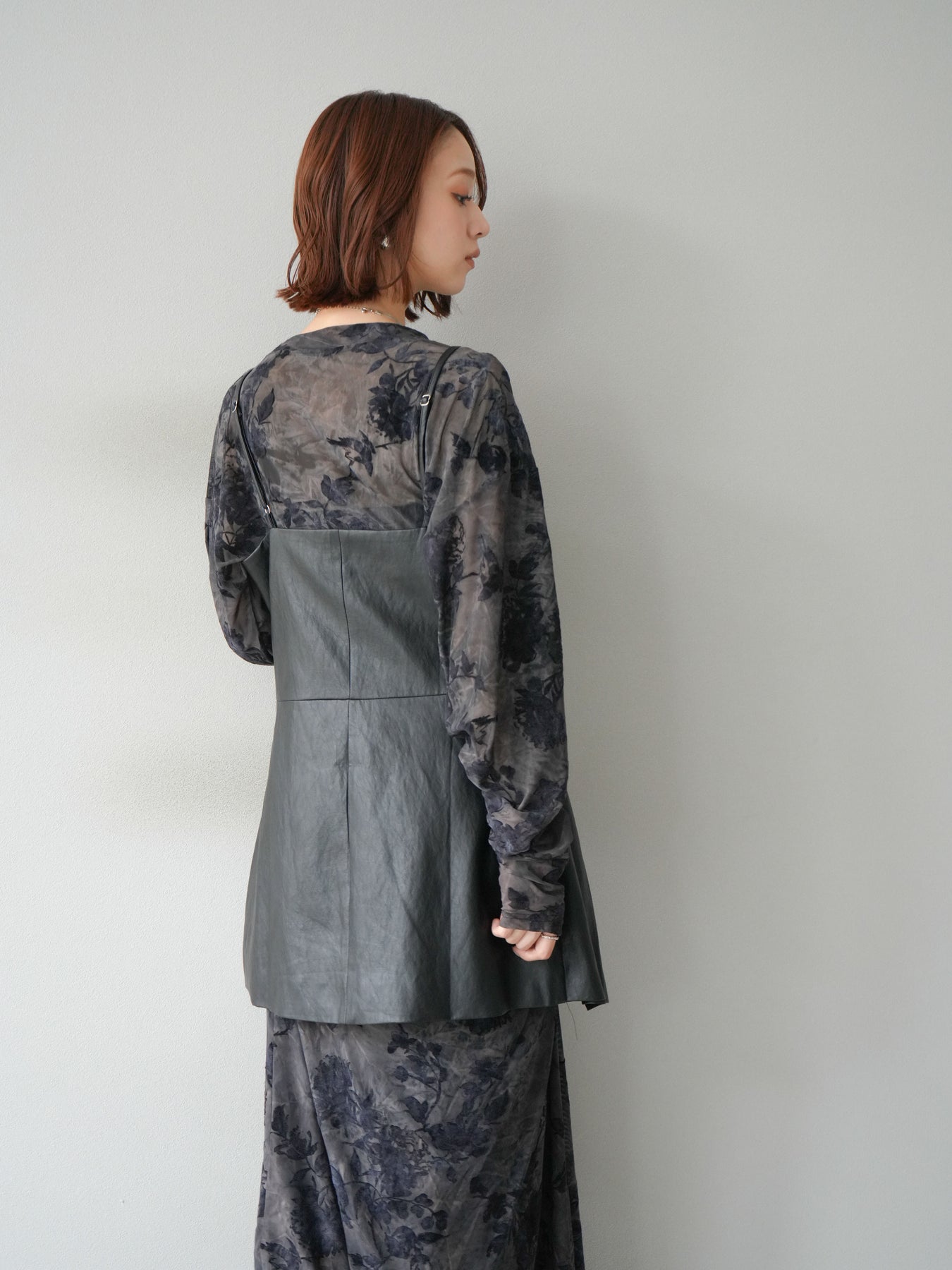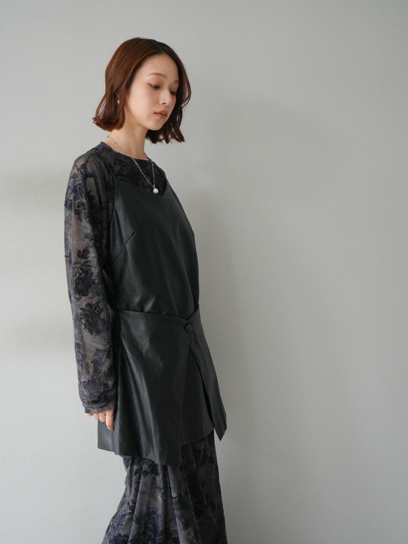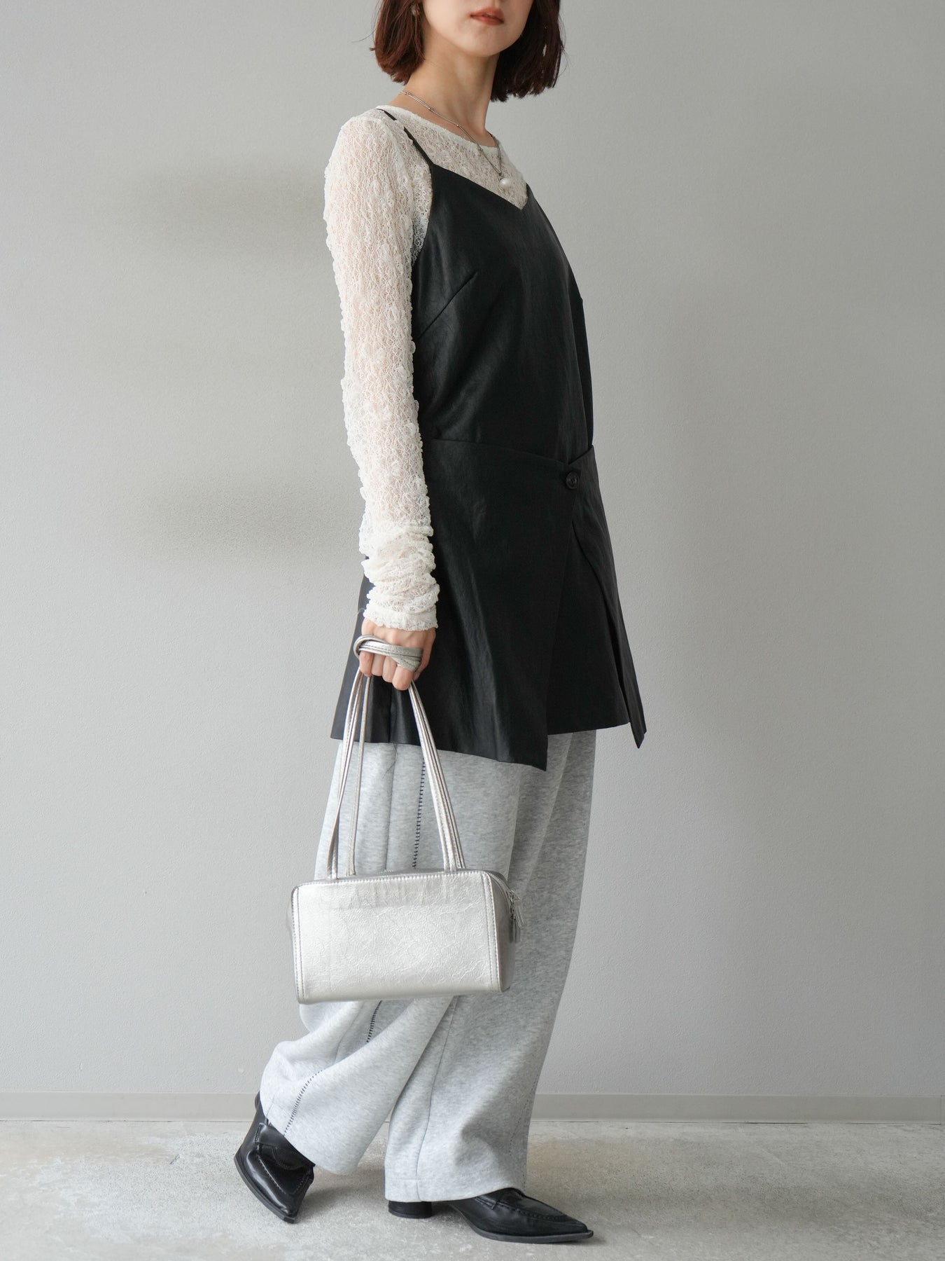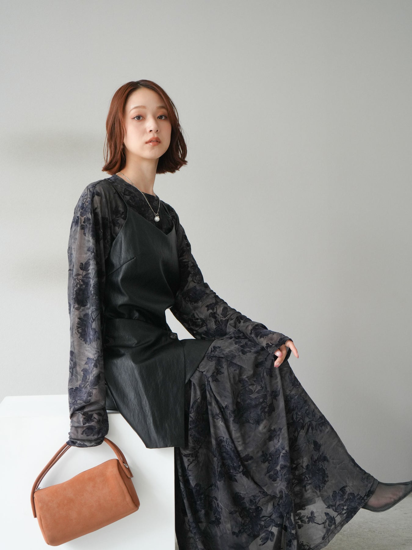 [予約]レイヤードレザーキャミソールチュニック/ブラック
