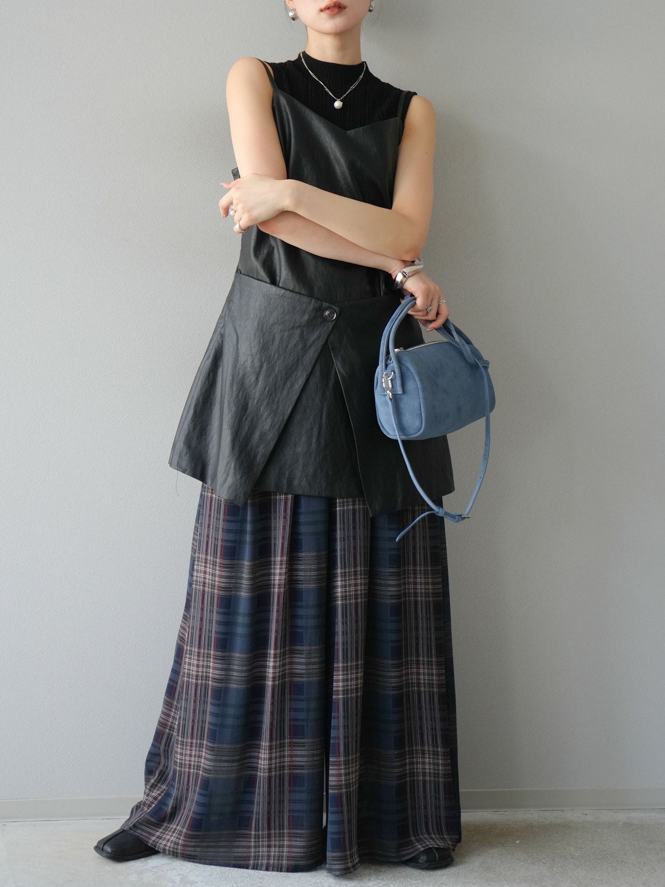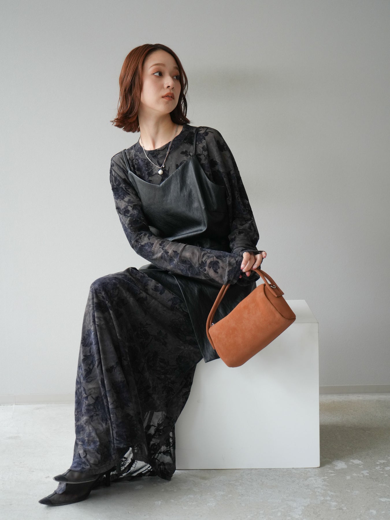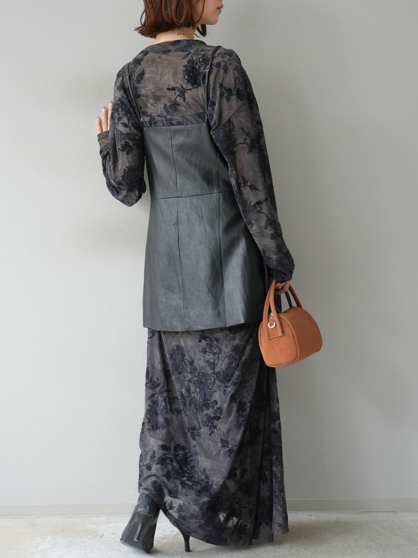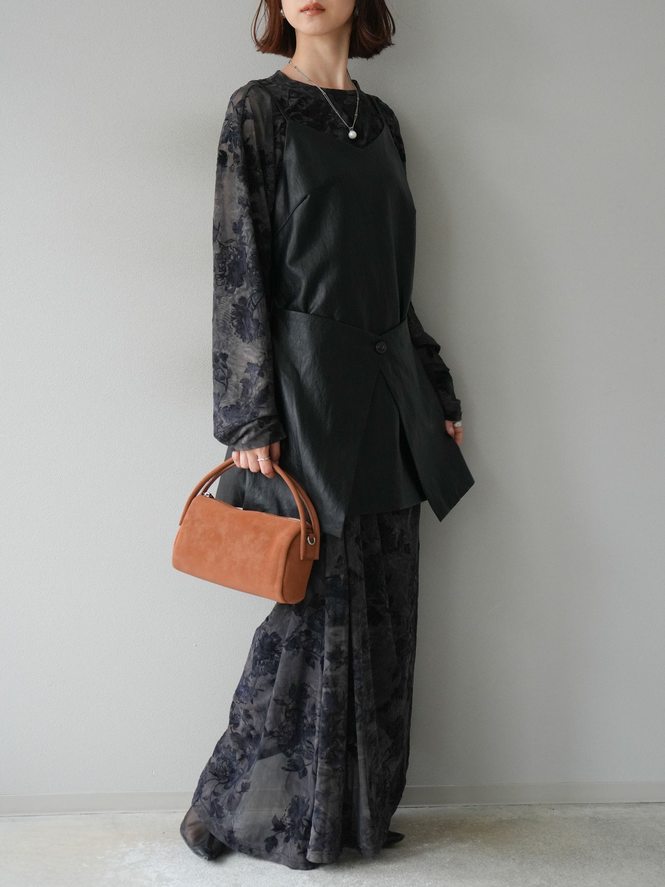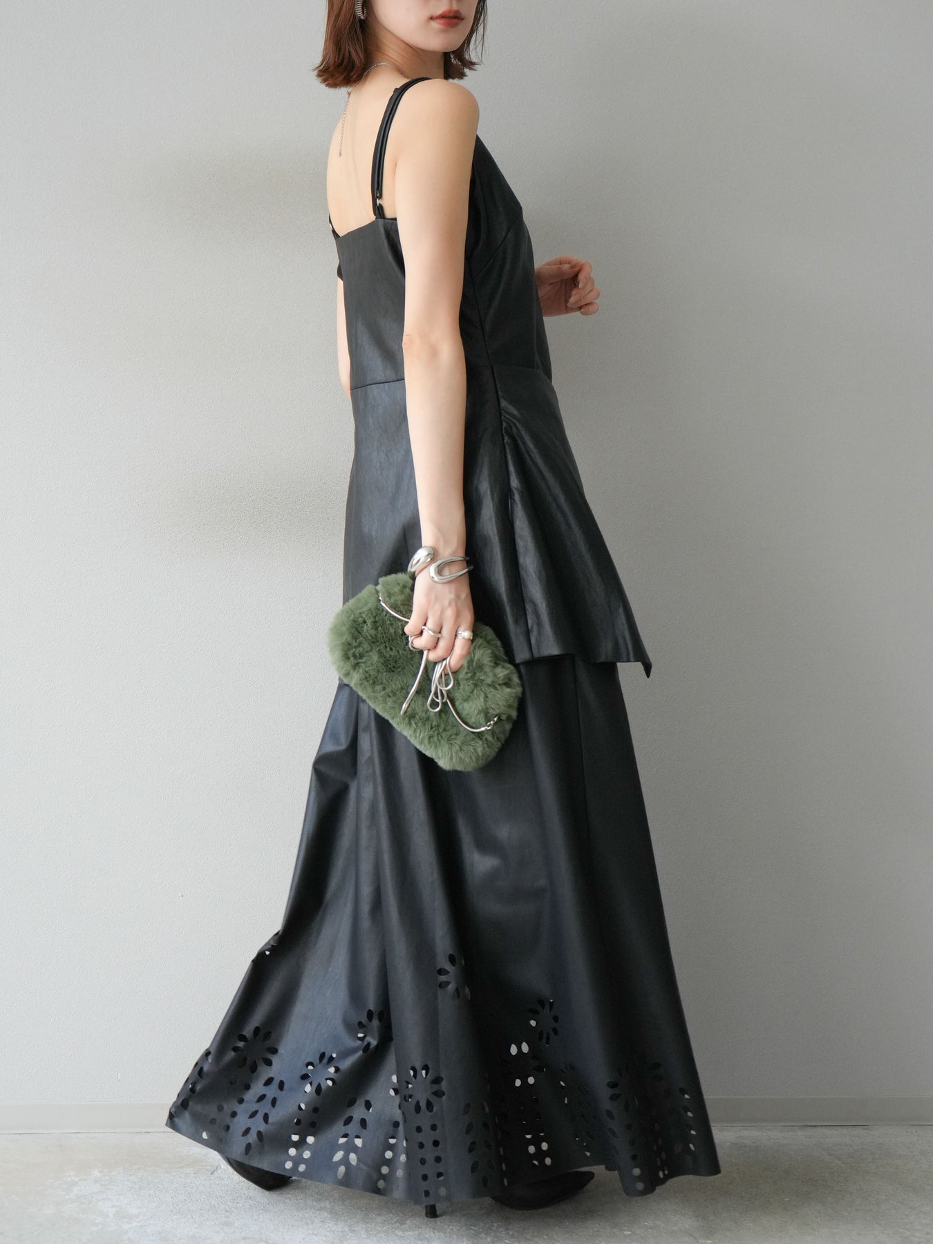 [予約]レイヤードレザーキャミソールチュニック/ブラック