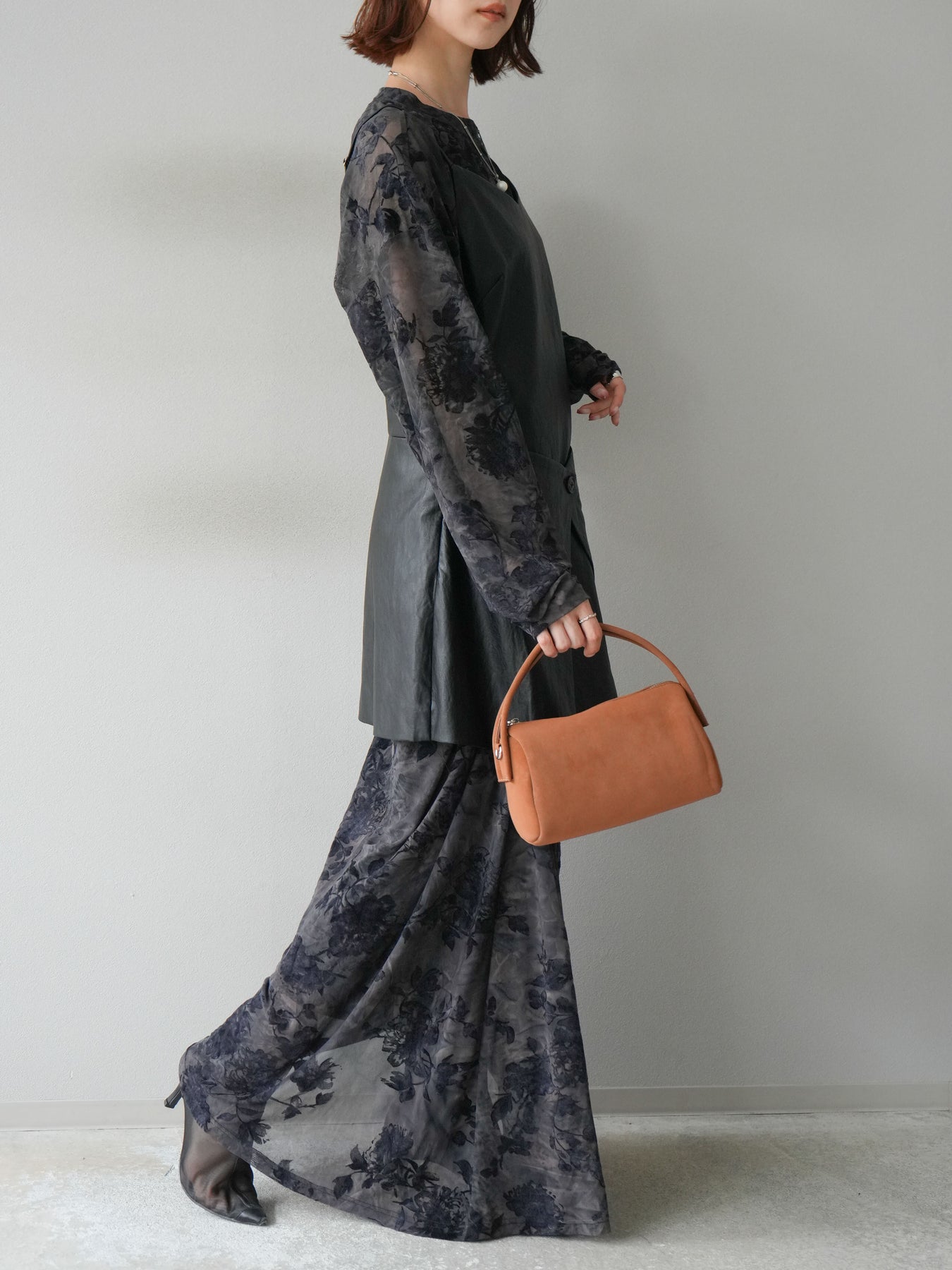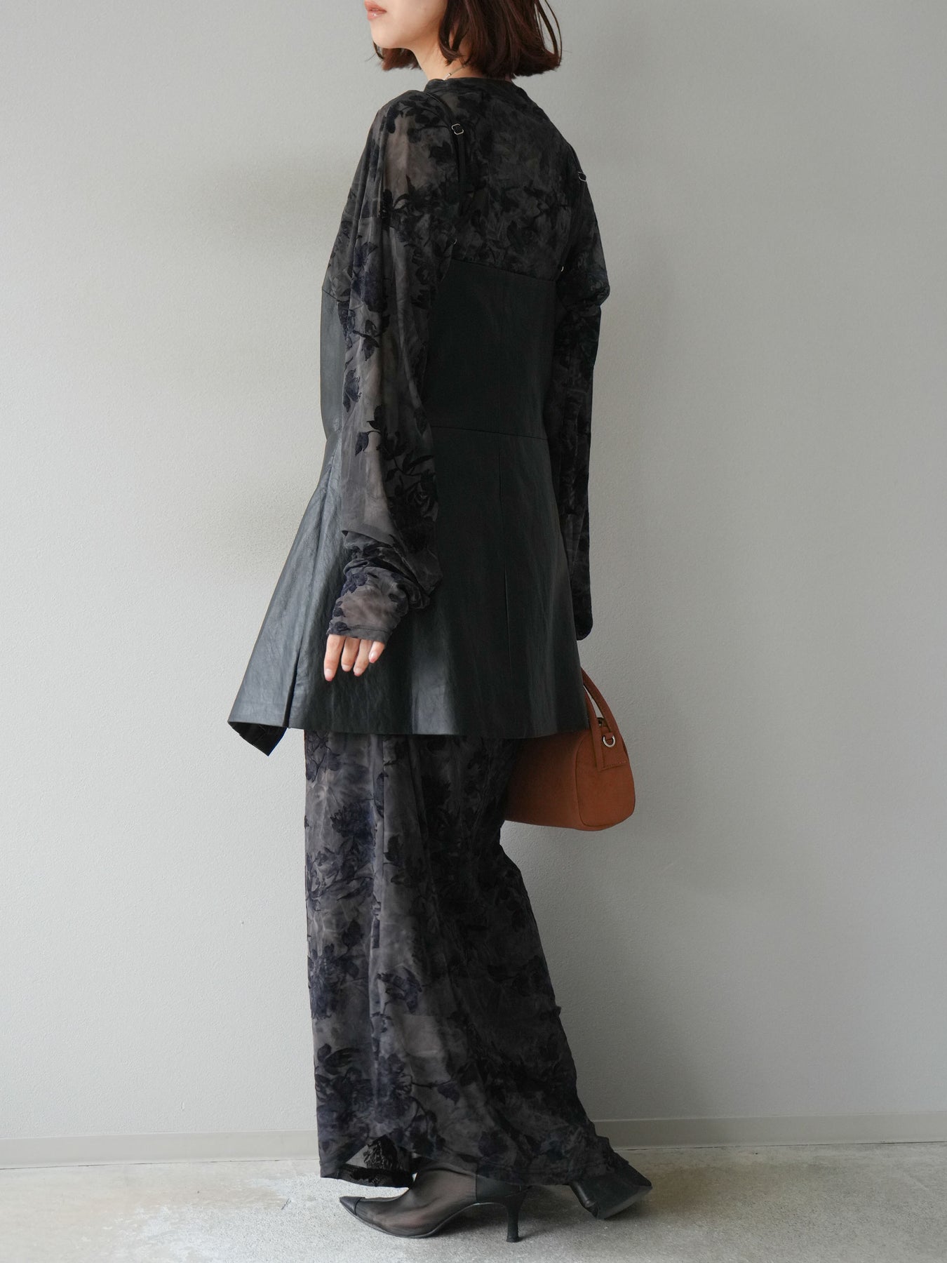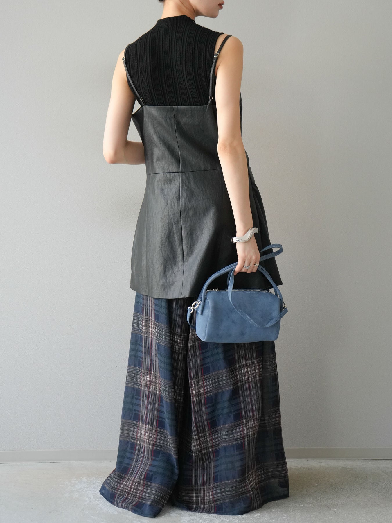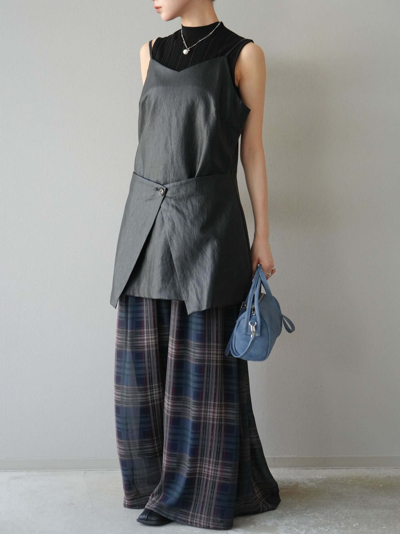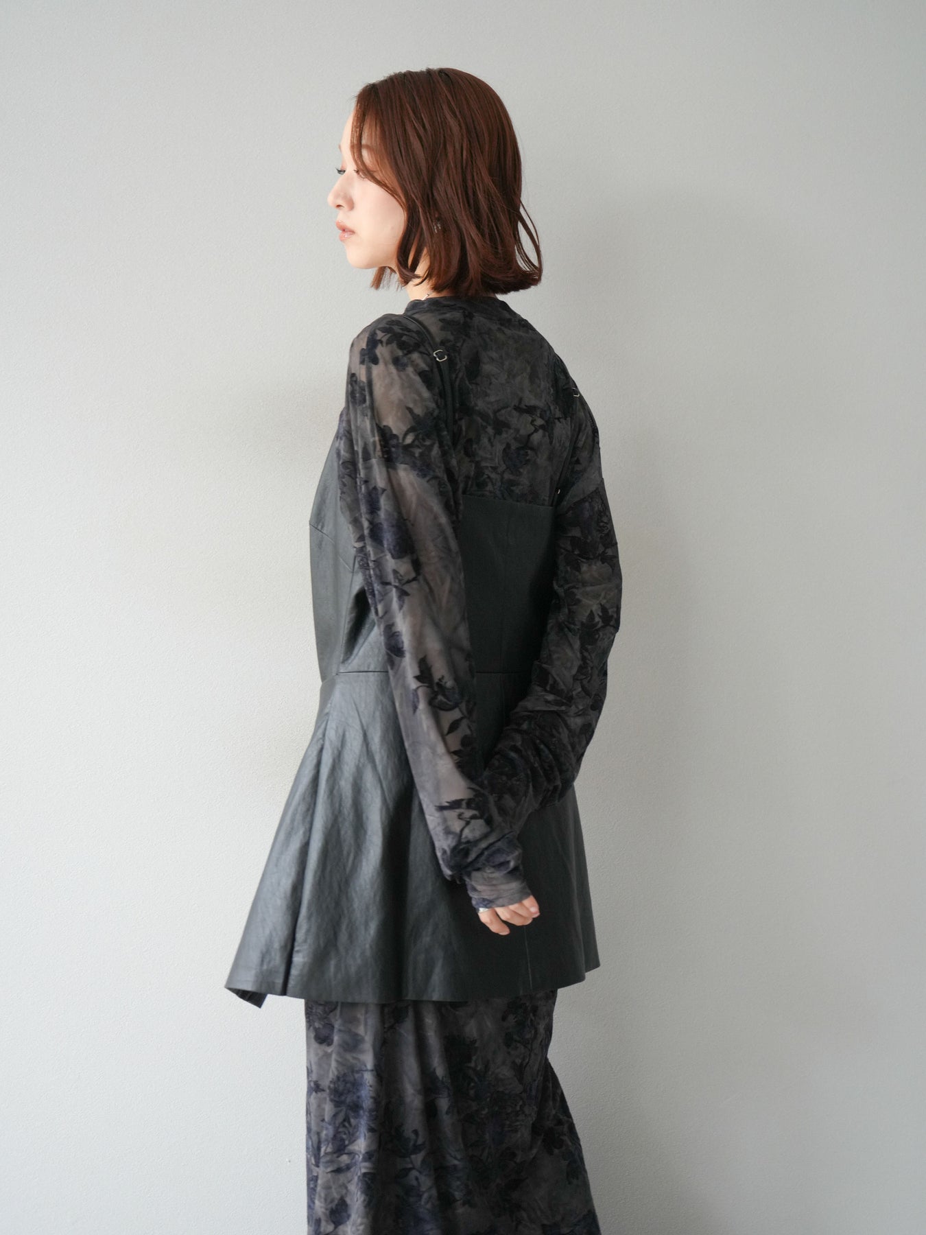 [予約]レイヤードレザーキャミソールチュニック/ブラック