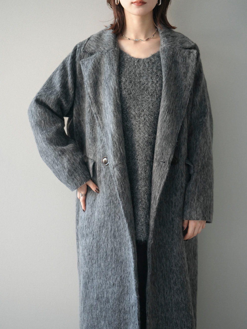 【預購】柔軟蓬鬆的切斯特外套 / 炭灰色