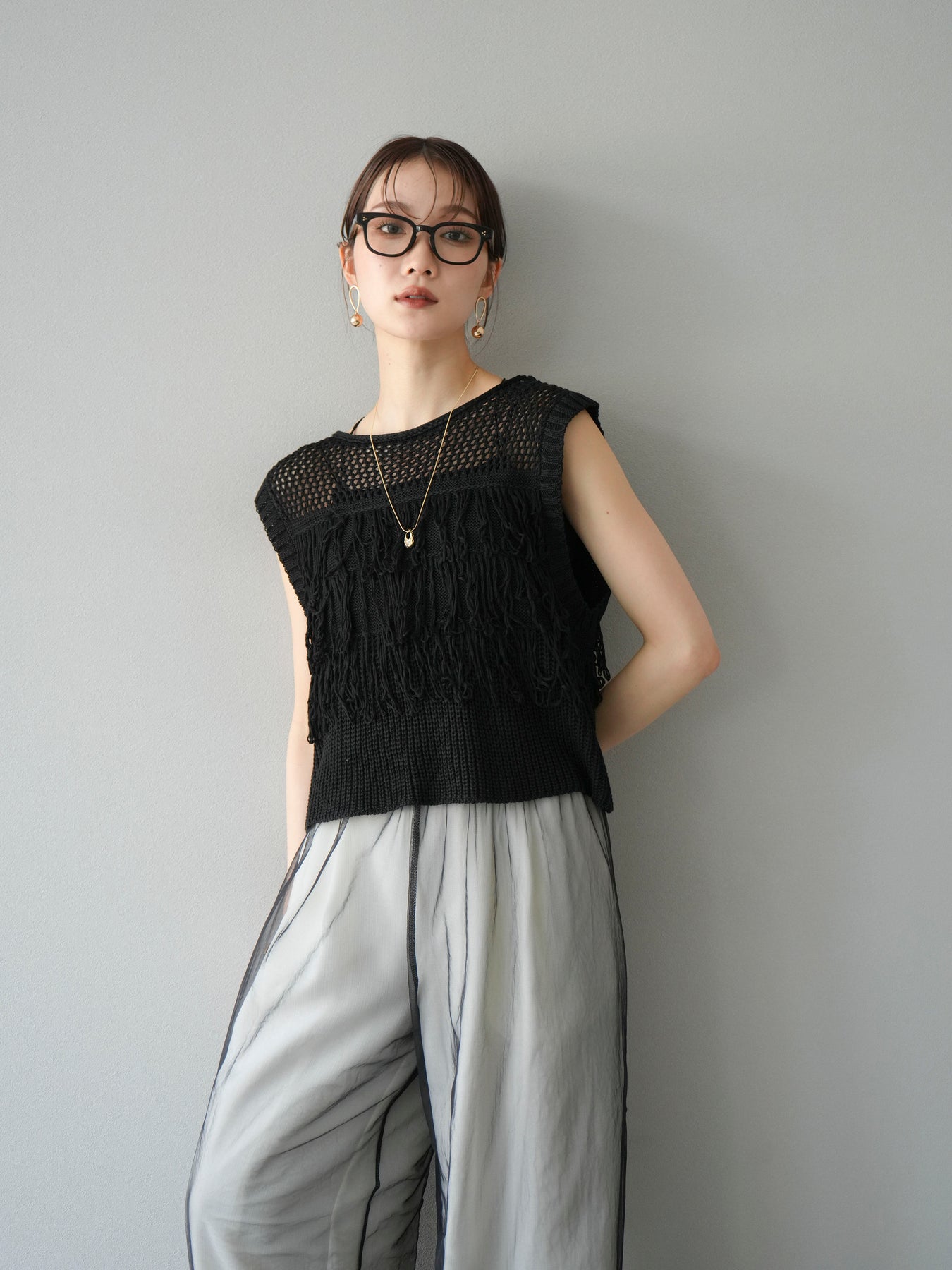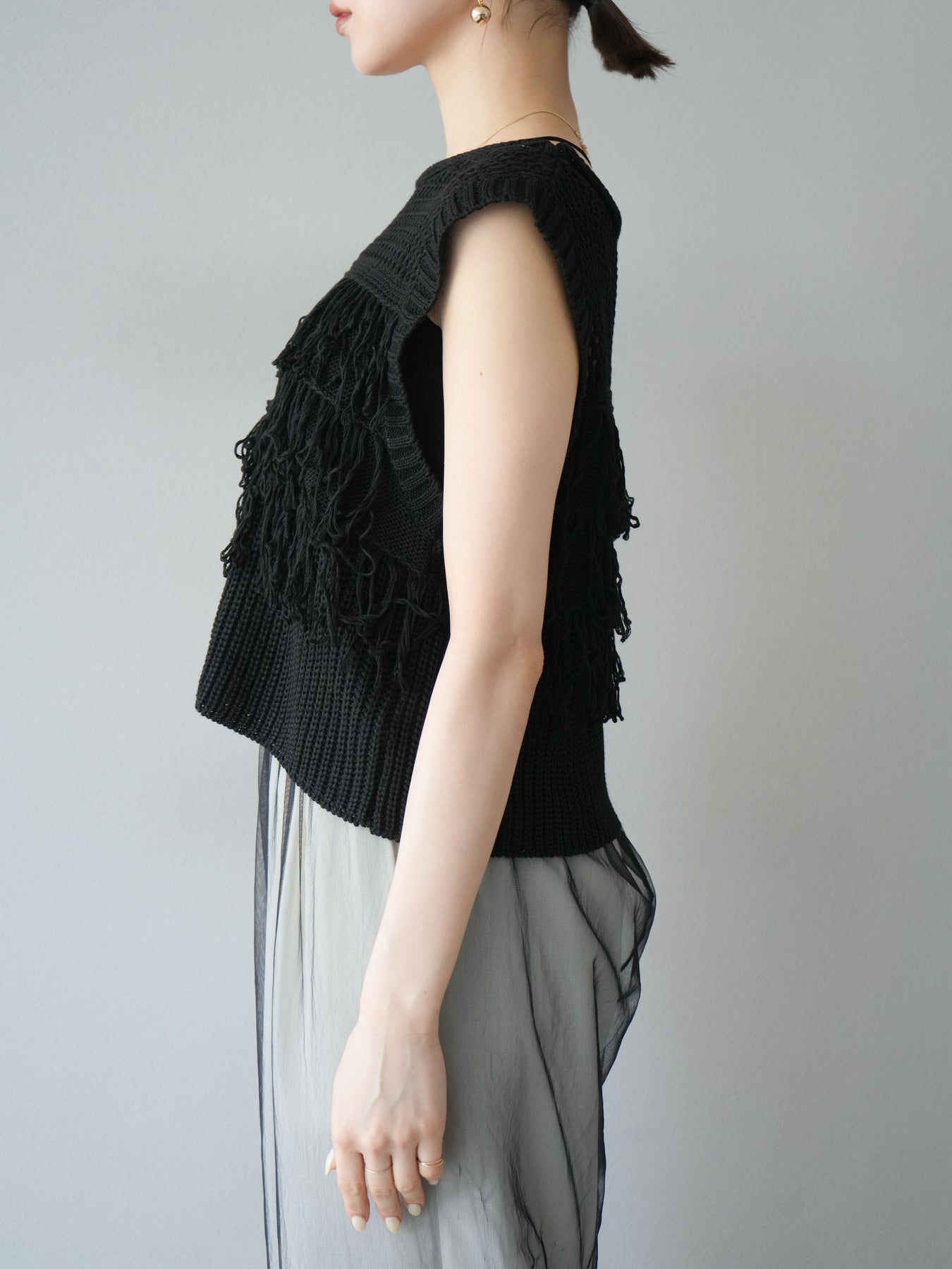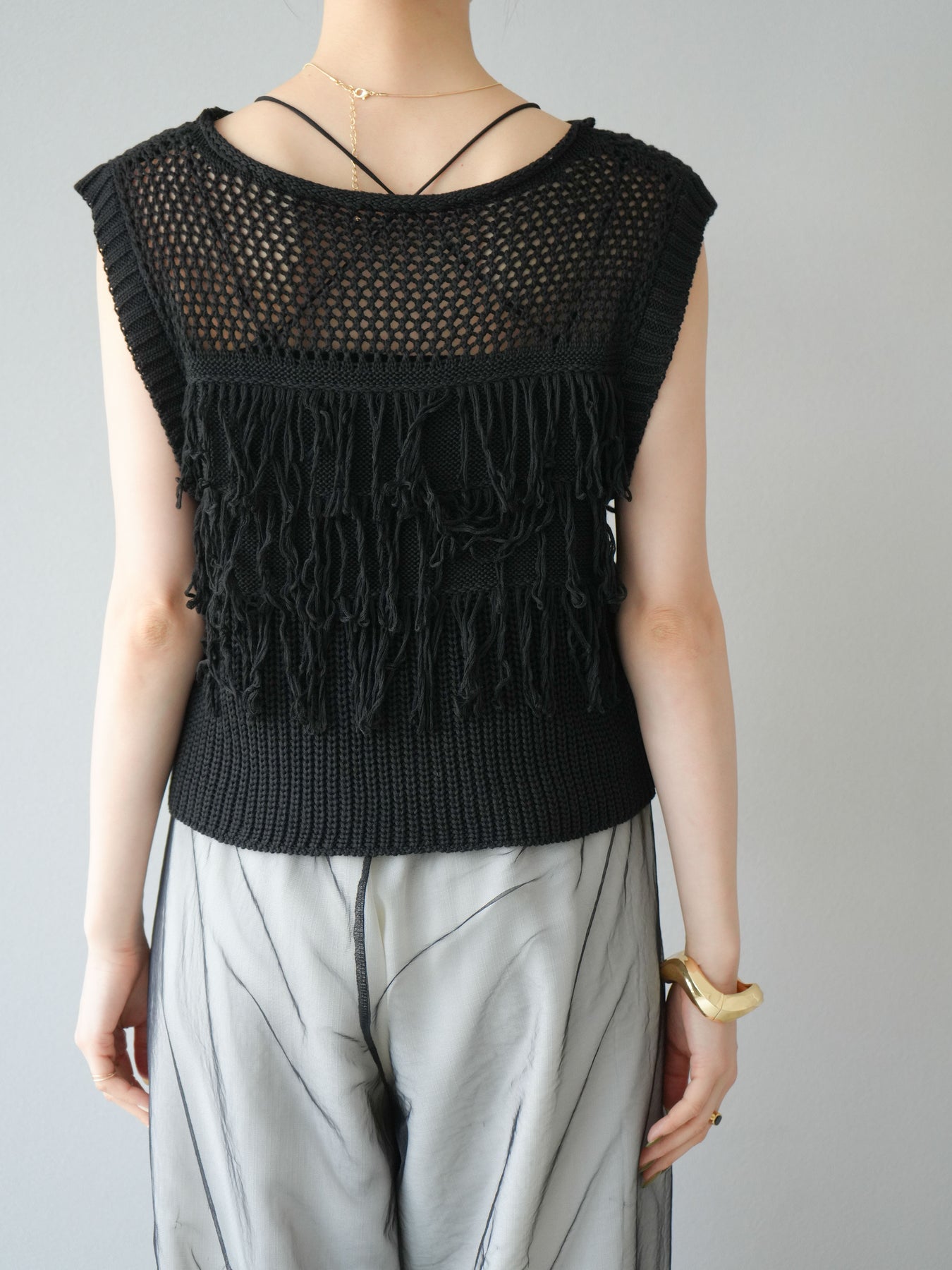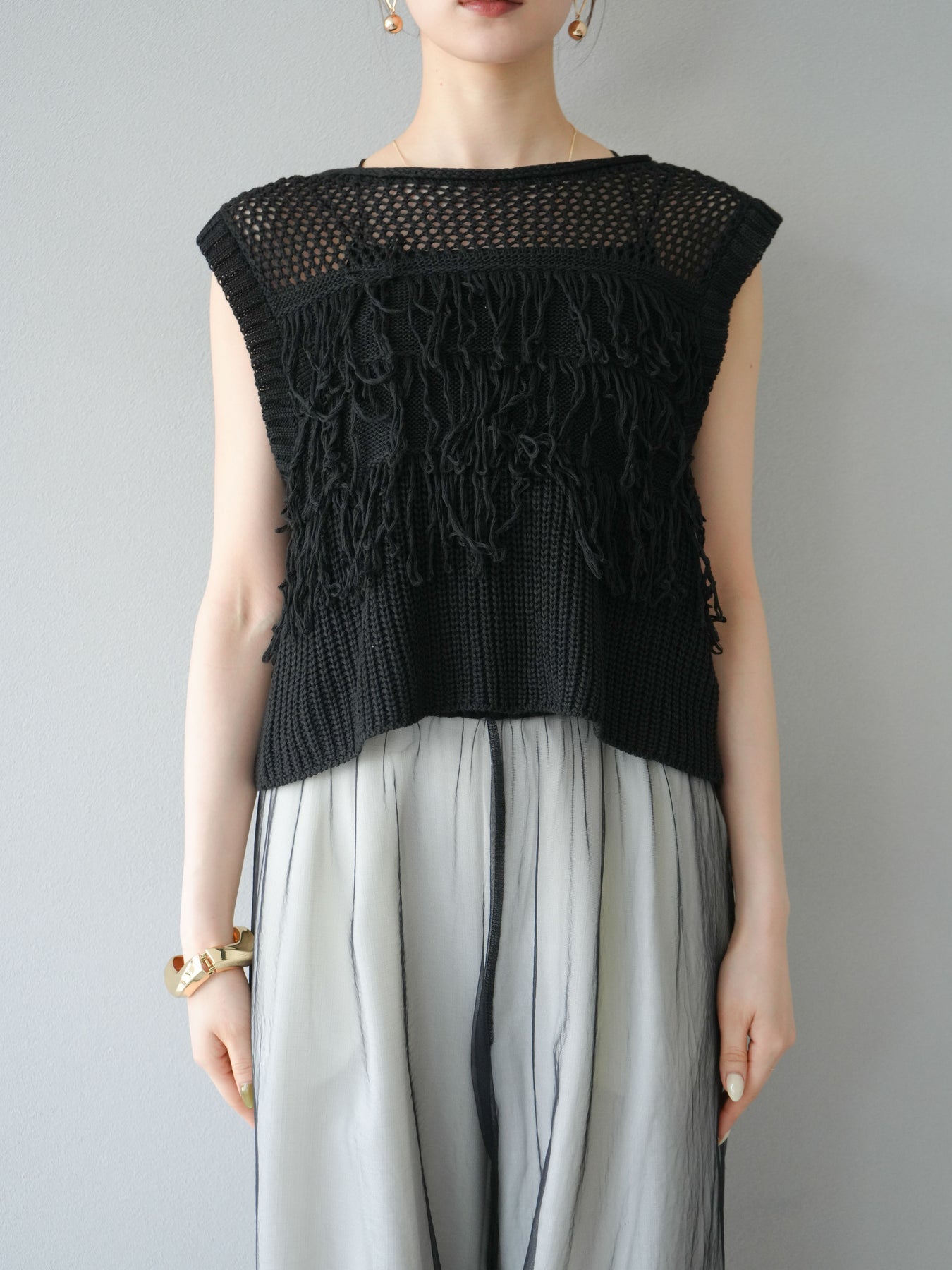 【預購】鏤空流蘇針織上衣/黑色