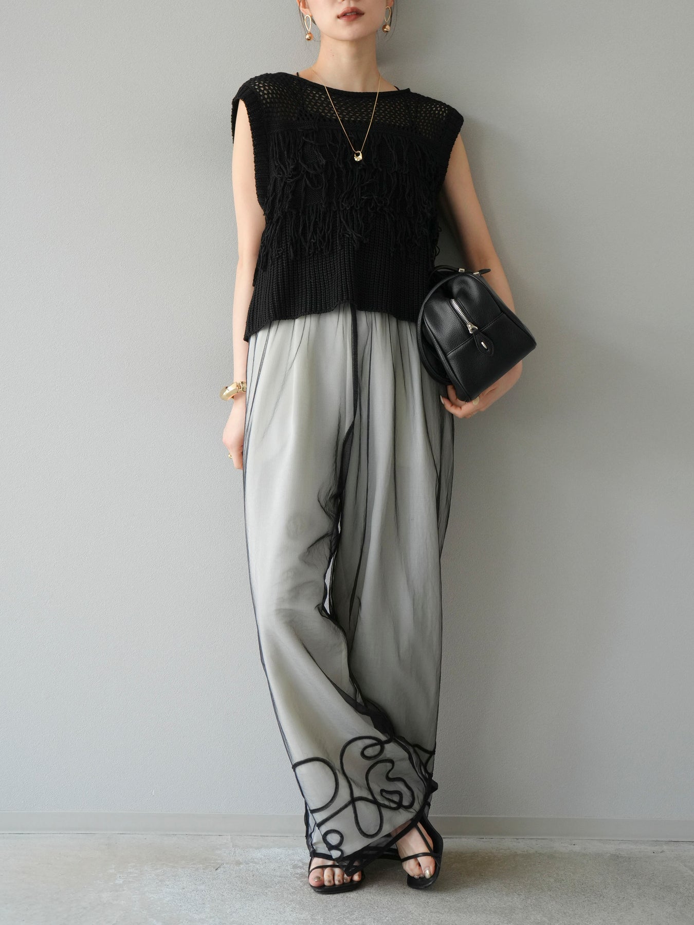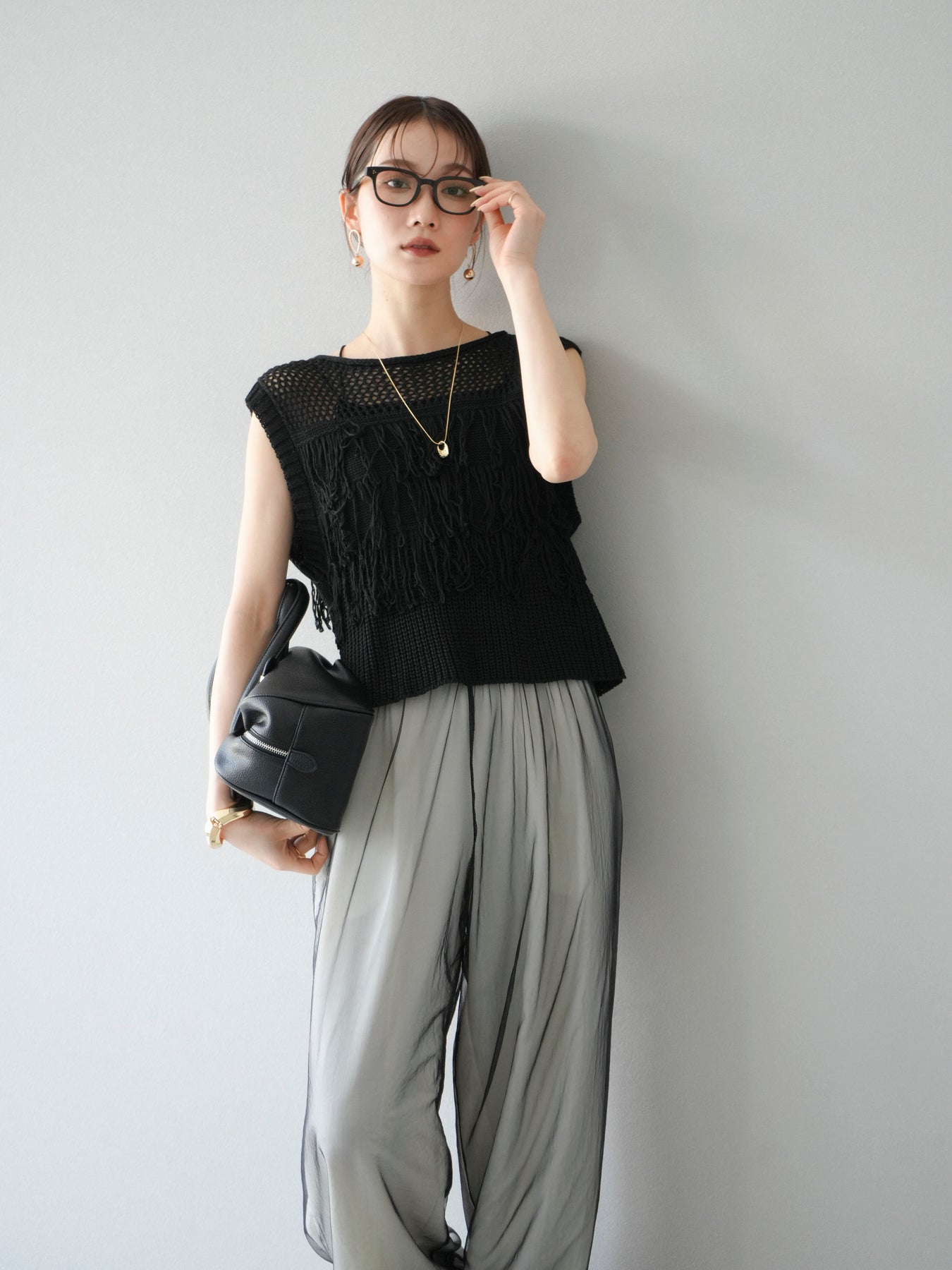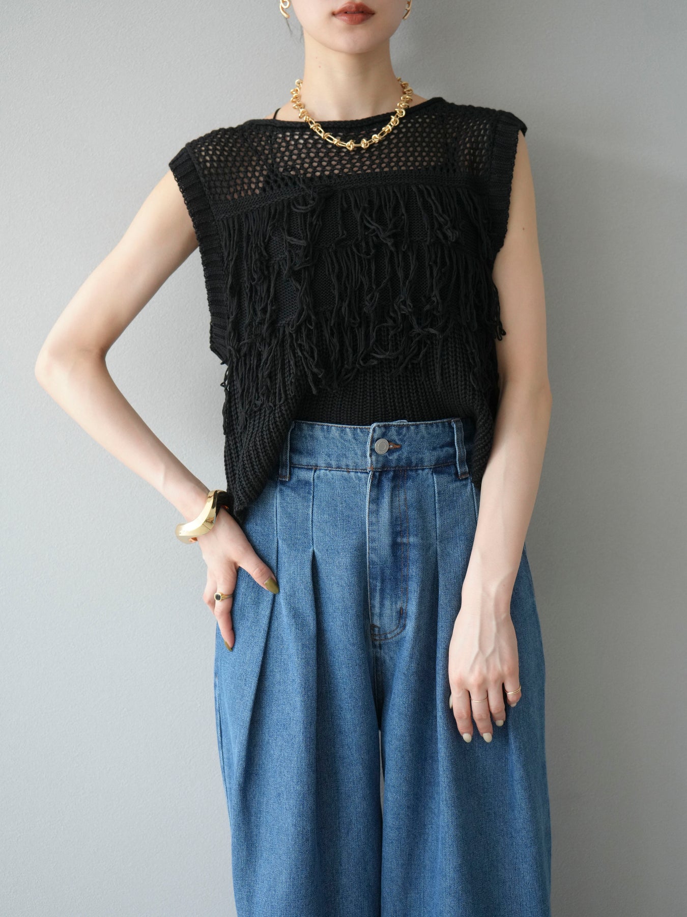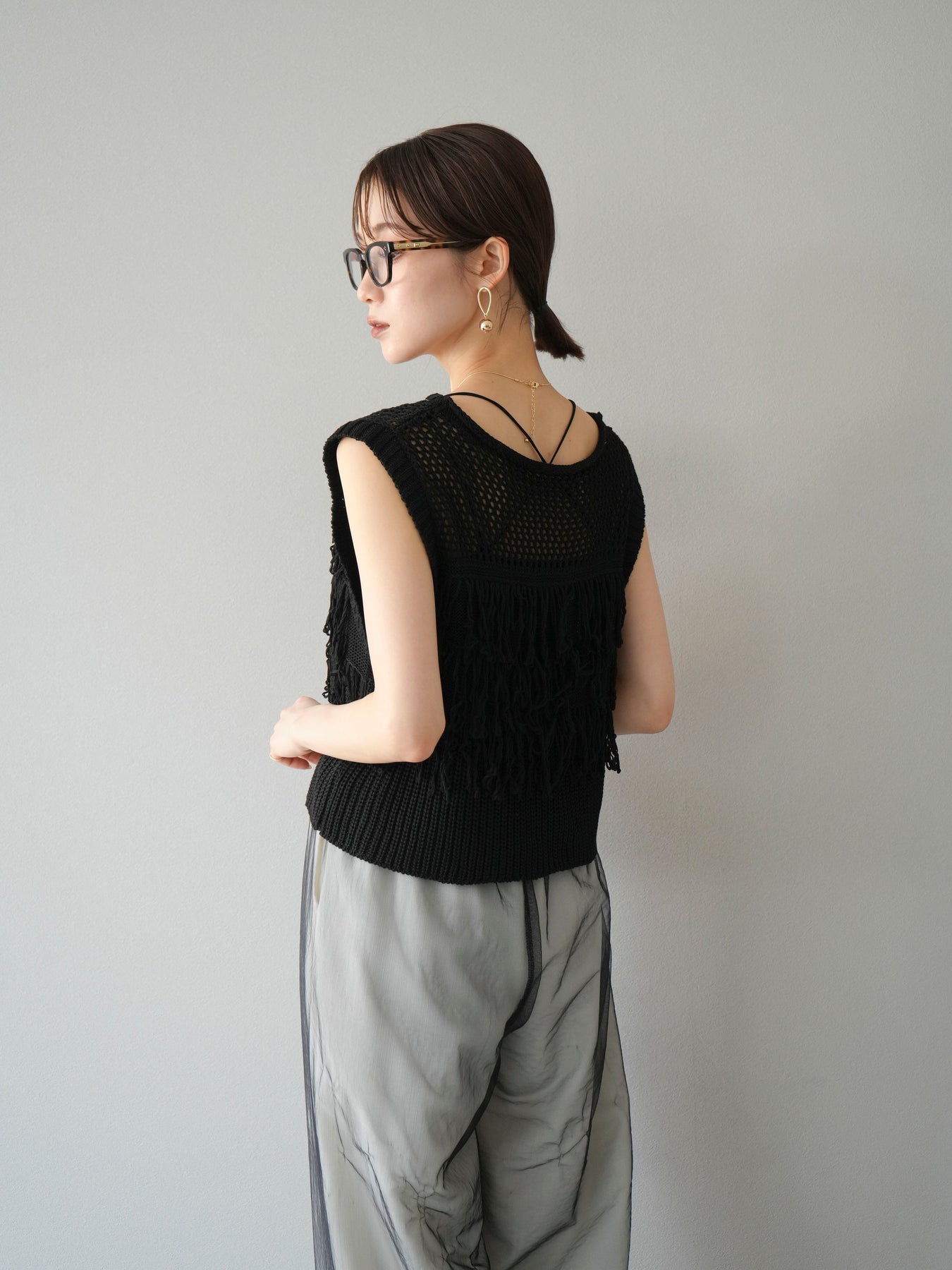 【預購】鏤空流蘇針織上衣/黑色