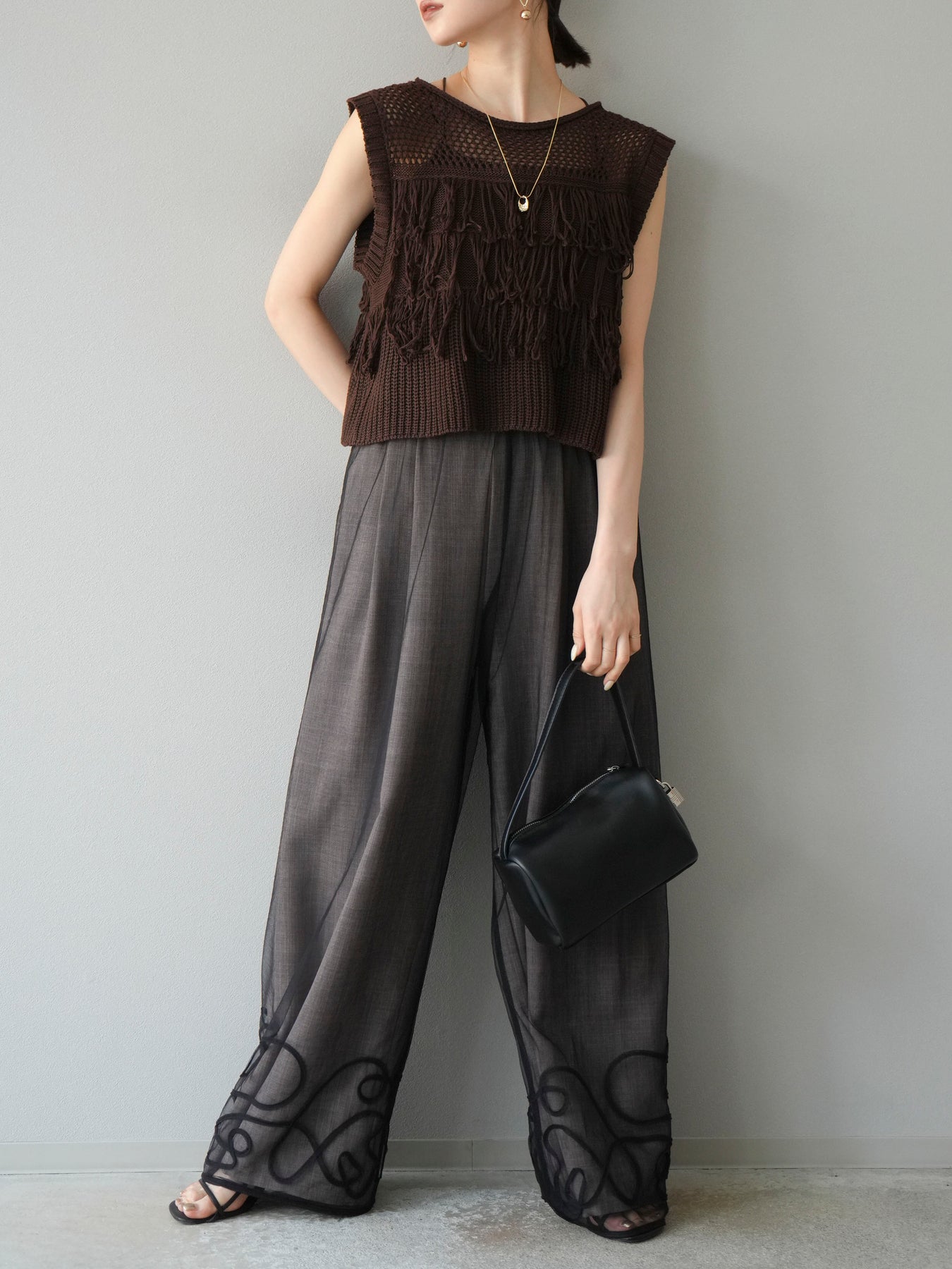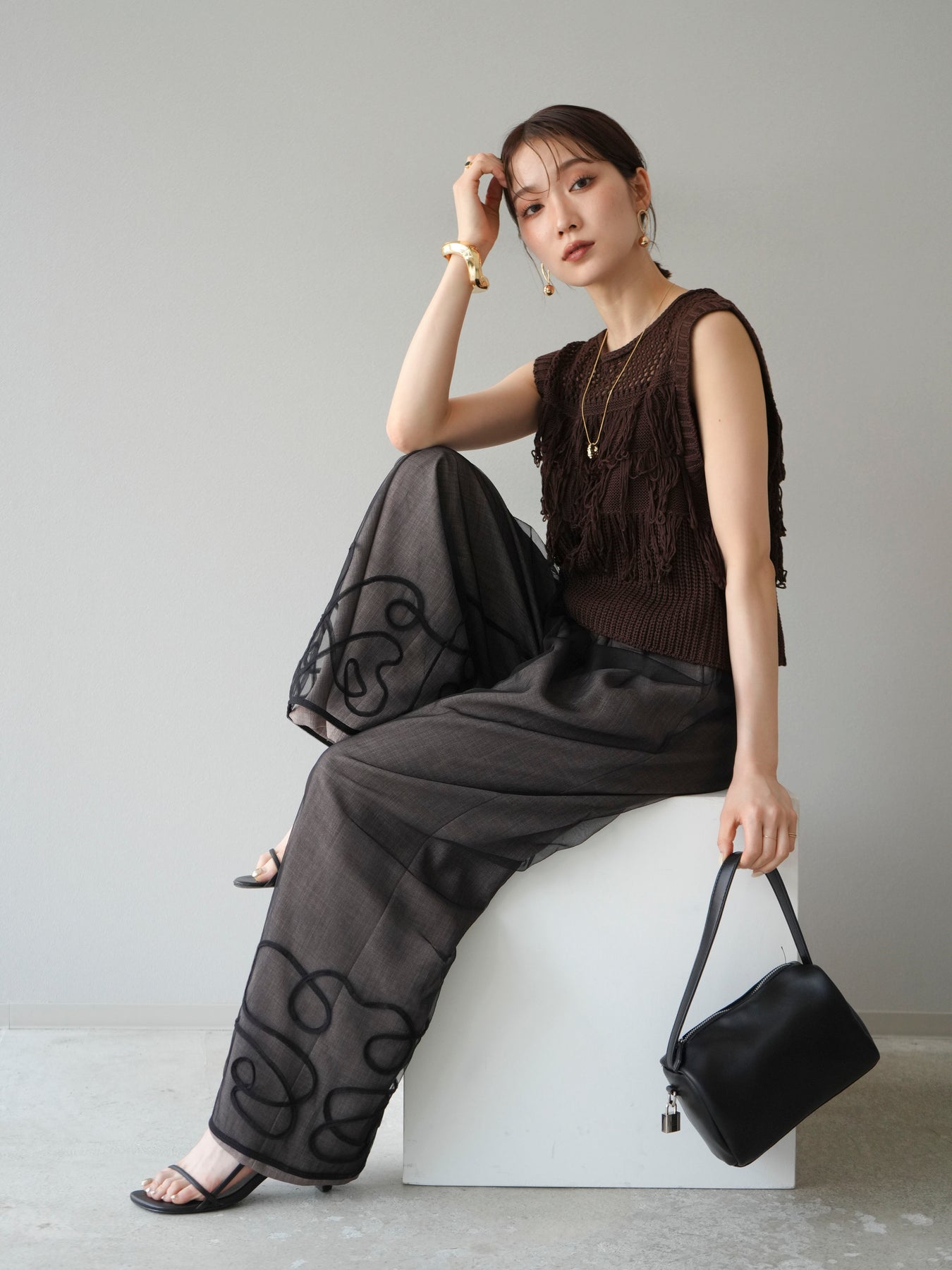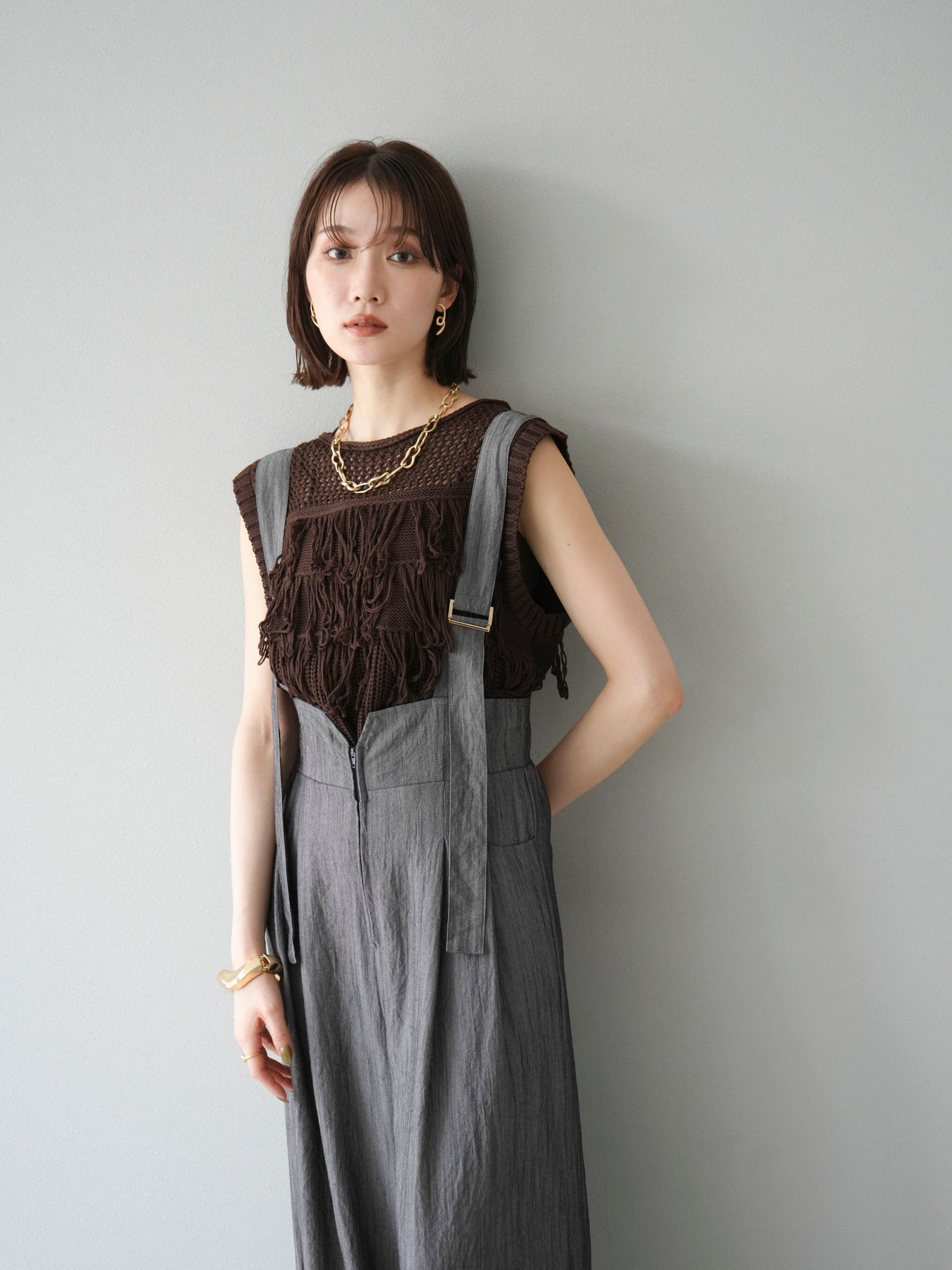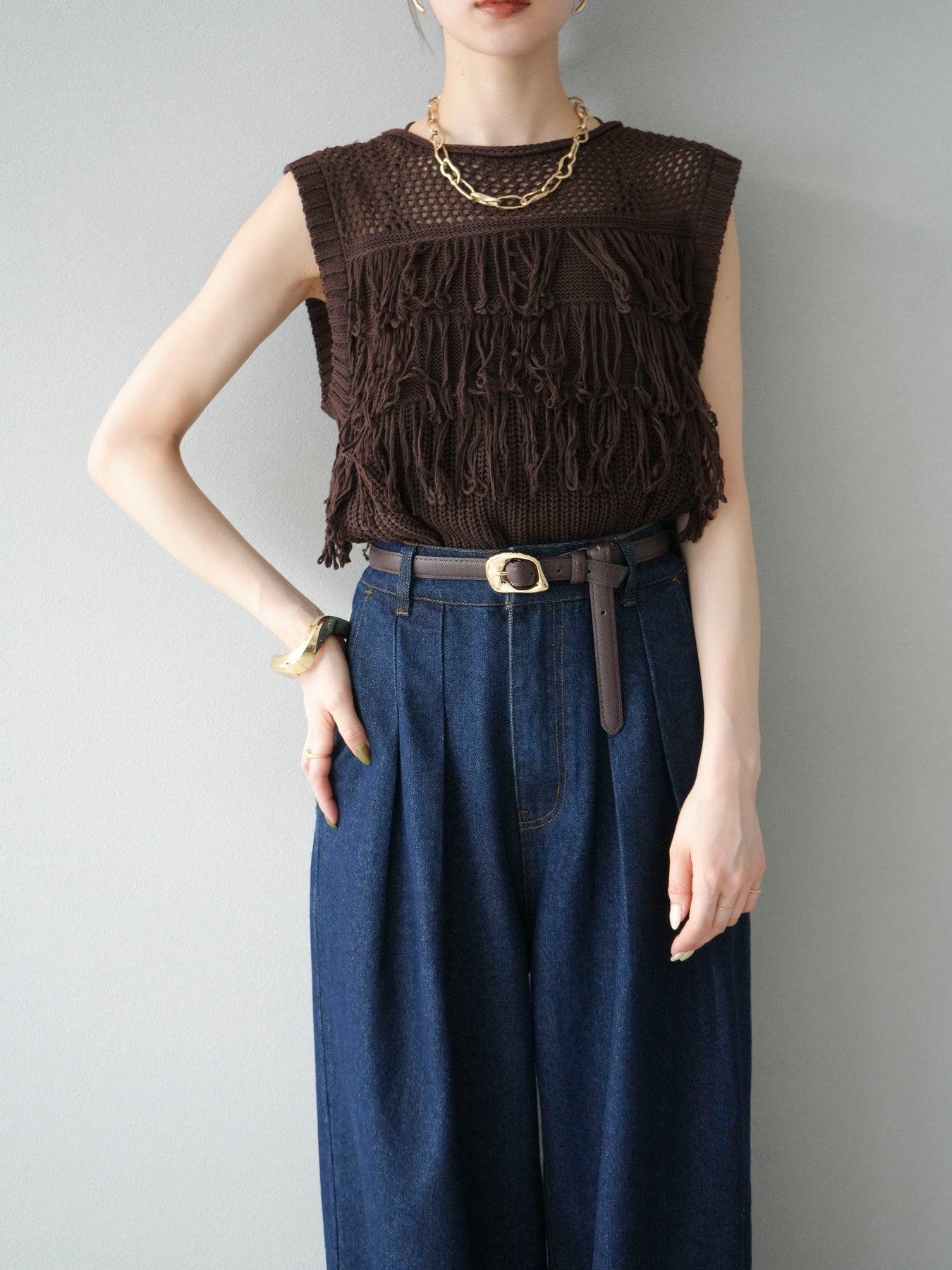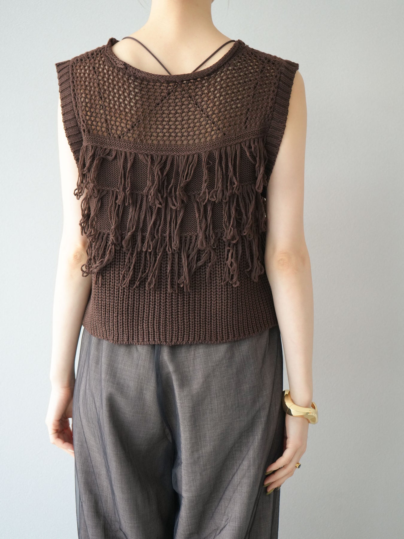 充滿現代感的針織上衣,立體流蘇和精緻的鏤空針織引人注目。 針織布料透氣性極佳,即使在炎熱的天氣下也能穿著舒適,非常涼爽。 適度的肩部露出度和緊湊的長度使其非常適合分層風格。 它可以與 T 卹或背心搭配,也可以搭配襯衫或吊帶裙。 引人注目的流蘇設計為您的服裝增添了動態和表現力。 這是一款迷人的上衣,可將您的日常風格提升到一個新的水平。