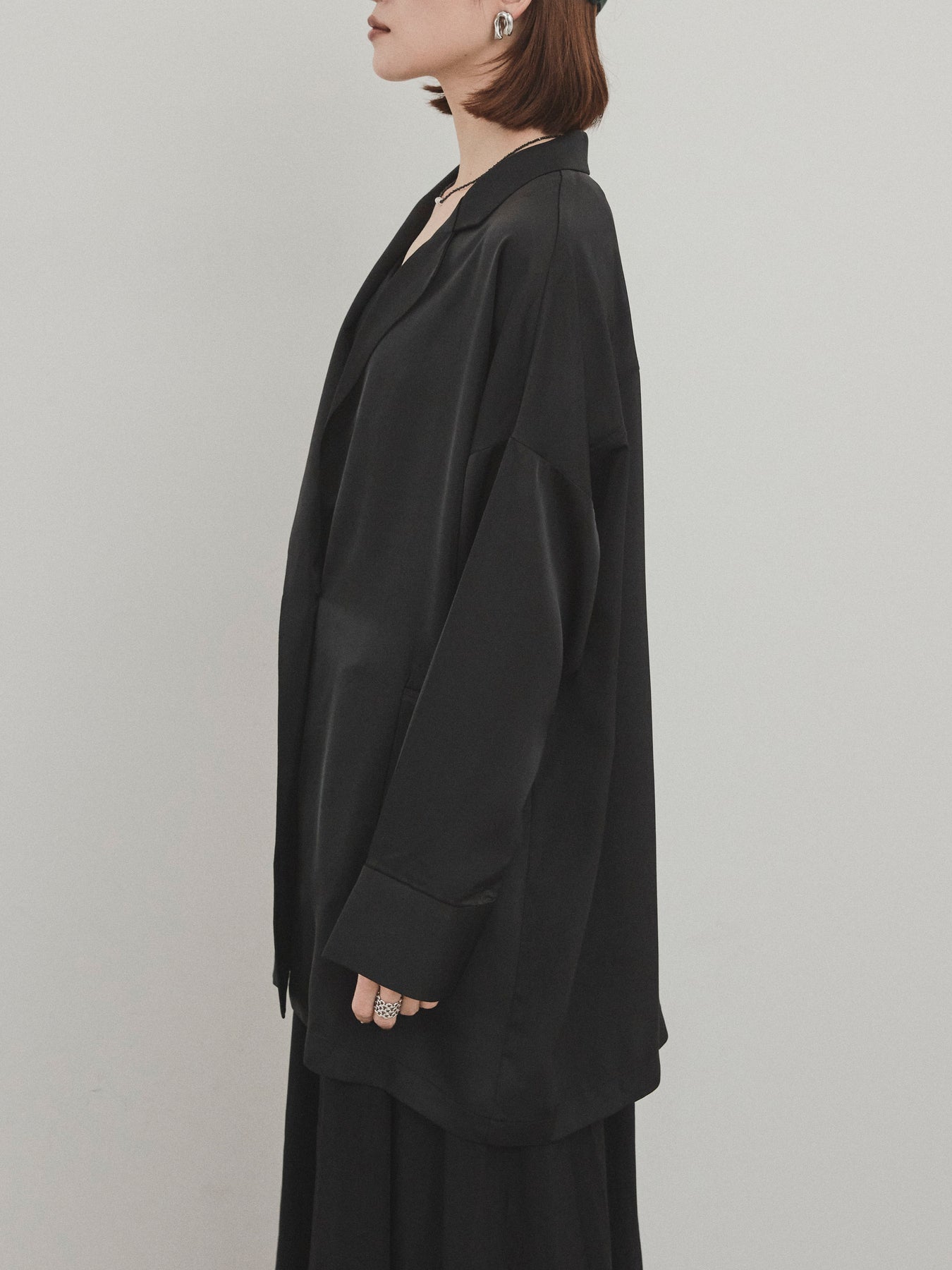 這款輕便外套採用霧面緞面材質製成,光澤度適中,營造出優雅而輕鬆的外觀。 光滑的垂墜自然貼合身體,只需穿上即可展現精緻的外觀。 它具有寬鬆的超大輪廓,並由輕質材料製成,易於穿戴。 捲起的袖子和自然的垂墜感賦予設計一種精緻的感覺。 只需搭配 T 卹或背心即可展現輕鬆休閒風格,或搭配洋裝和休閒褲即可展現更優雅的外觀。 這是一件適合四季穿著的服裝,它將成為您衣櫃中的必備品。