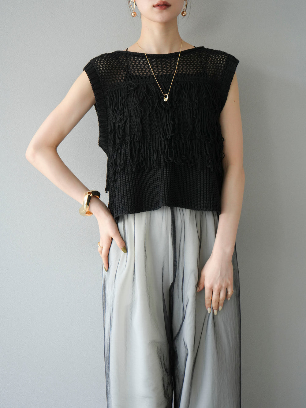 [預購] 褶飾喇叭吊帶套衫/黑色