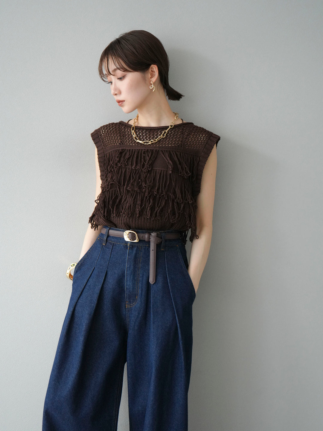 [預訂] 褶飾喇叭吊帶套頭衫/棕色